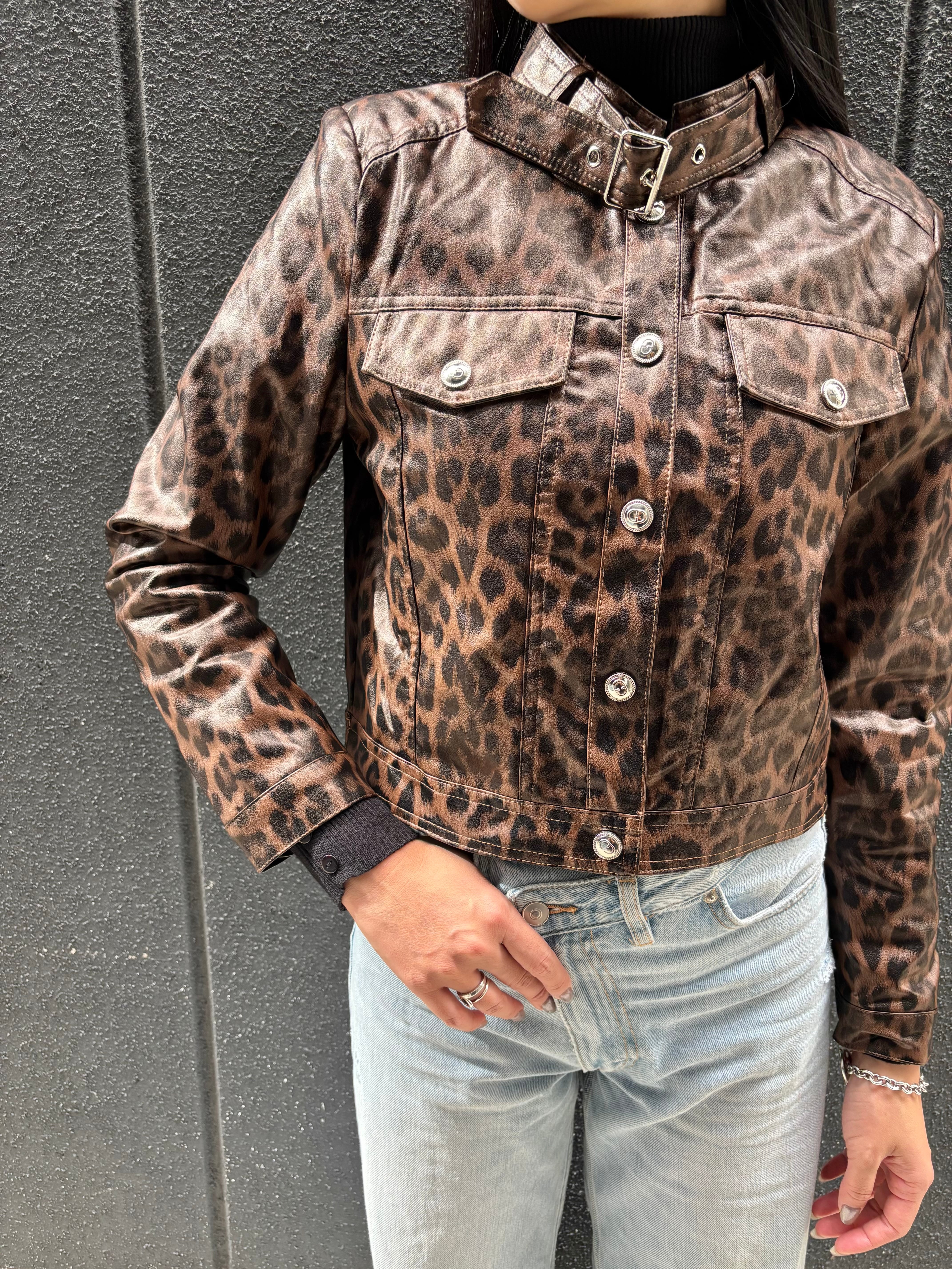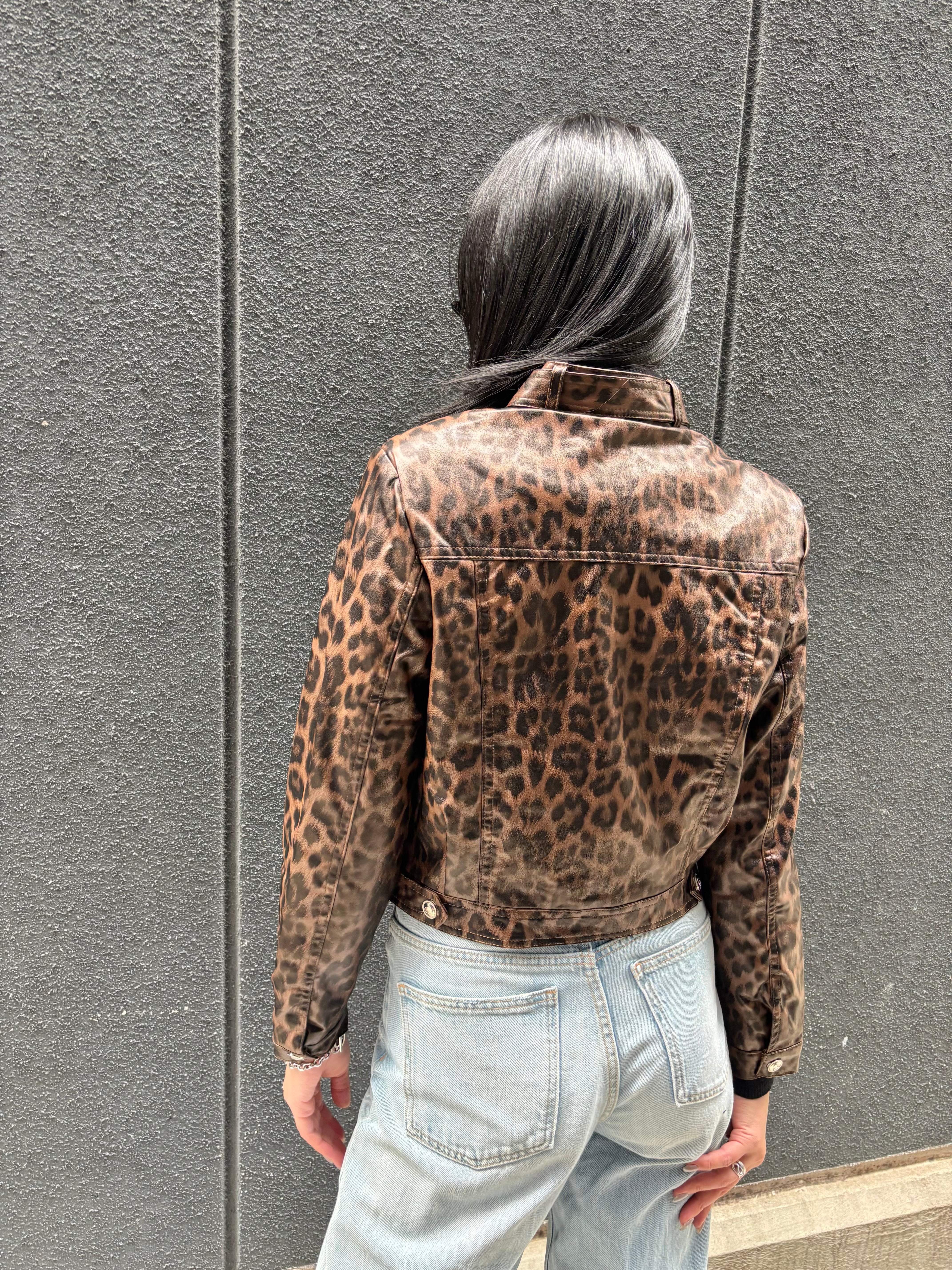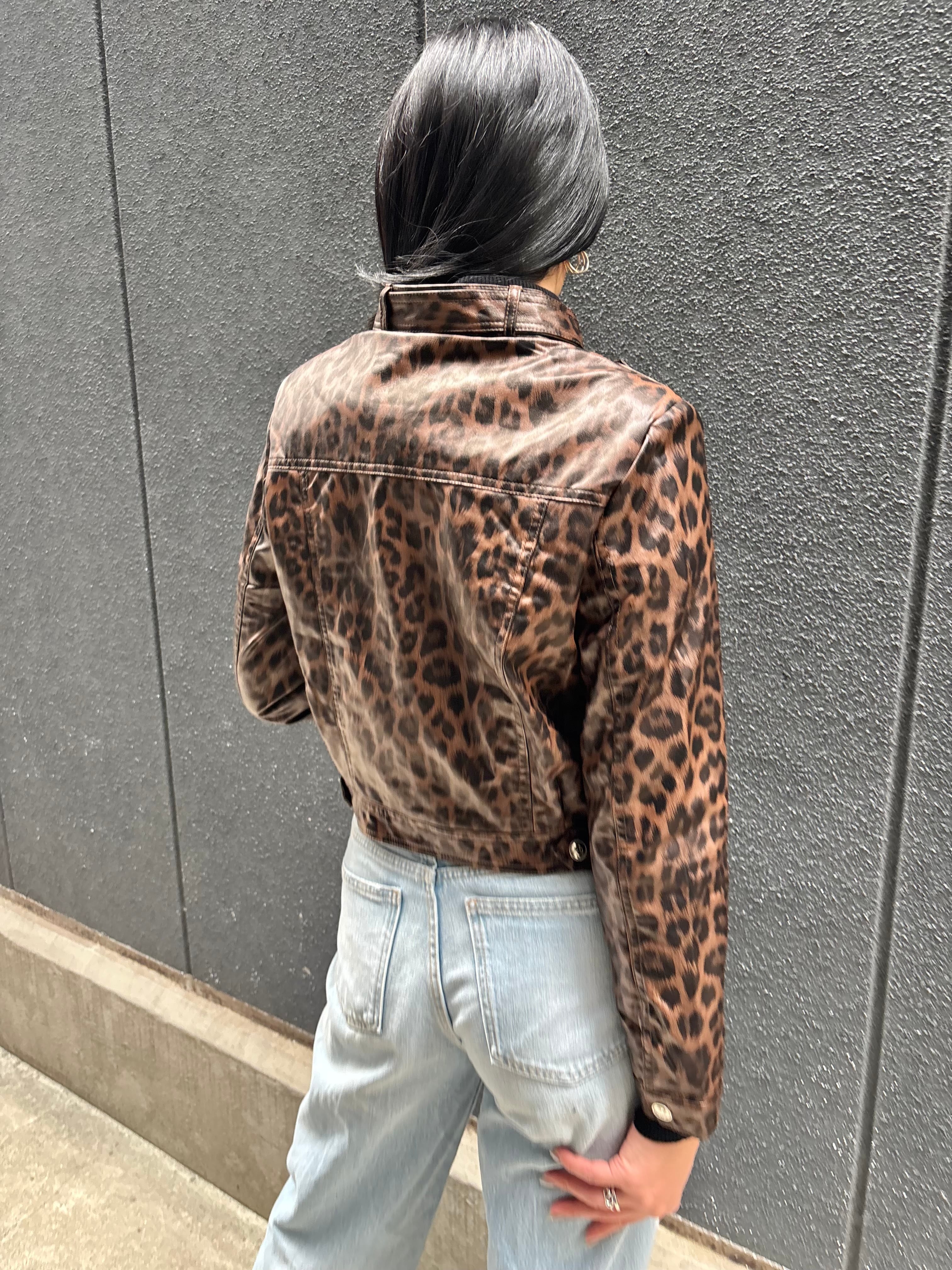 eco leather leopard design jacket ジャケット エコレザー 合皮 レオパード 豹柄 ヒョウ柄