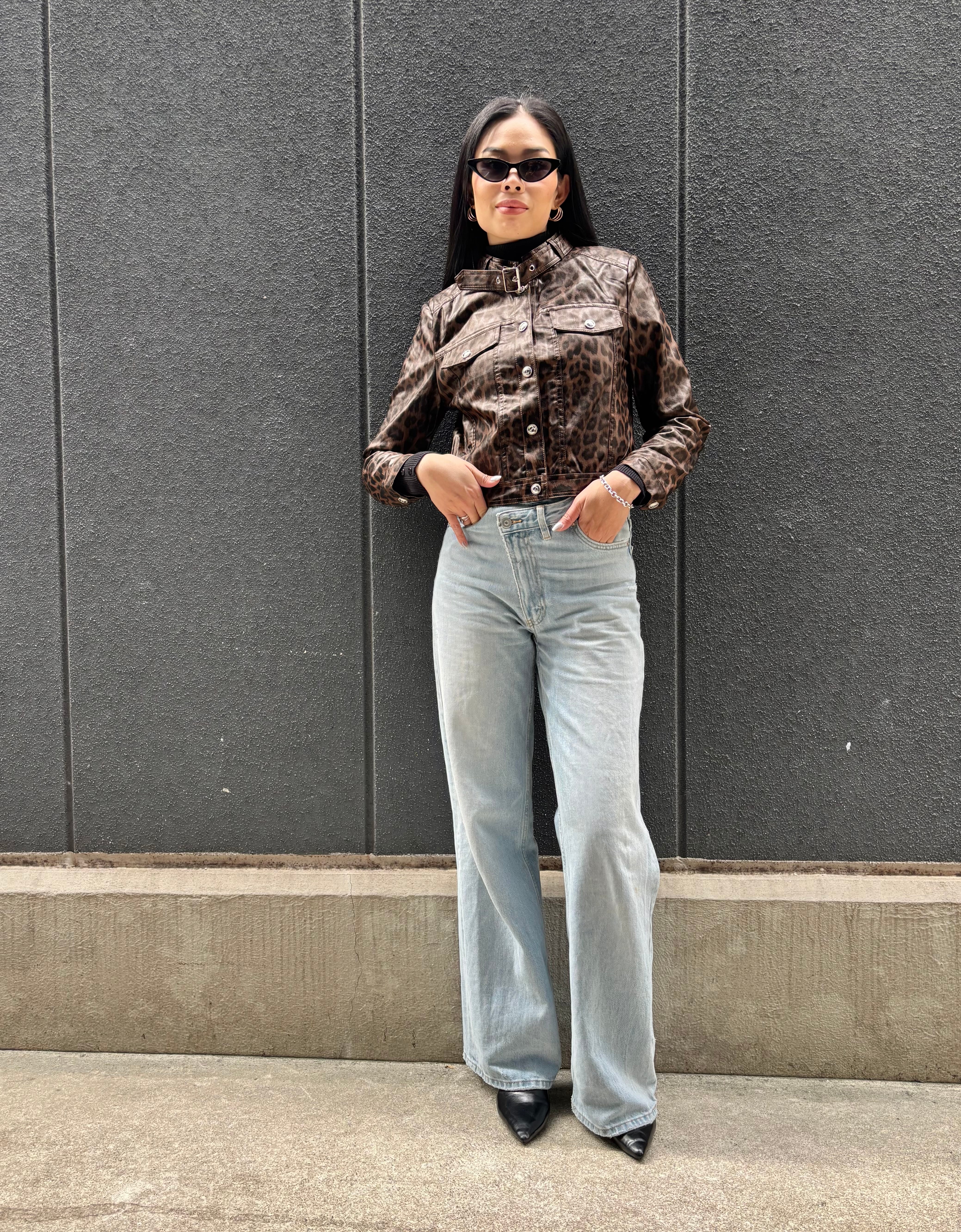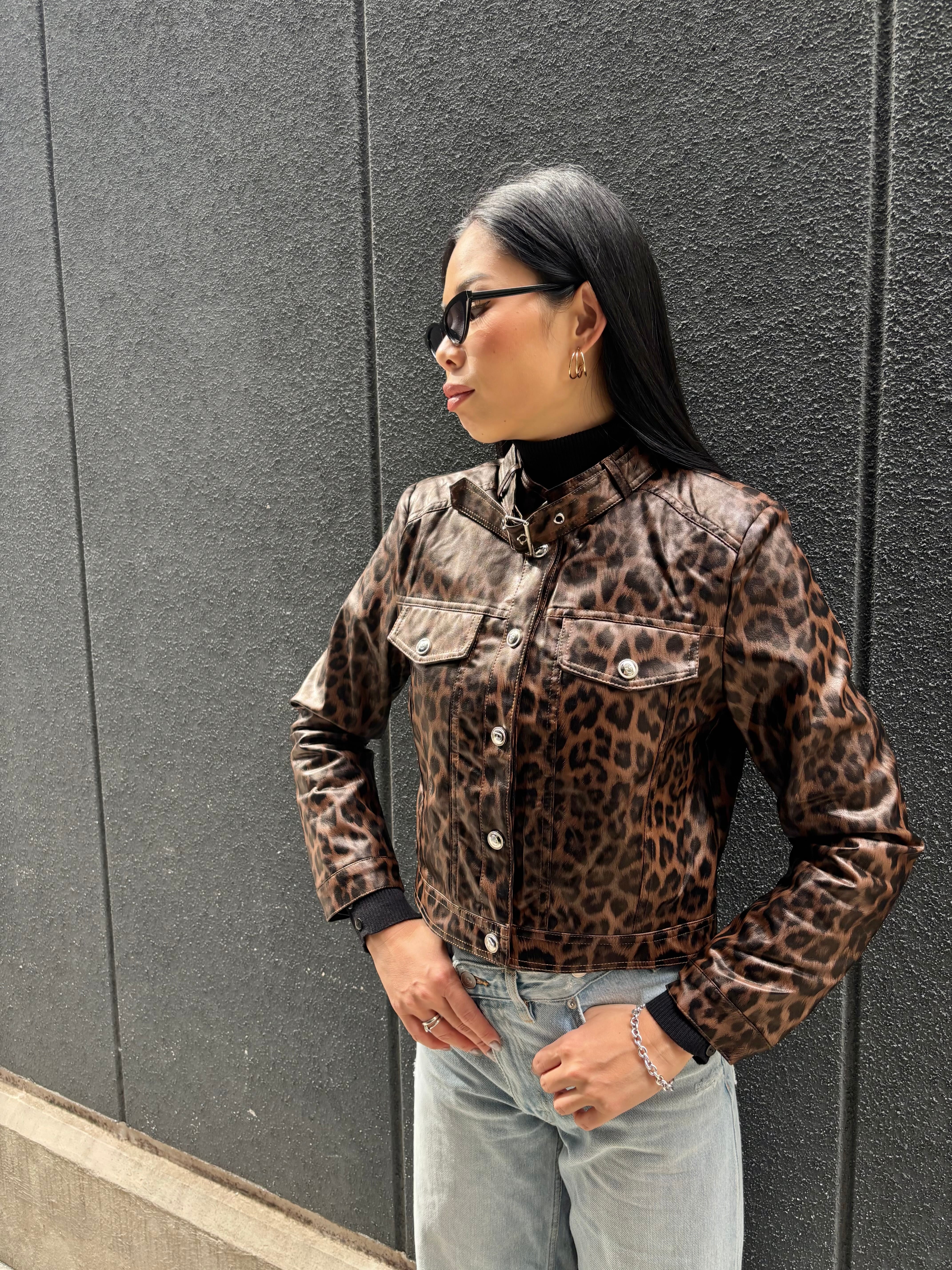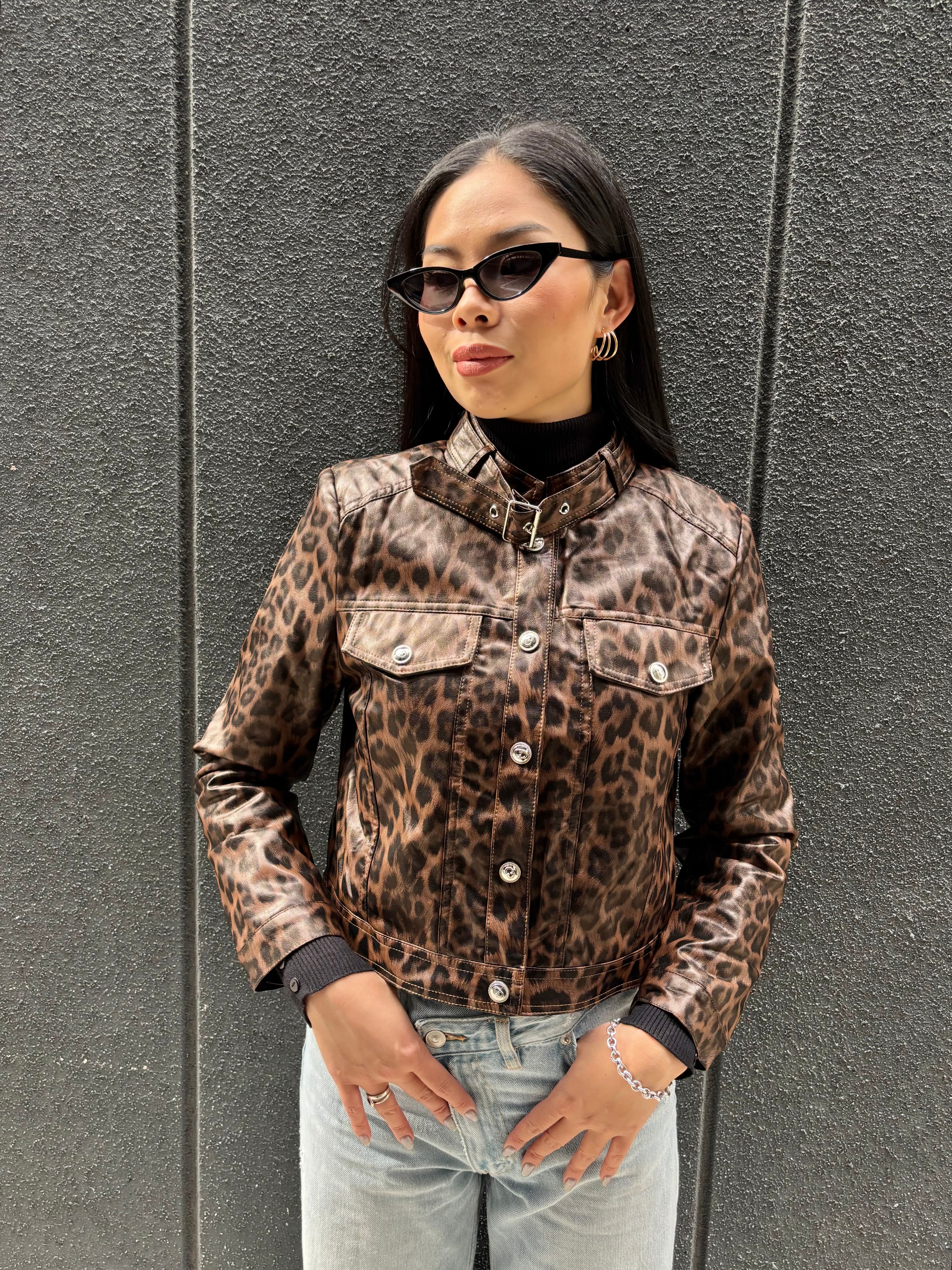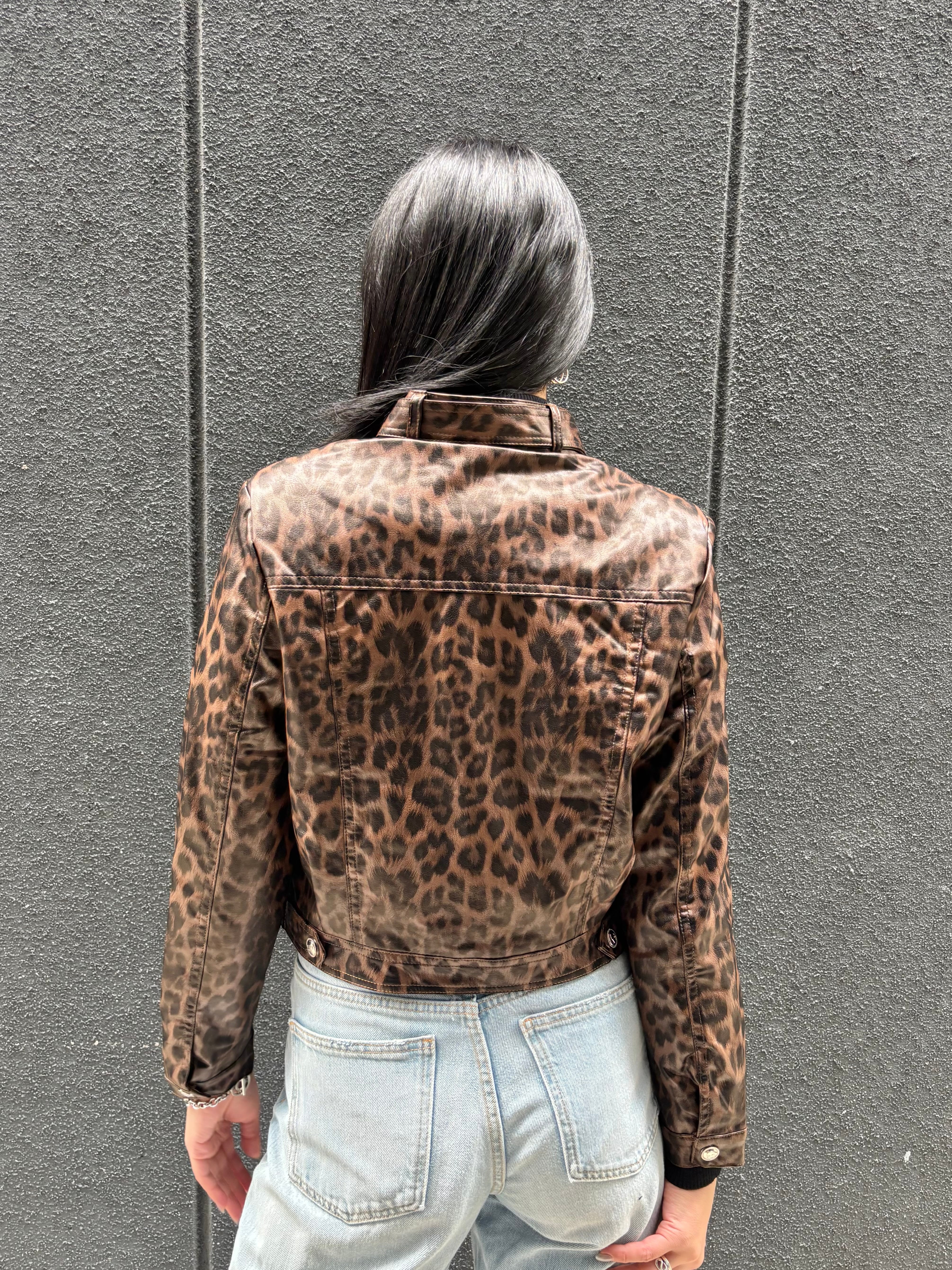 eco leather leopard design jacket ジャケット エコレザー 合皮 レオパード 豹柄 ヒョウ柄