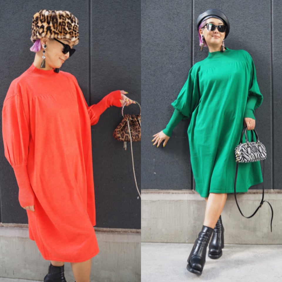 lantern sleeve loose-fit design knit one-piece ワンピース ワンピ ニット ニットワンピ カラフル ゆったりめ
