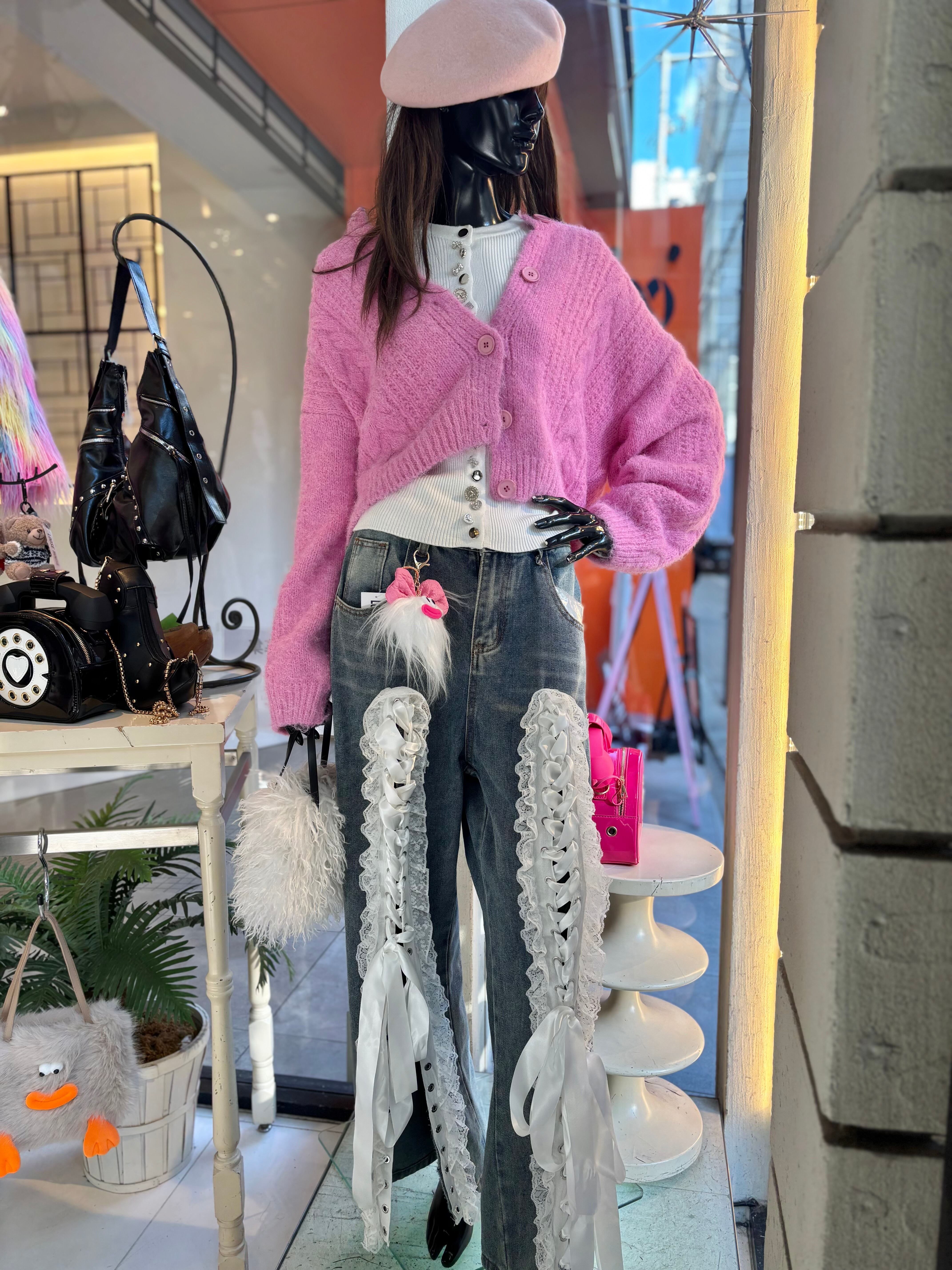 solid color knit cardigan ニット カーディガン 柄編み ソリッドカラー 単色 カラフル