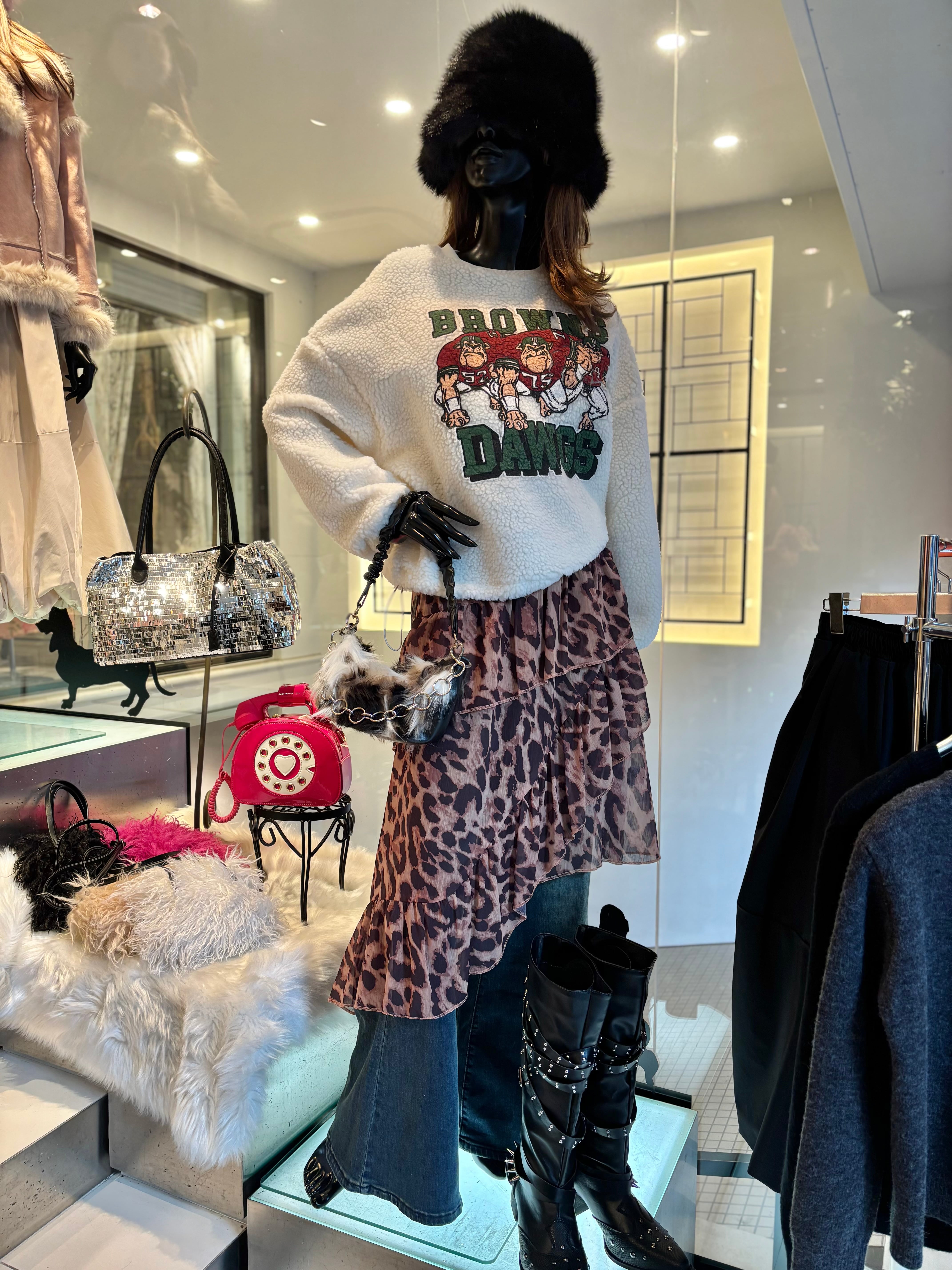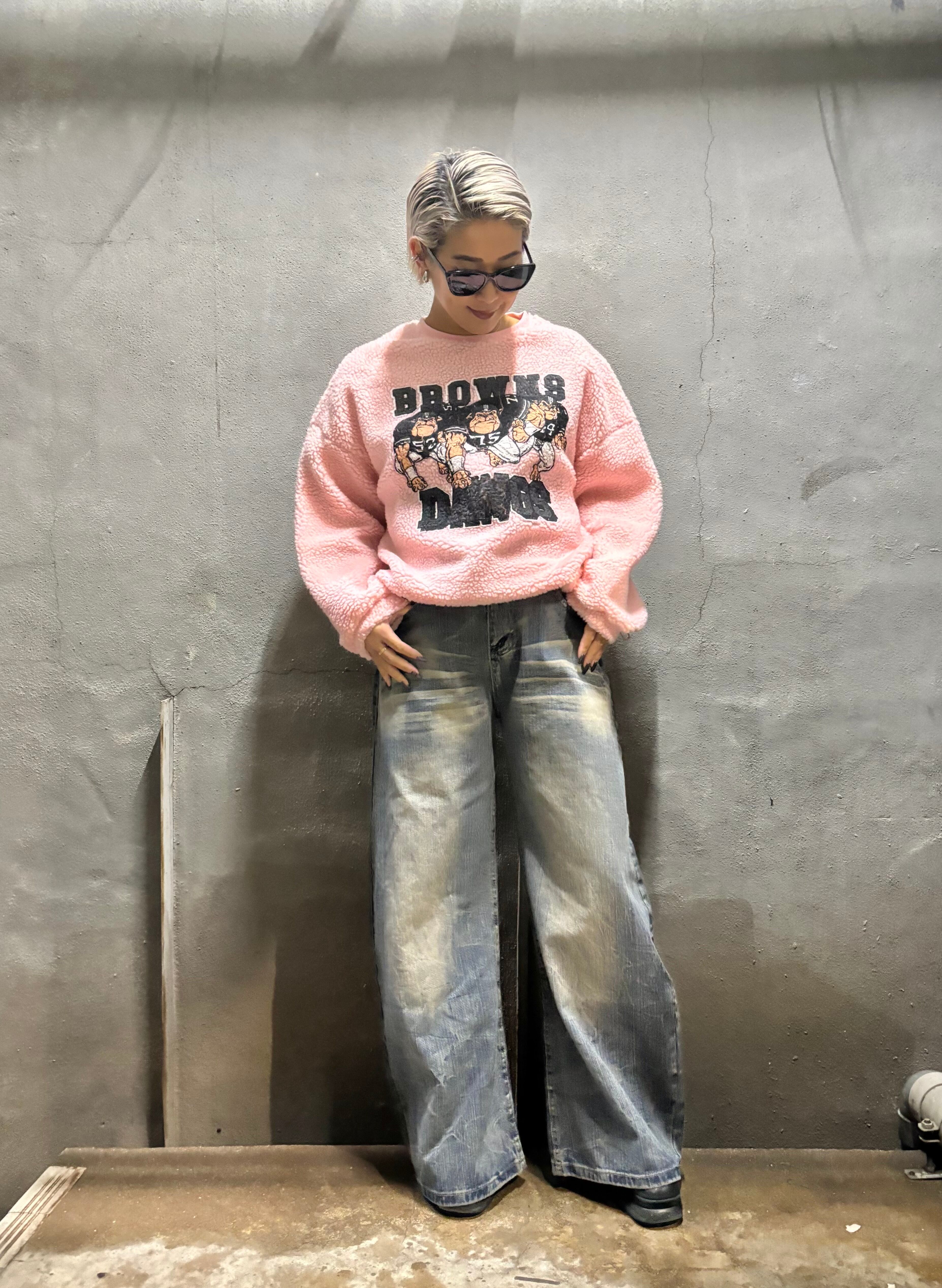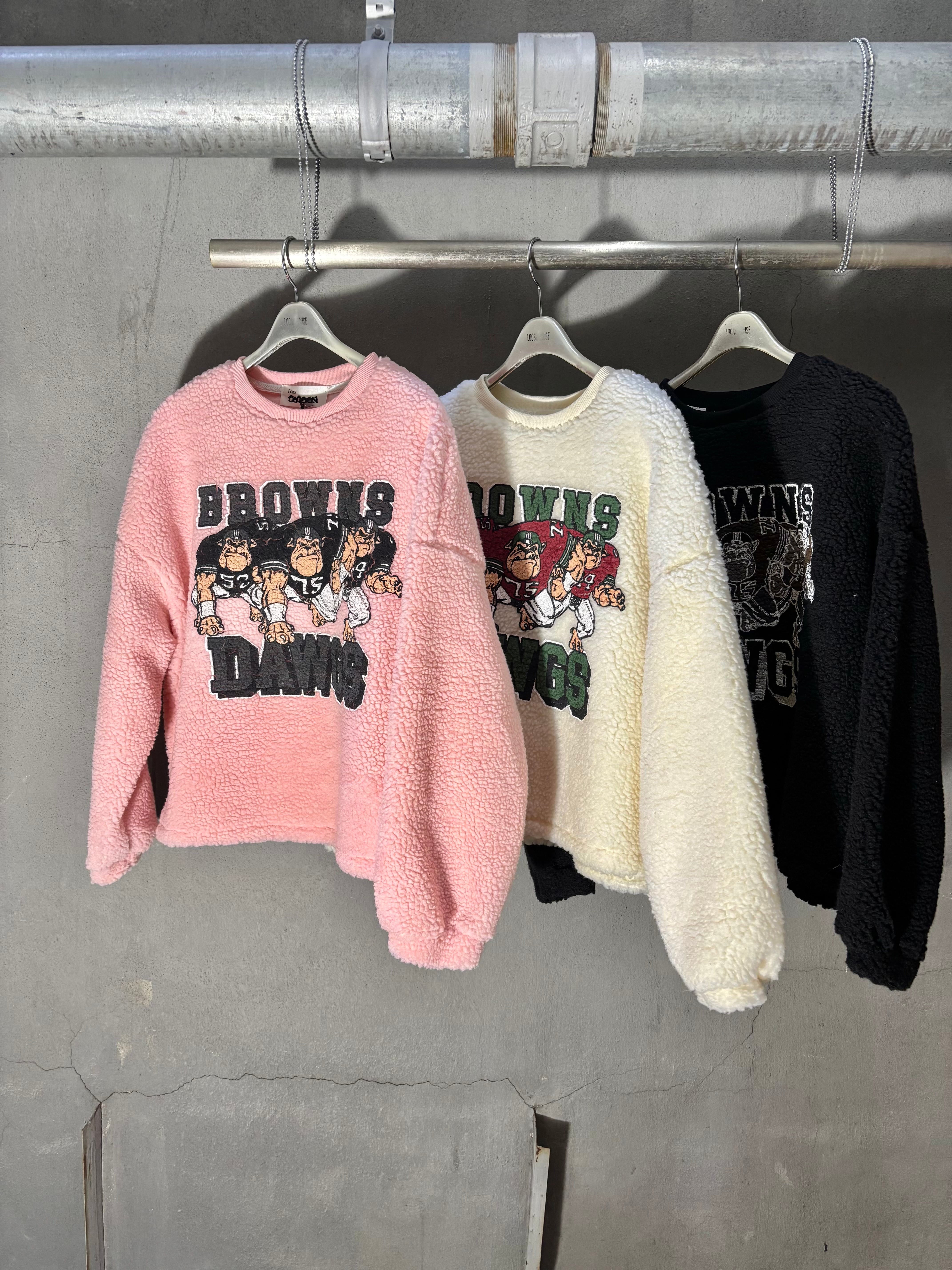 football dog print boa tops trainer トップス トレーナー ボア プリント ドローコード もこもこ