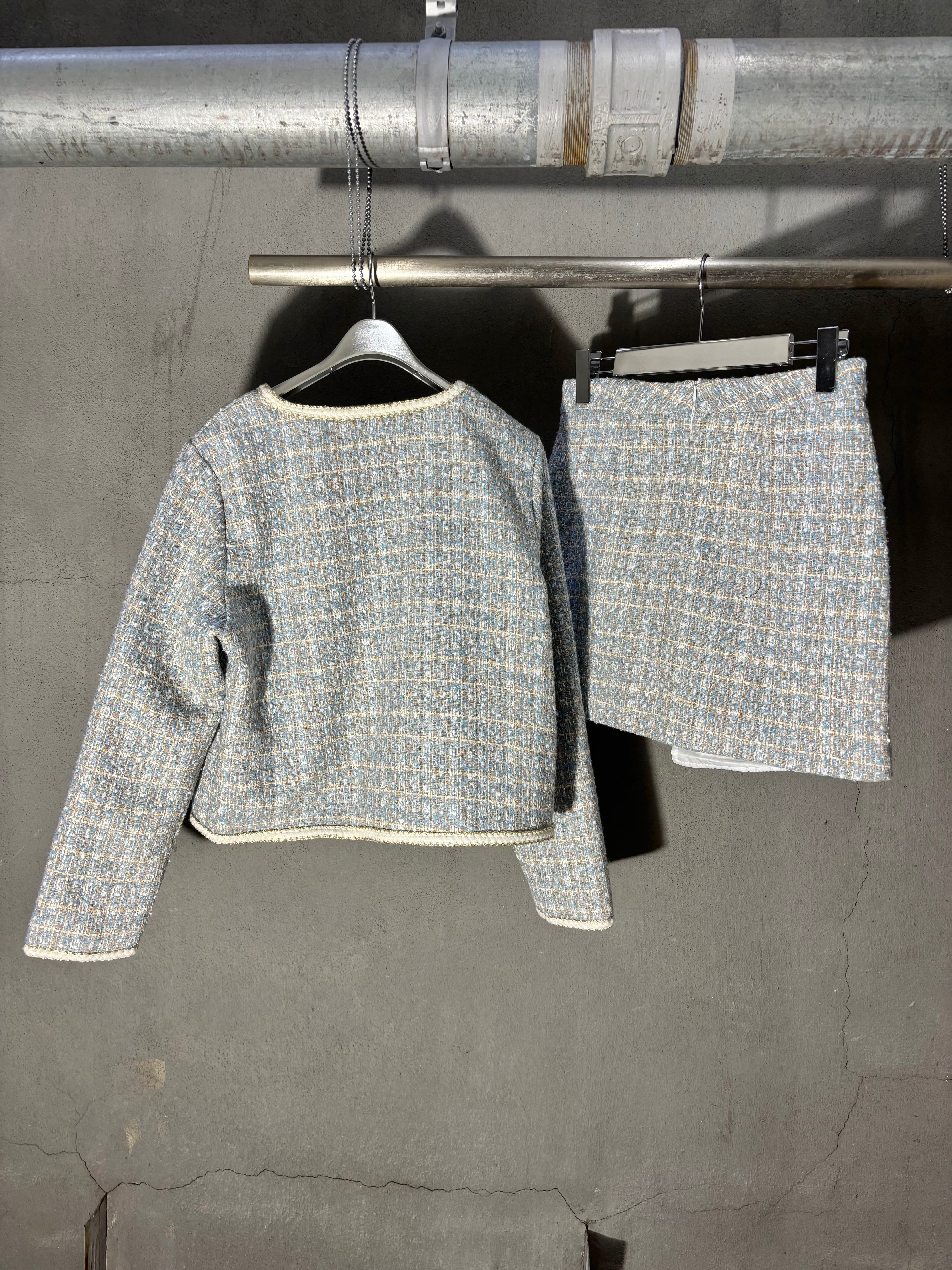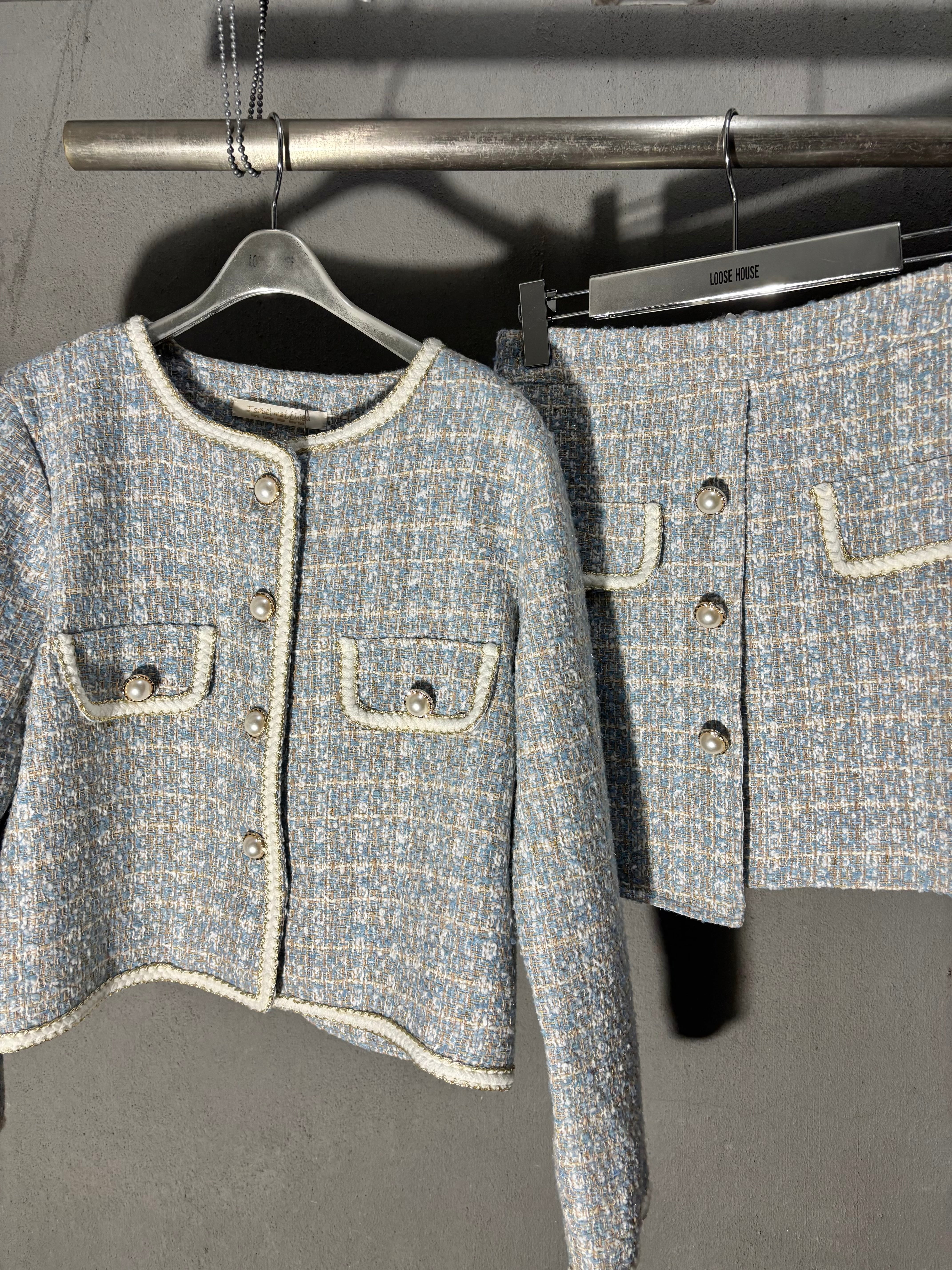tweed jacket × mini skirt 2P set up セットアップ 2点セット ツィード ジャケット ミニスカート パール