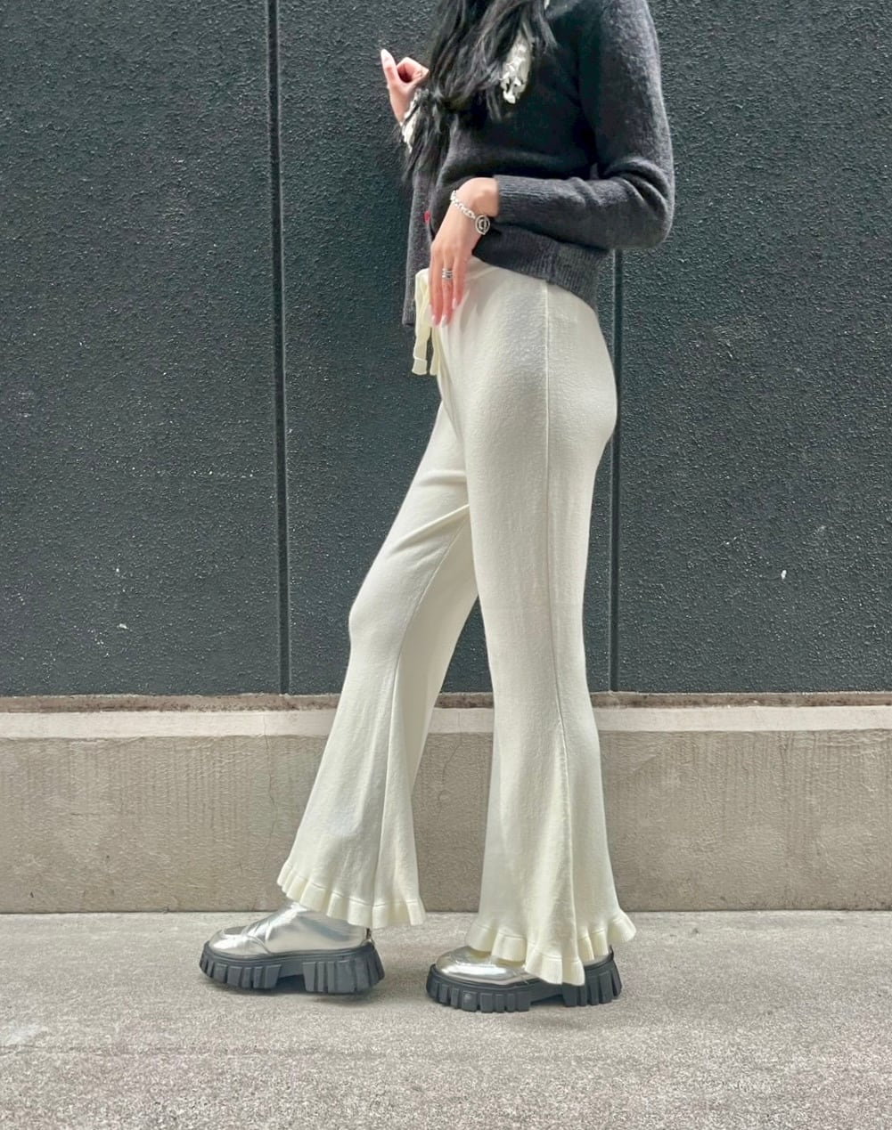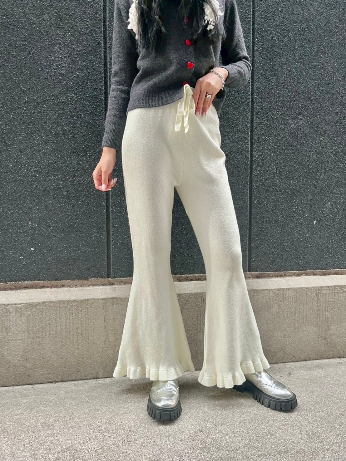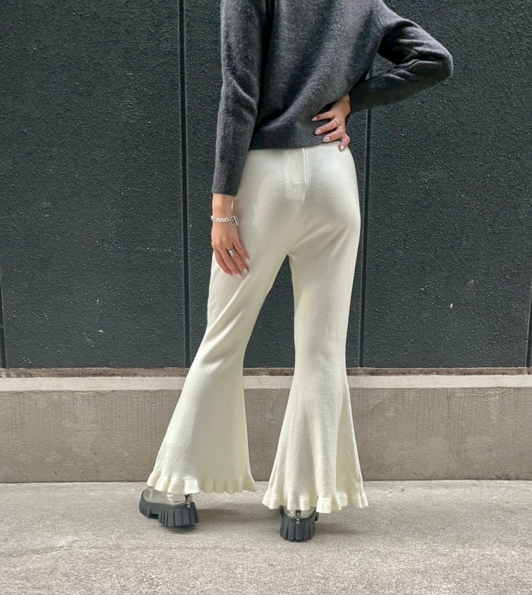 frill hem design knit long pants パンツ ニット フリル ゴムウエスト