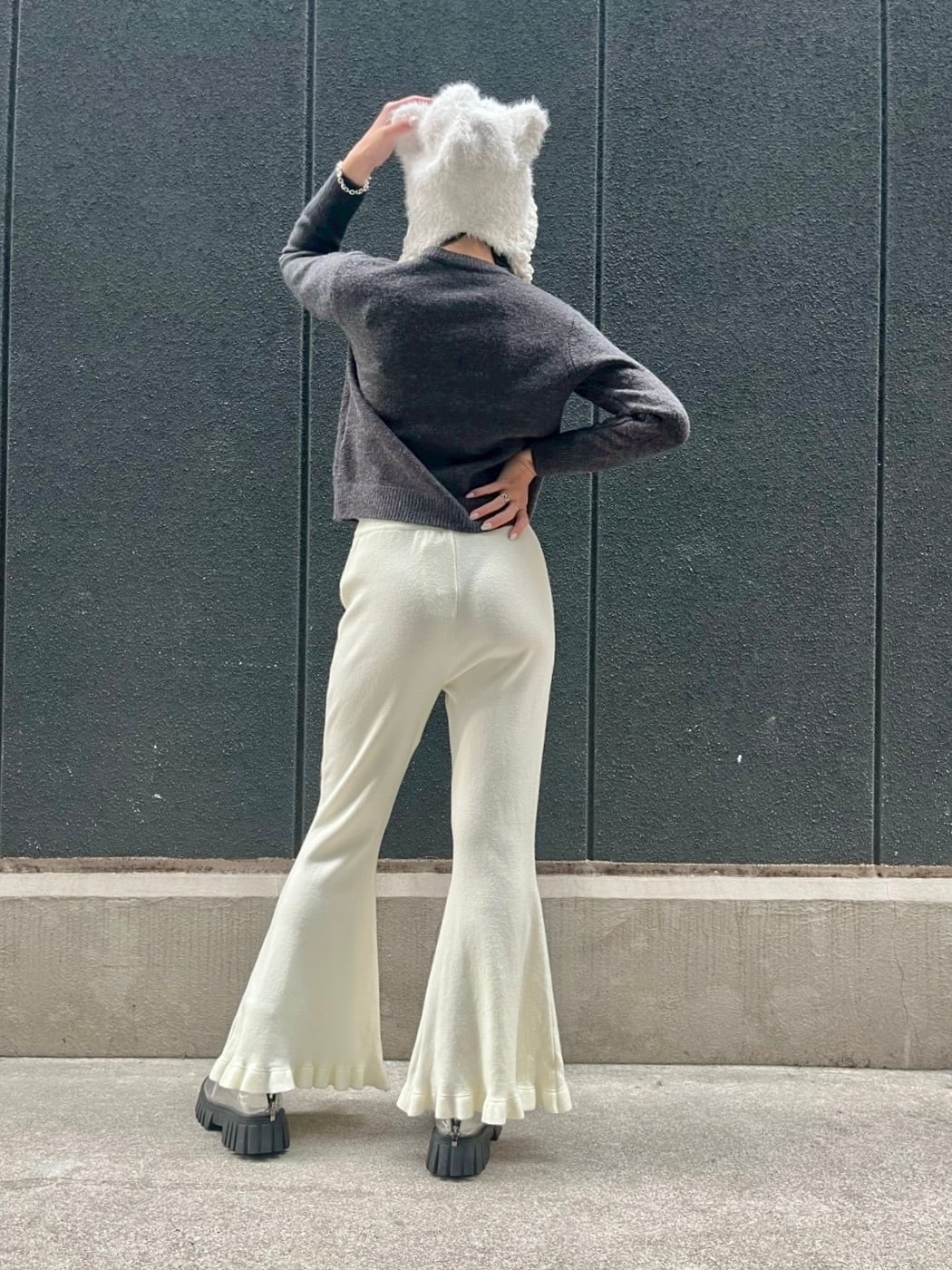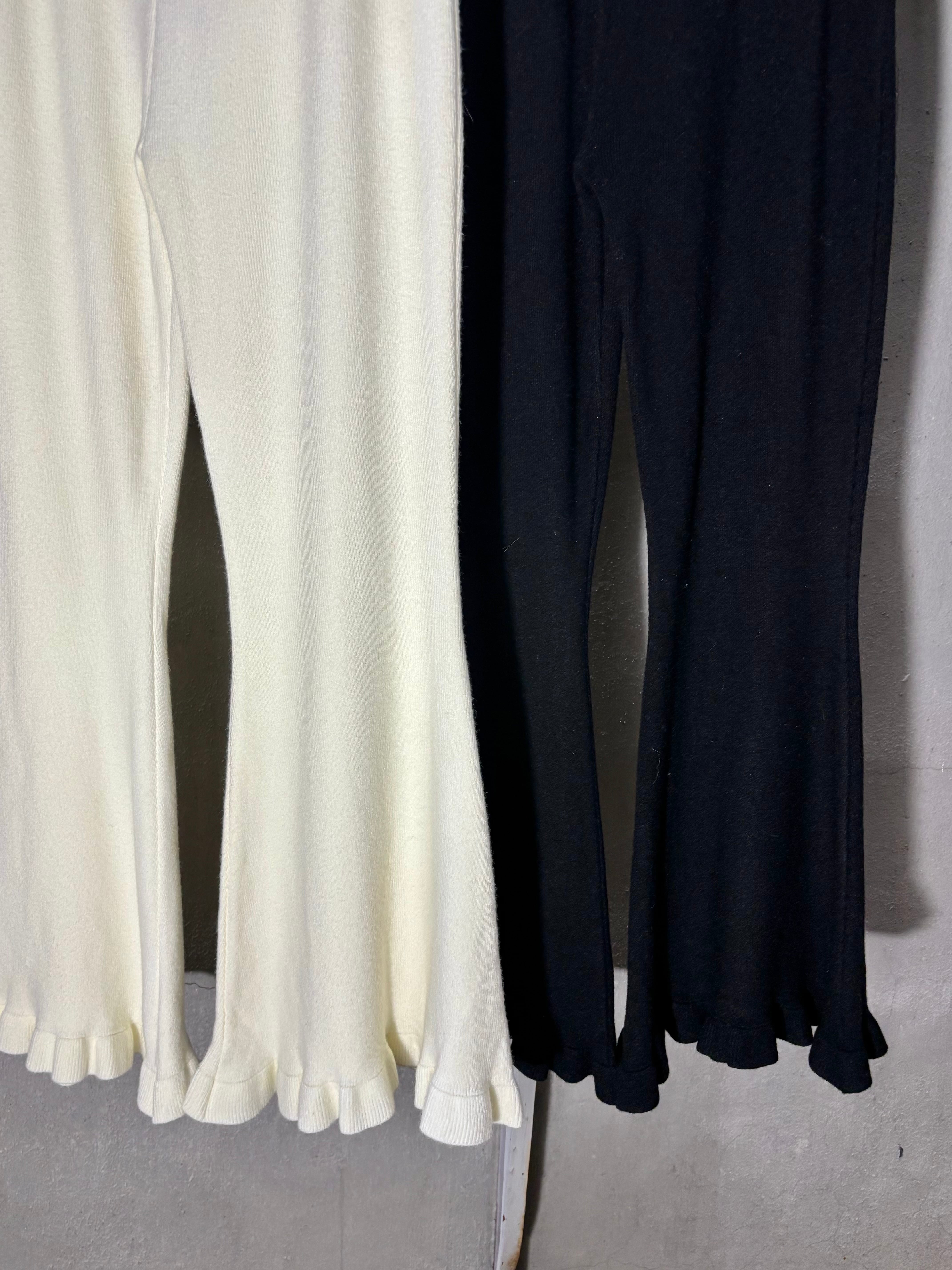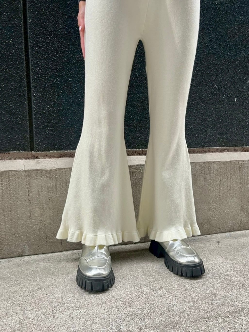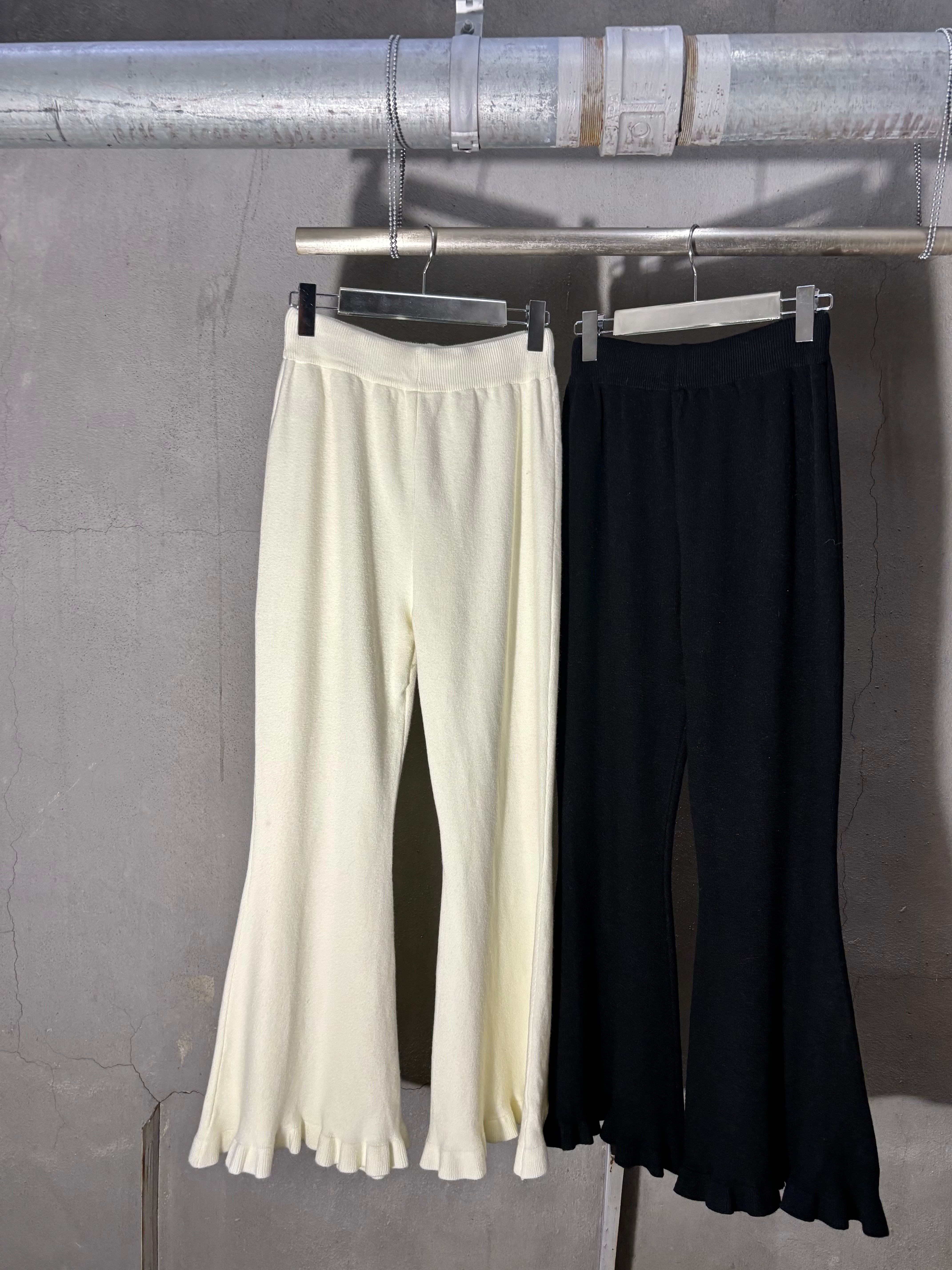 frill hem design knit long pants パンツ ニット フリル ゴムウエスト