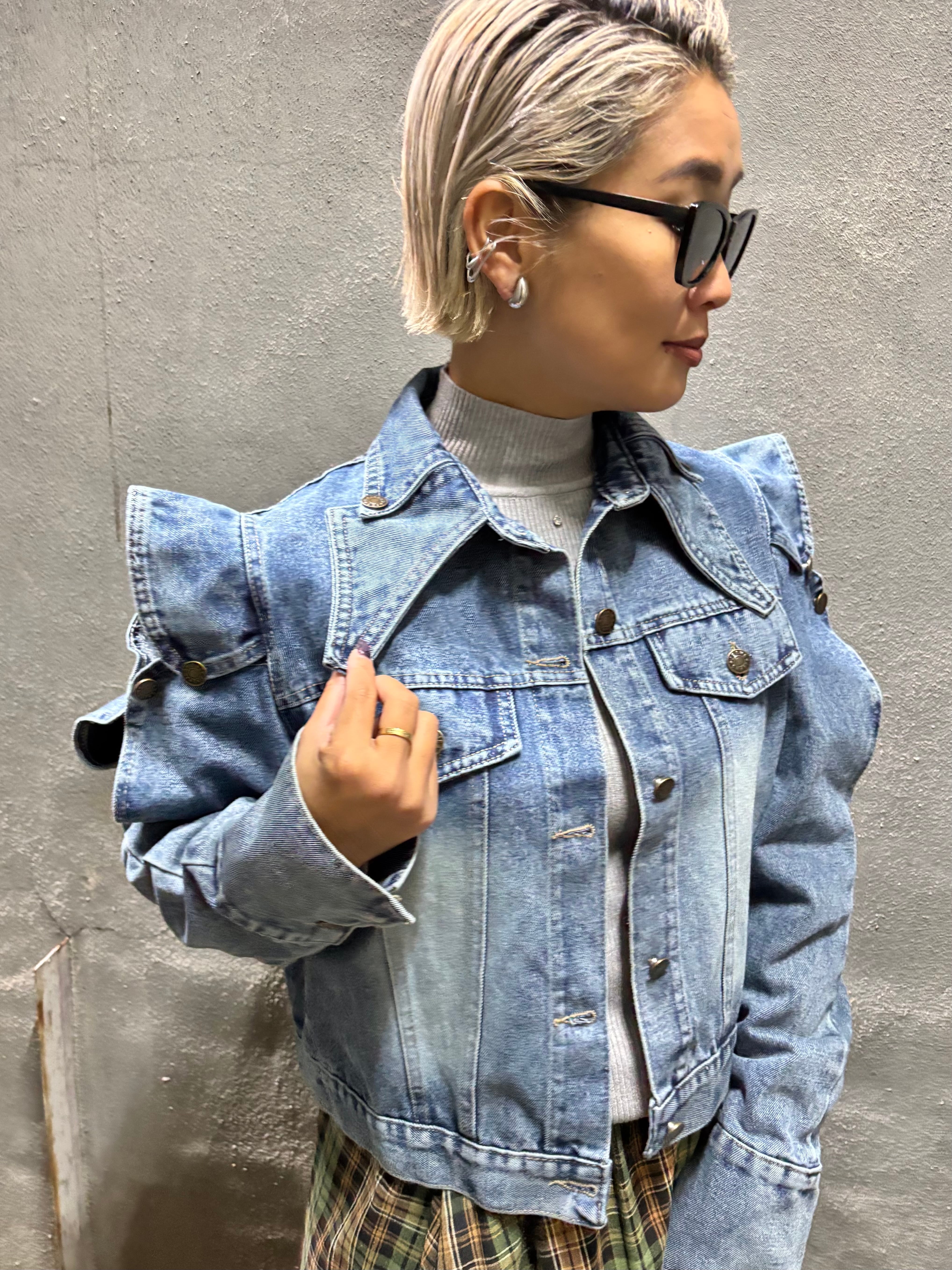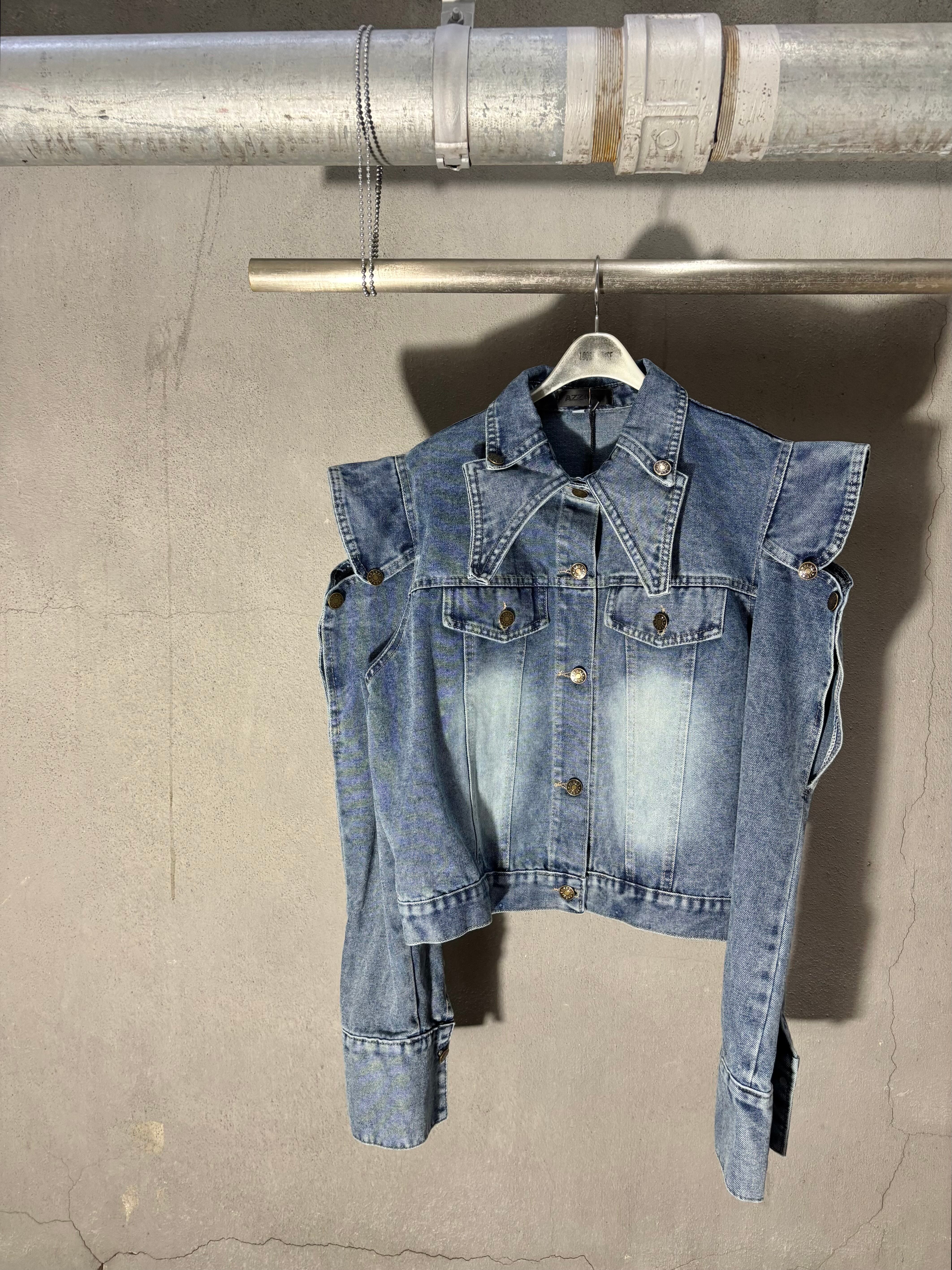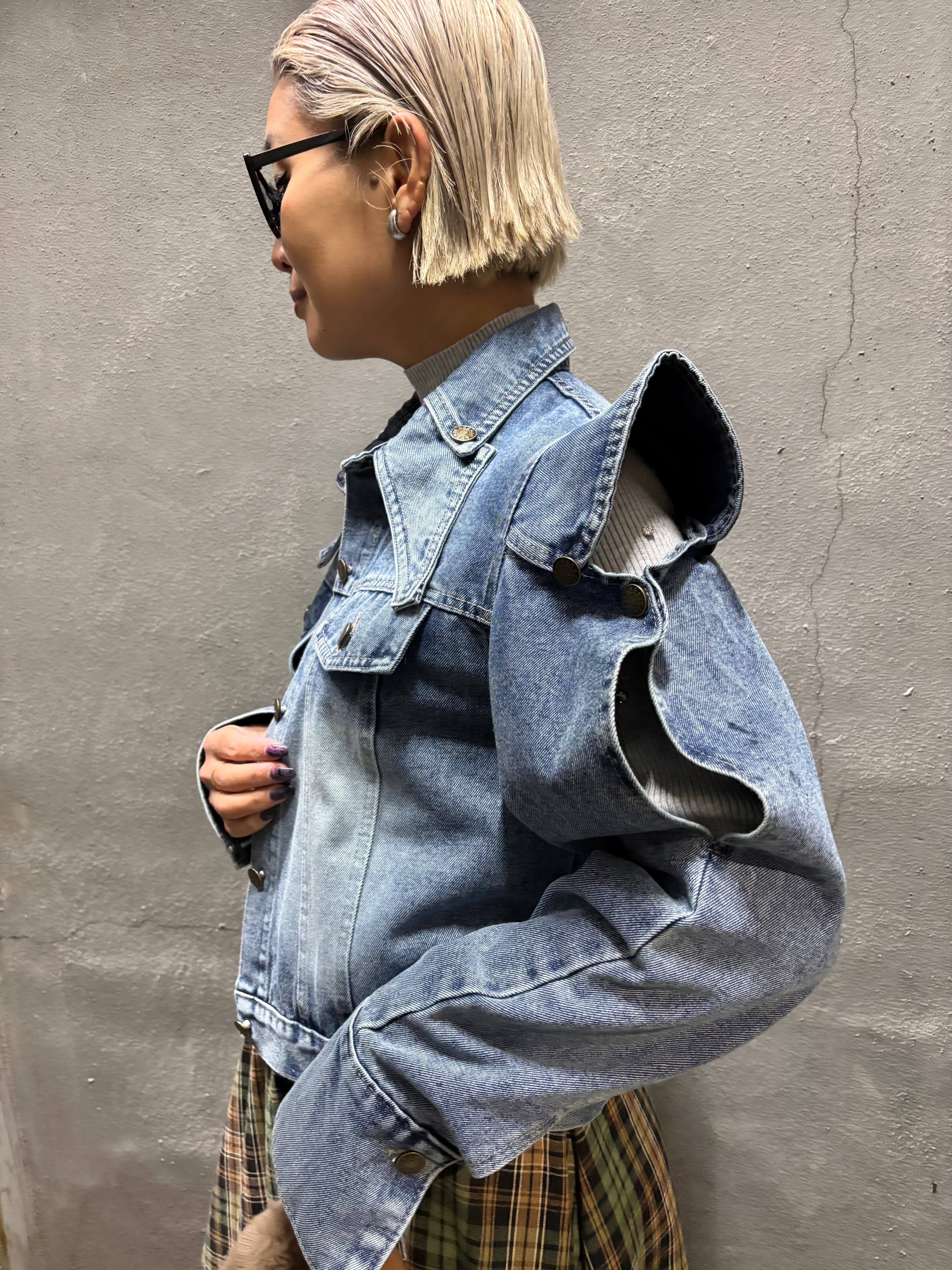 design sleeve denim jacket ジャケット デニム 肩開き カジュアル