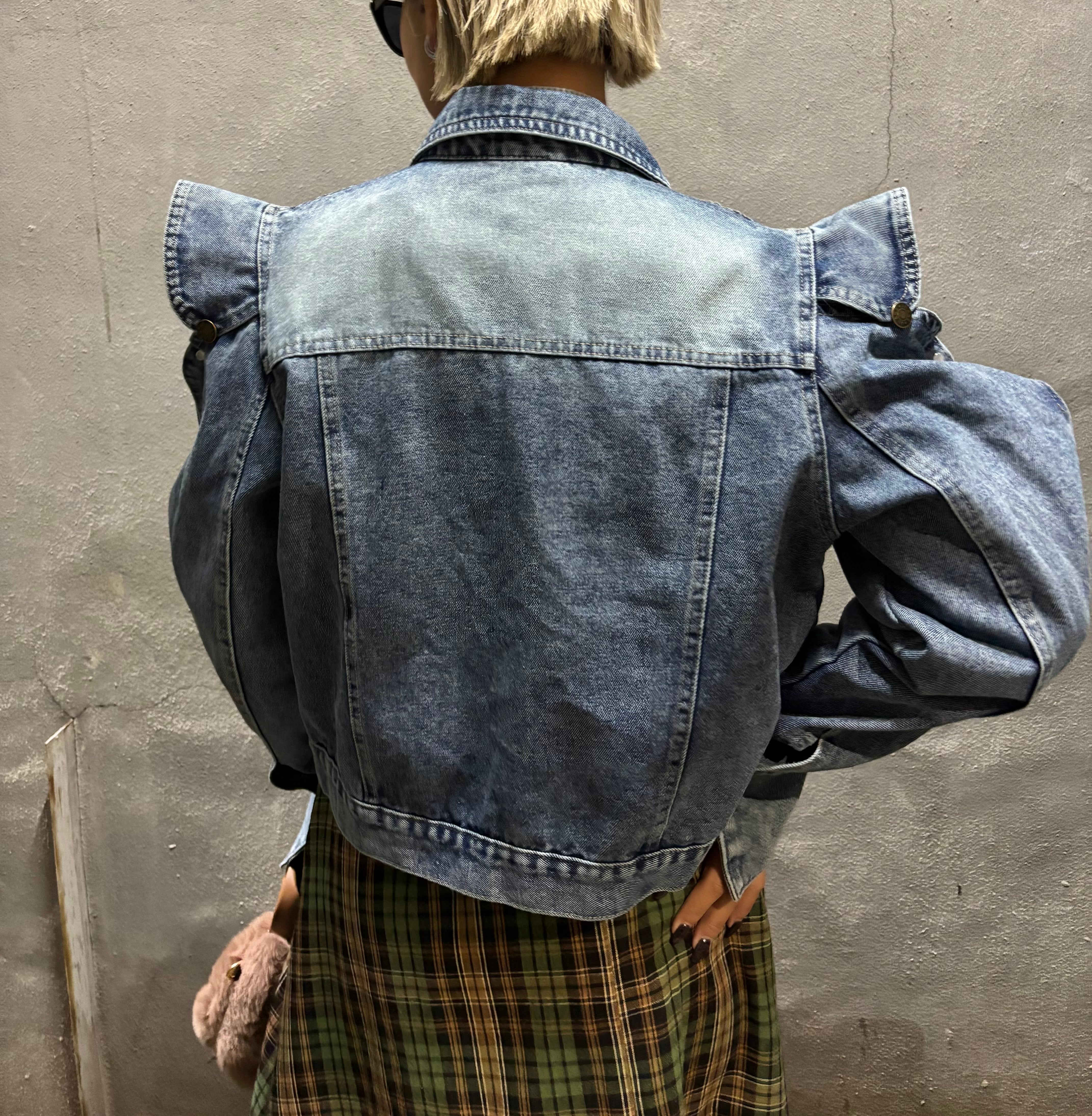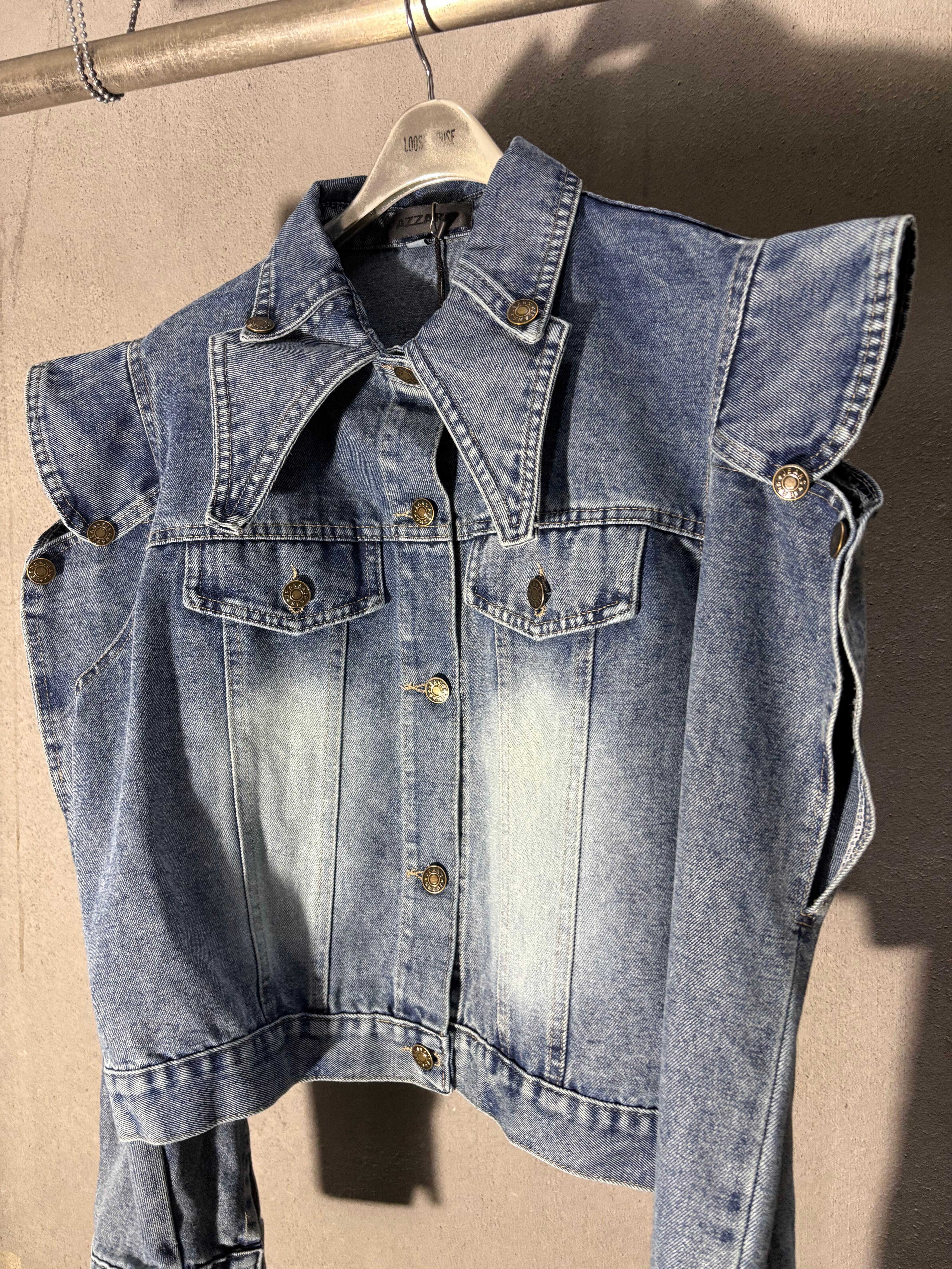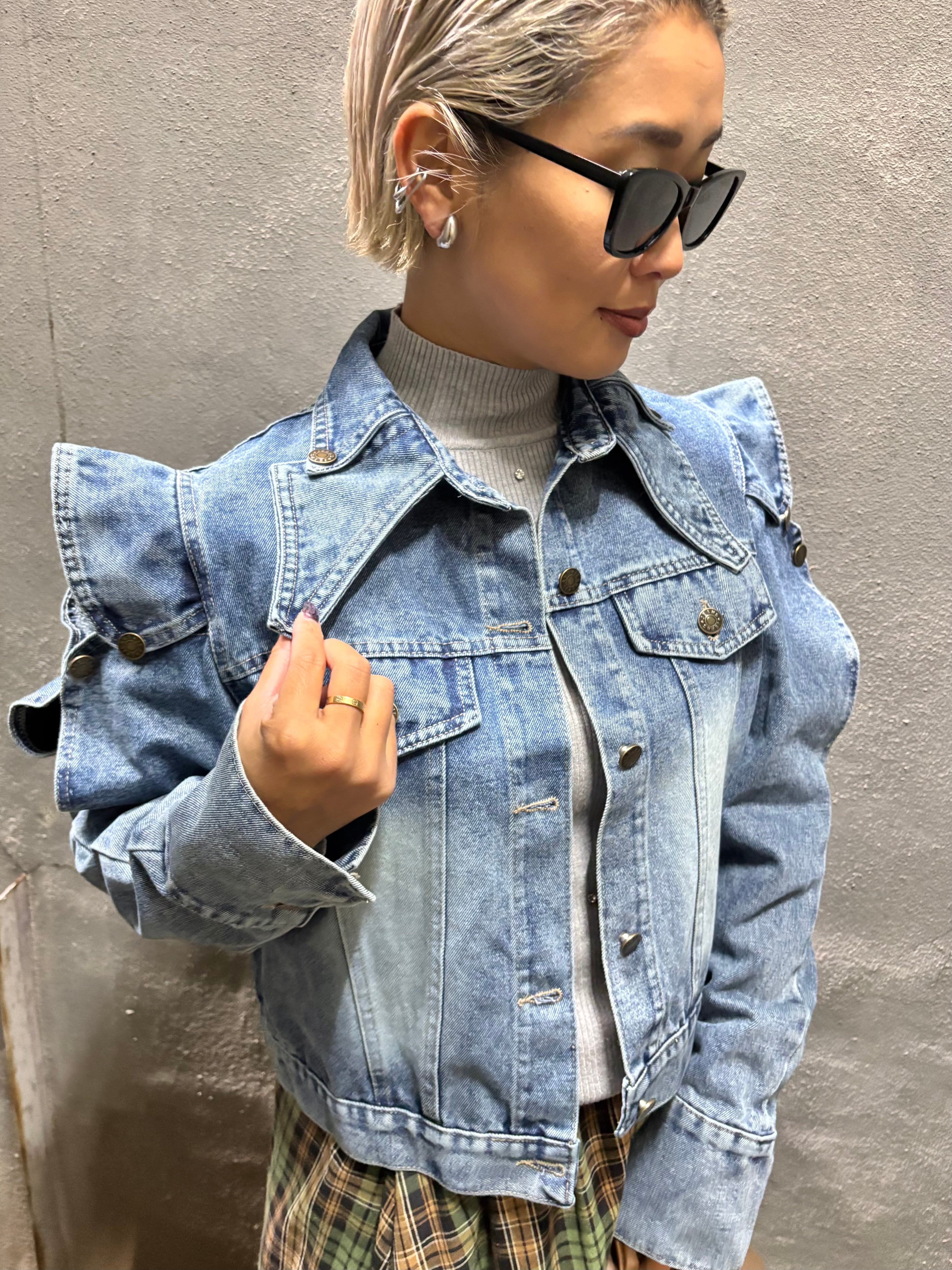 design sleeve denim jacket ジャケット デニム 肩開き カジュアル