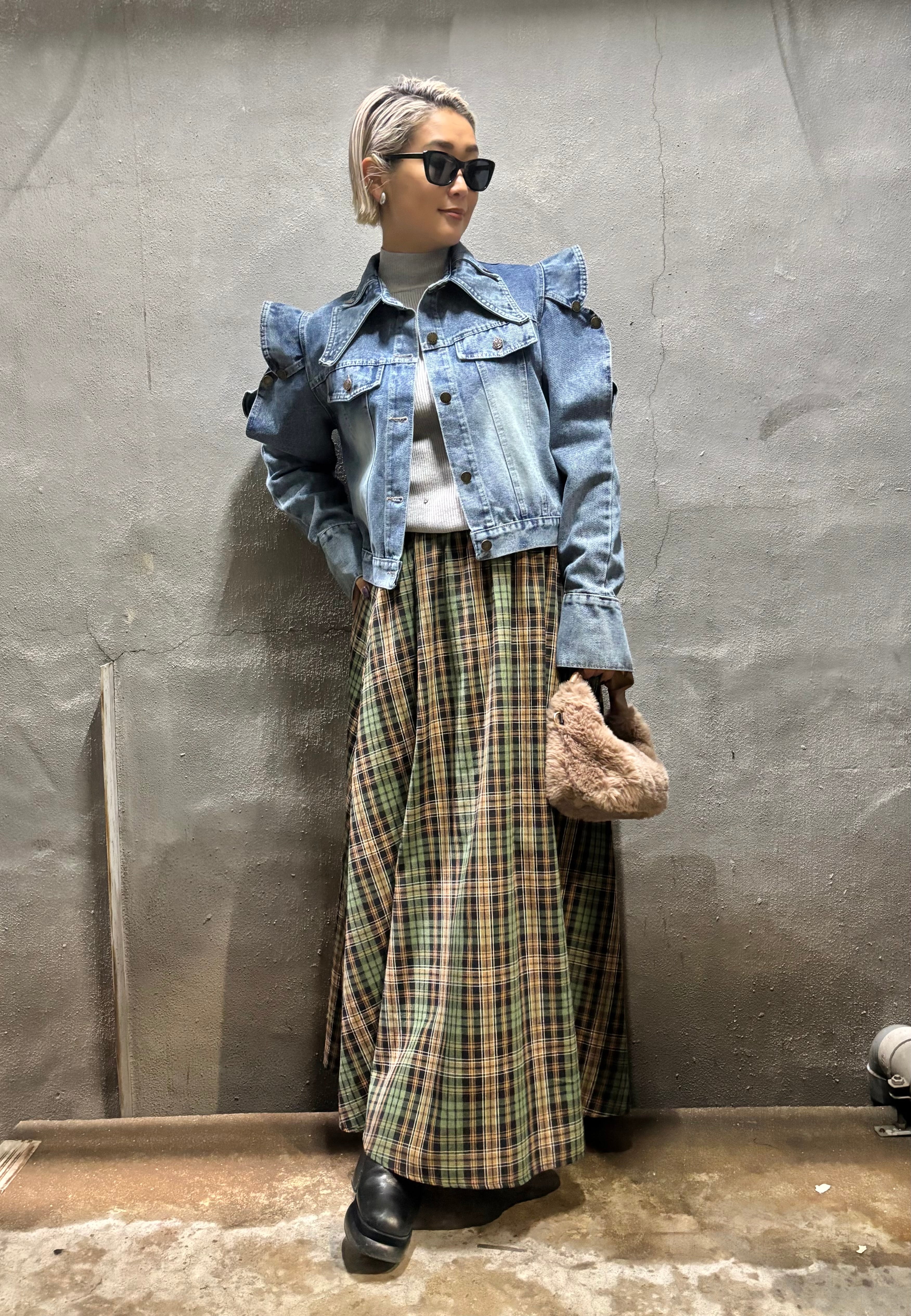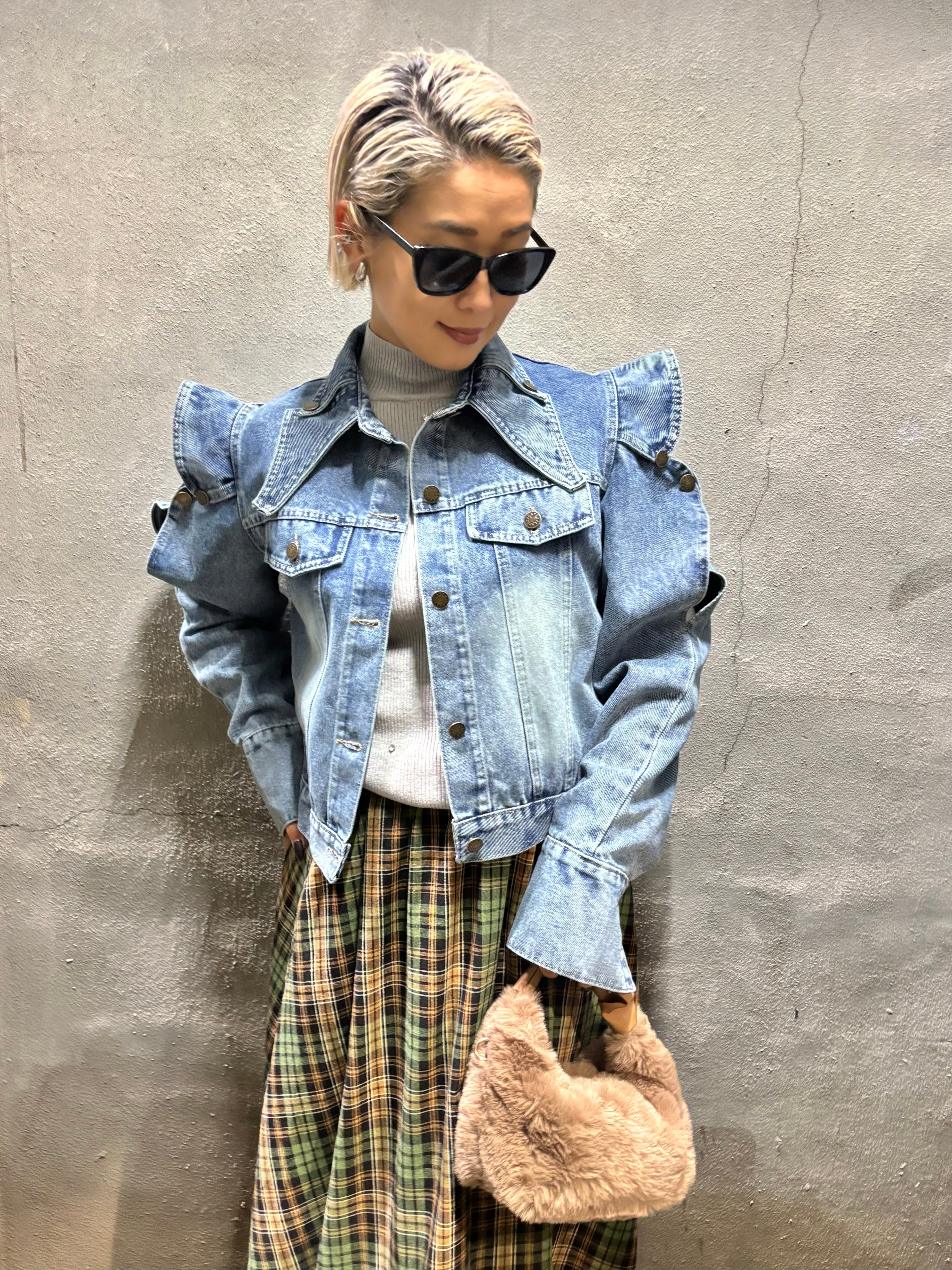 シンプルなトップスやワンピースとの相性も抜群で、さまざまな着こなしが楽しめます。デニム特有のクールな印象をキープしながら、フェミニンな要素を加えることで、何度でも着たくなる一着です。