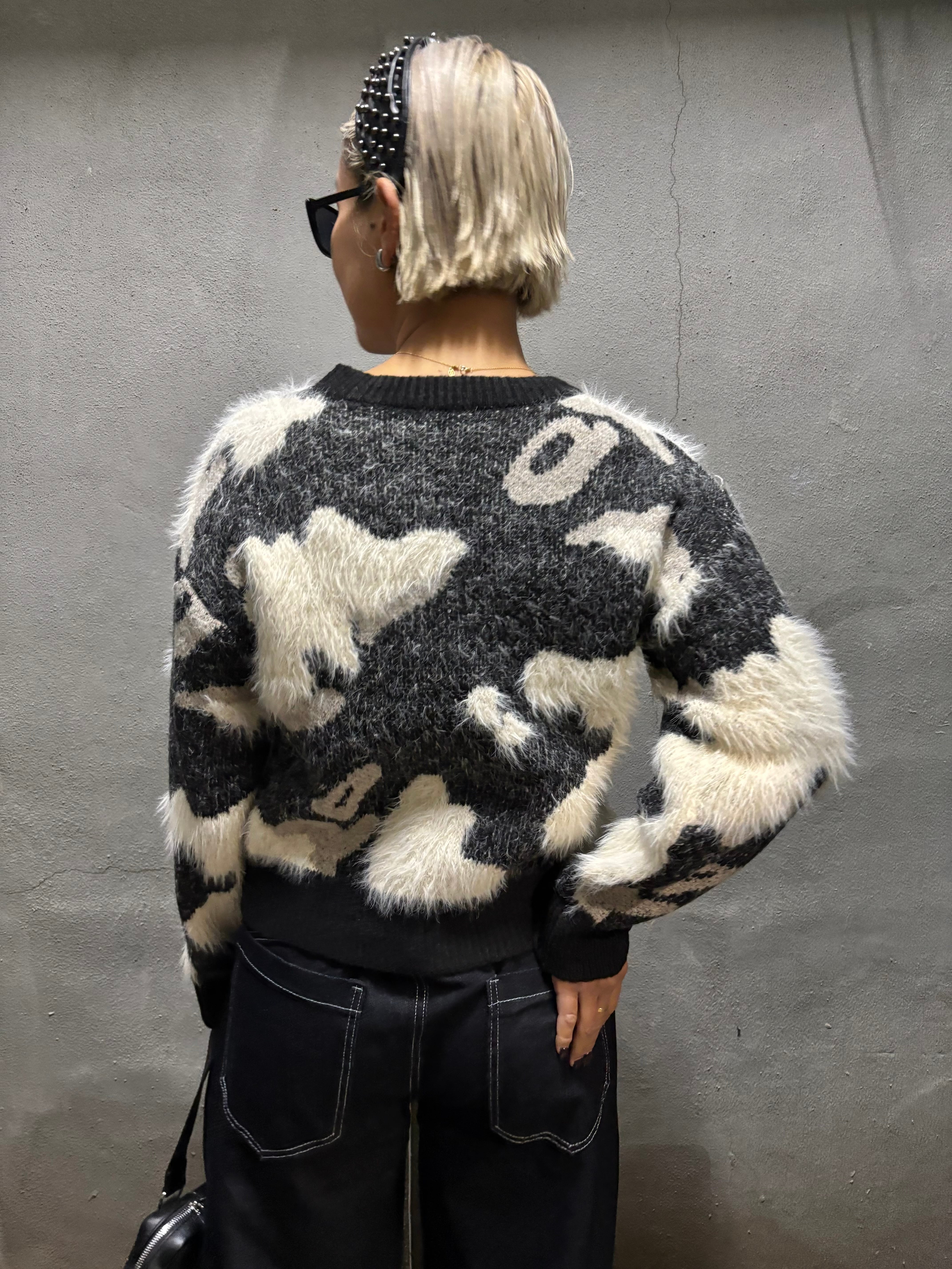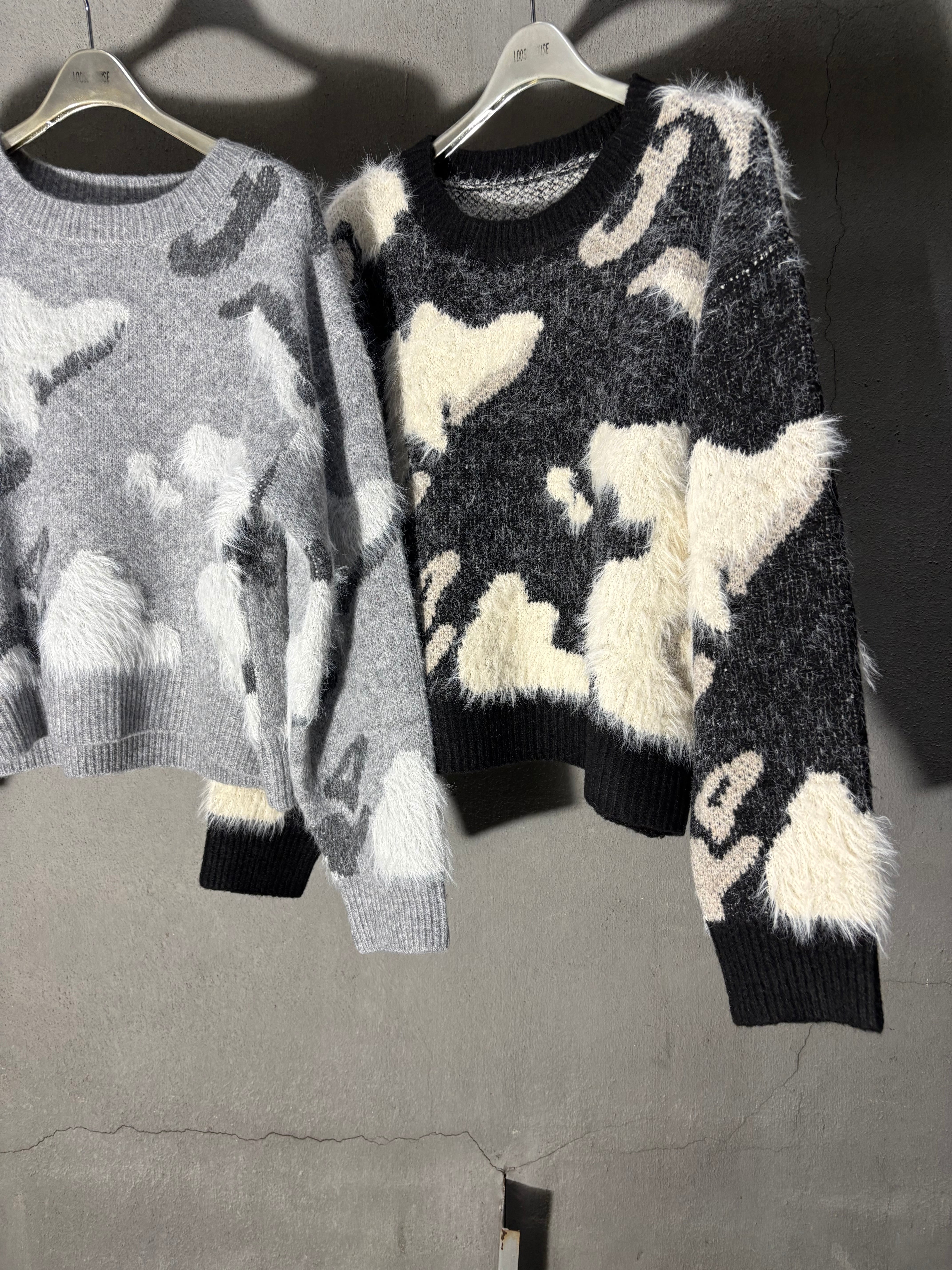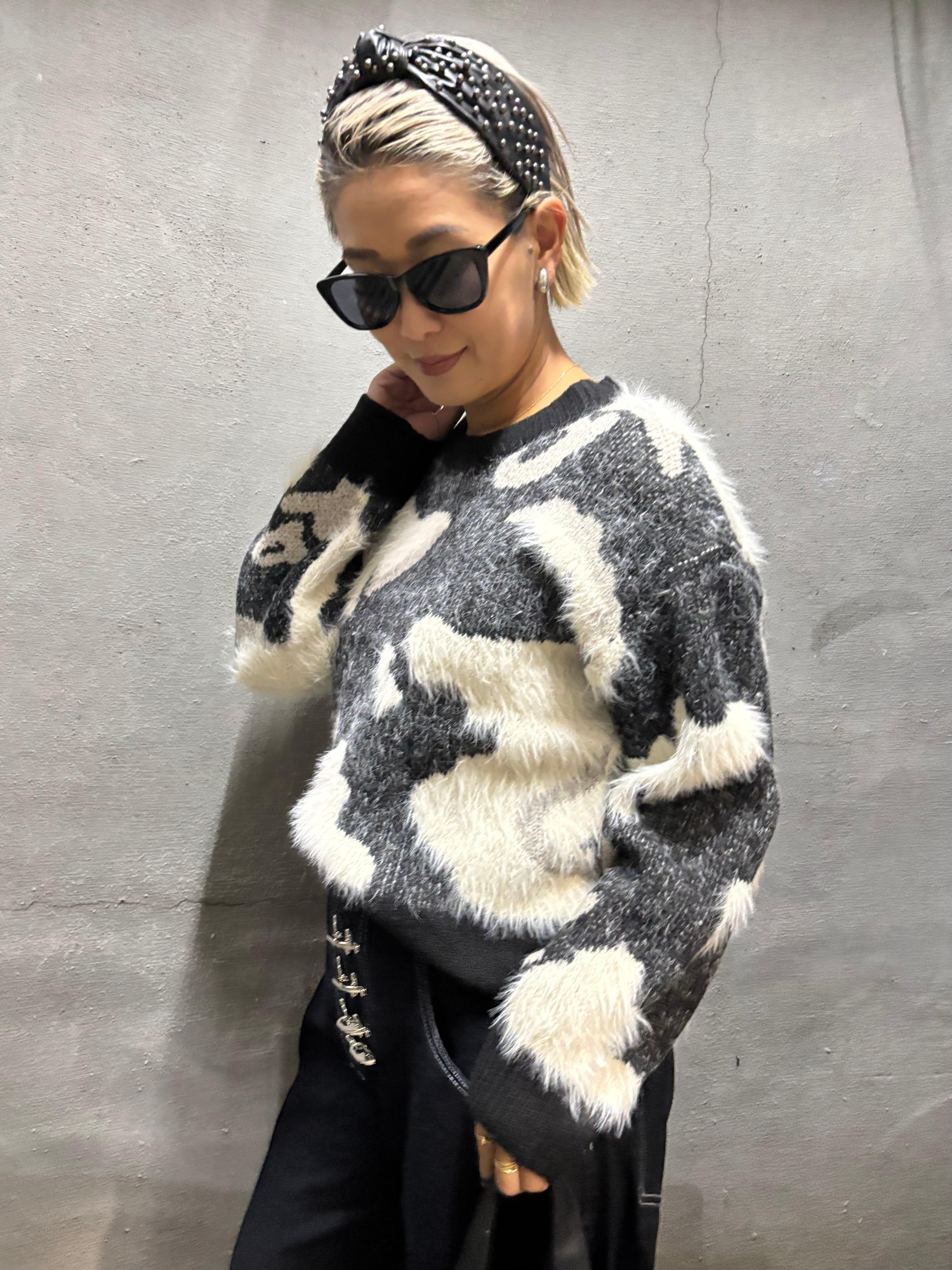 shaggy jacquard knit tops sweater ニット トップス セーター 模様編 シャギー