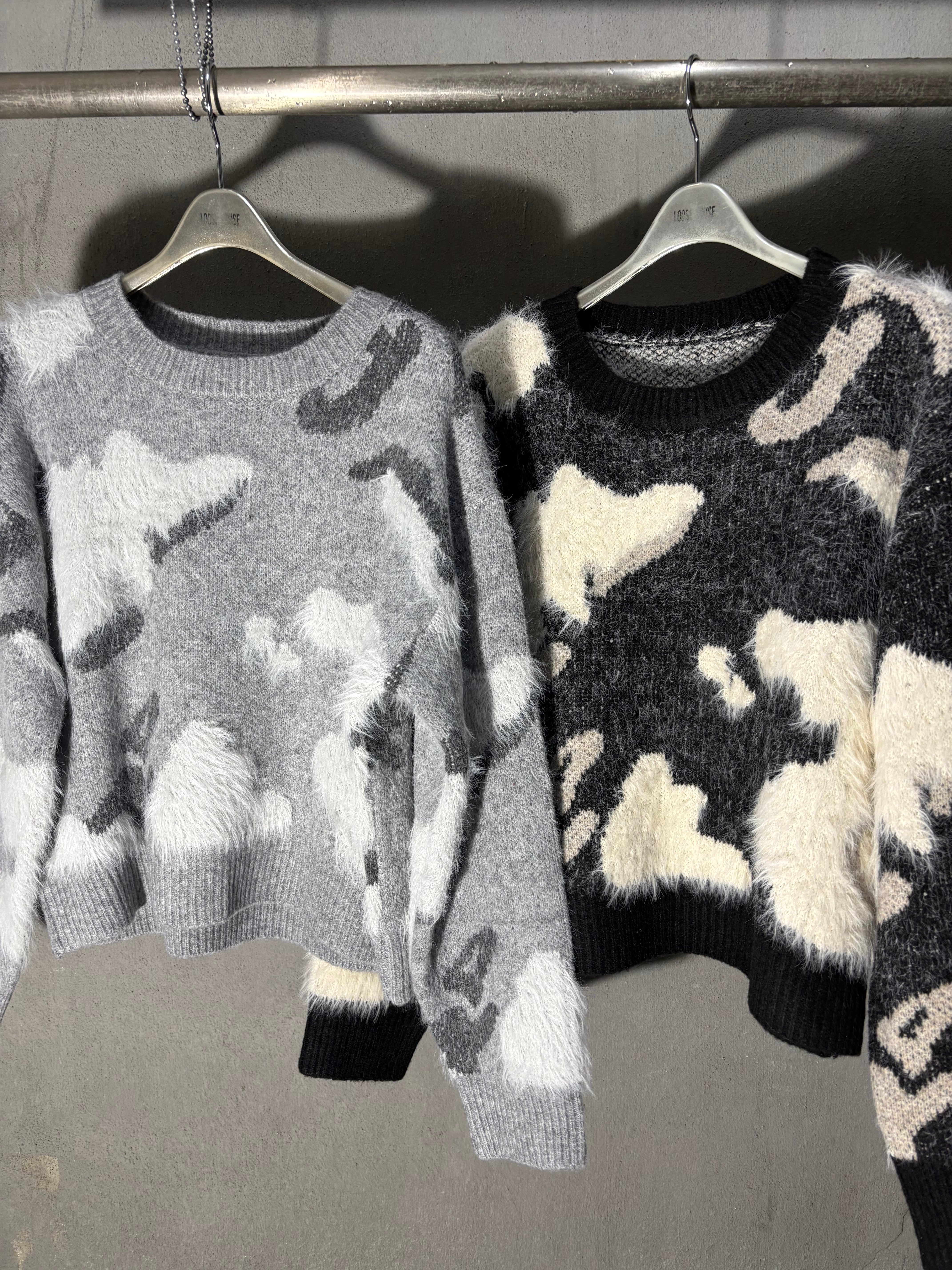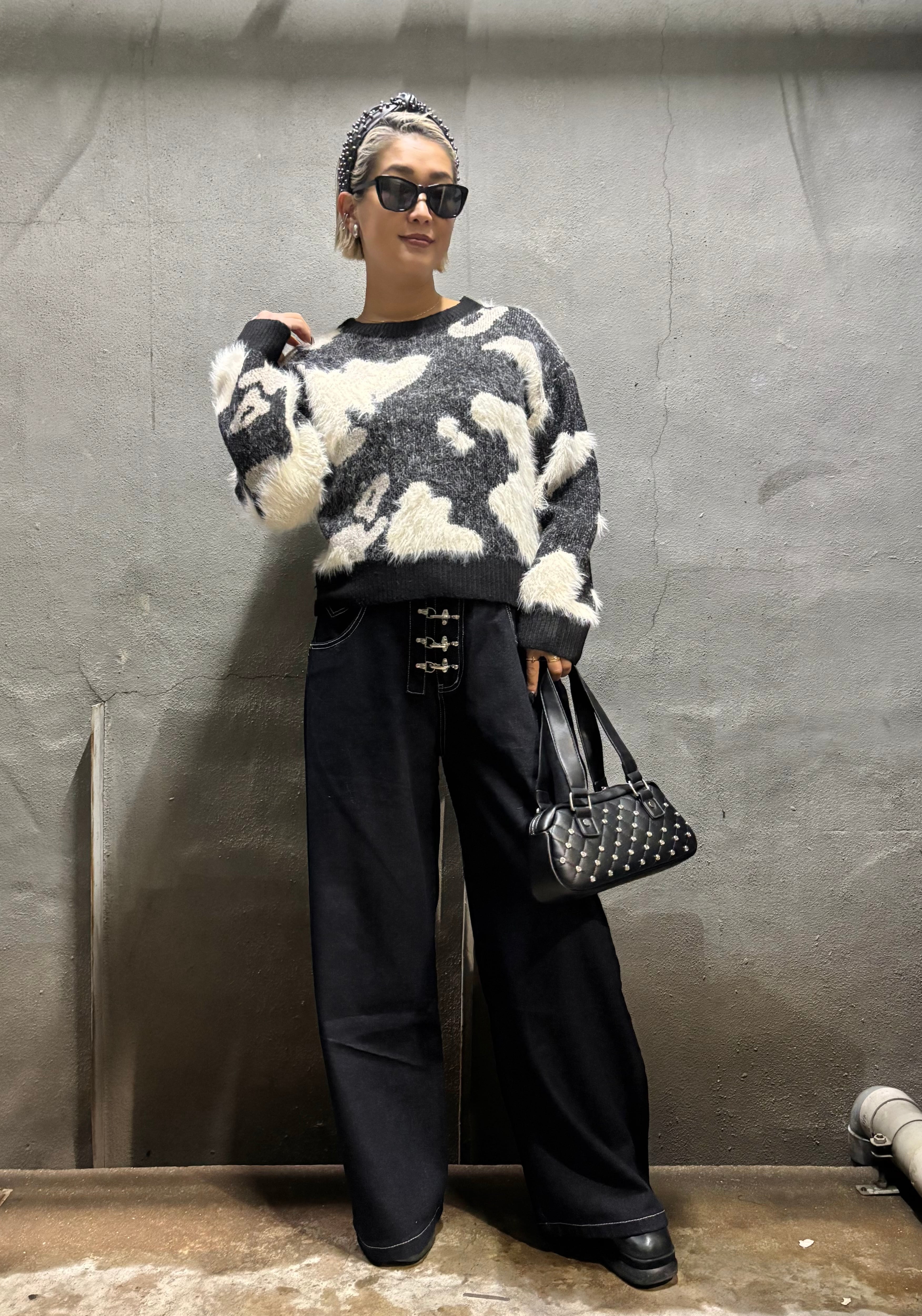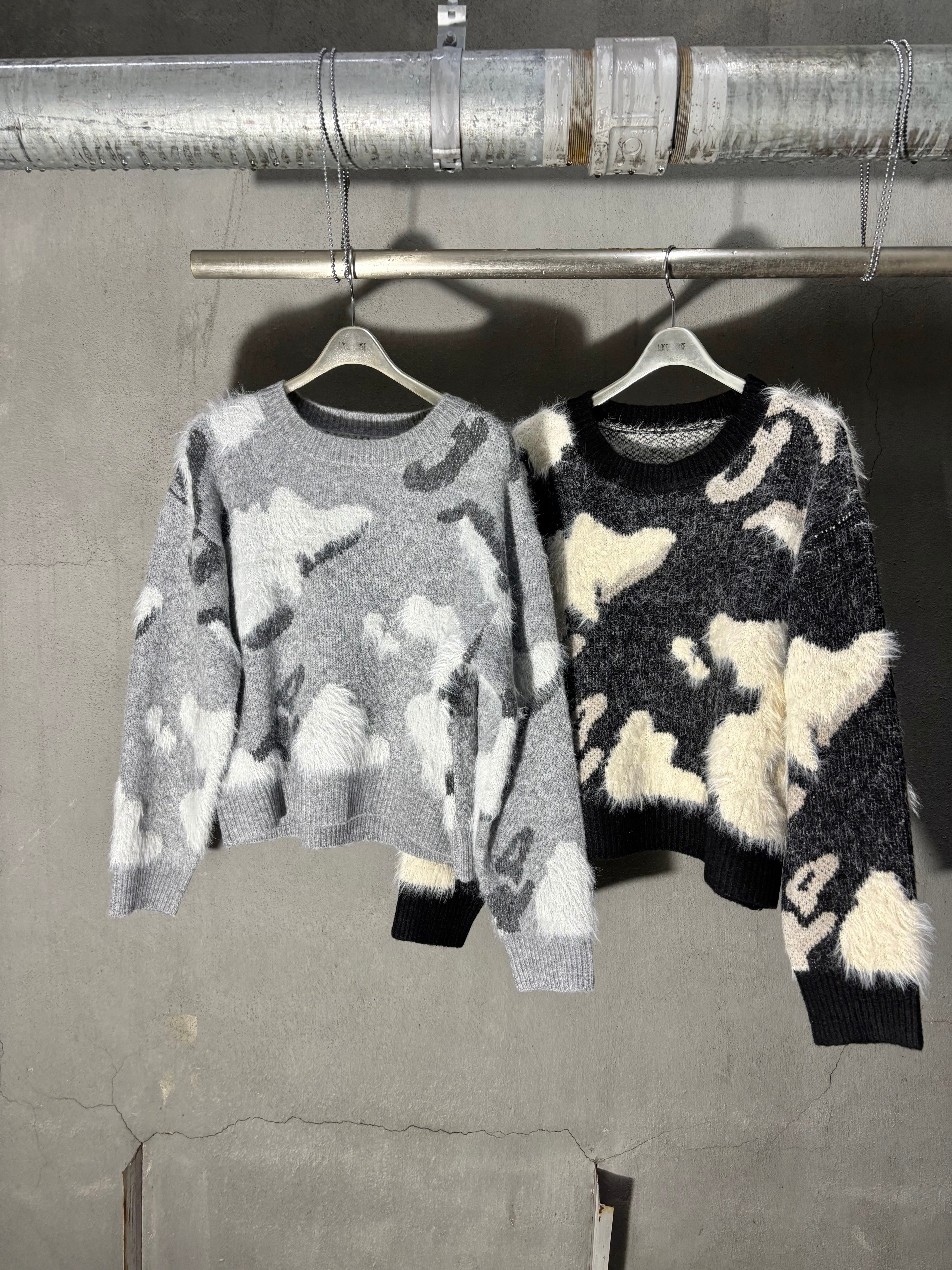 shaggy jacquard knit tops sweater ニット トップス セーター 模様編 シャギー