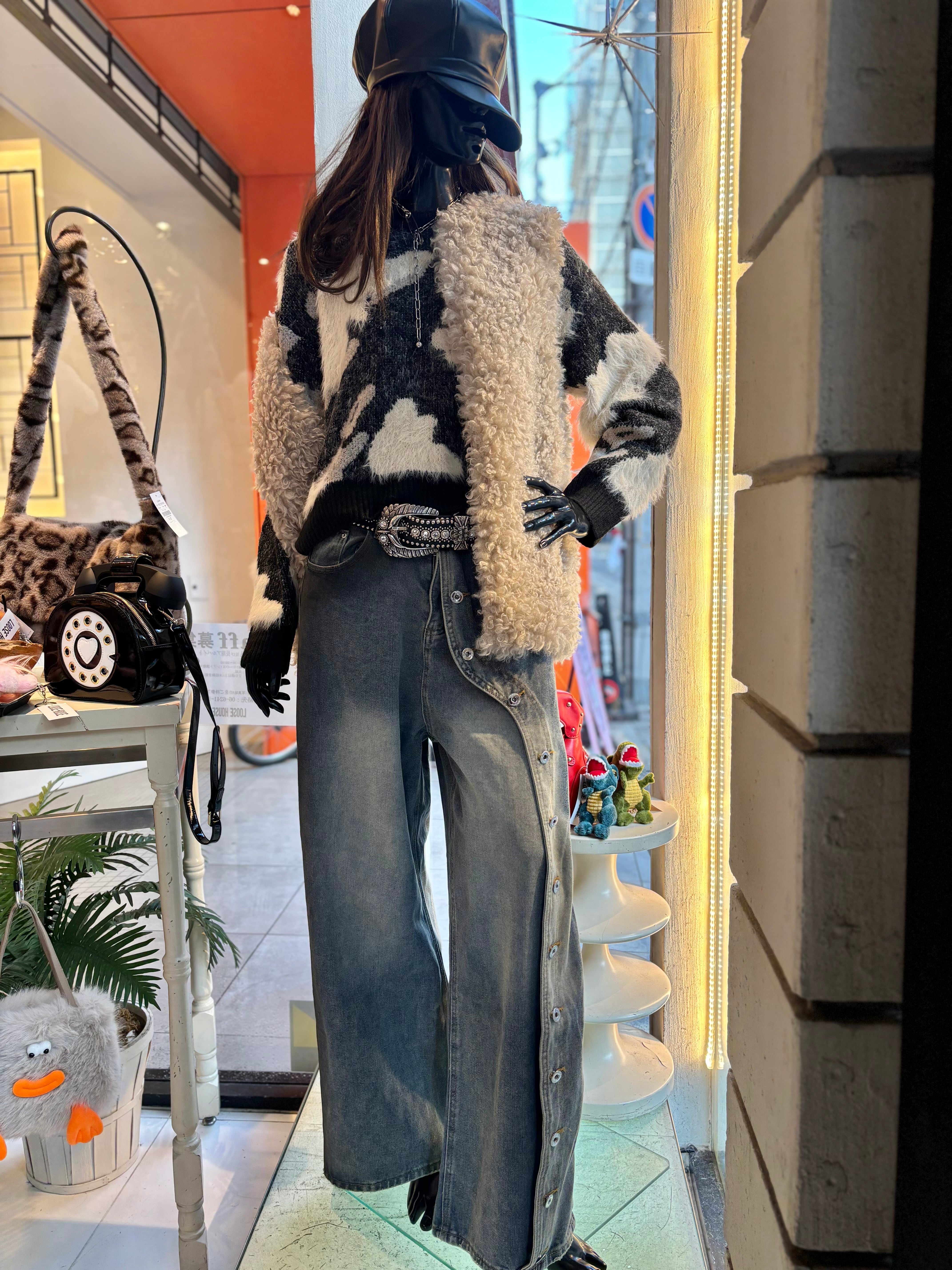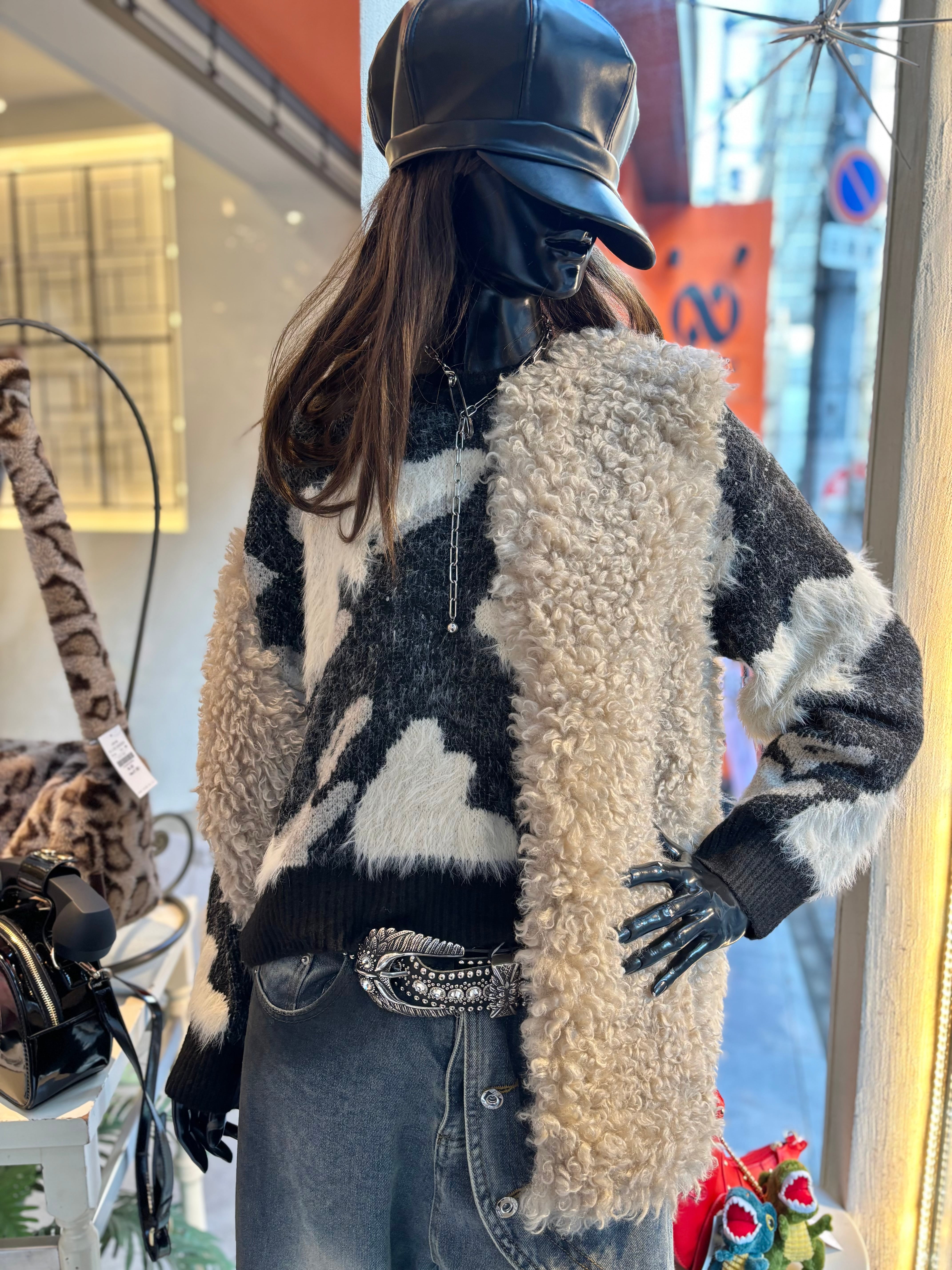ふわふわのシャギーと模様編みが絶妙に組み合わさったデザインが、あなたのスタイルを一層引き立てるアイテムです。