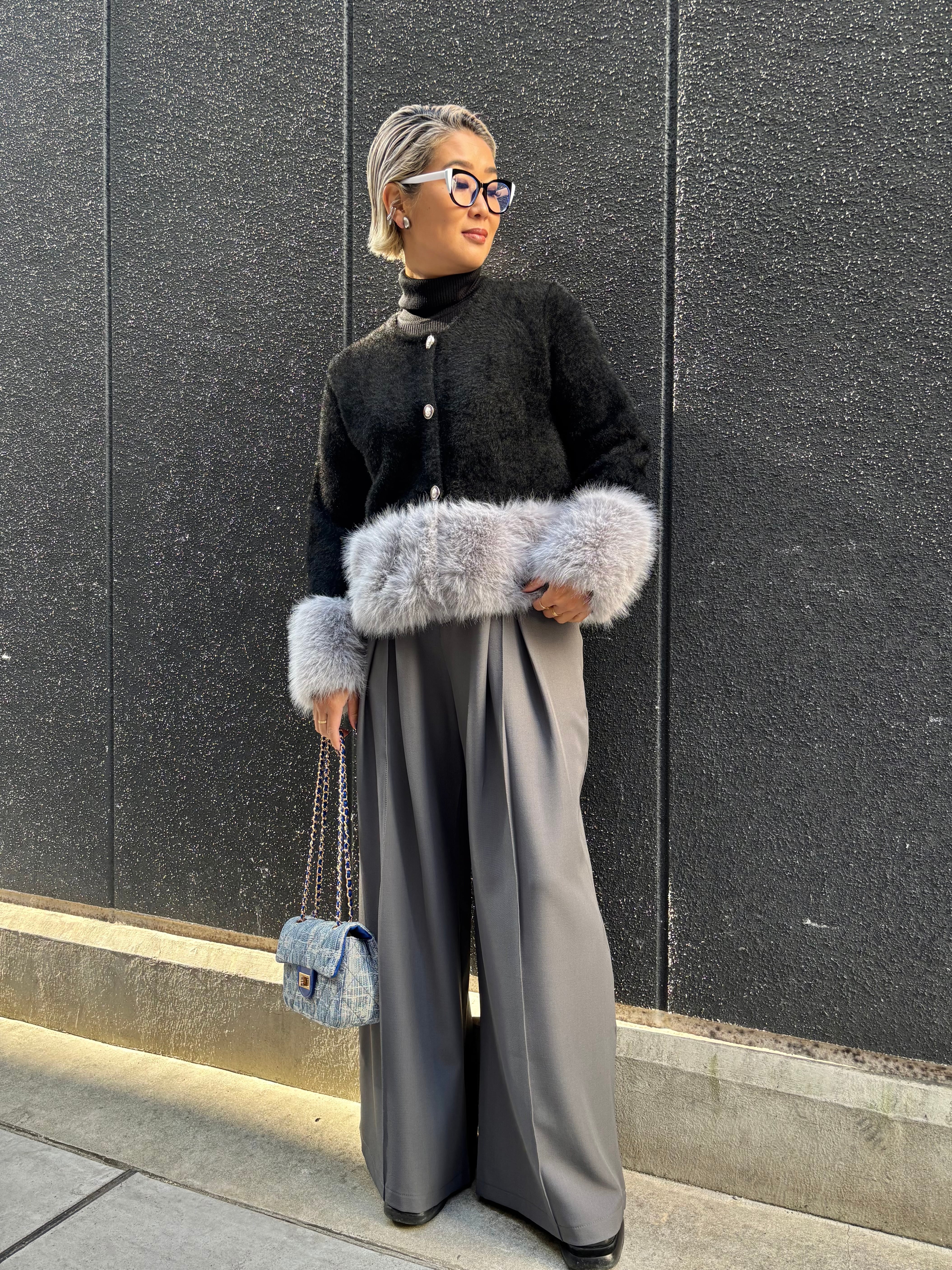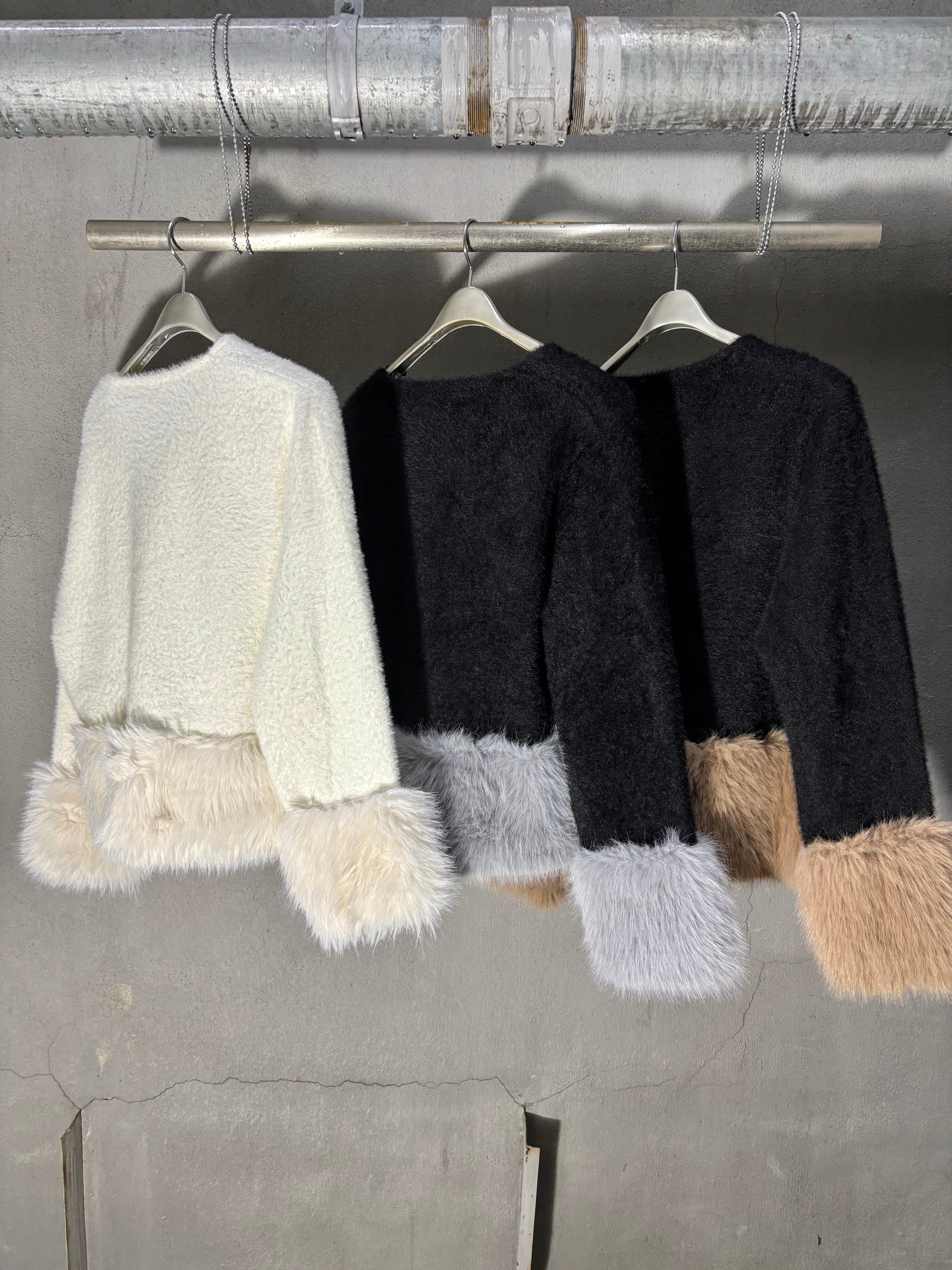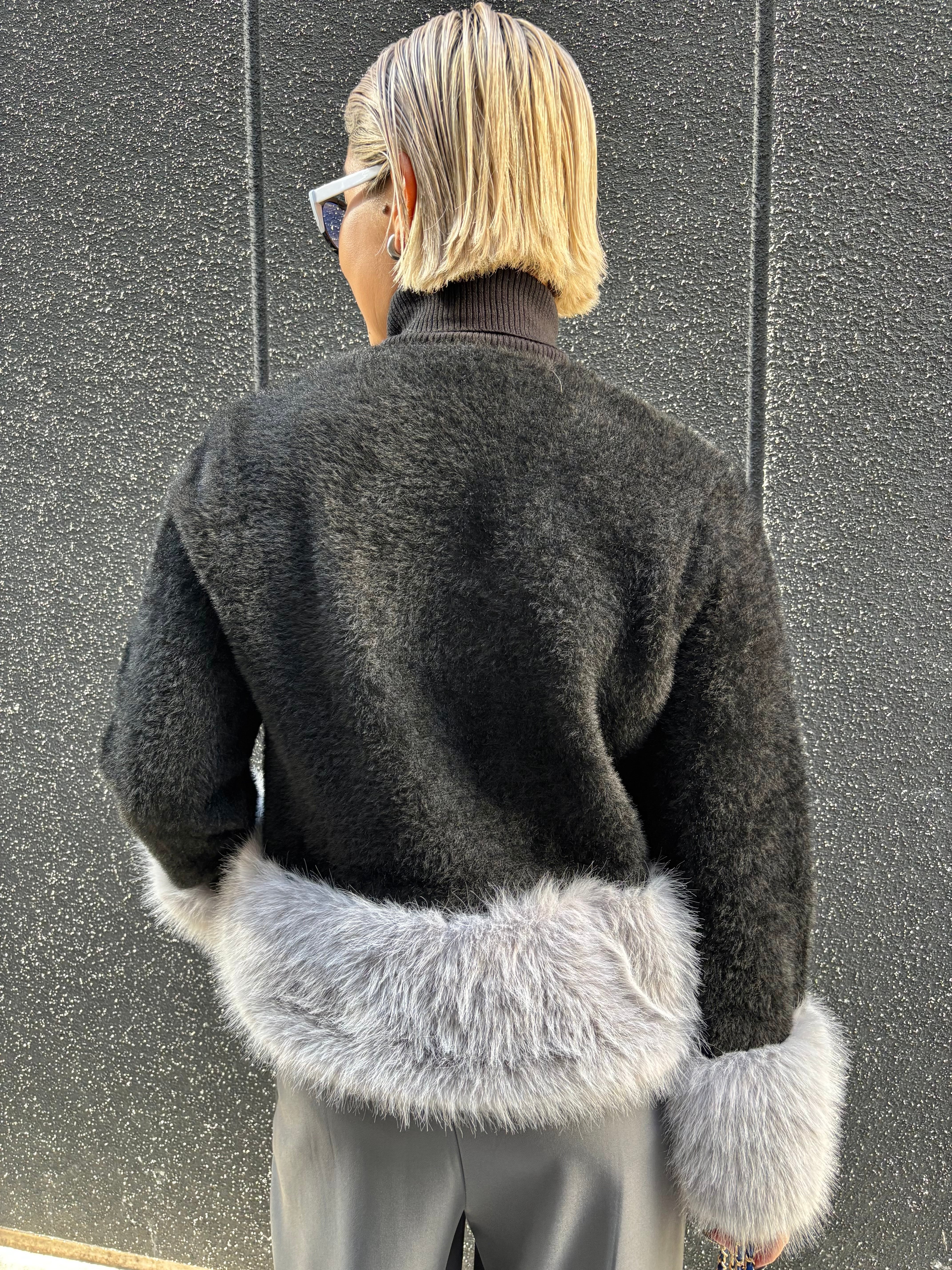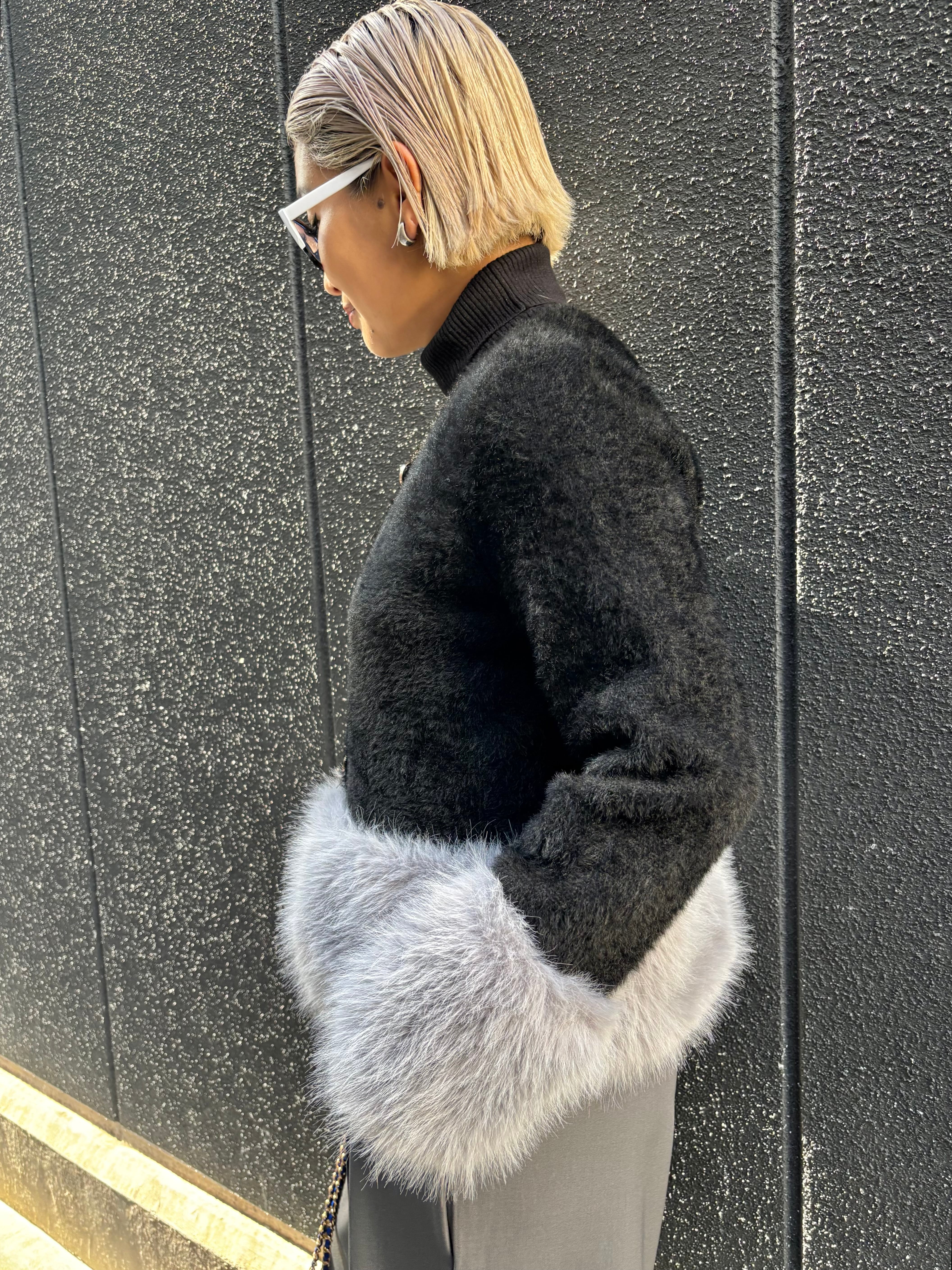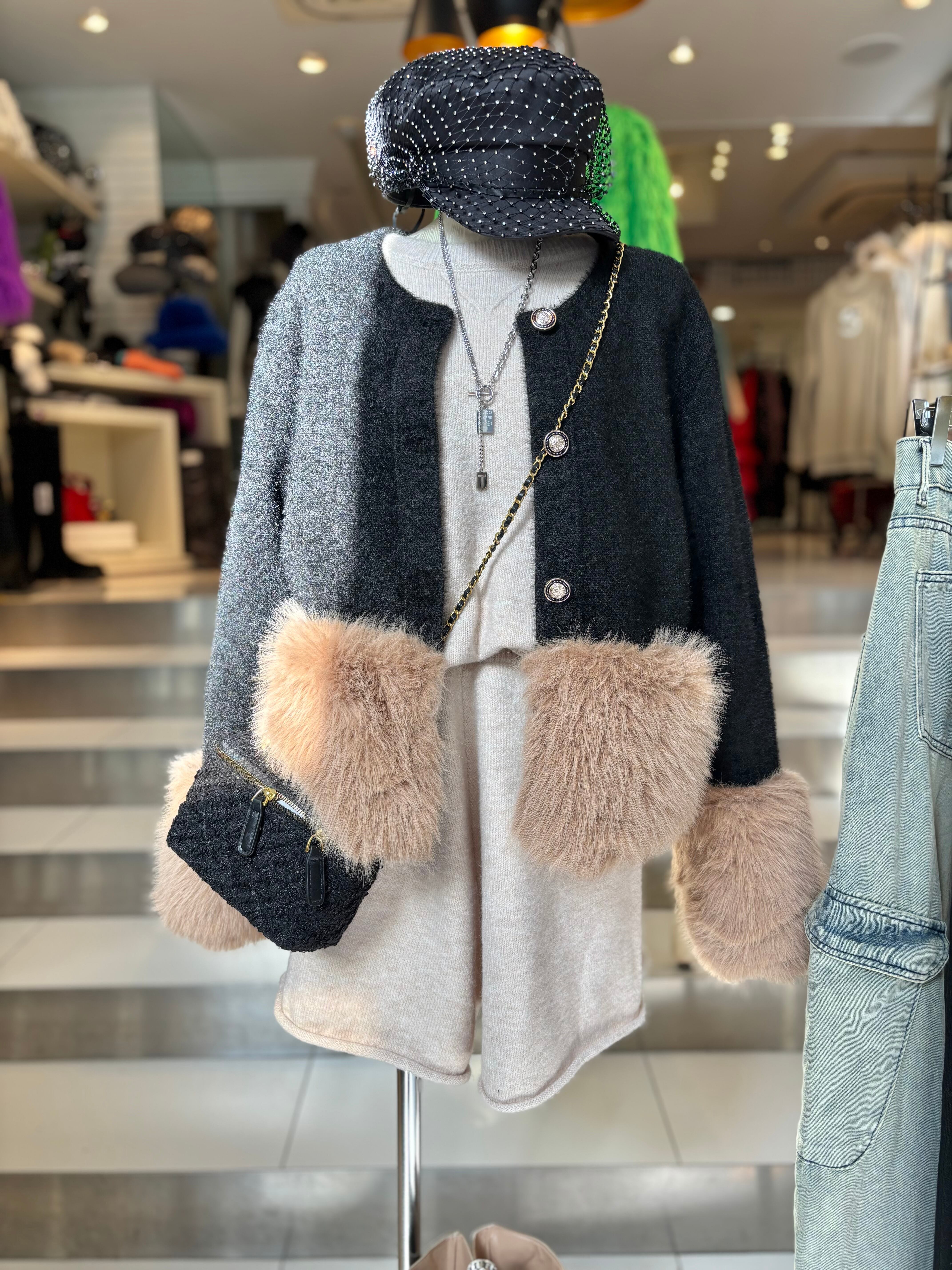柔らかなシャギーニットとふわふわのエコファーを組み合わせたジャケットです。