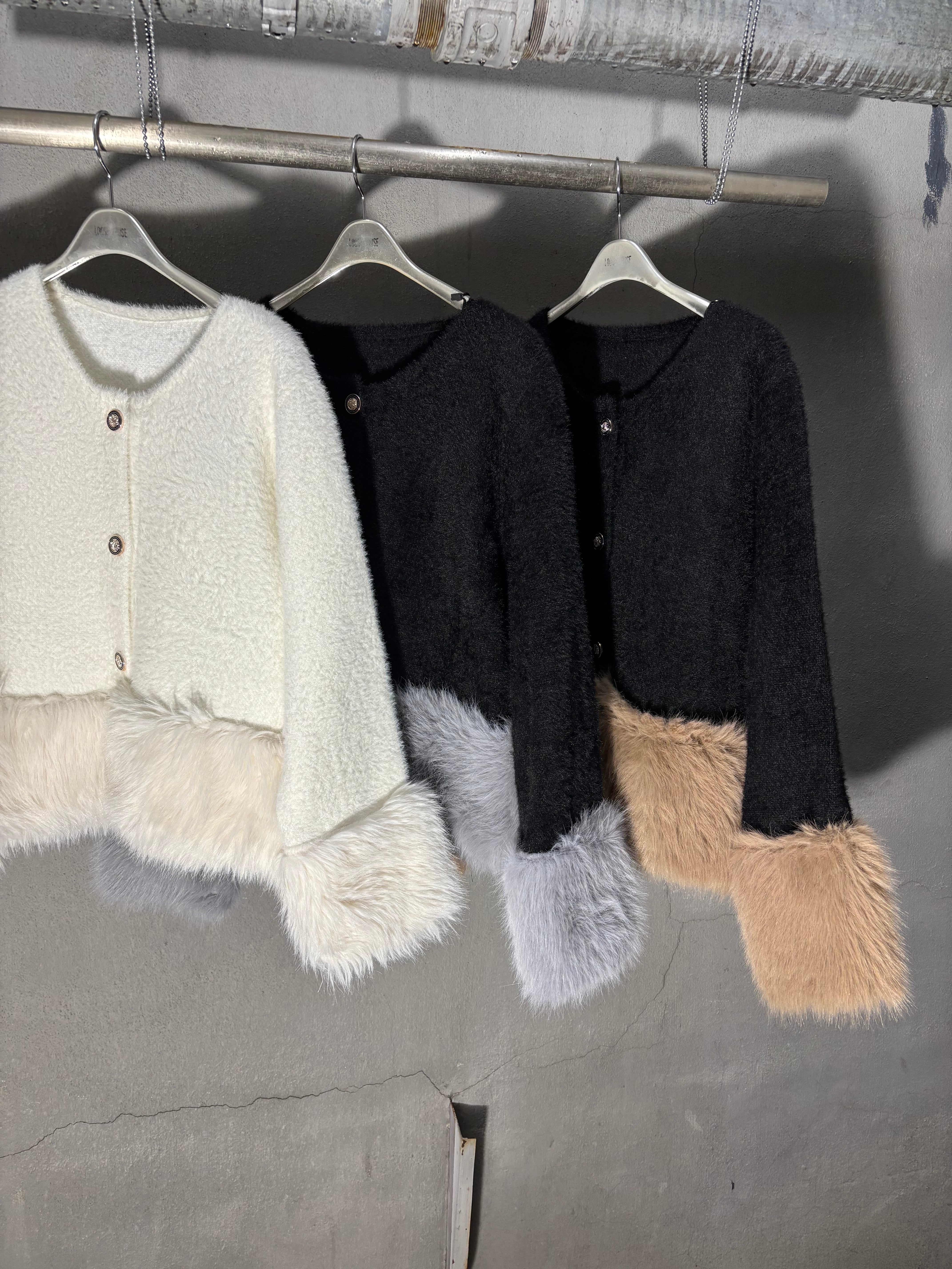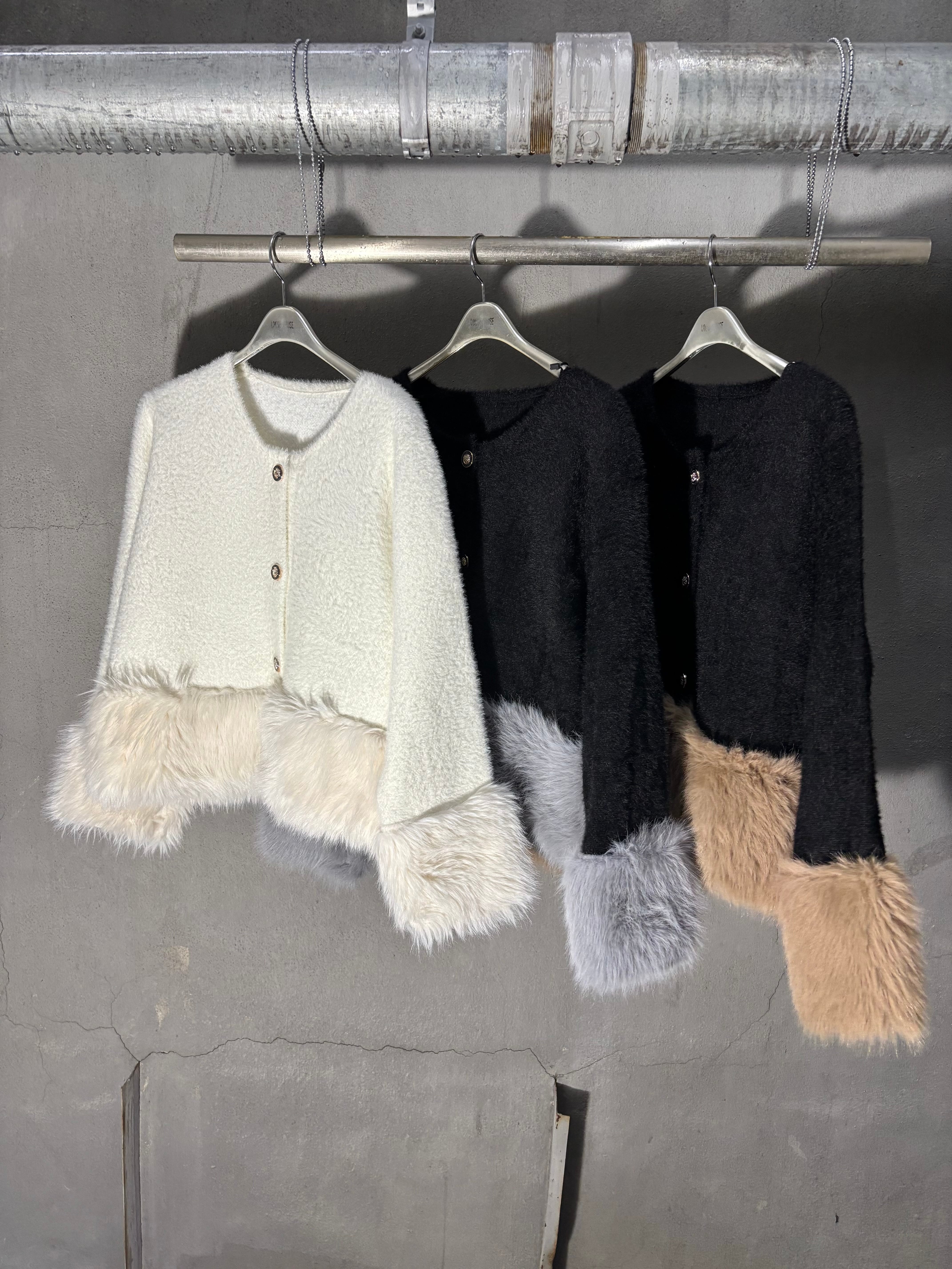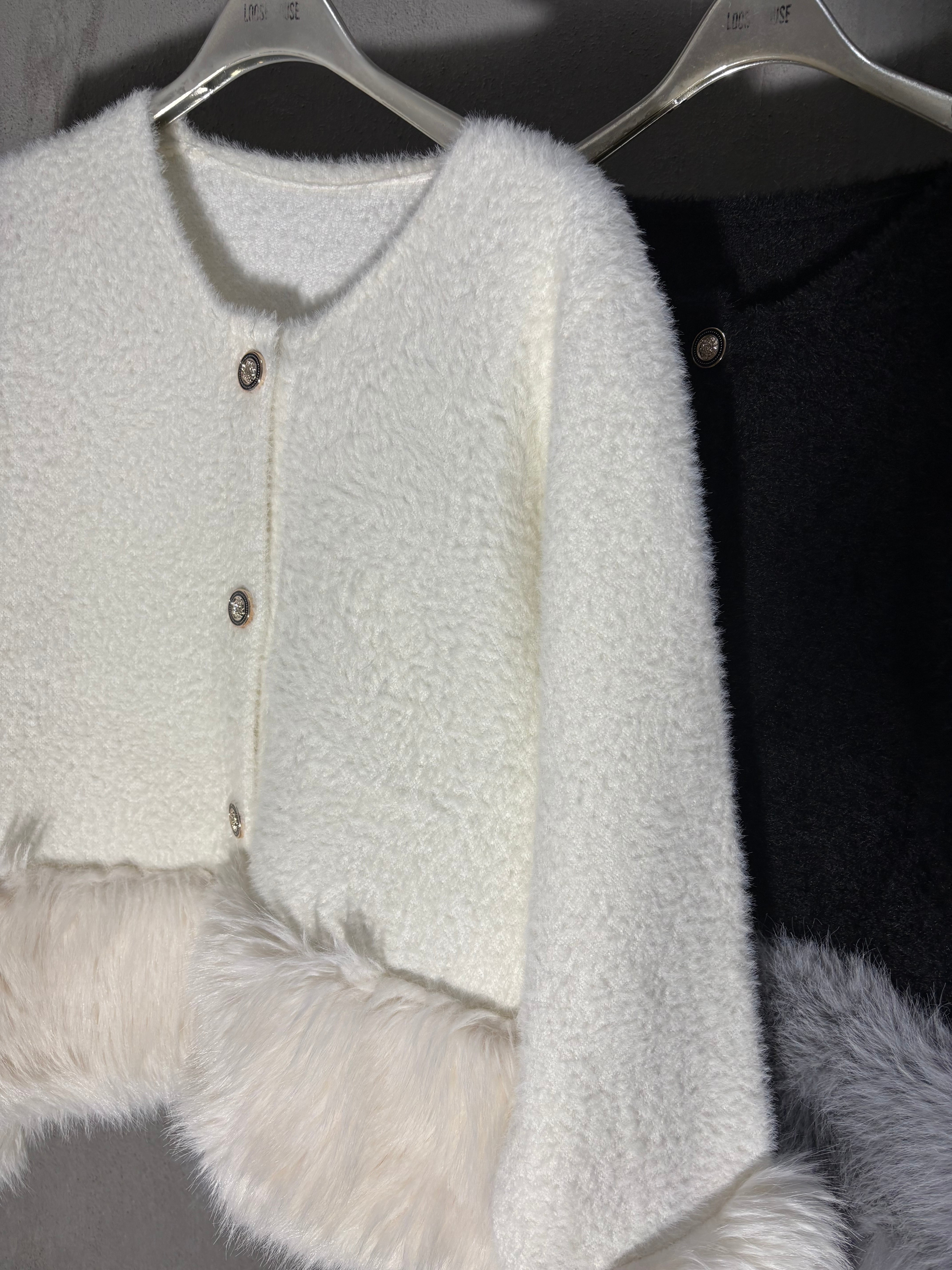 shaggy knit × eco fur change design jacket ジャケット ニット シャギー エコファー ボタン 羽織り