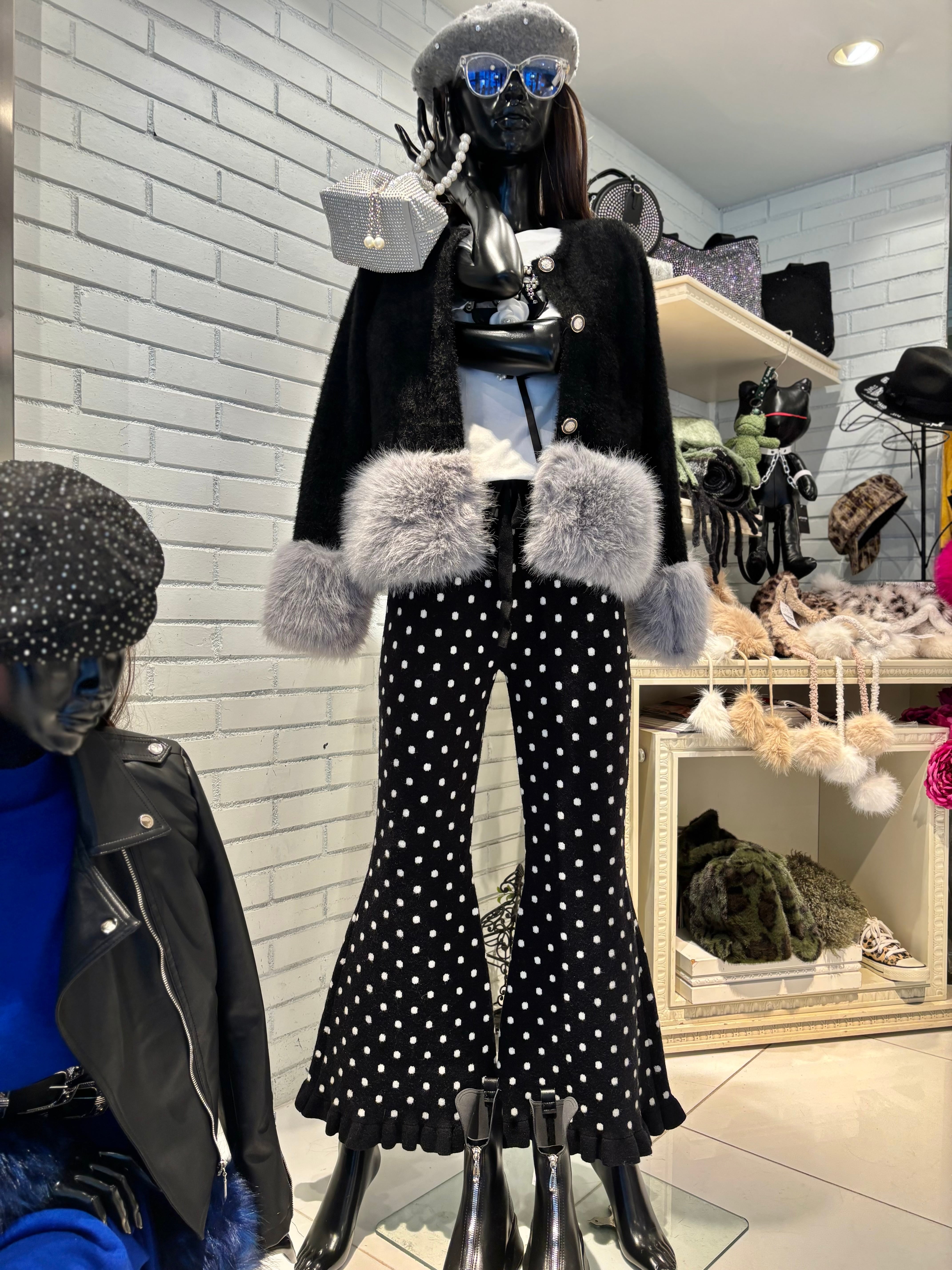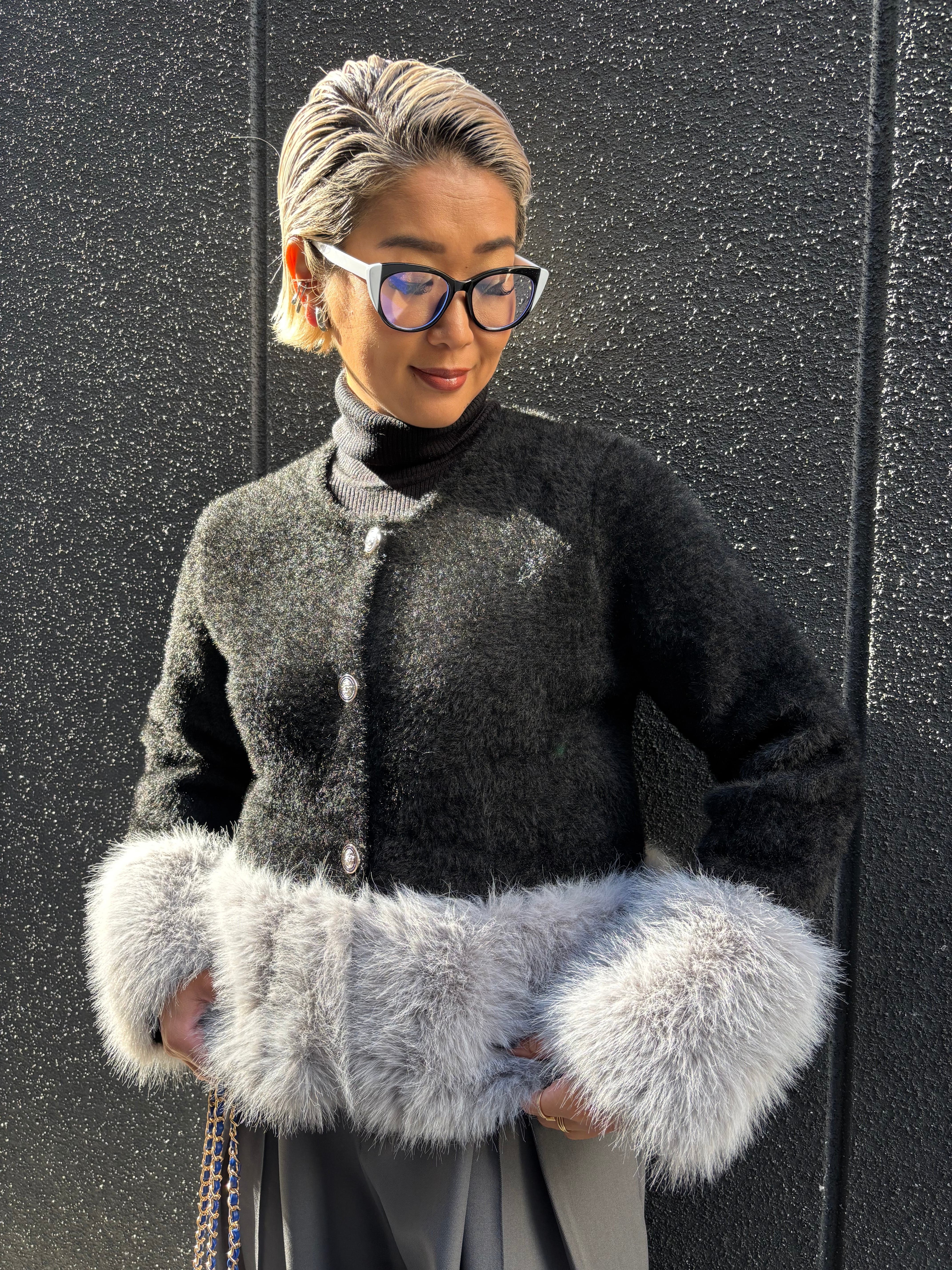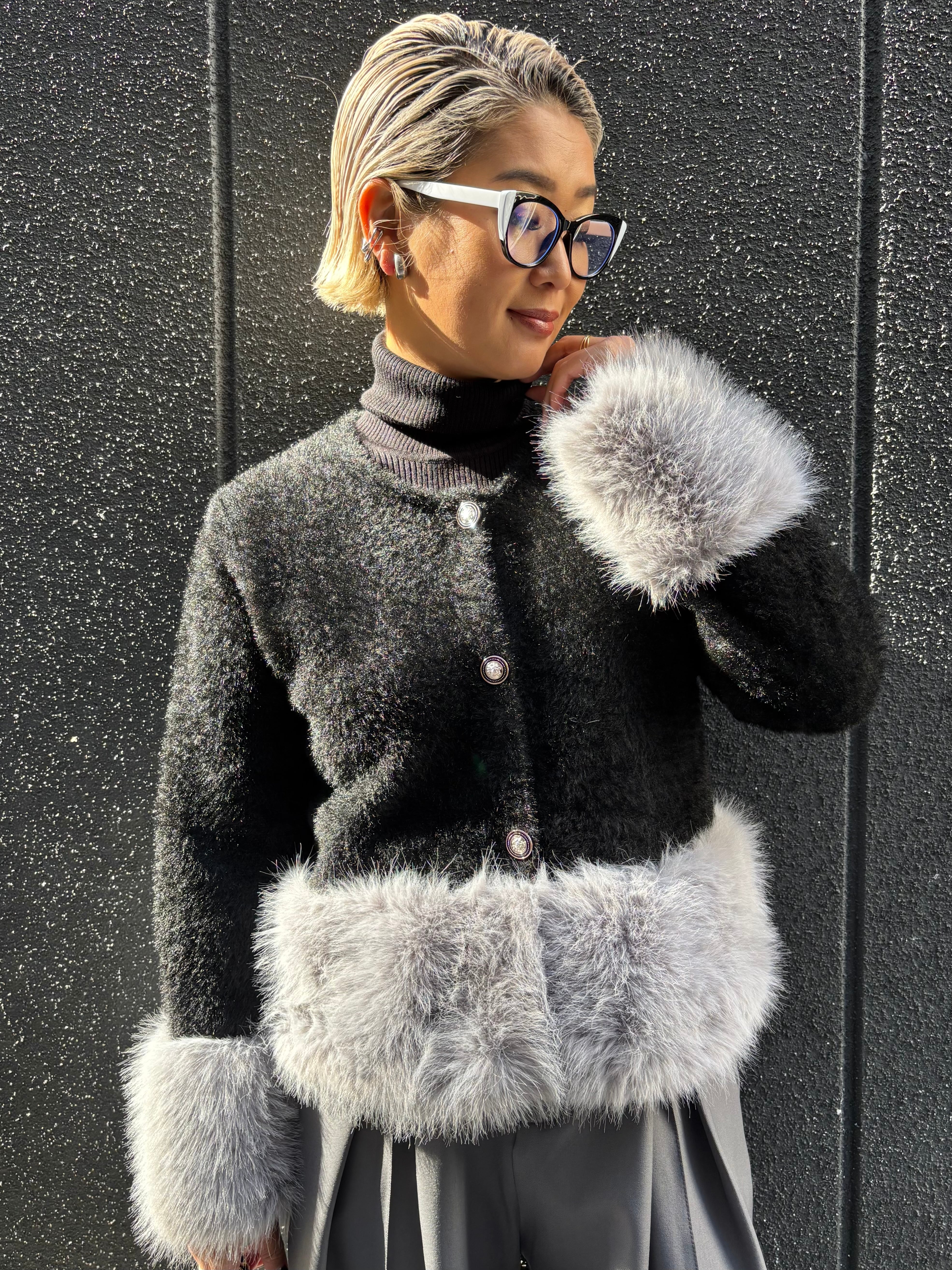 shaggy knit × eco fur change design jacket ジャケット ニット シャギー エコファー ボタン 羽織り