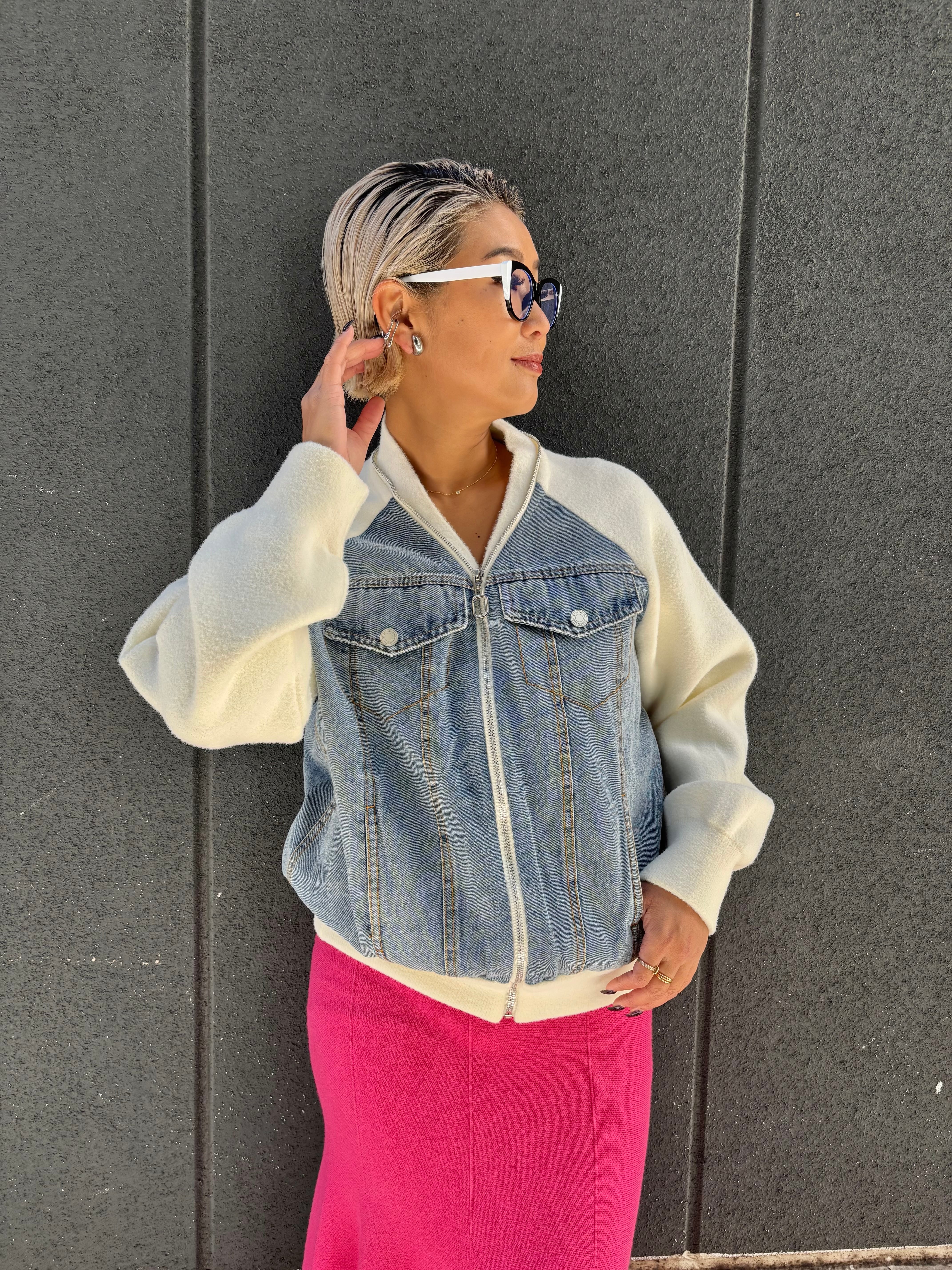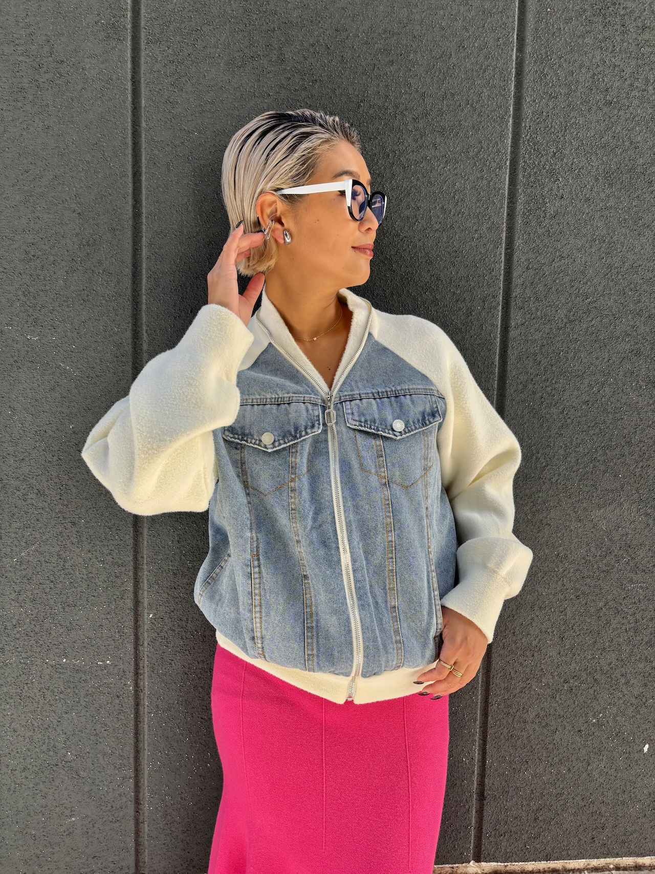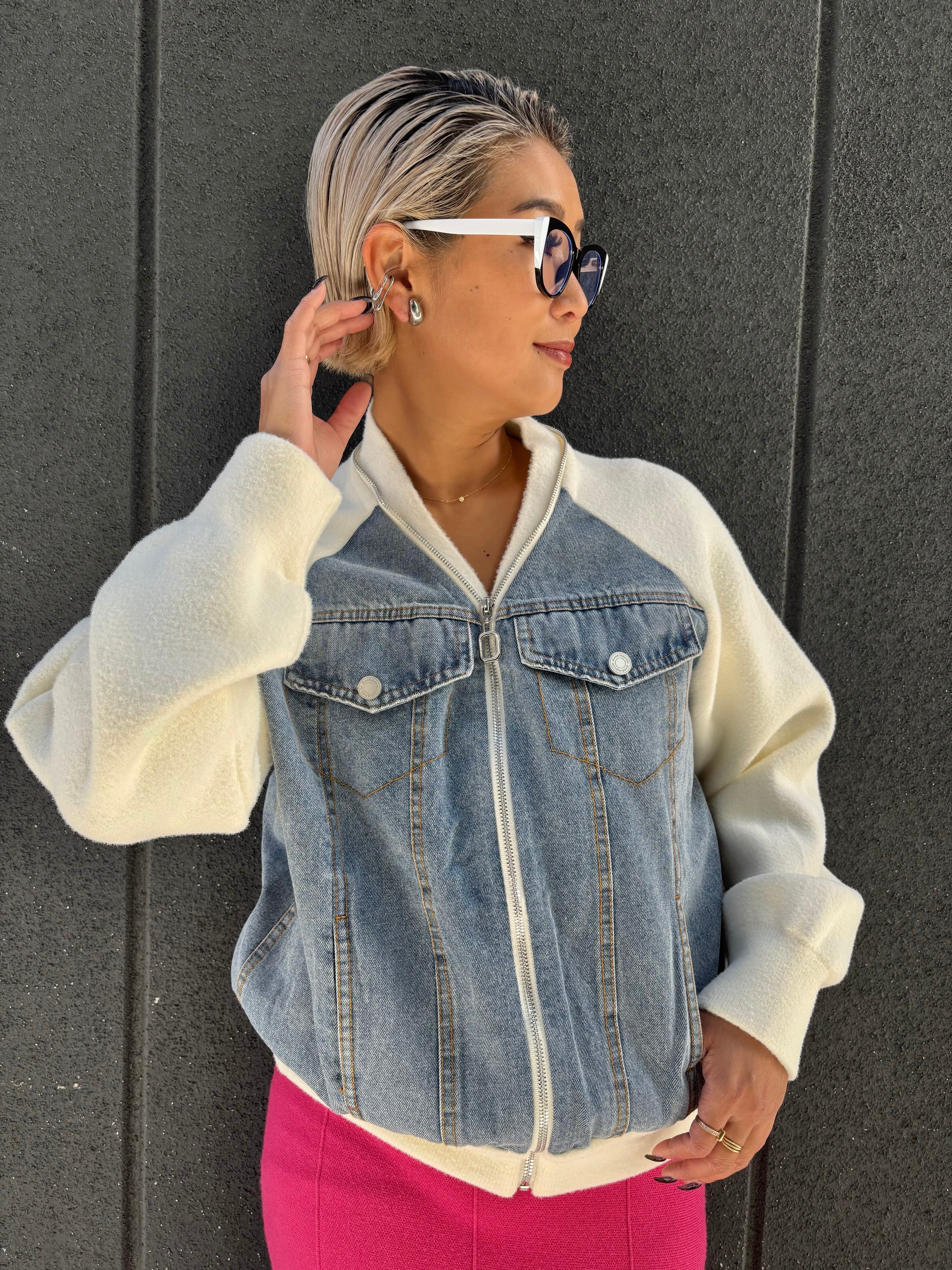 大人のカジュアルスタイルにぴったりなデニムとニットの切り替えデザイン・アウターが登場しました!