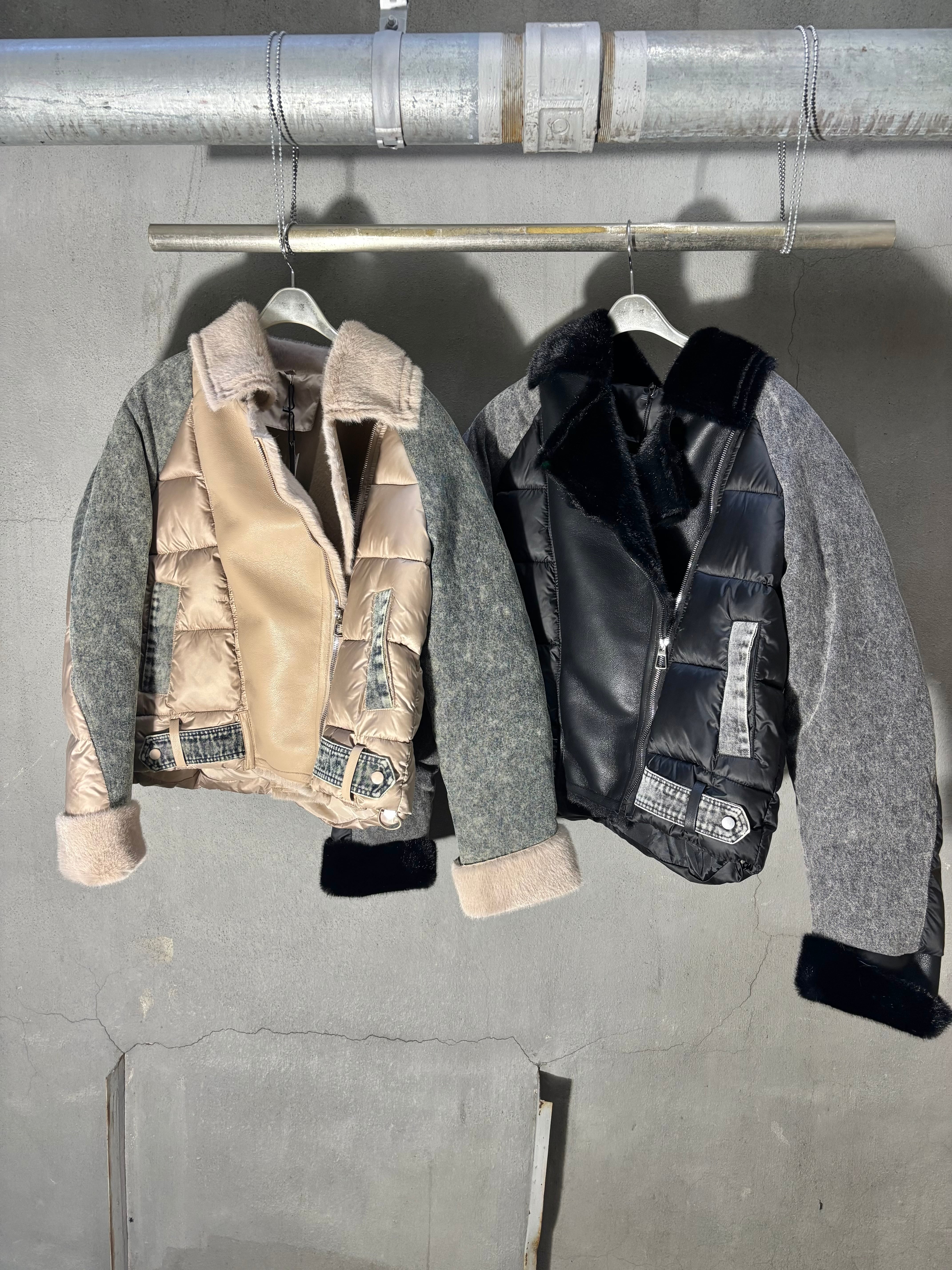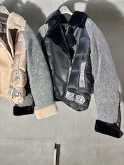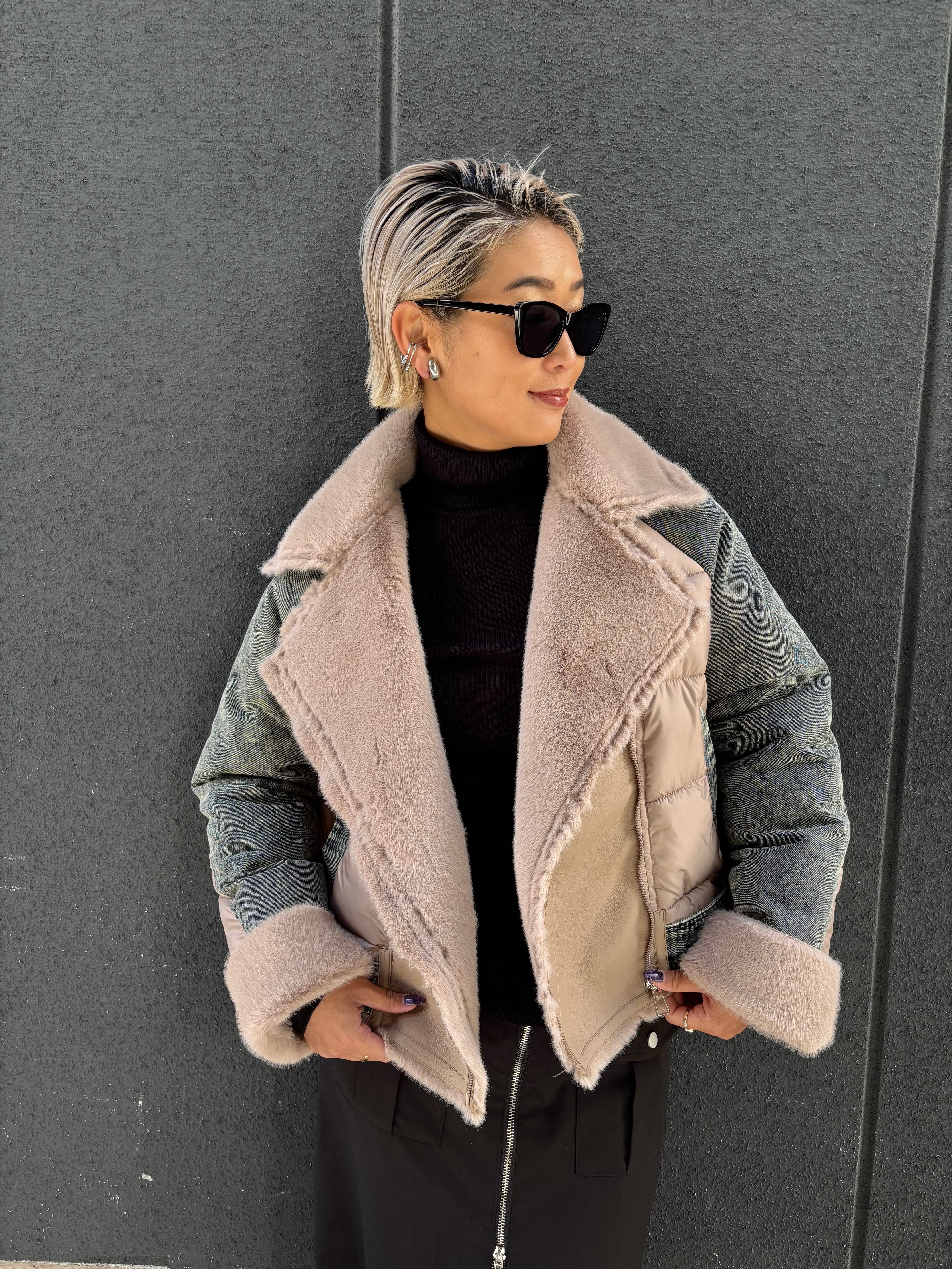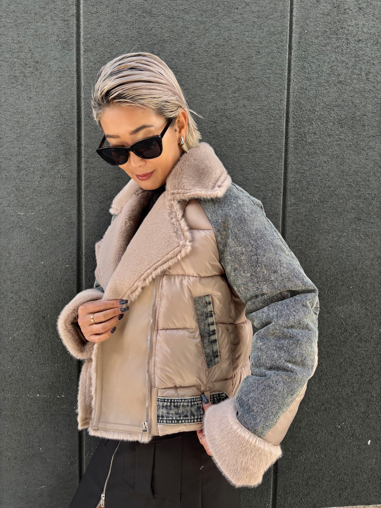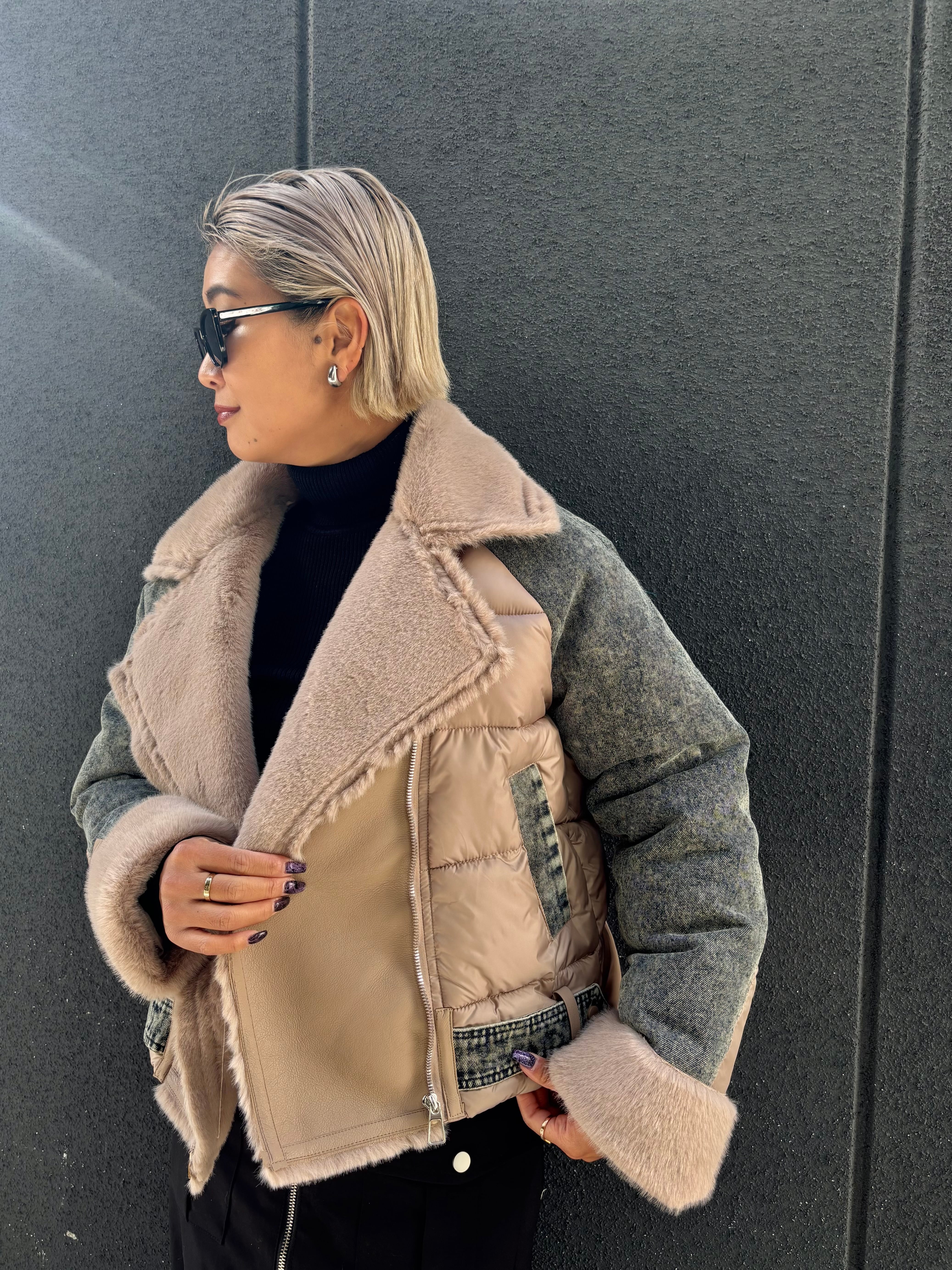 different fabrics mix design padded jacket ジャケット アウター 中綿 ニット エコレザー エコファー 異素材切替