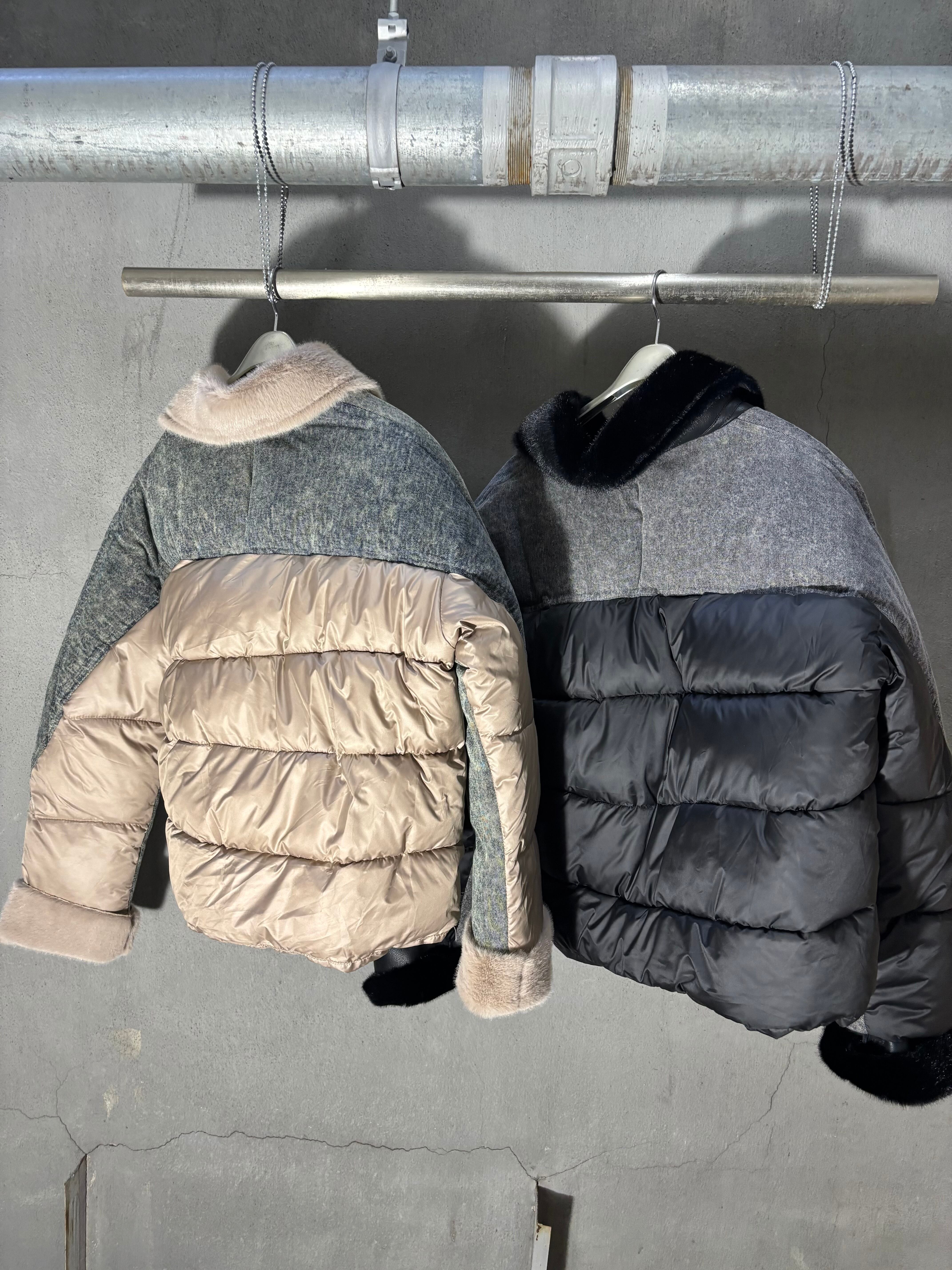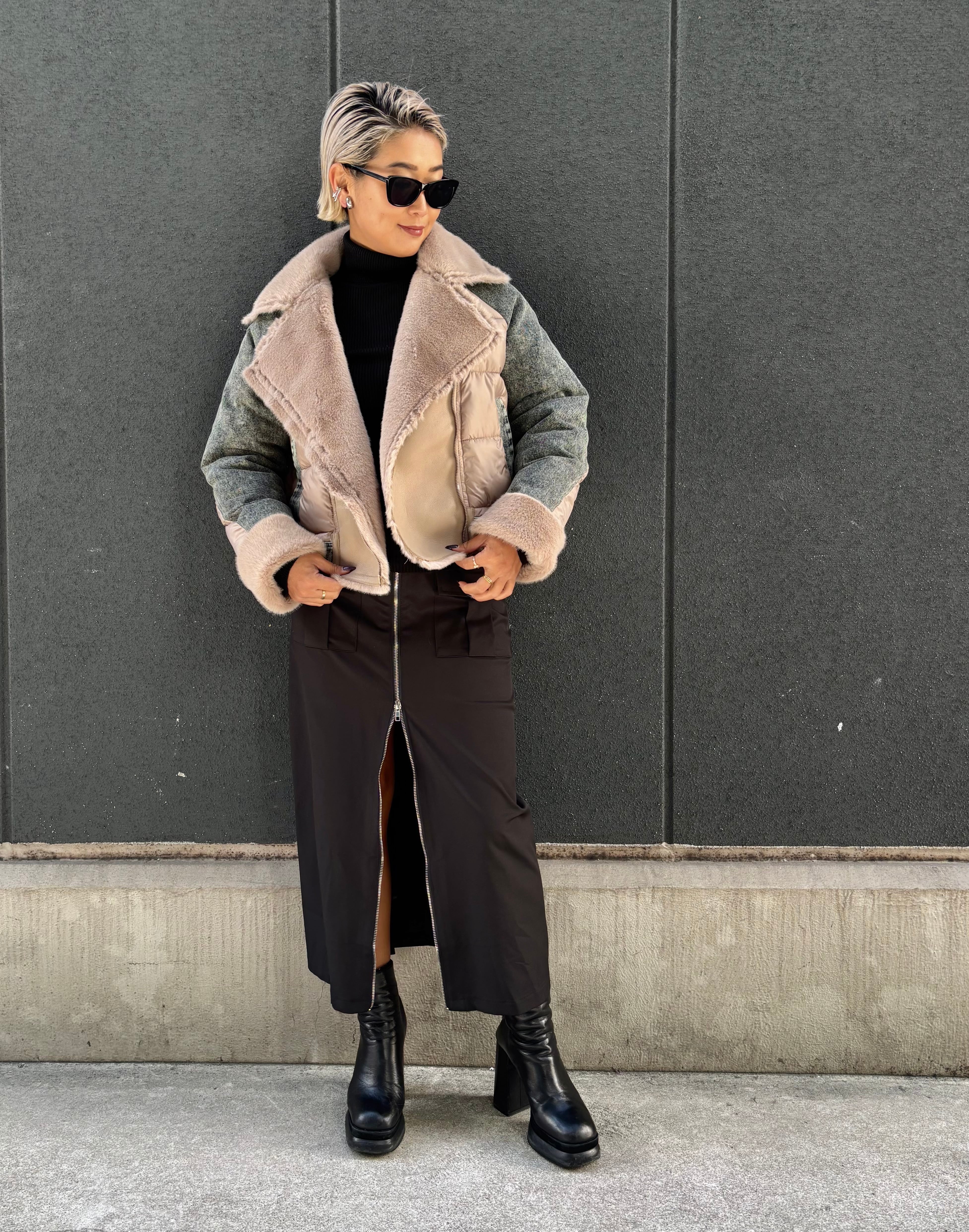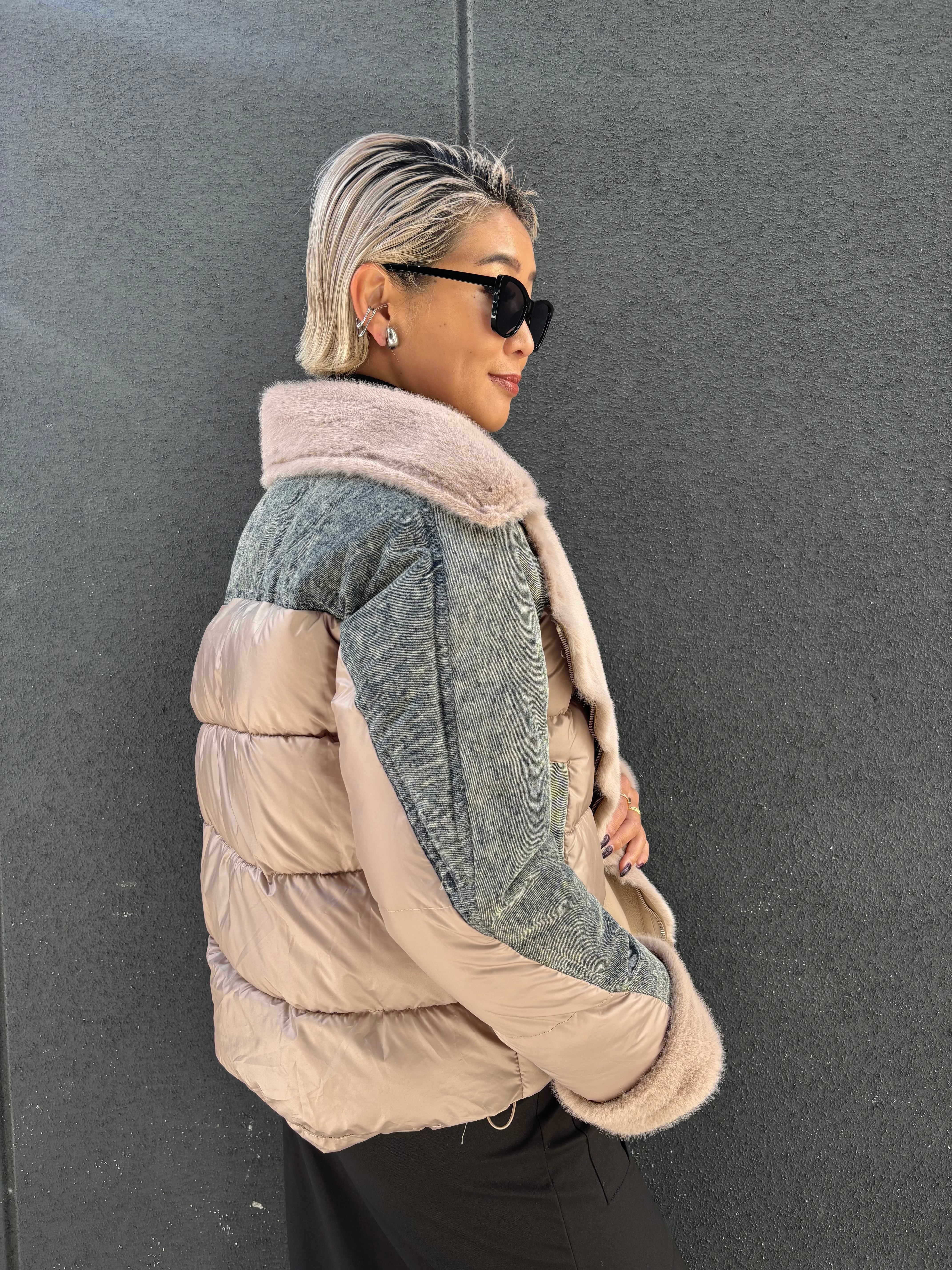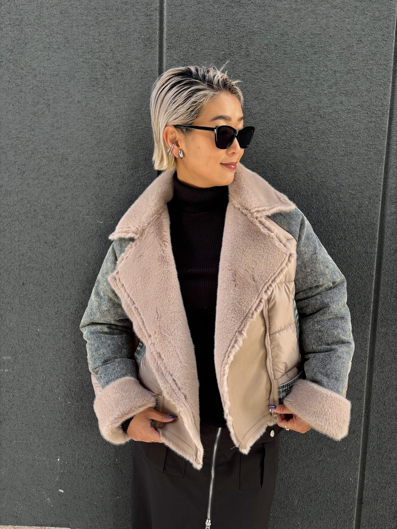 different fabrics mix design padded jacket ジャケット アウター 中綿 ニット エコレザー エコファー 異素材切替