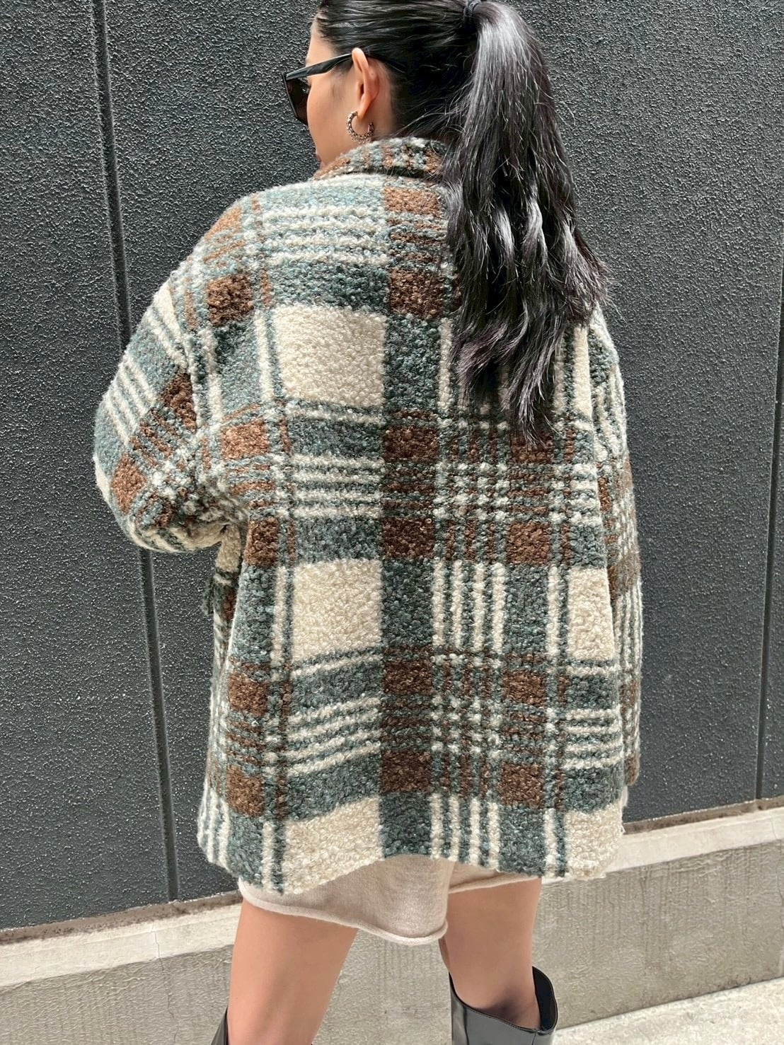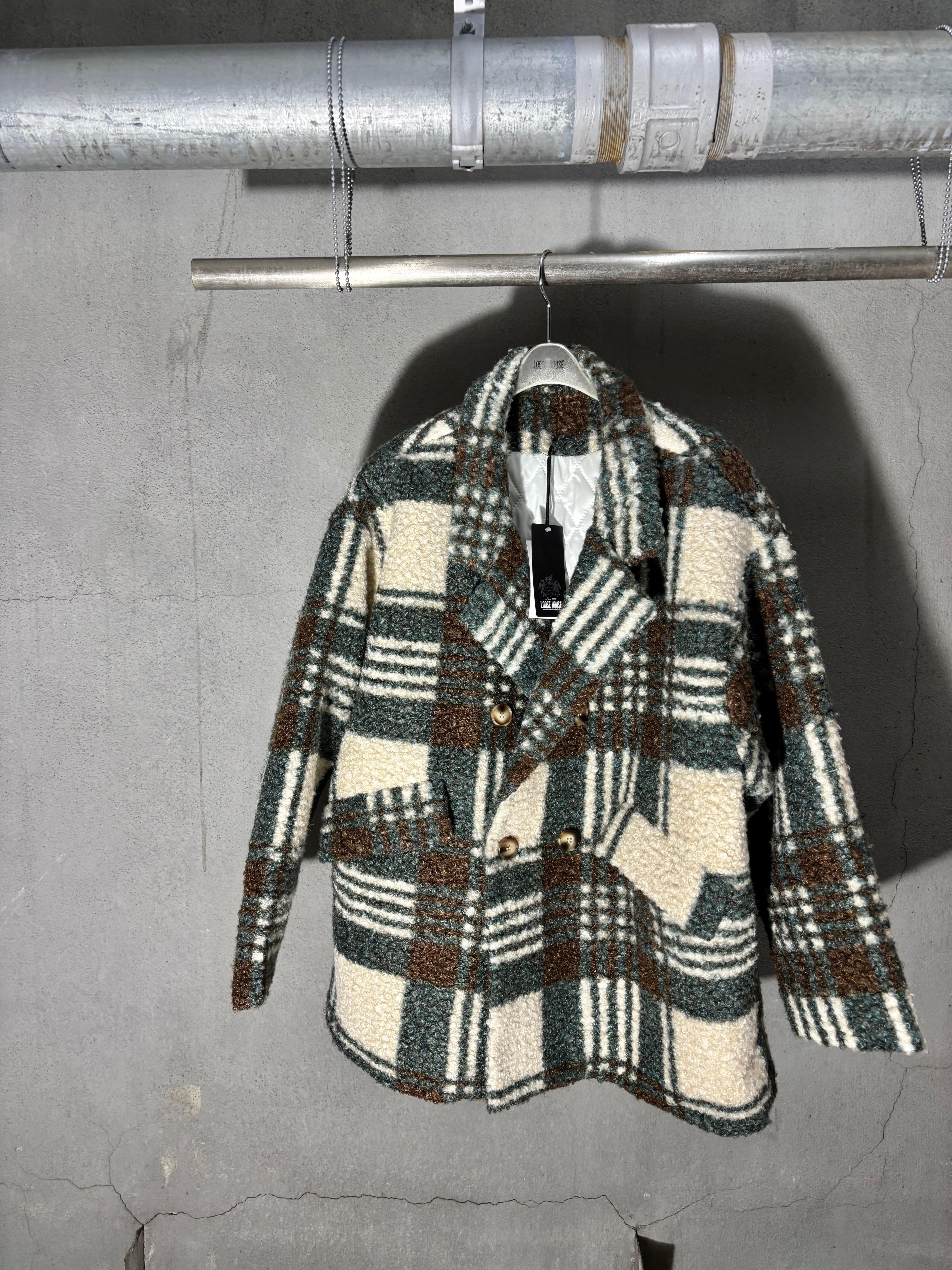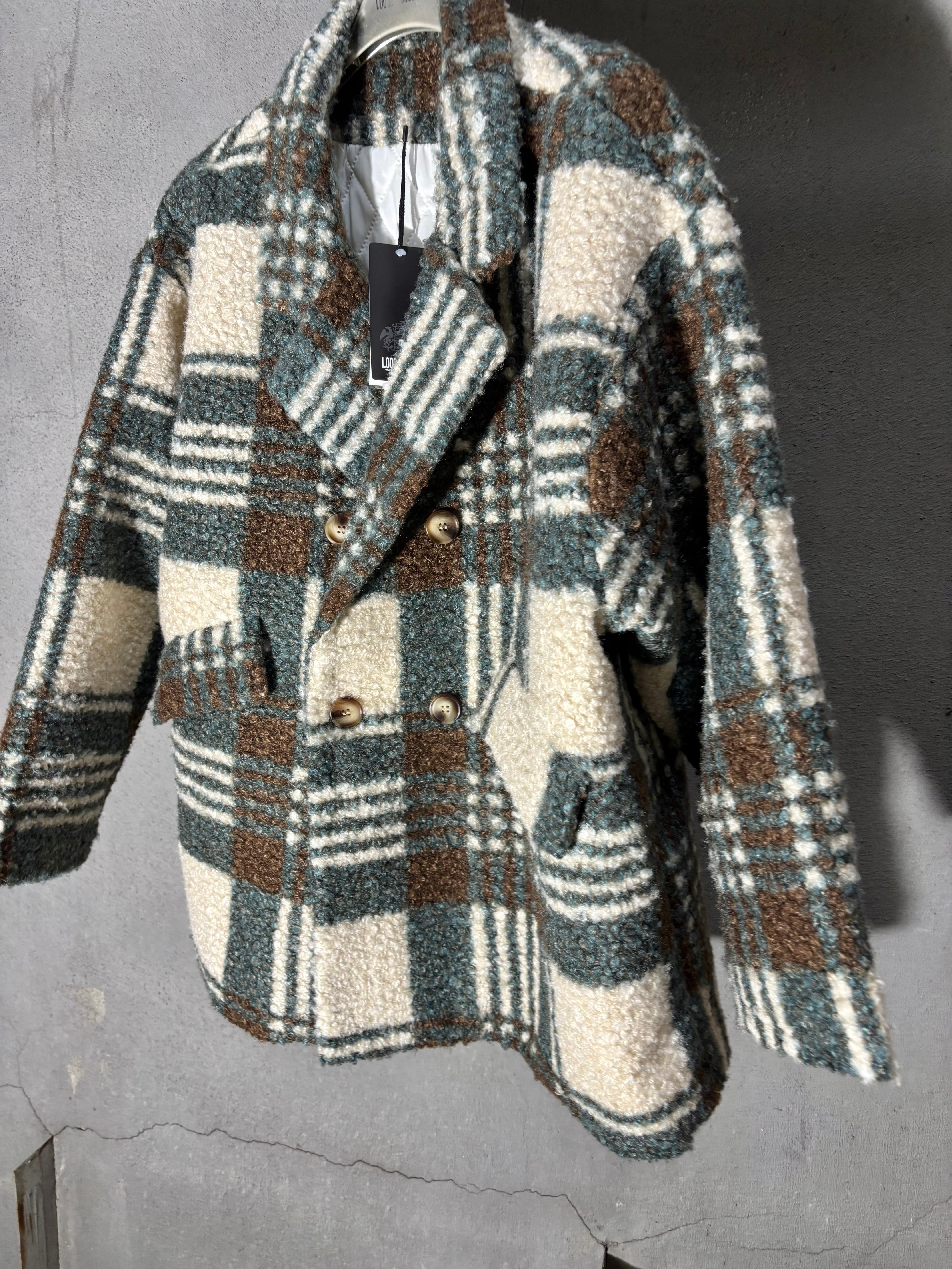 check print curl boa design jacket ジャケット チェック 裏キルト カール ボア アウター