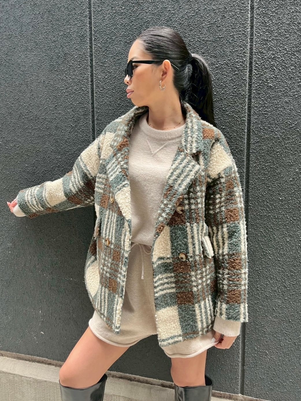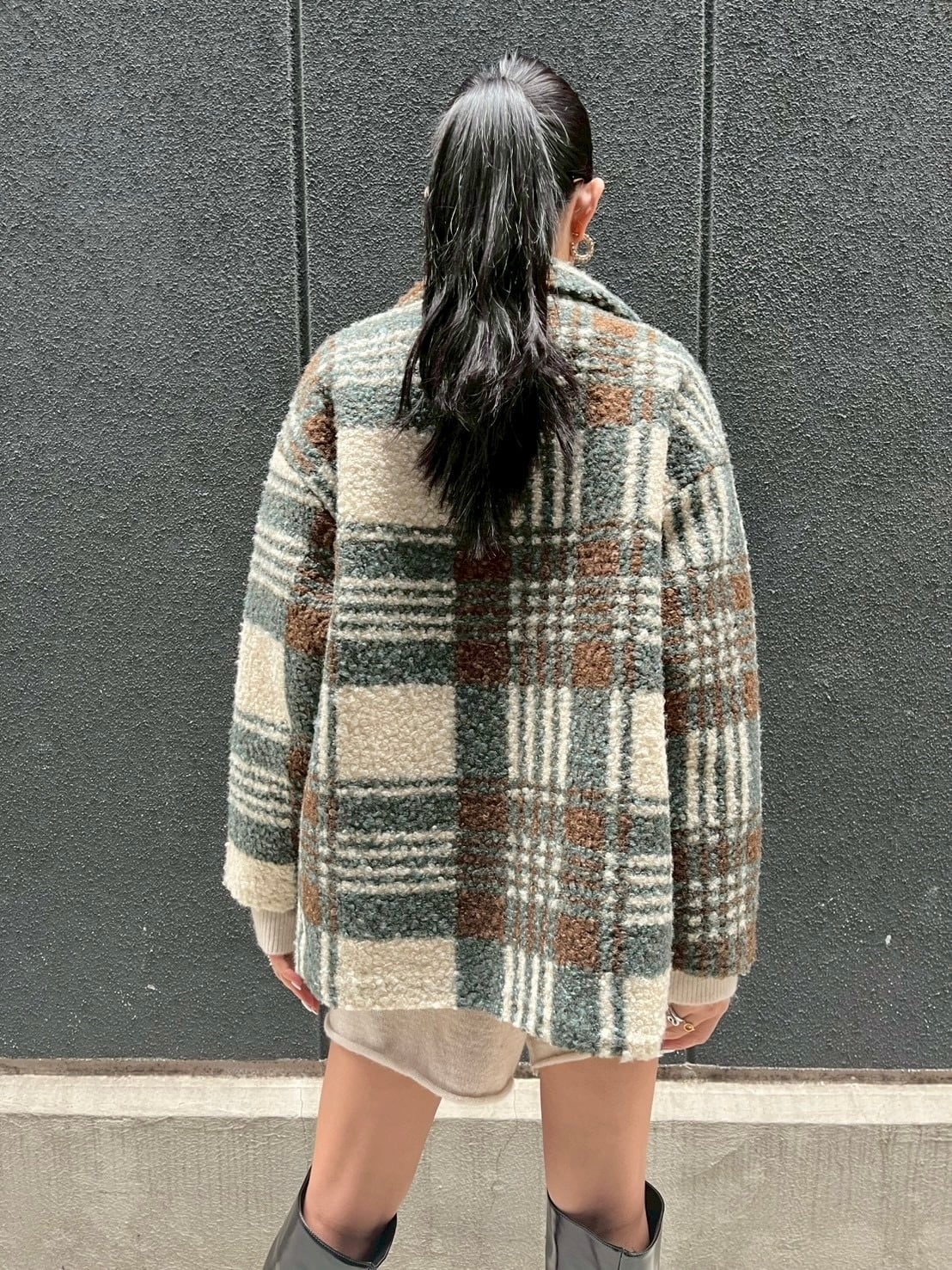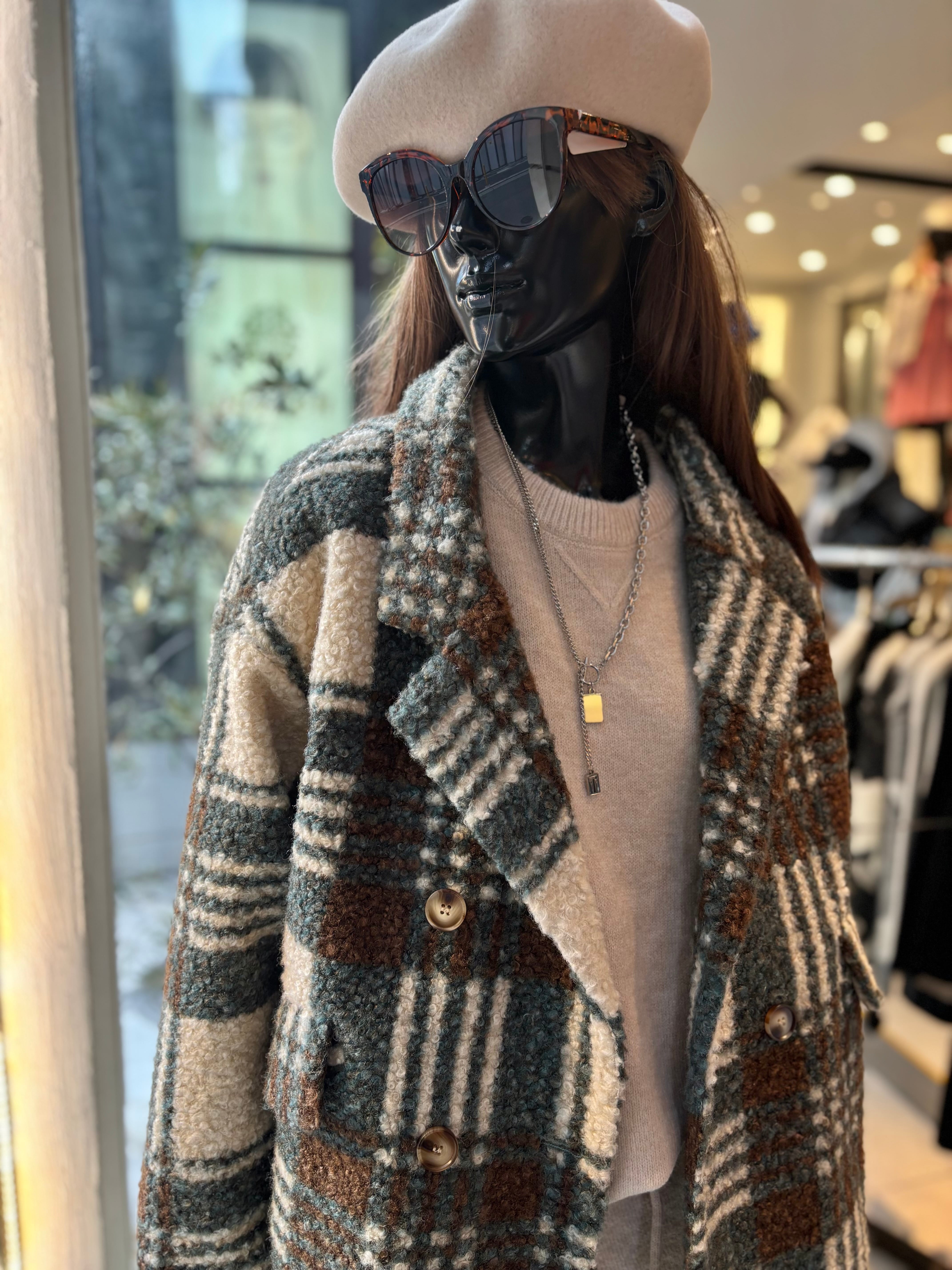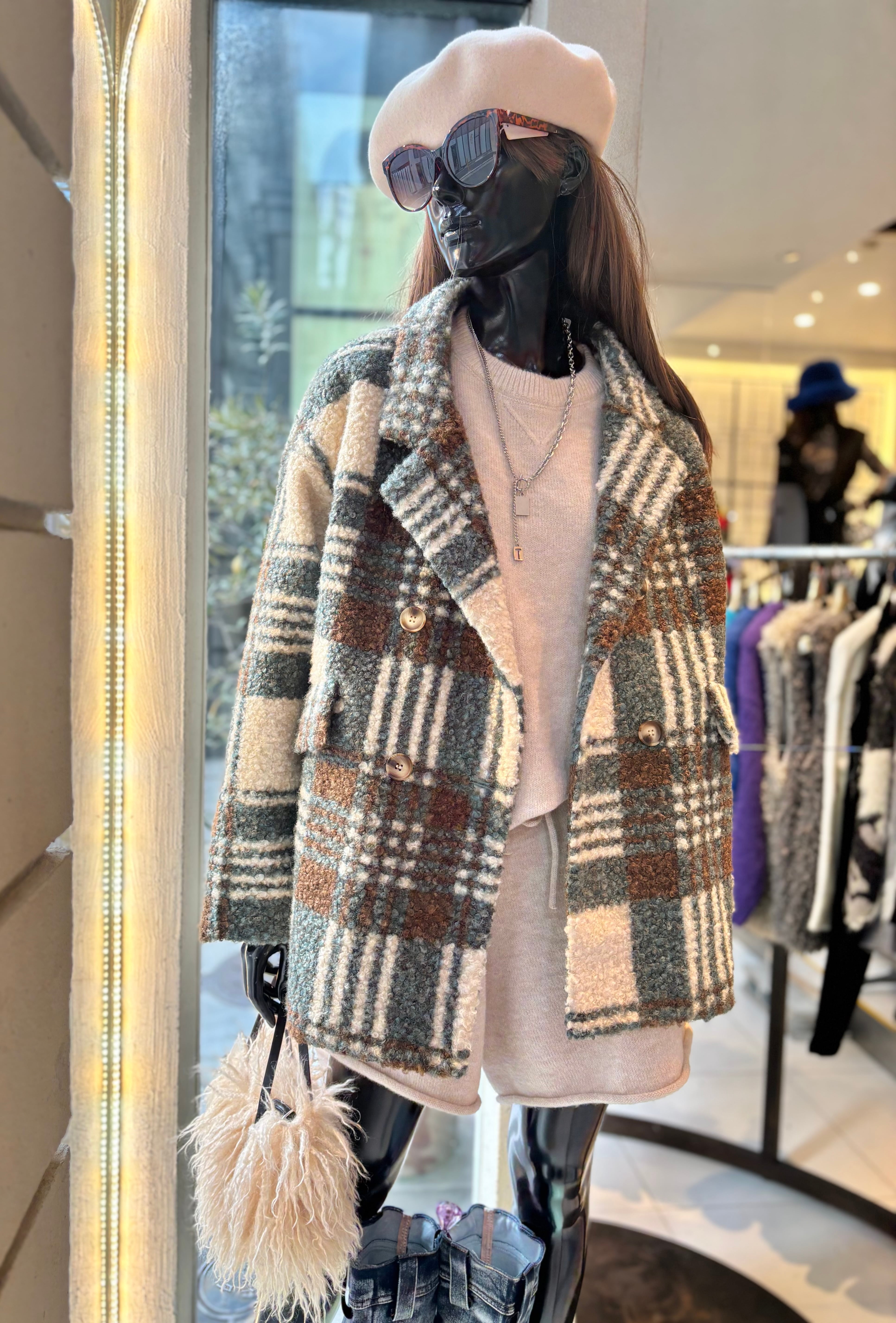 クラシックなチェック柄が魅力で、トレンド感を演出します。裏地にはキルトを使用しており、暖かさをしっかりキープ。心地良いボア素材が体を包み込み、寒い季節でも快適に過ごせます。ぜひ、この一着でスタイリッシュな秋冬のおしゃれを楽しんでください!