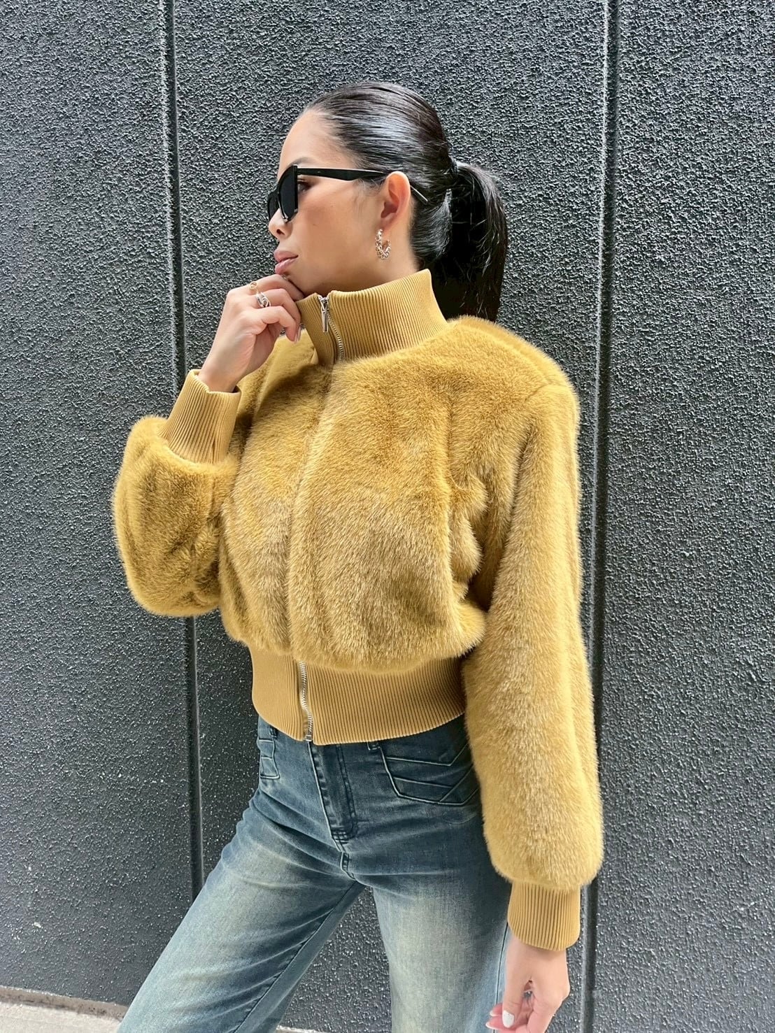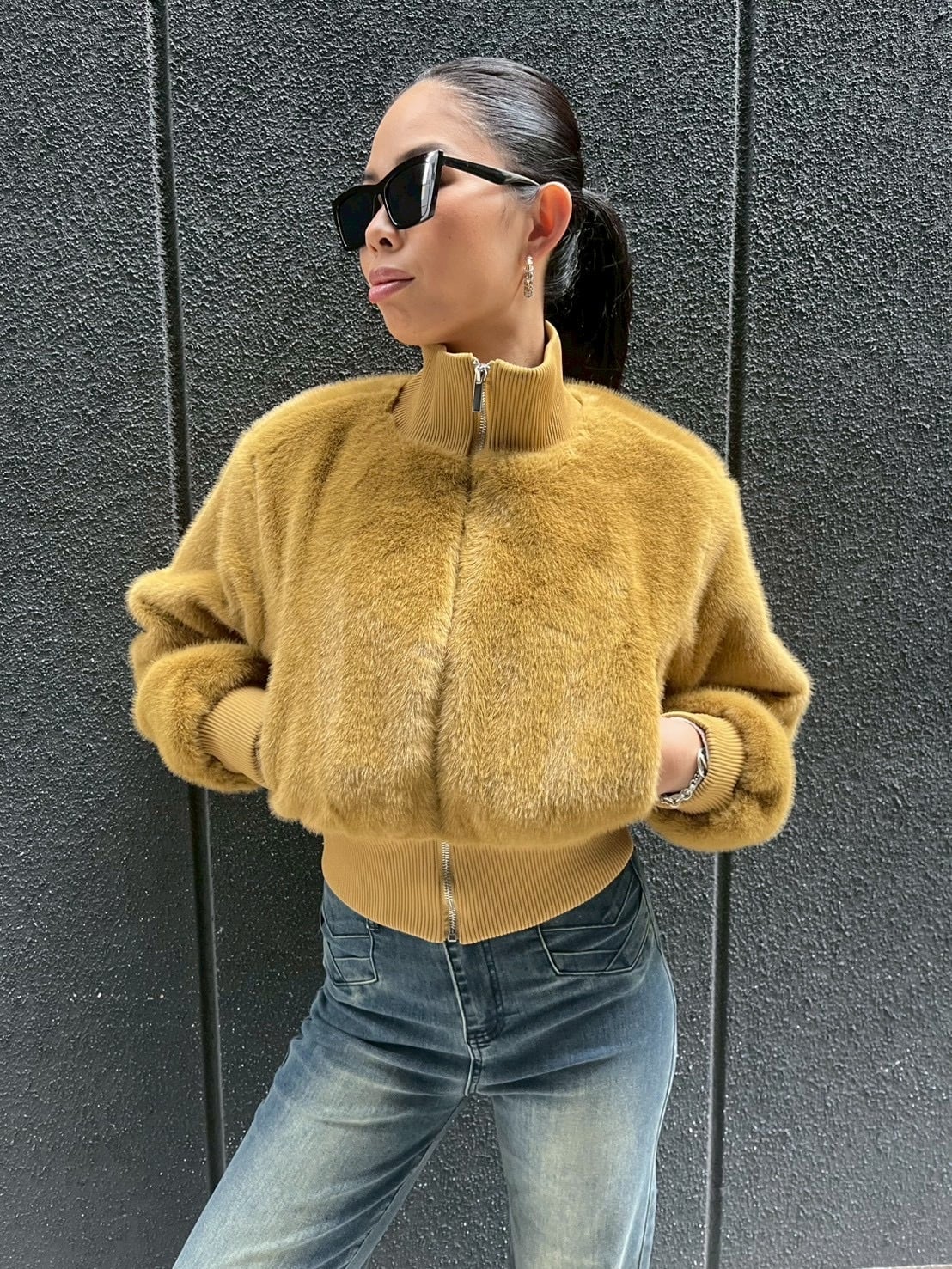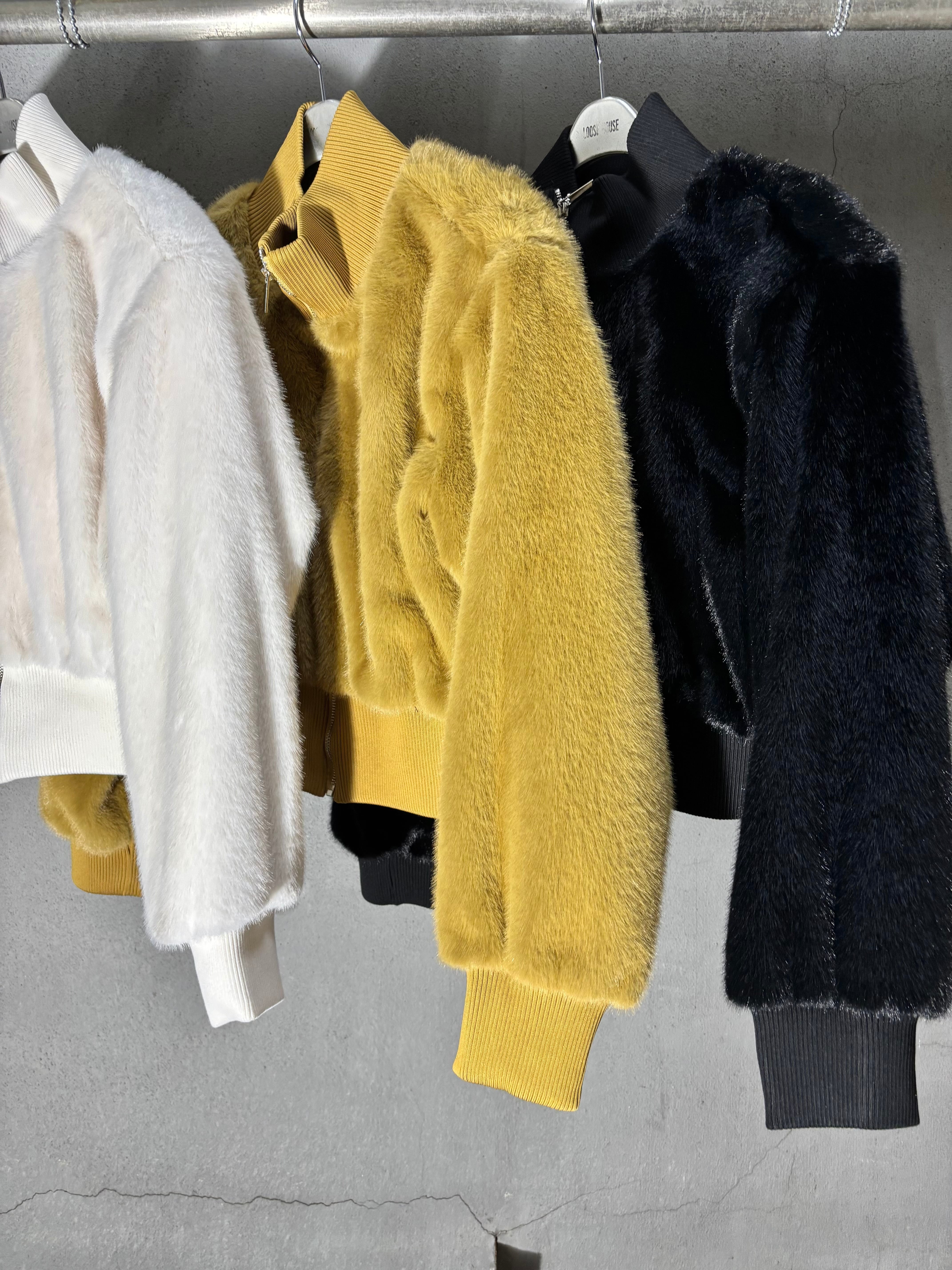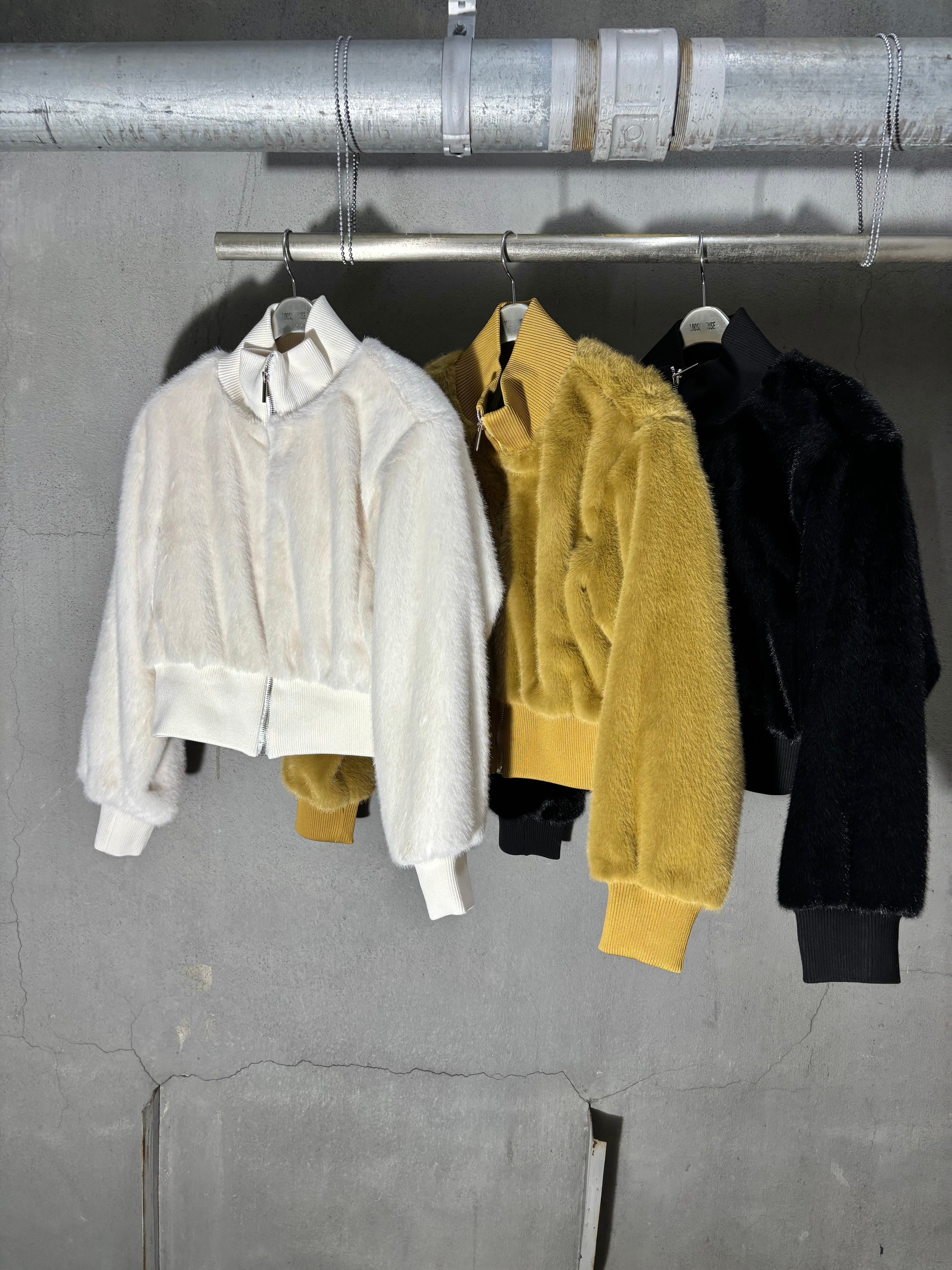 eco fur × rib knit blouson ブルゾン エコファー リブニット ジップアップ スタンドネック