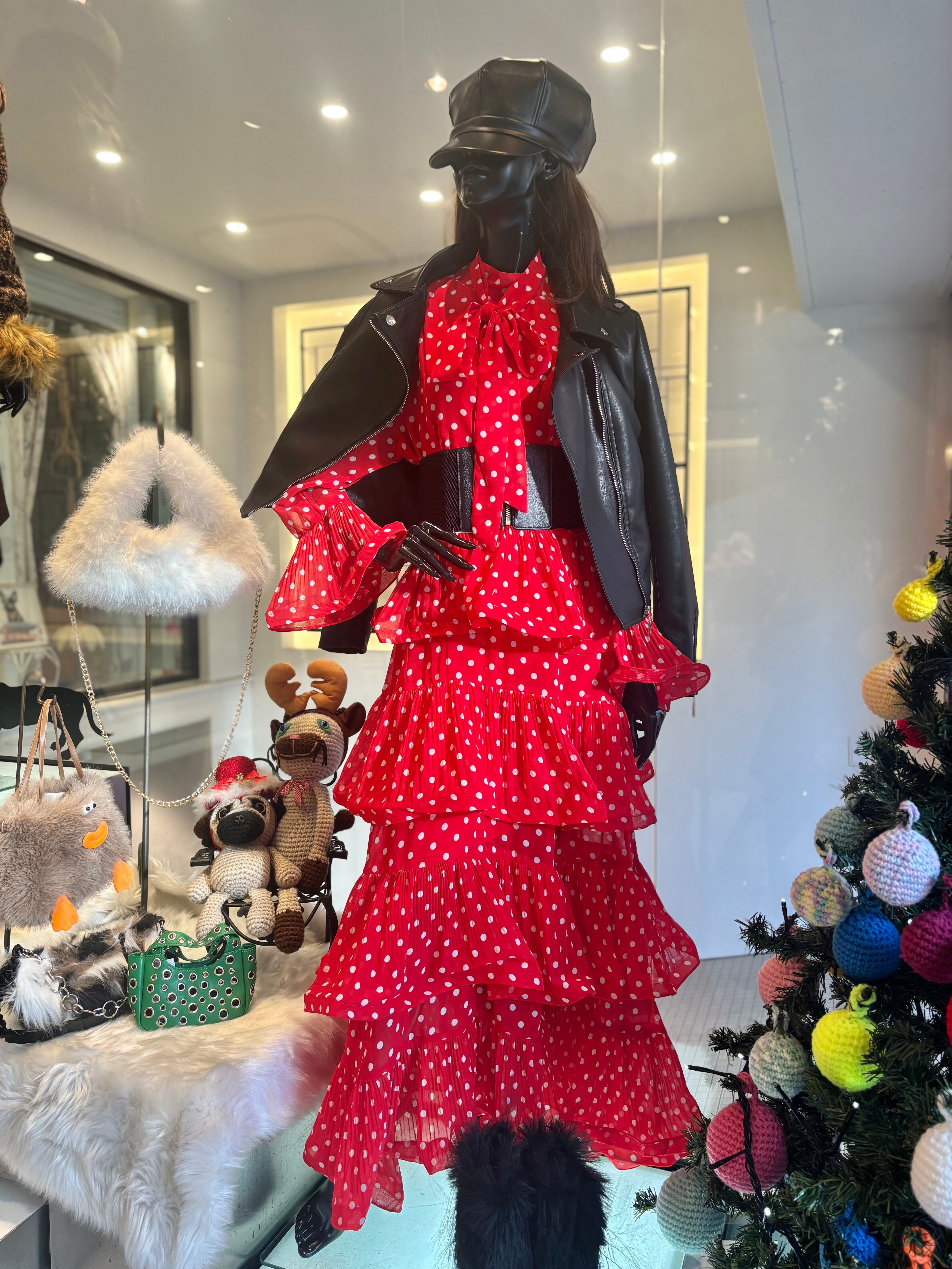 可愛らしいドット柄が特徴で、パーティや特別なお出かけにぴったりのロングワンピース♡