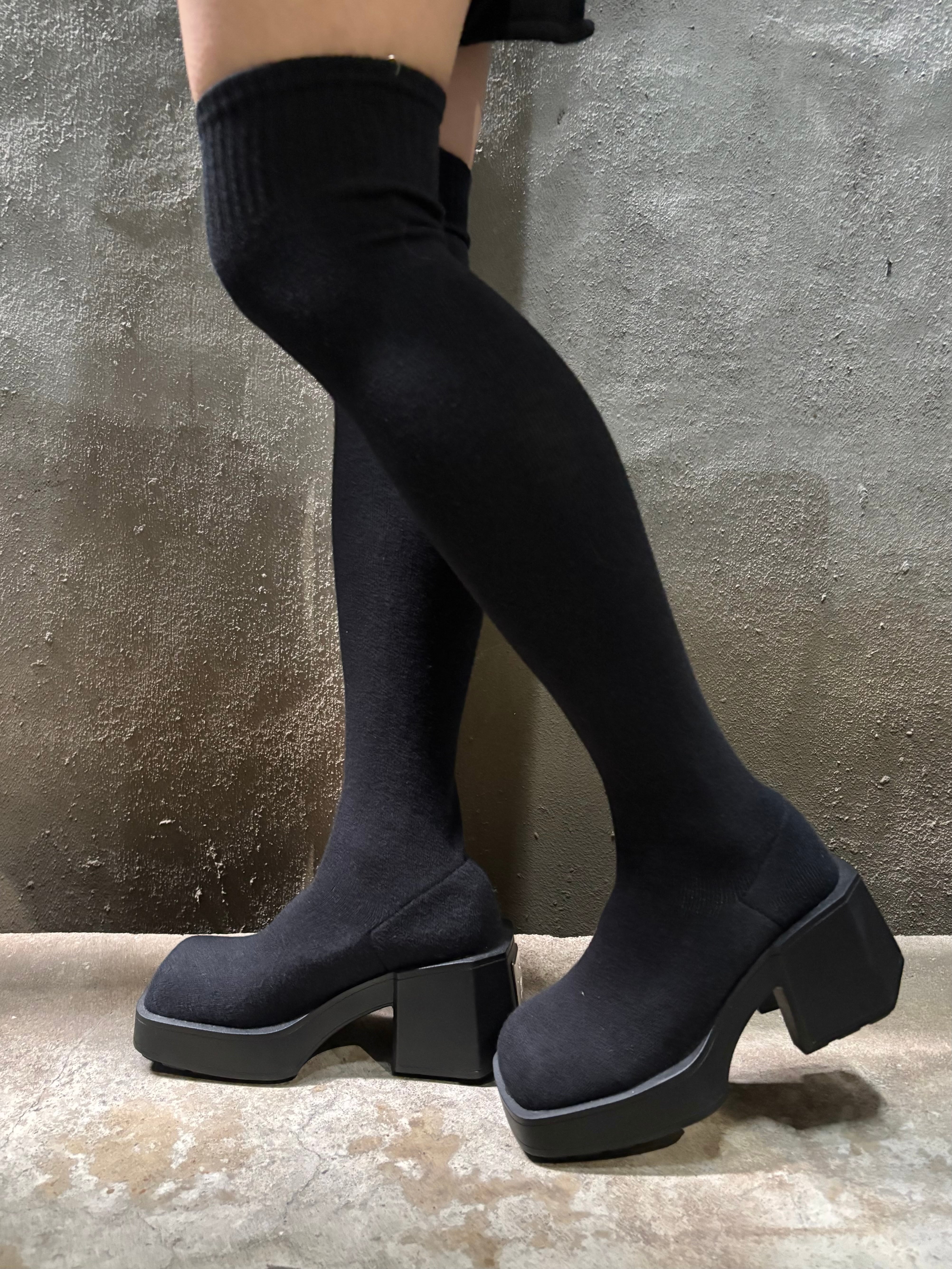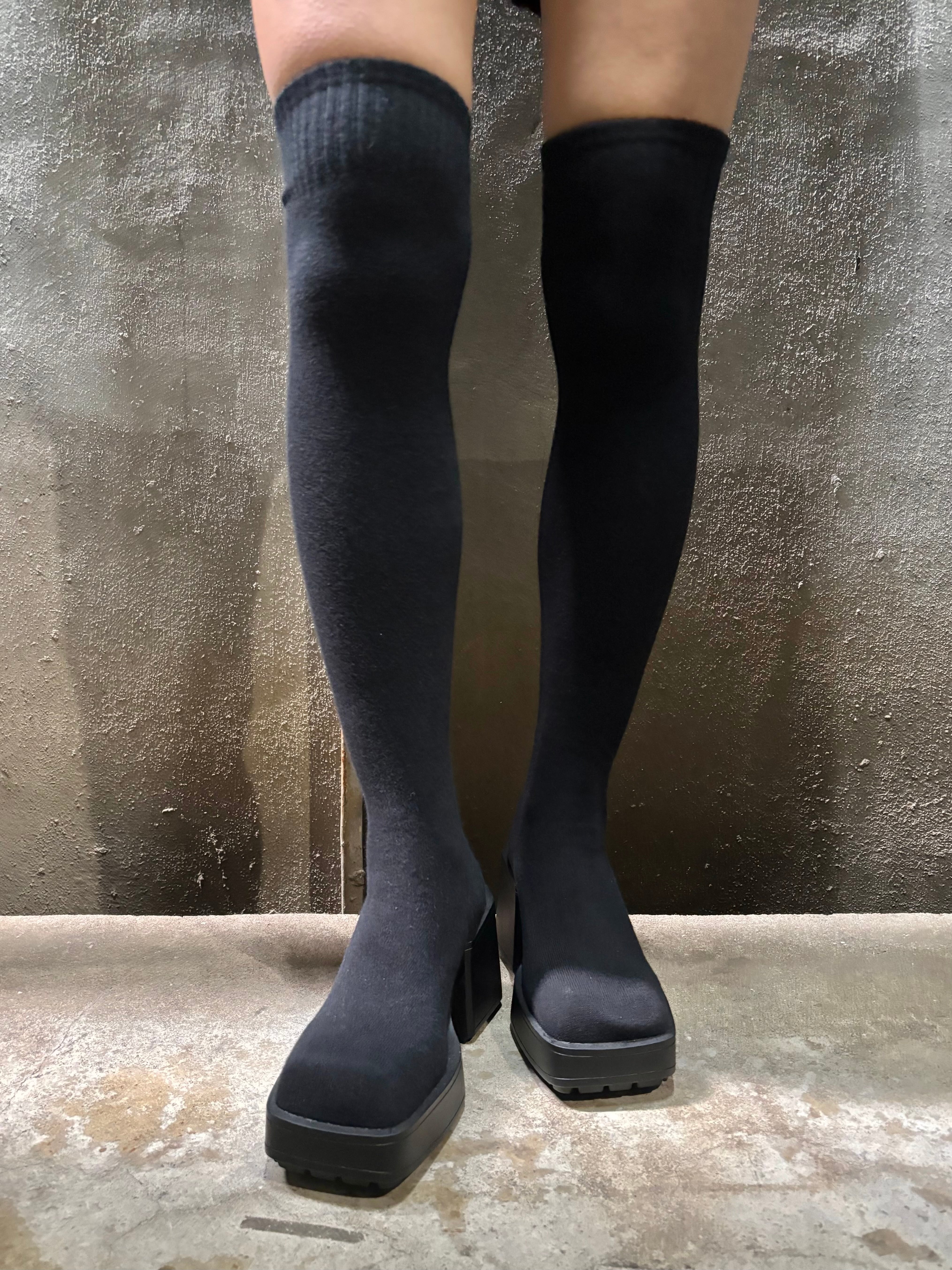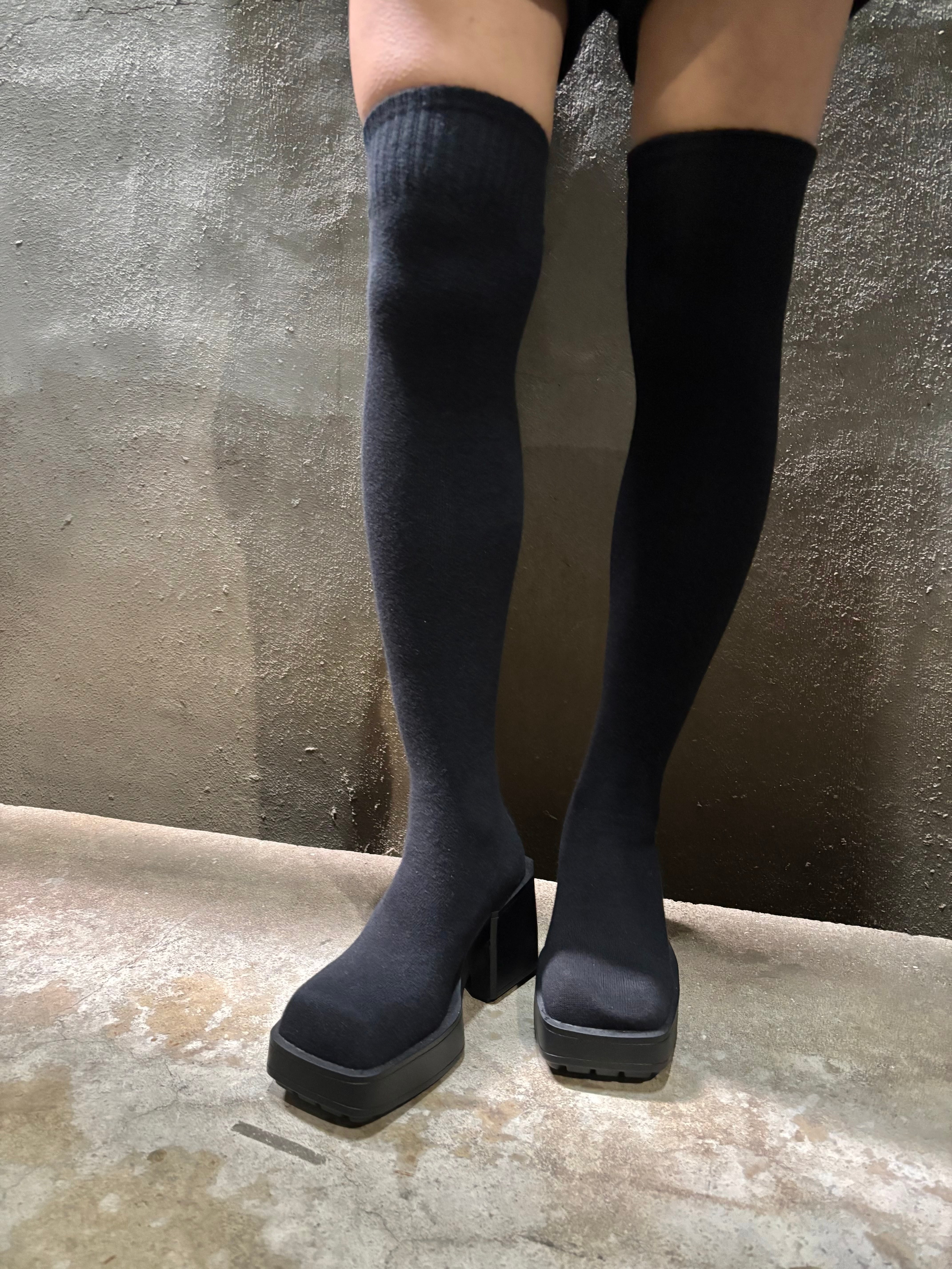 stretch neehigh sox boots ブーツ ニーハイ ブラック 黒 ストレッチ ソックス