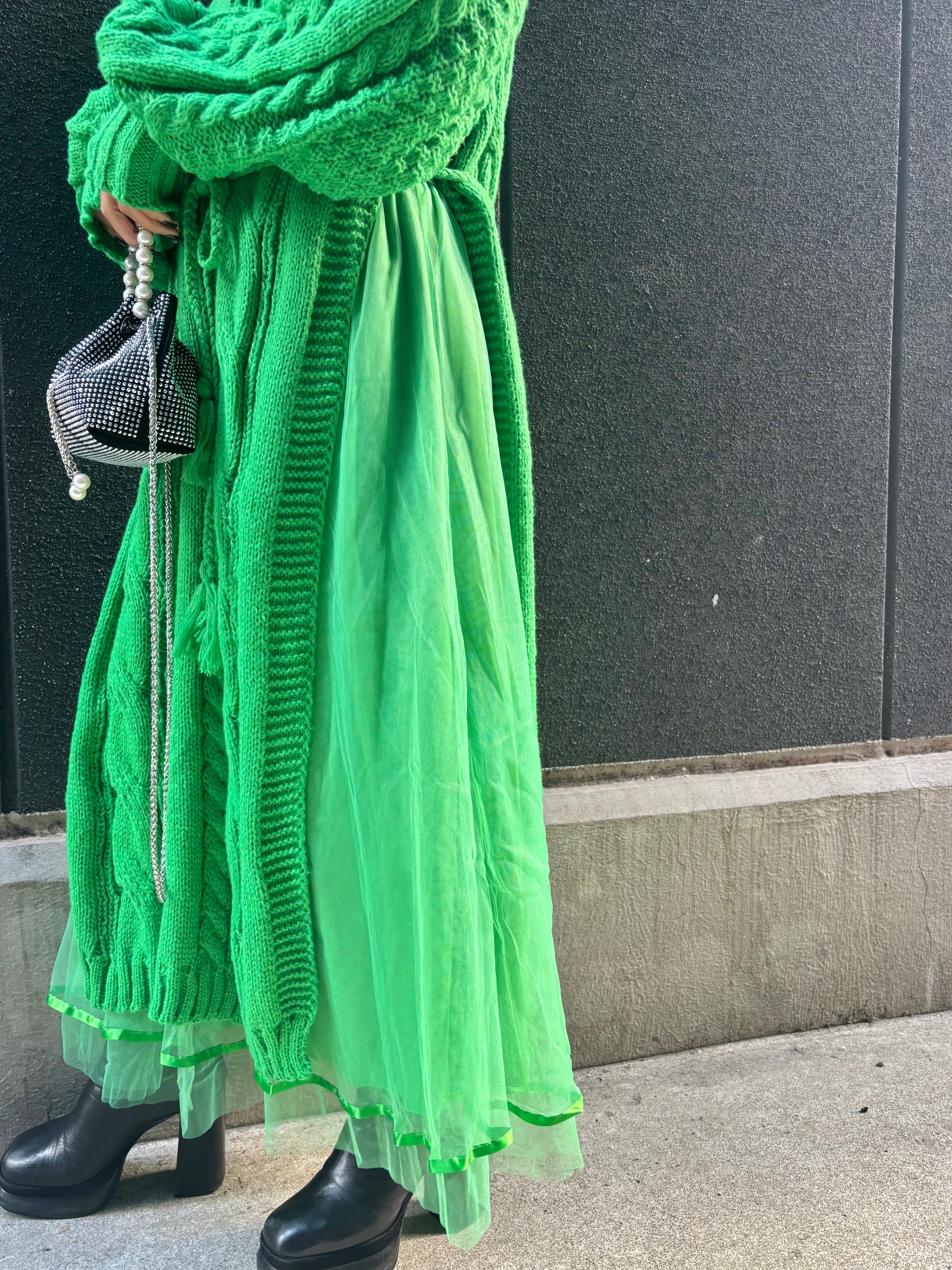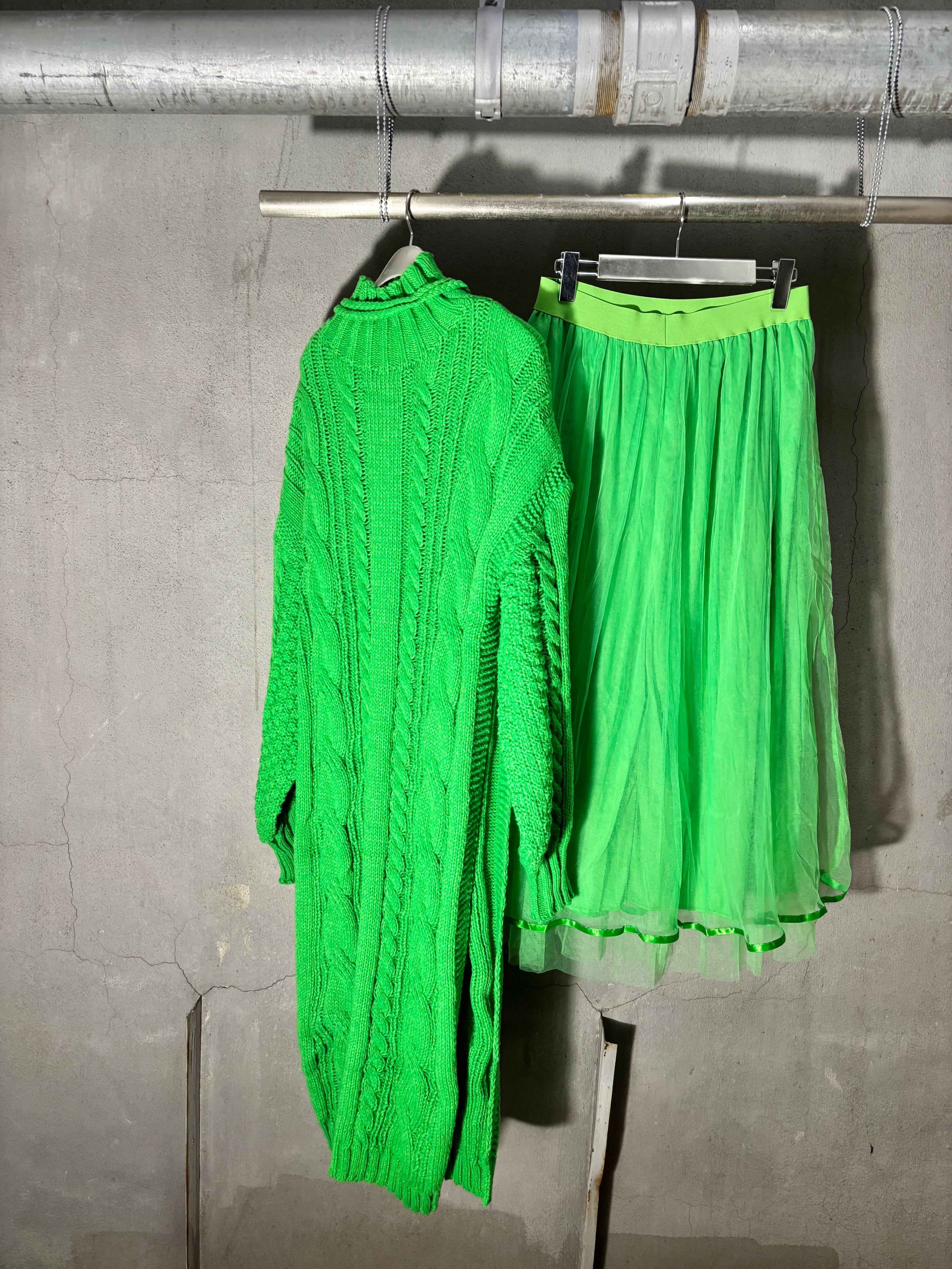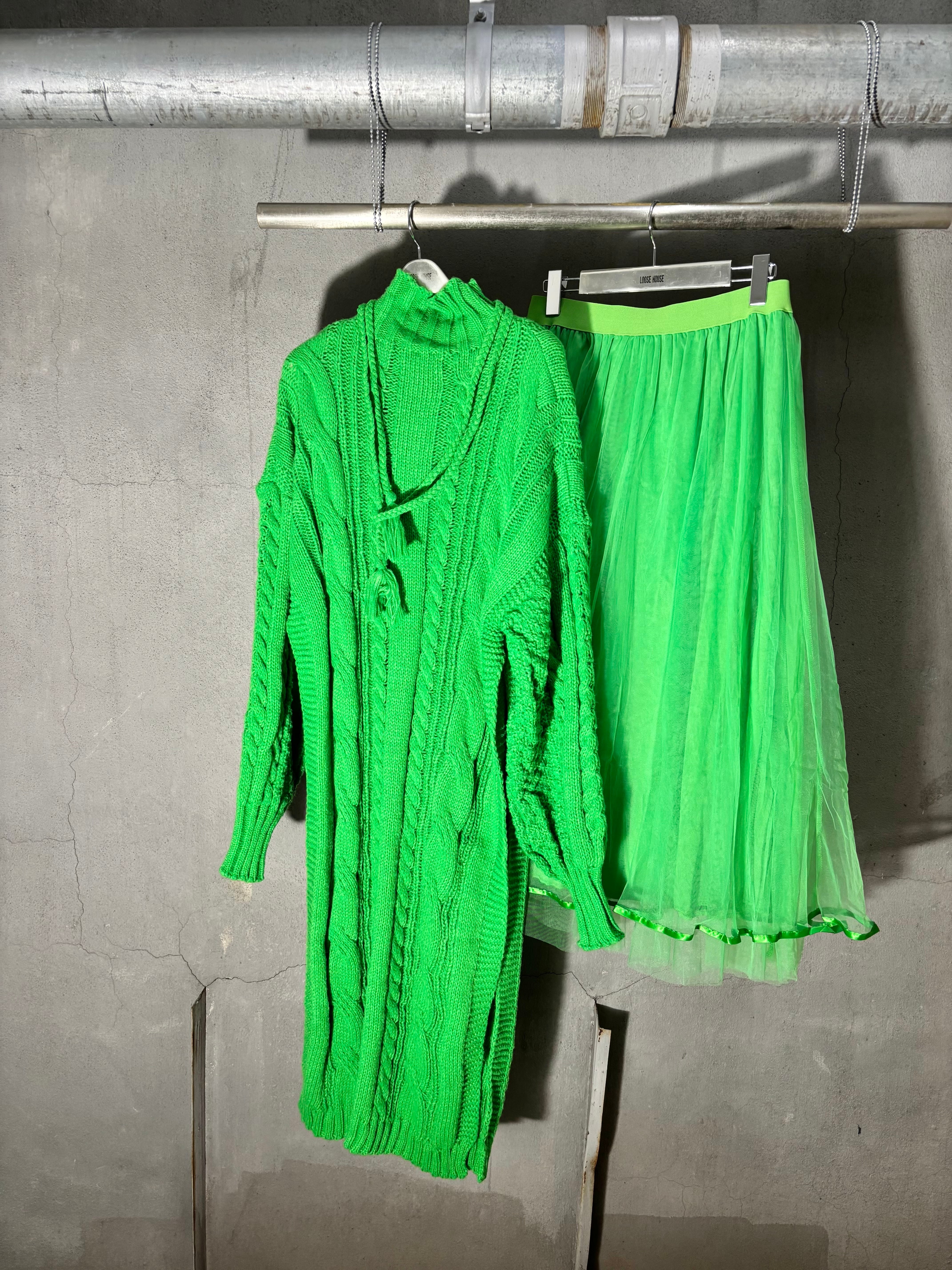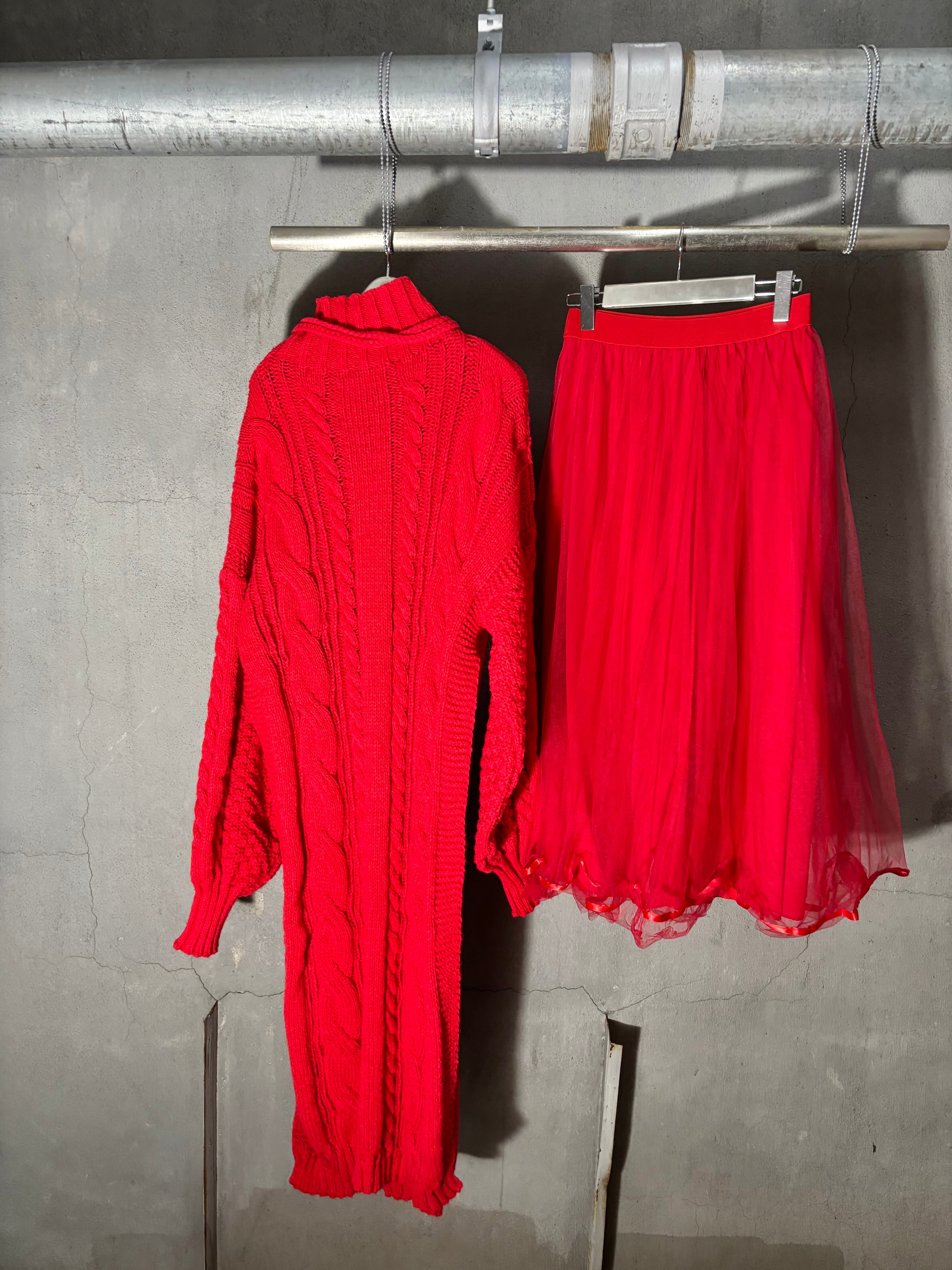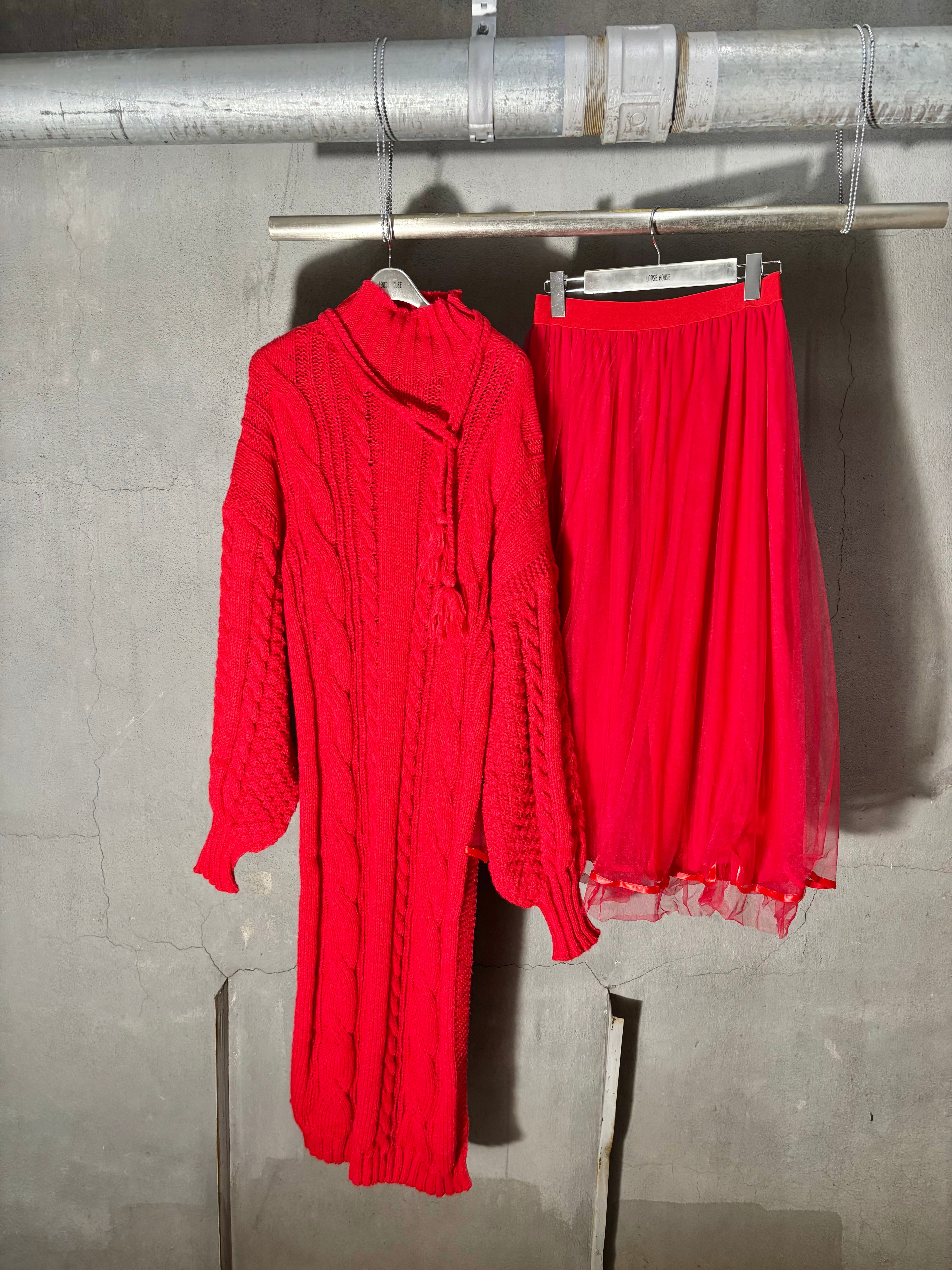 cable knit design tunic × tulle skirt 2P set up セットアップ 2点セット ニット スリット チュール スカート 着回し