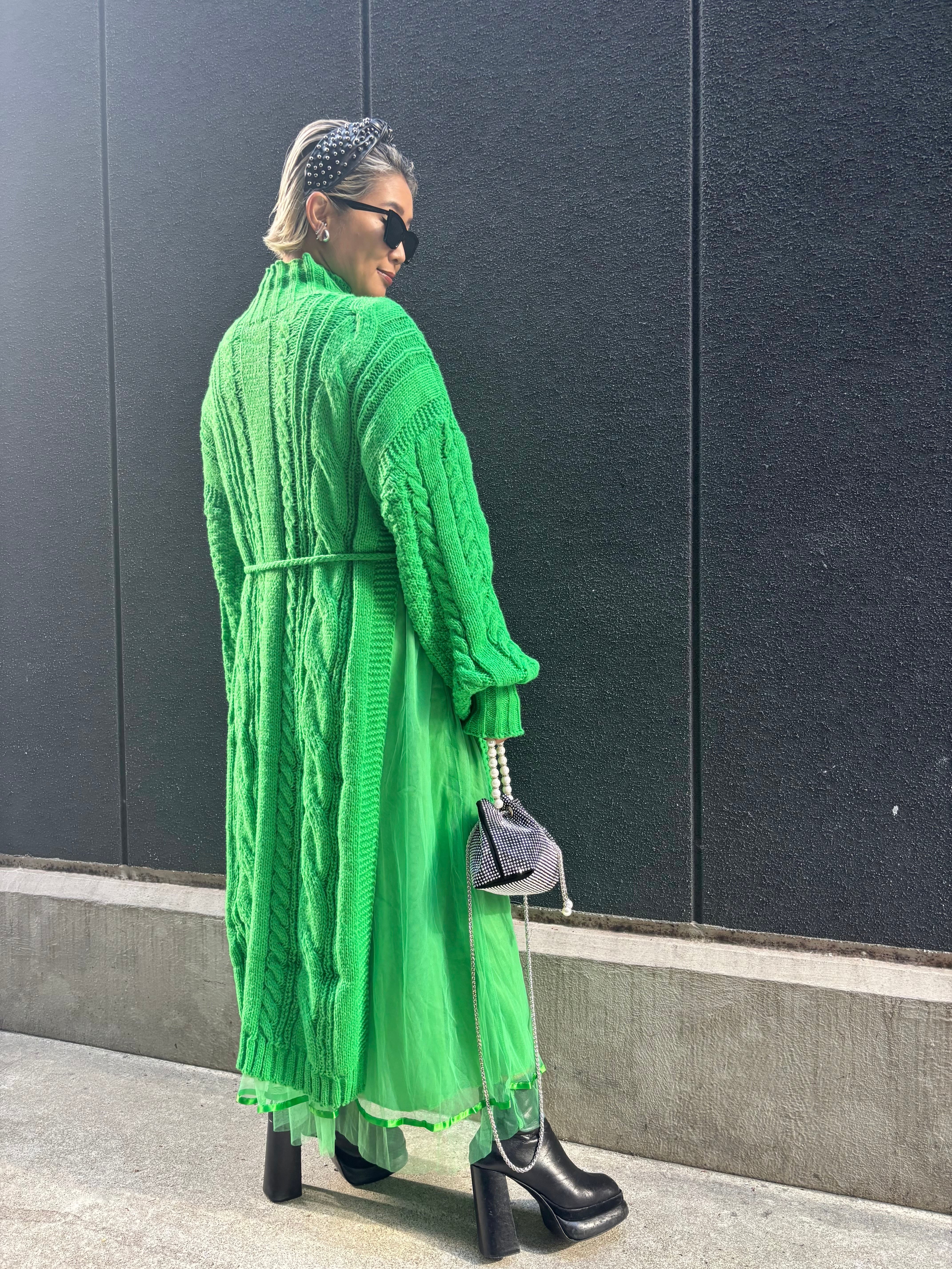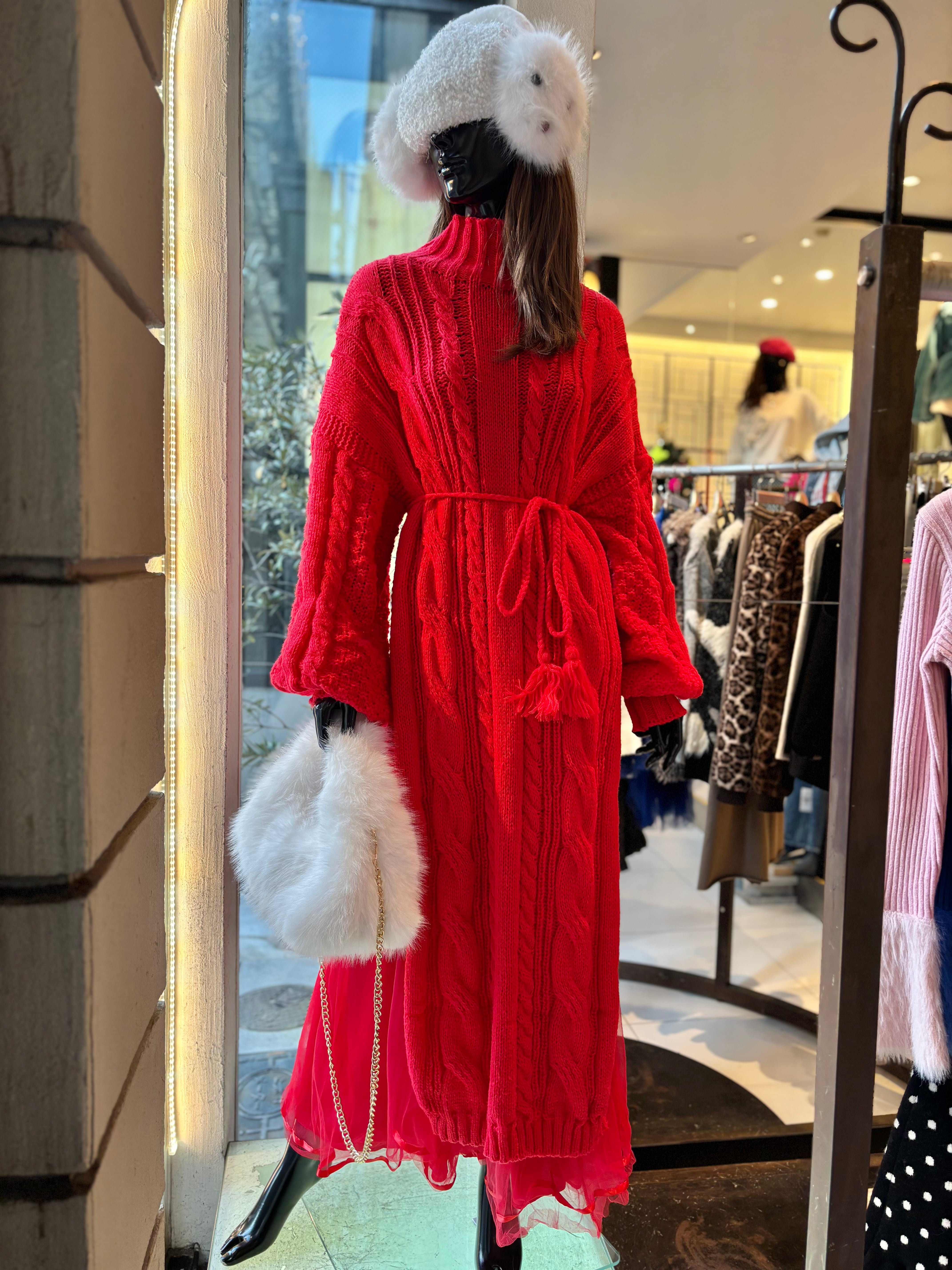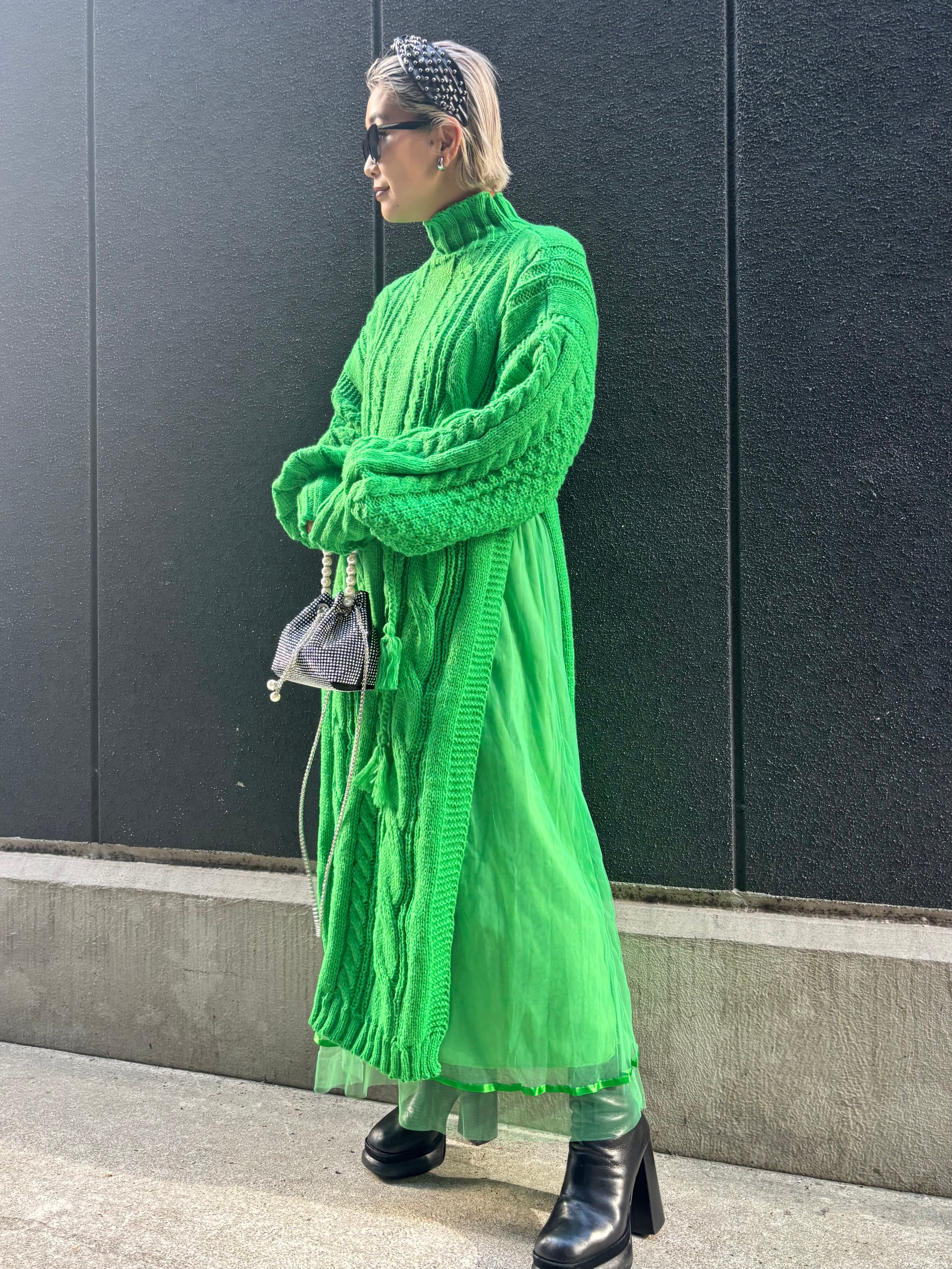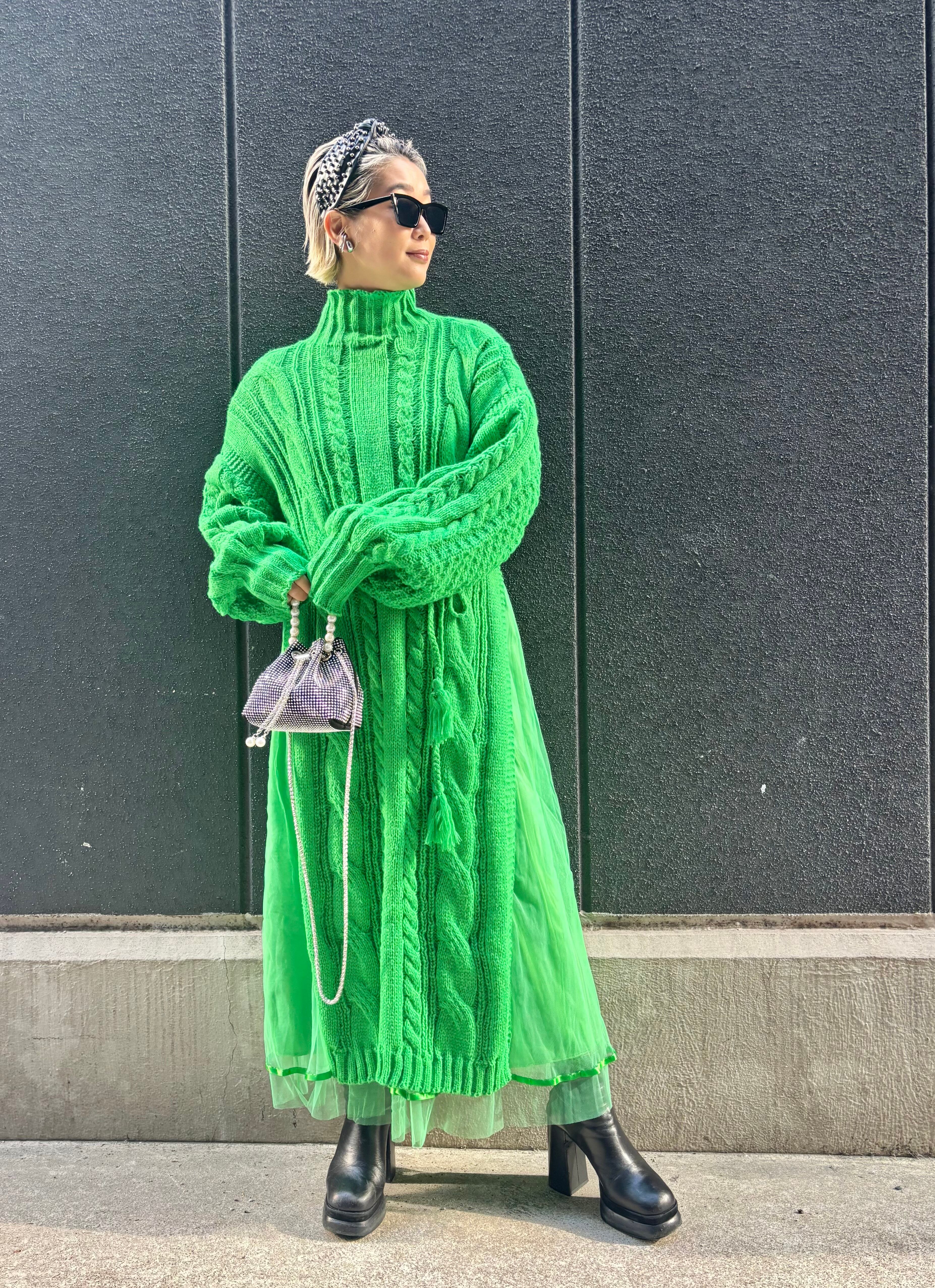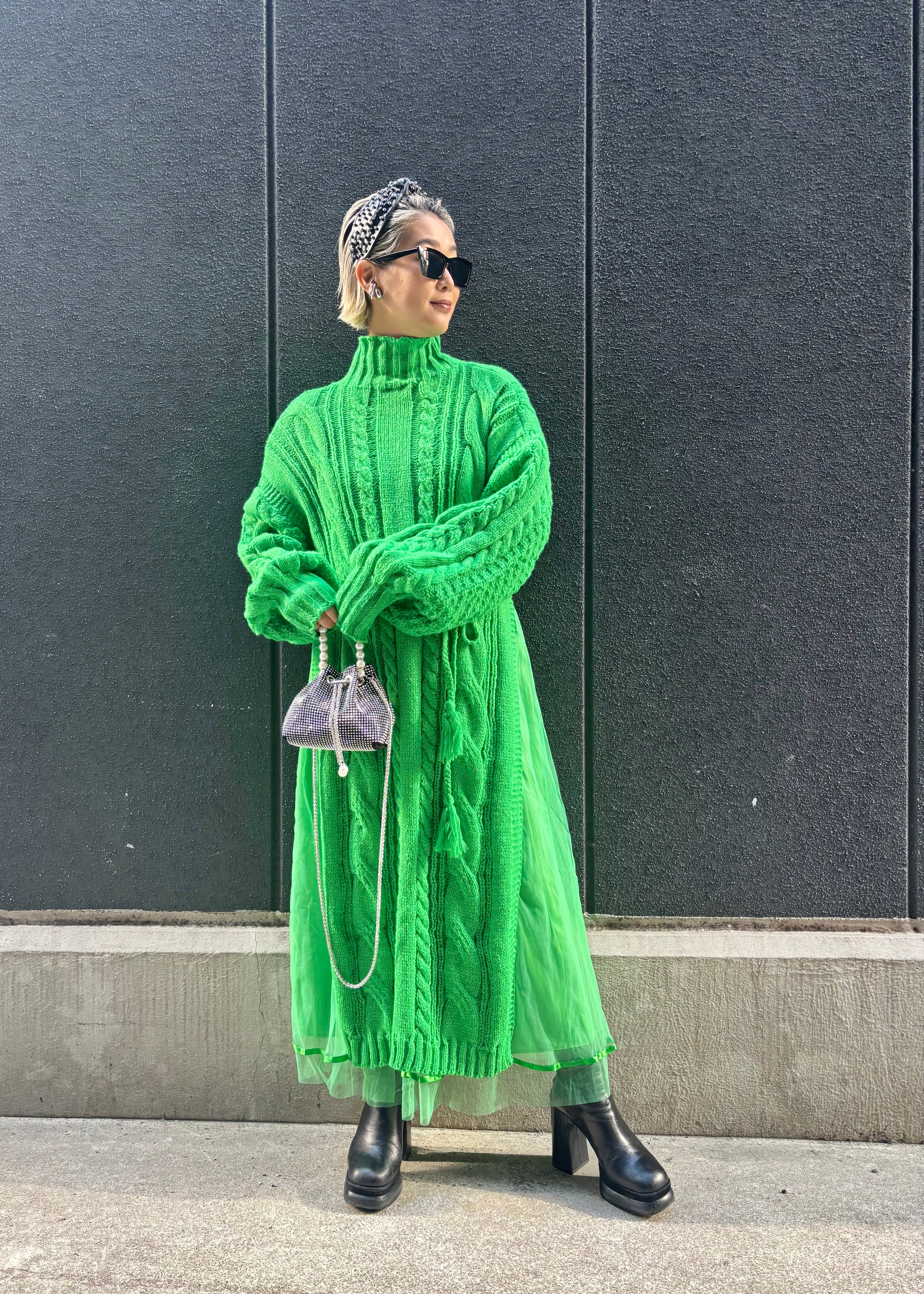 cable knit design tunic × tulle skirt 2P set up セットアップ 2点セット ニット スリット チュール スカート 着回し