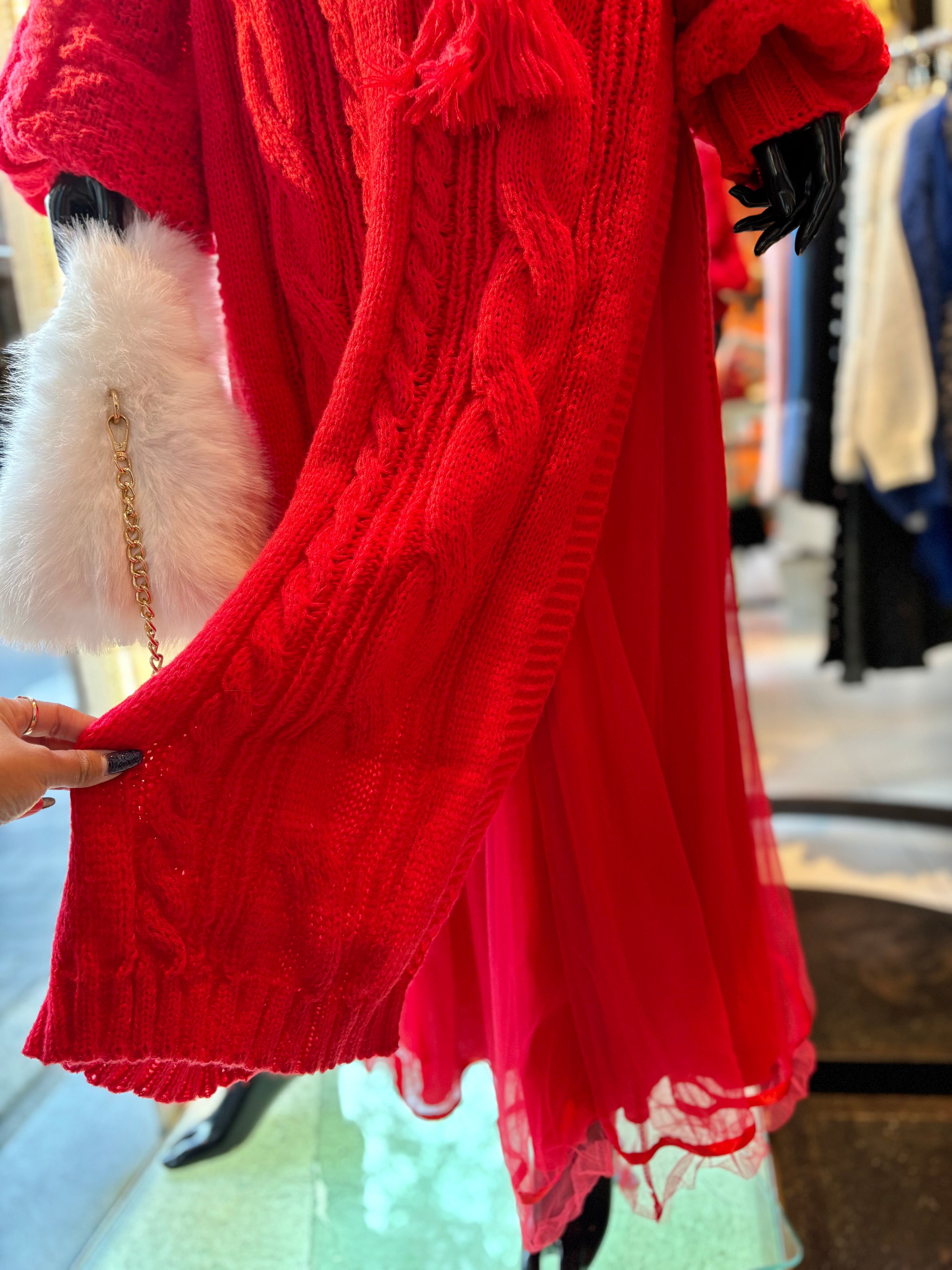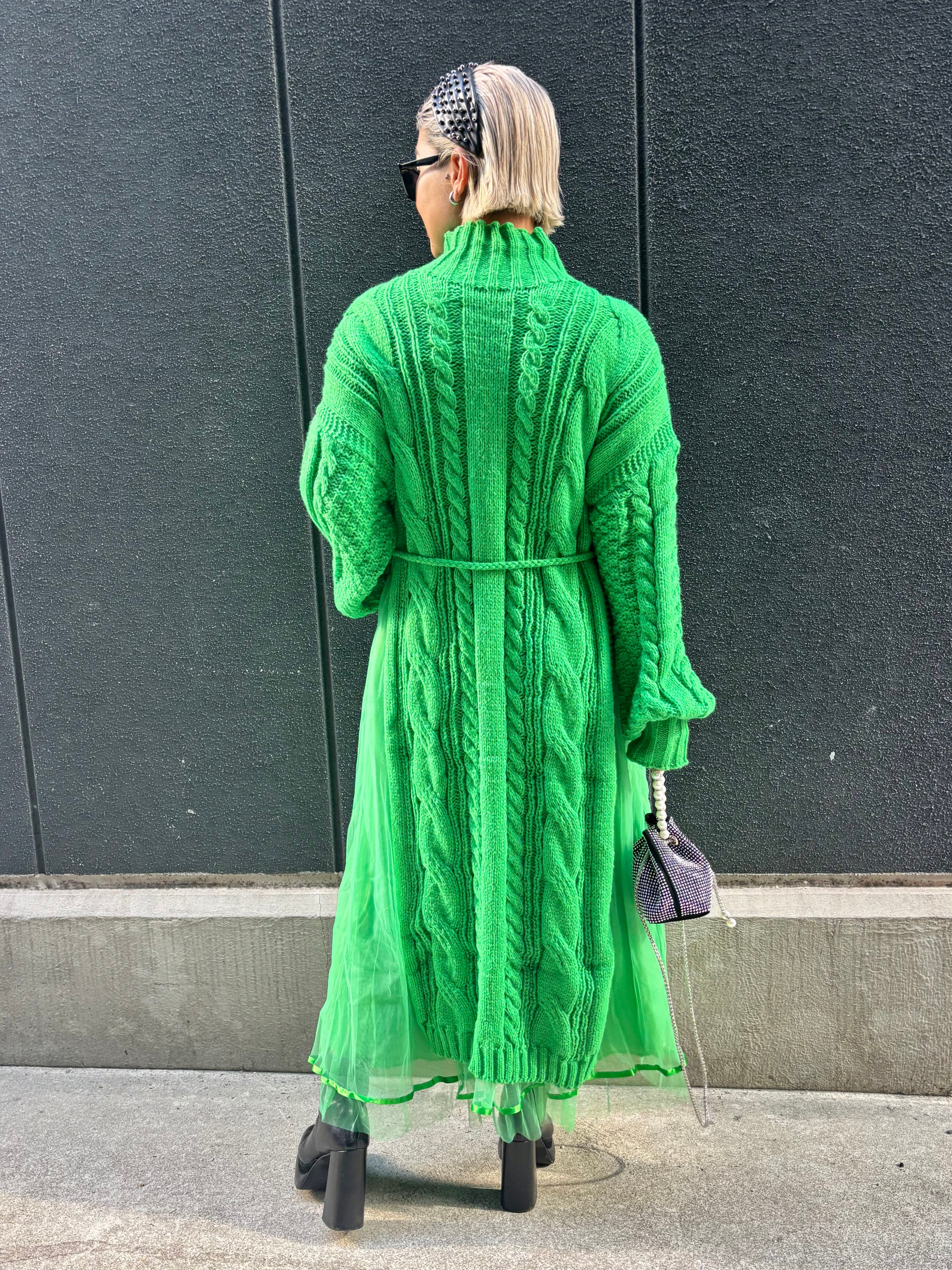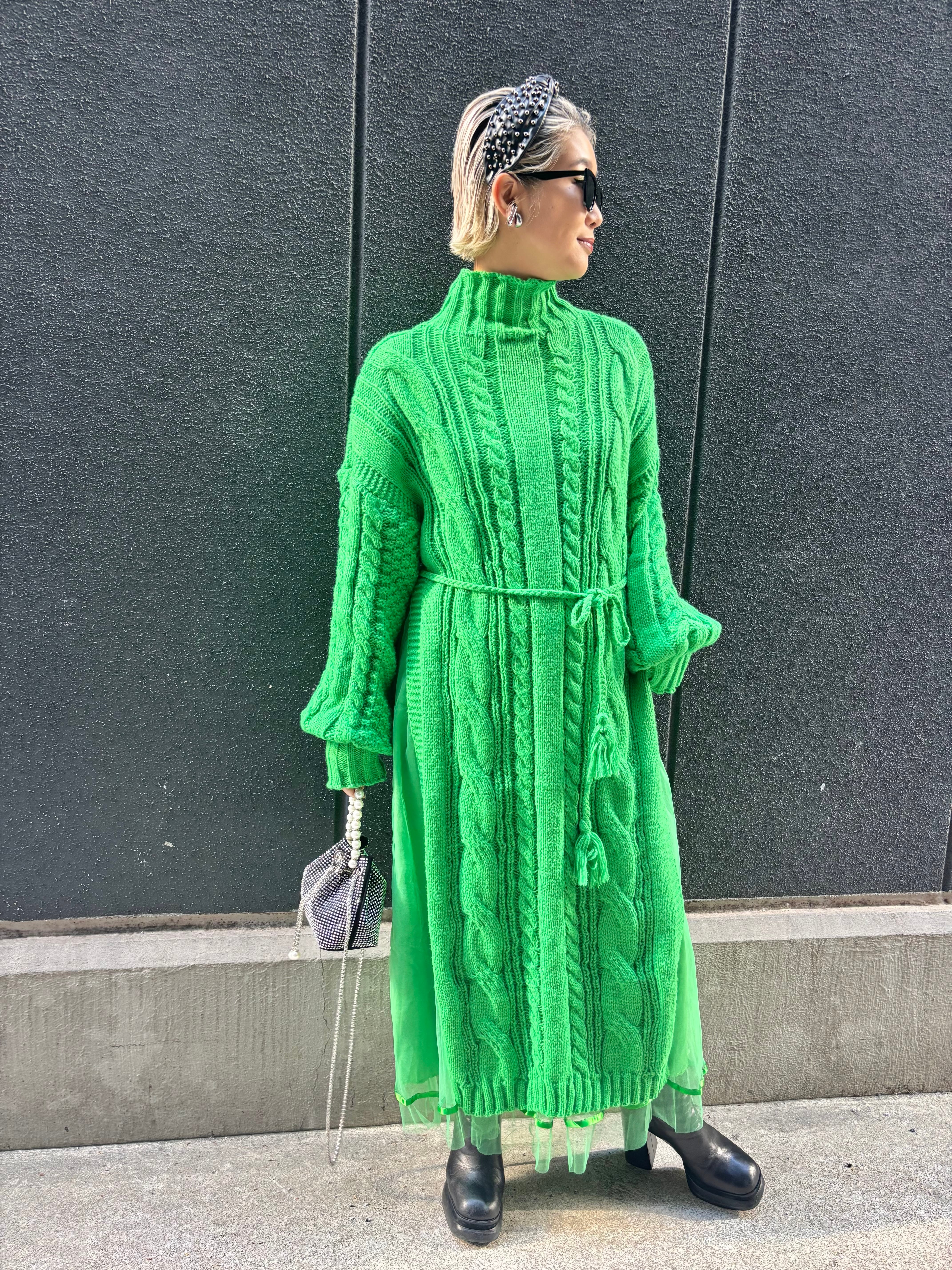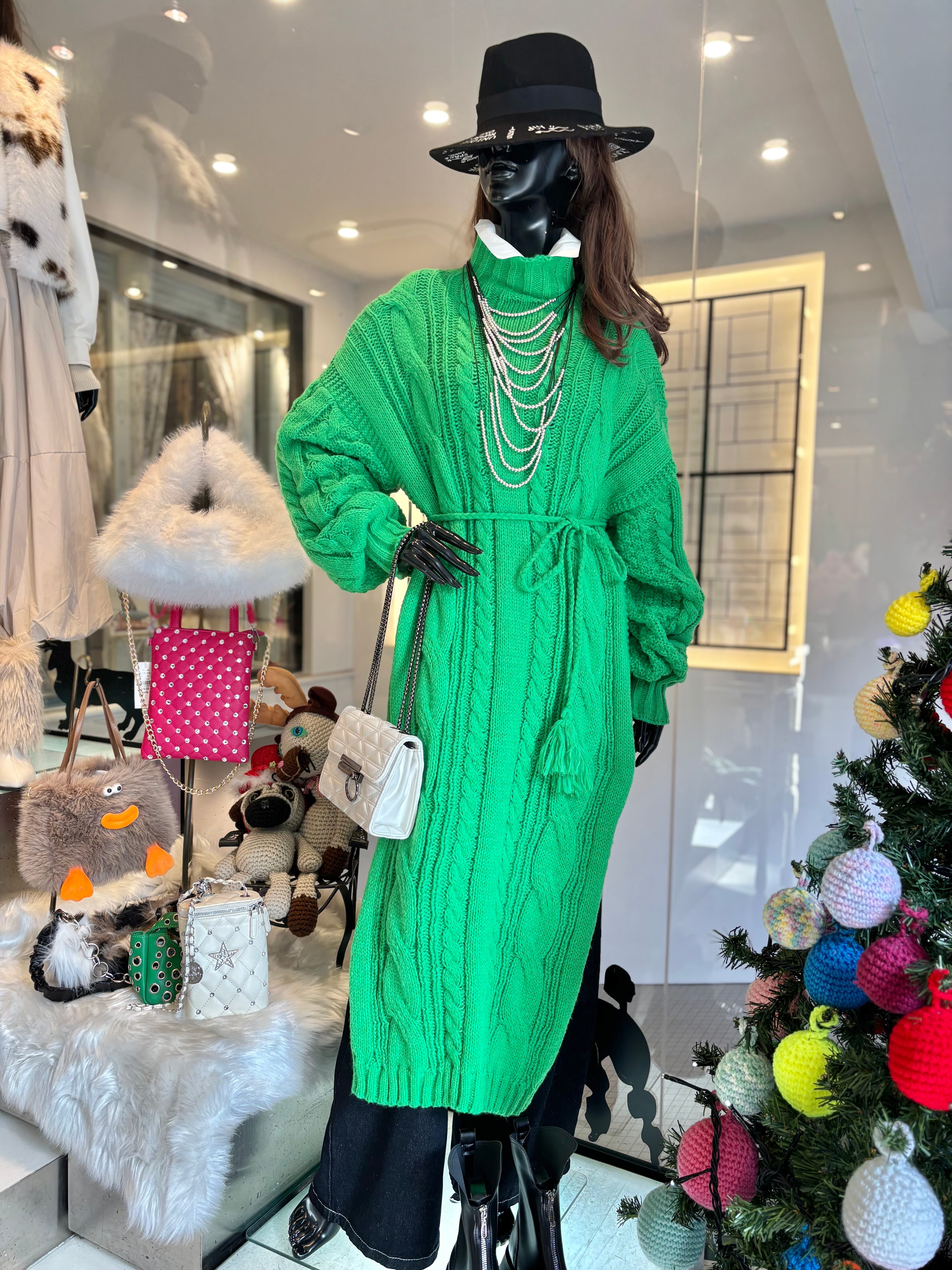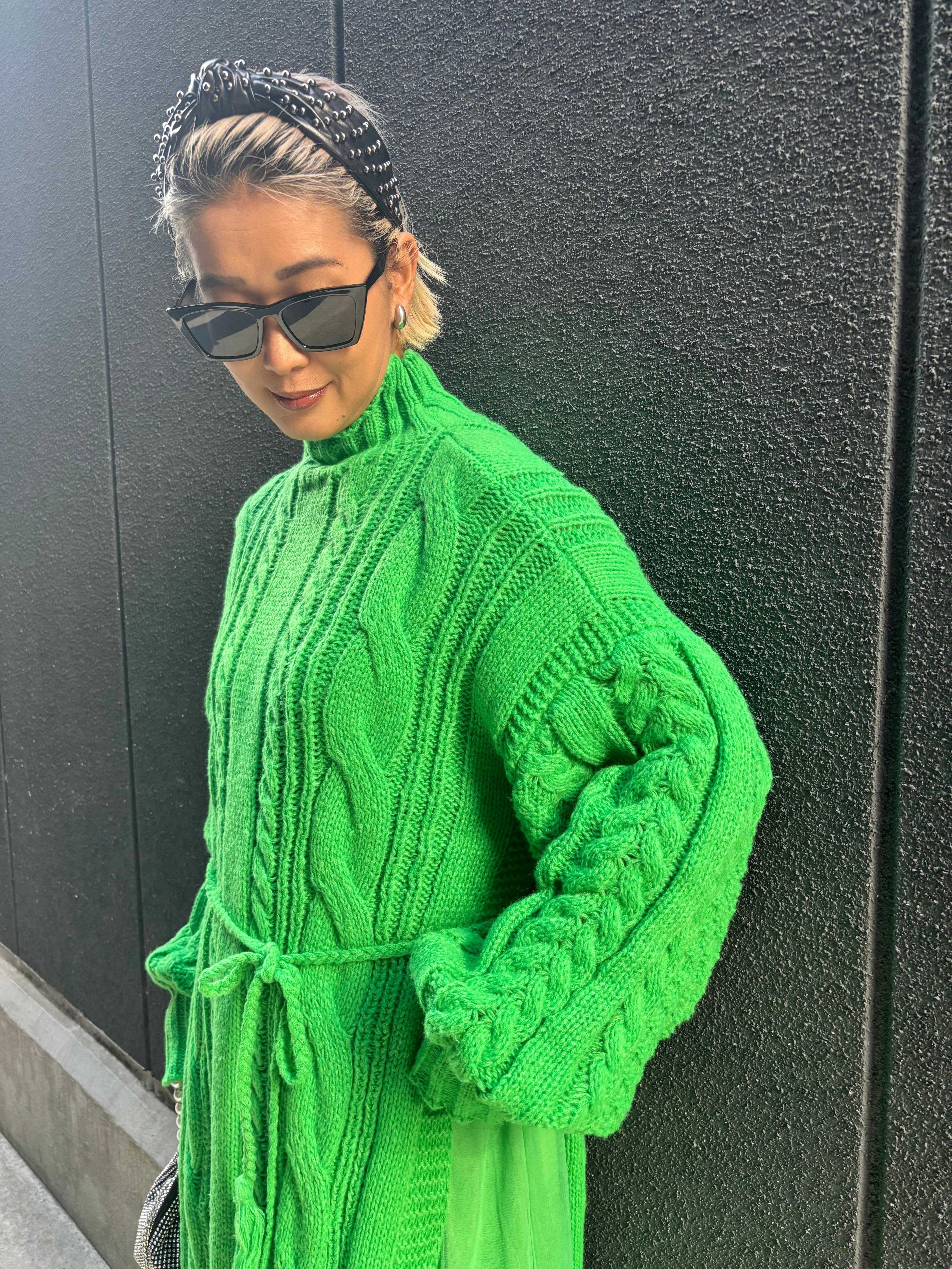cable knit design tunic × tulle skirt 2P set up セットアップ 2点セット ニット スリット チュール スカート 着回し