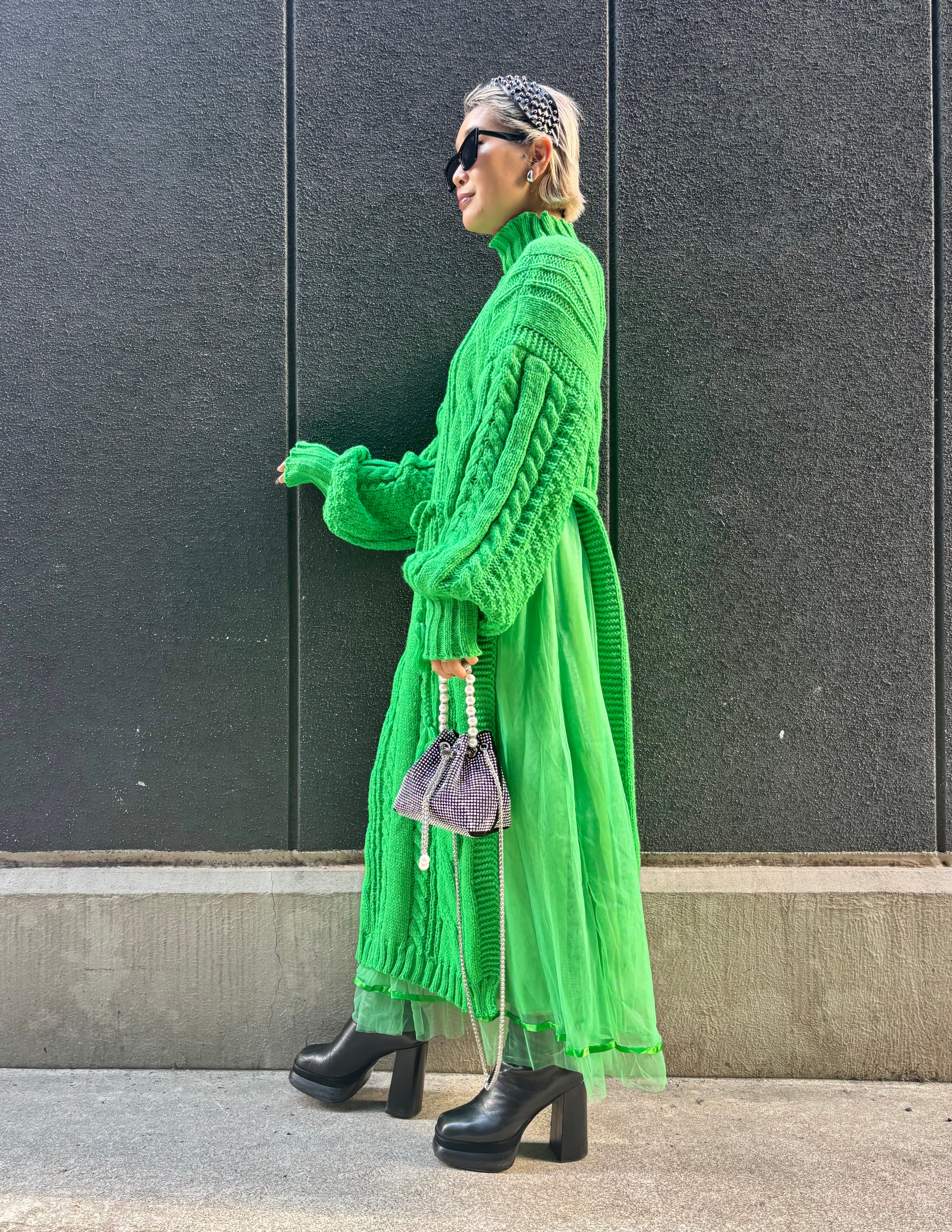 VIVIDなカラーが目を惹く一品で、カジュアルにもエレガントにも着こなせます。