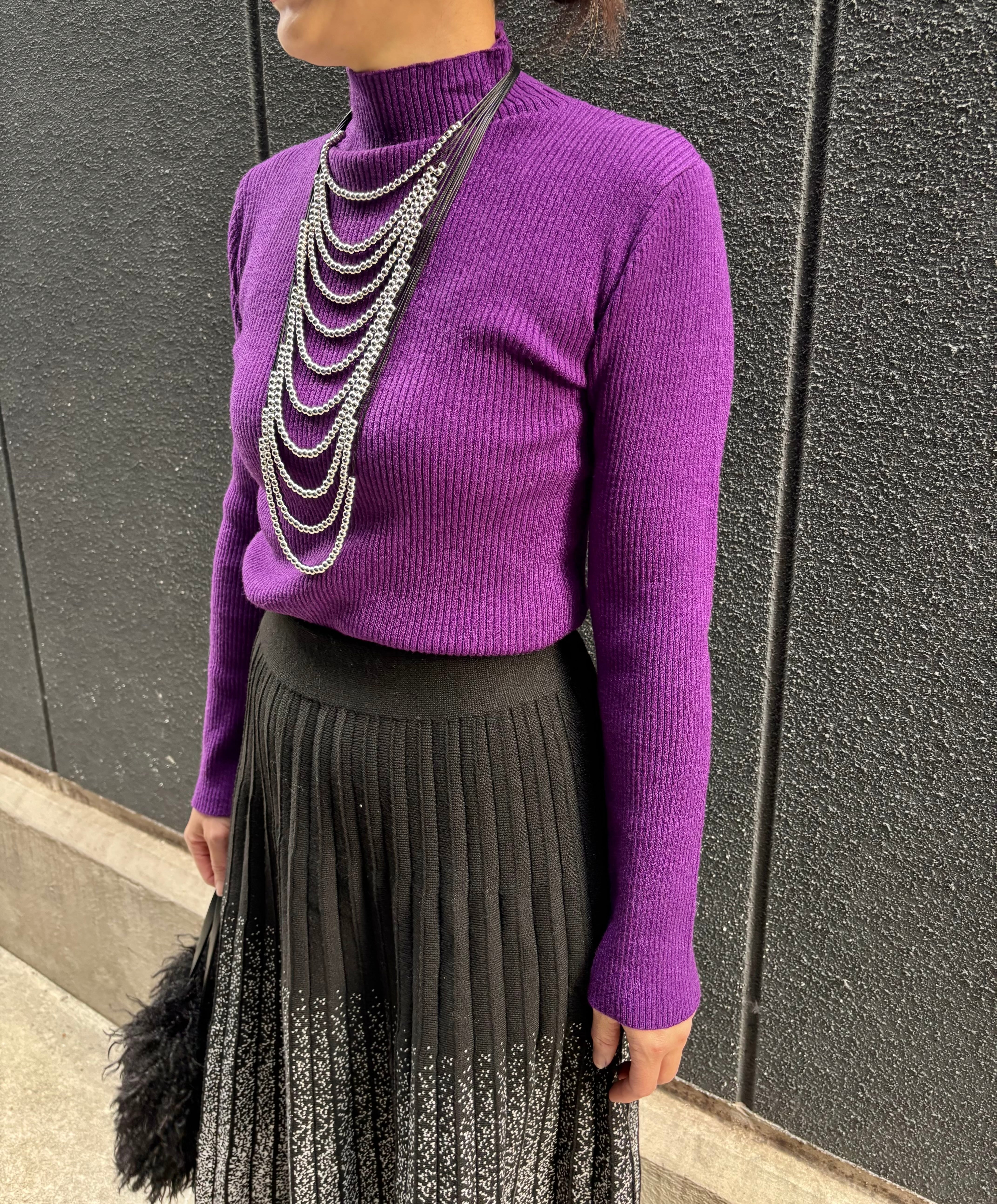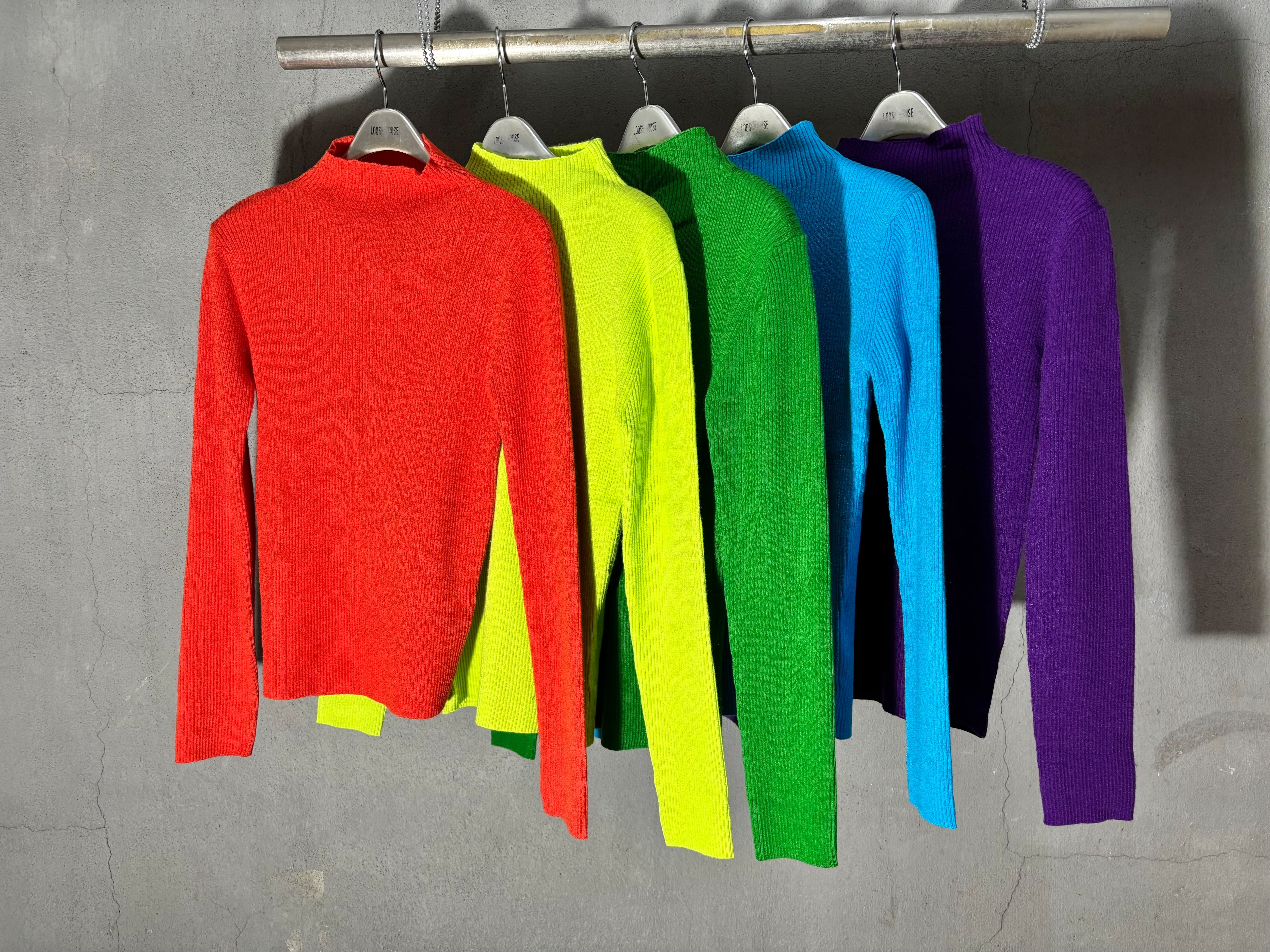 solid color × bottle neck design rib knit tops トップス ニット リブニット カラフル 重ね着 インナー 着回し