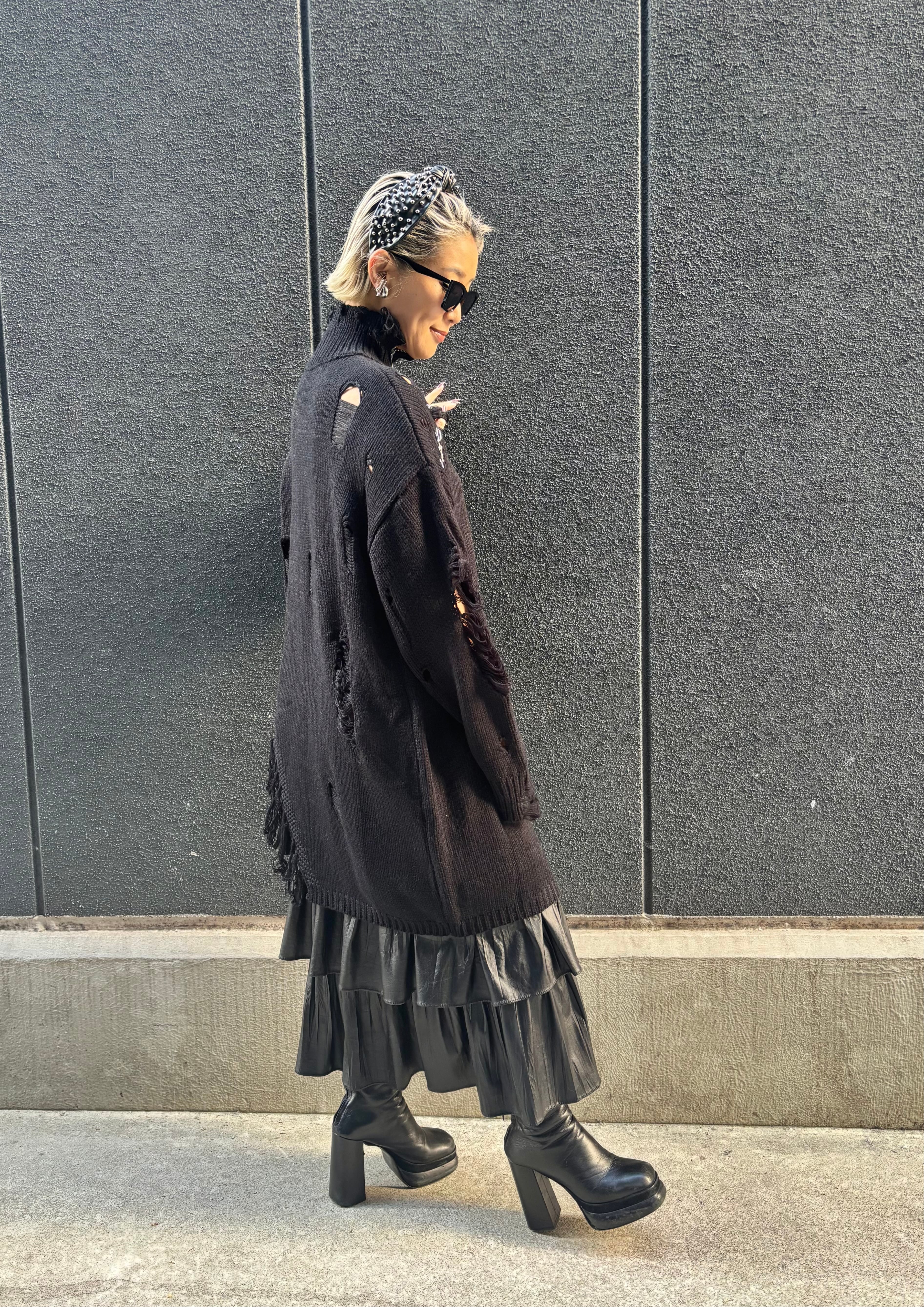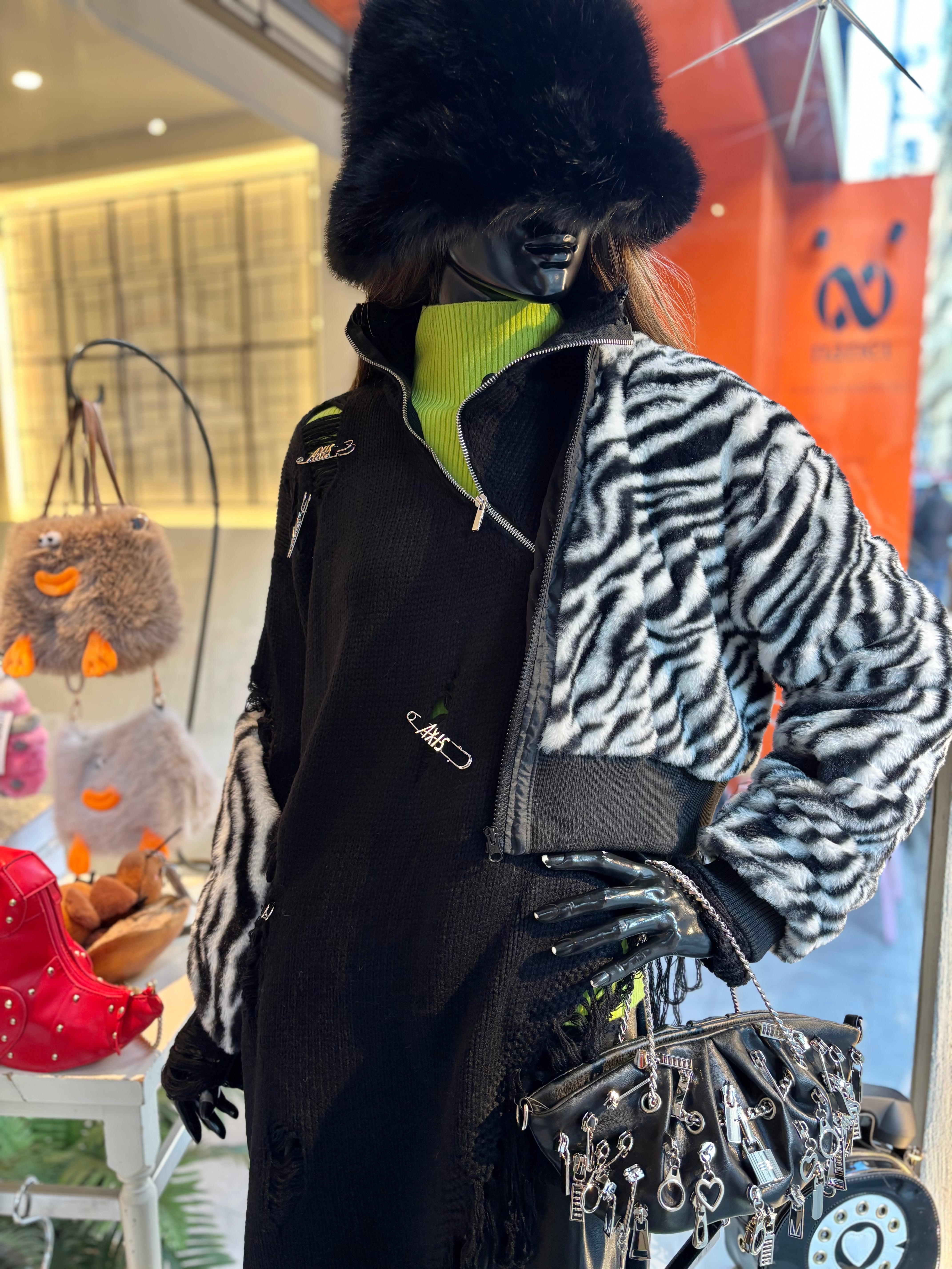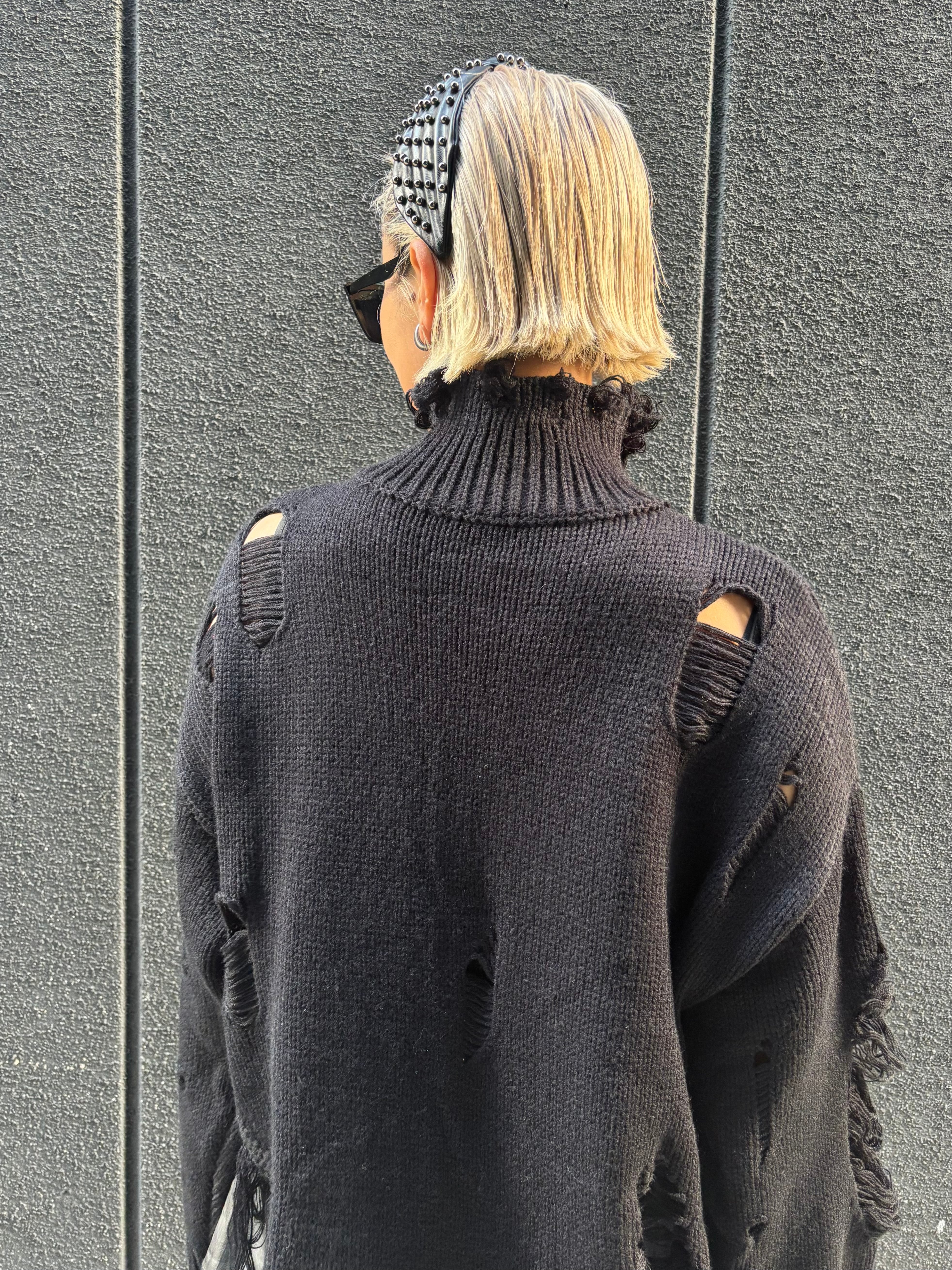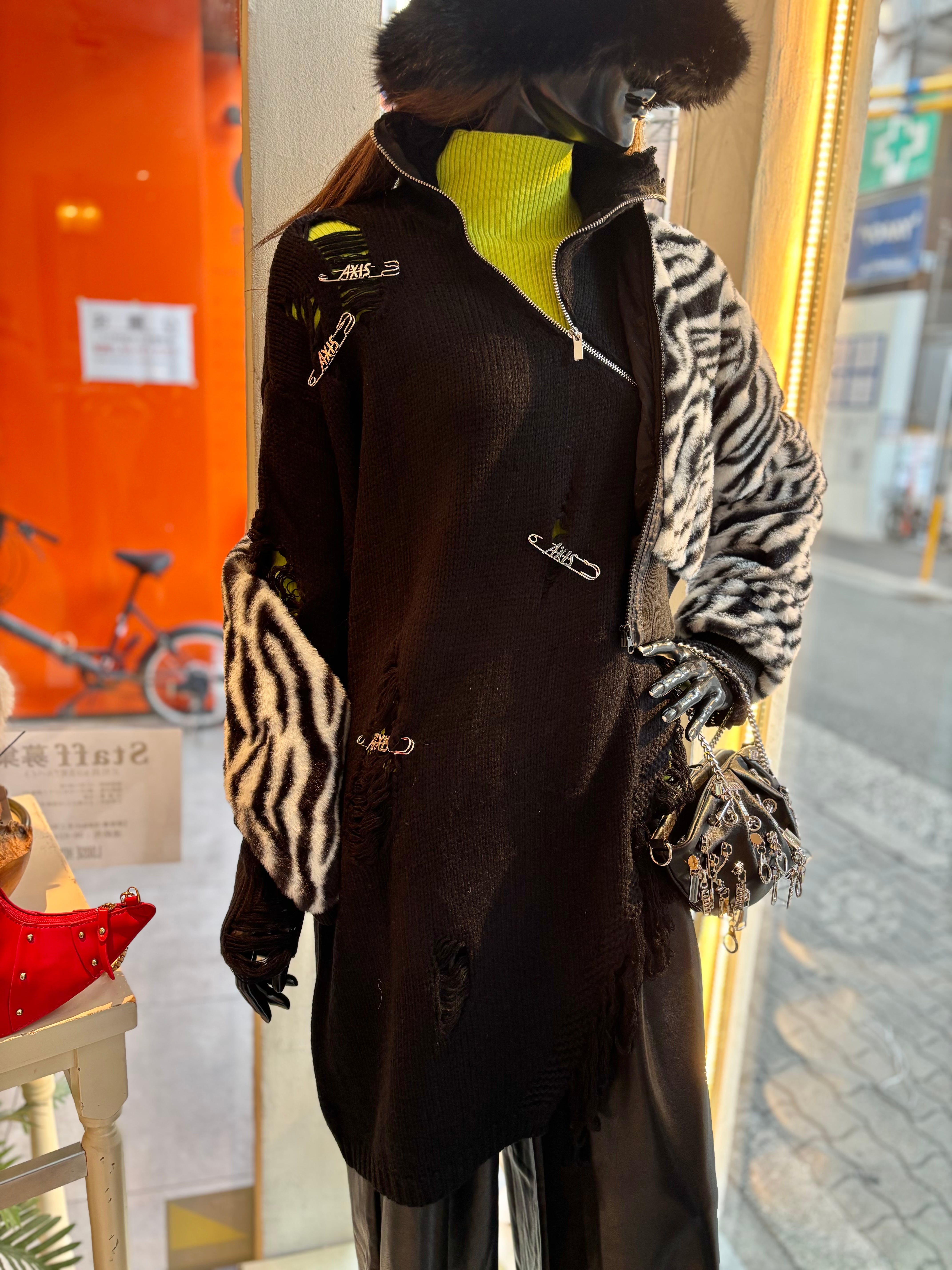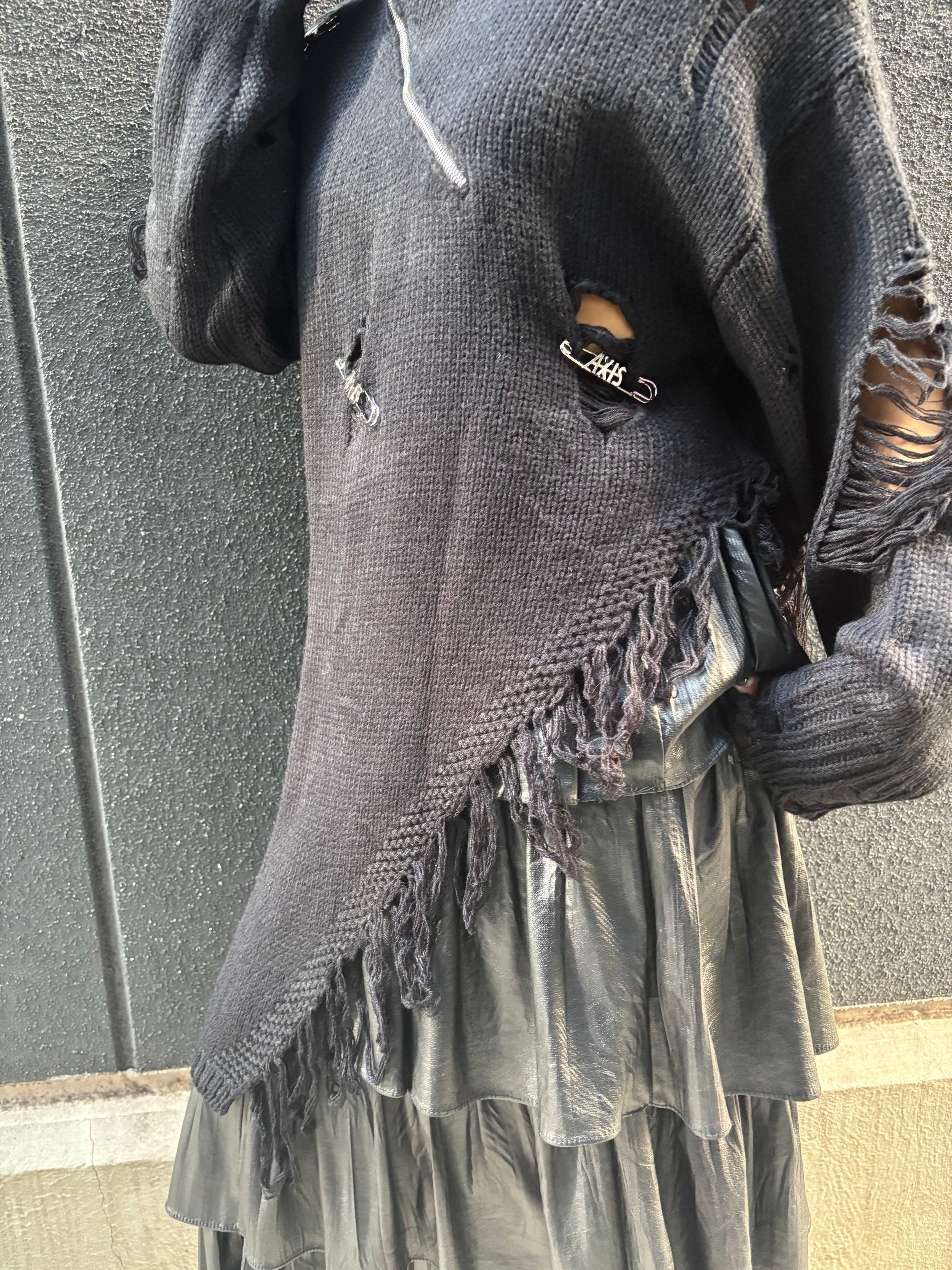 damage × safety pin × zip design knit tops ニット トップス ダメージ 安全ピン ジッパー アシンメトリー ブラック 黒