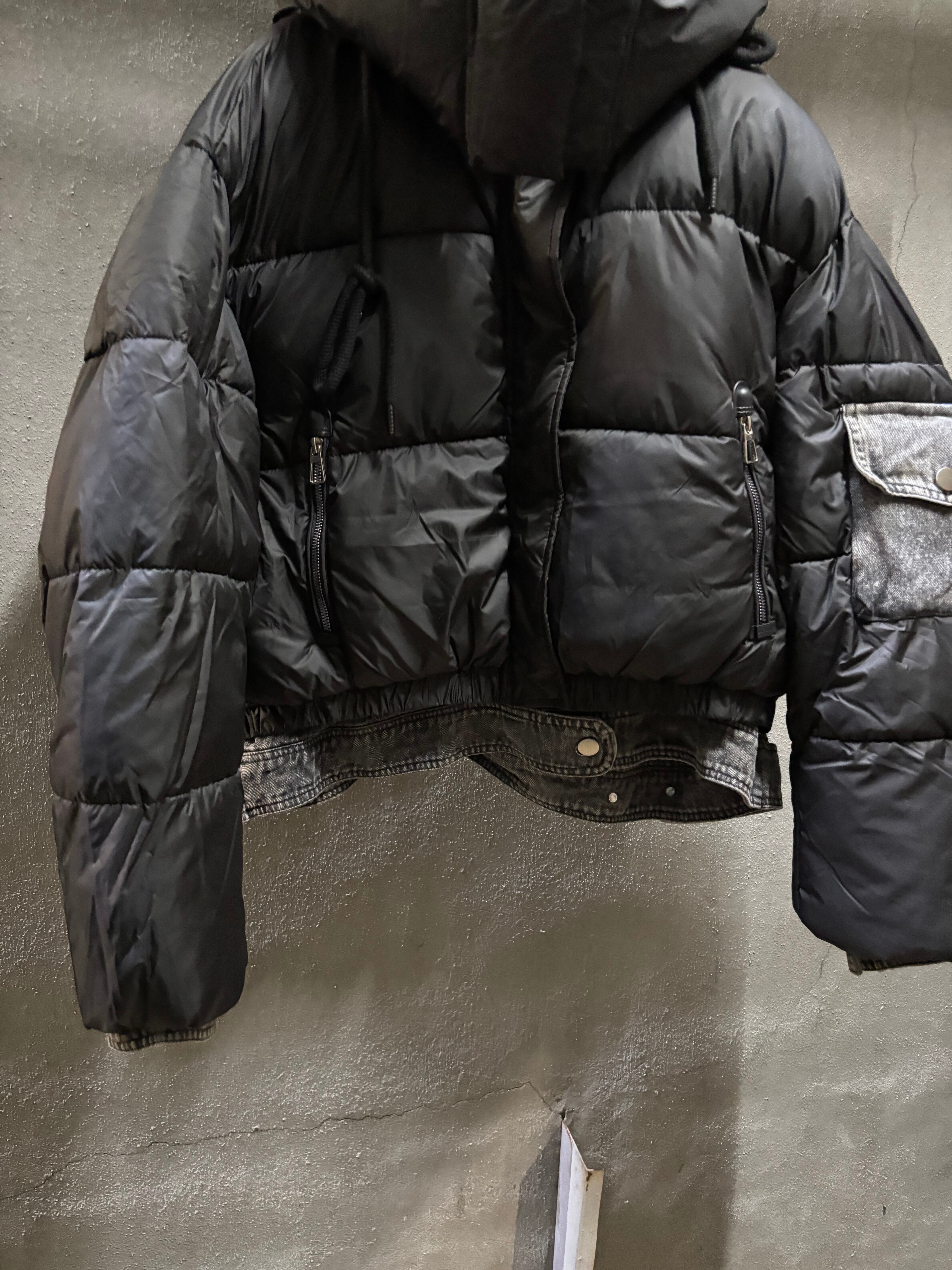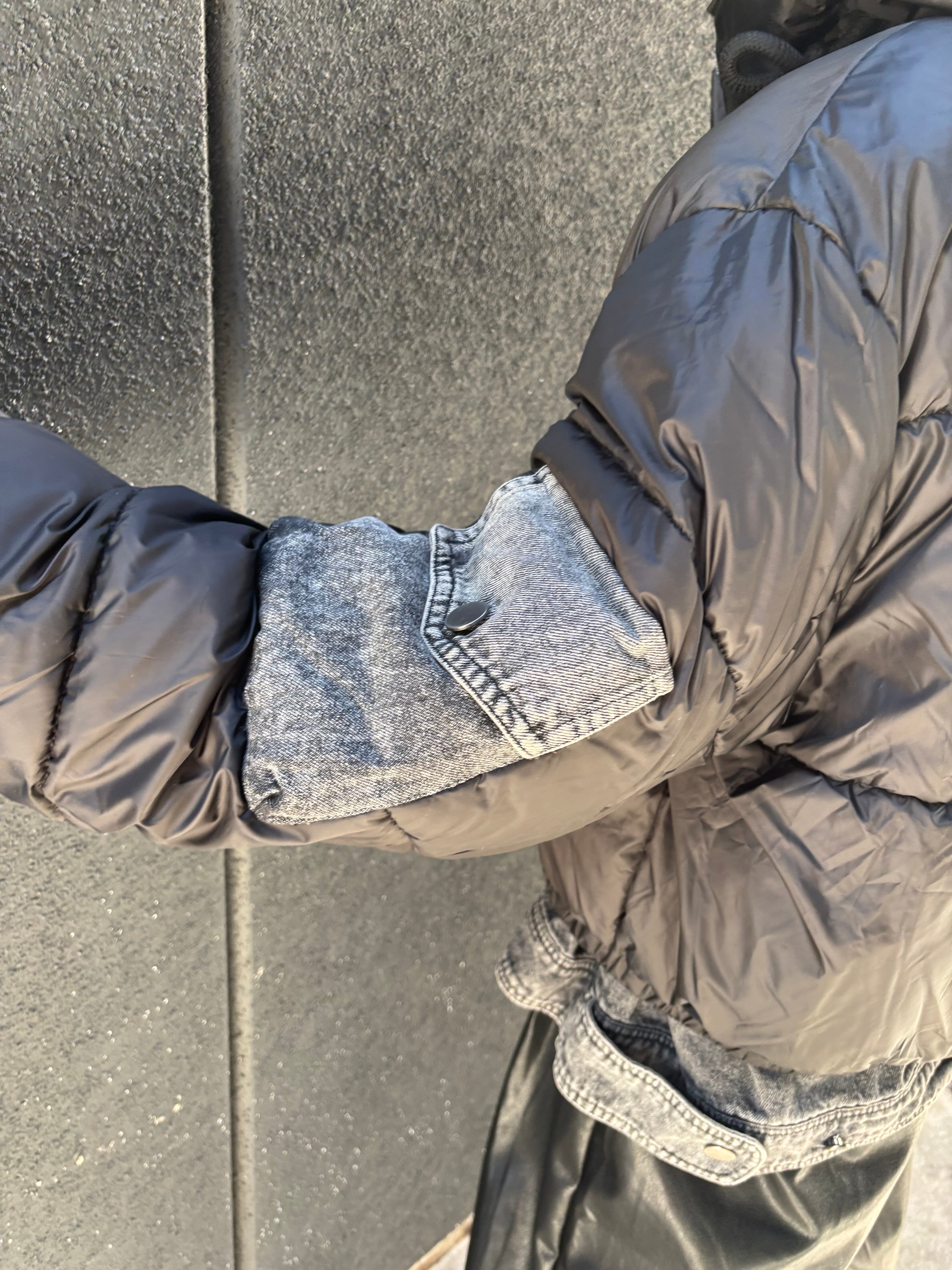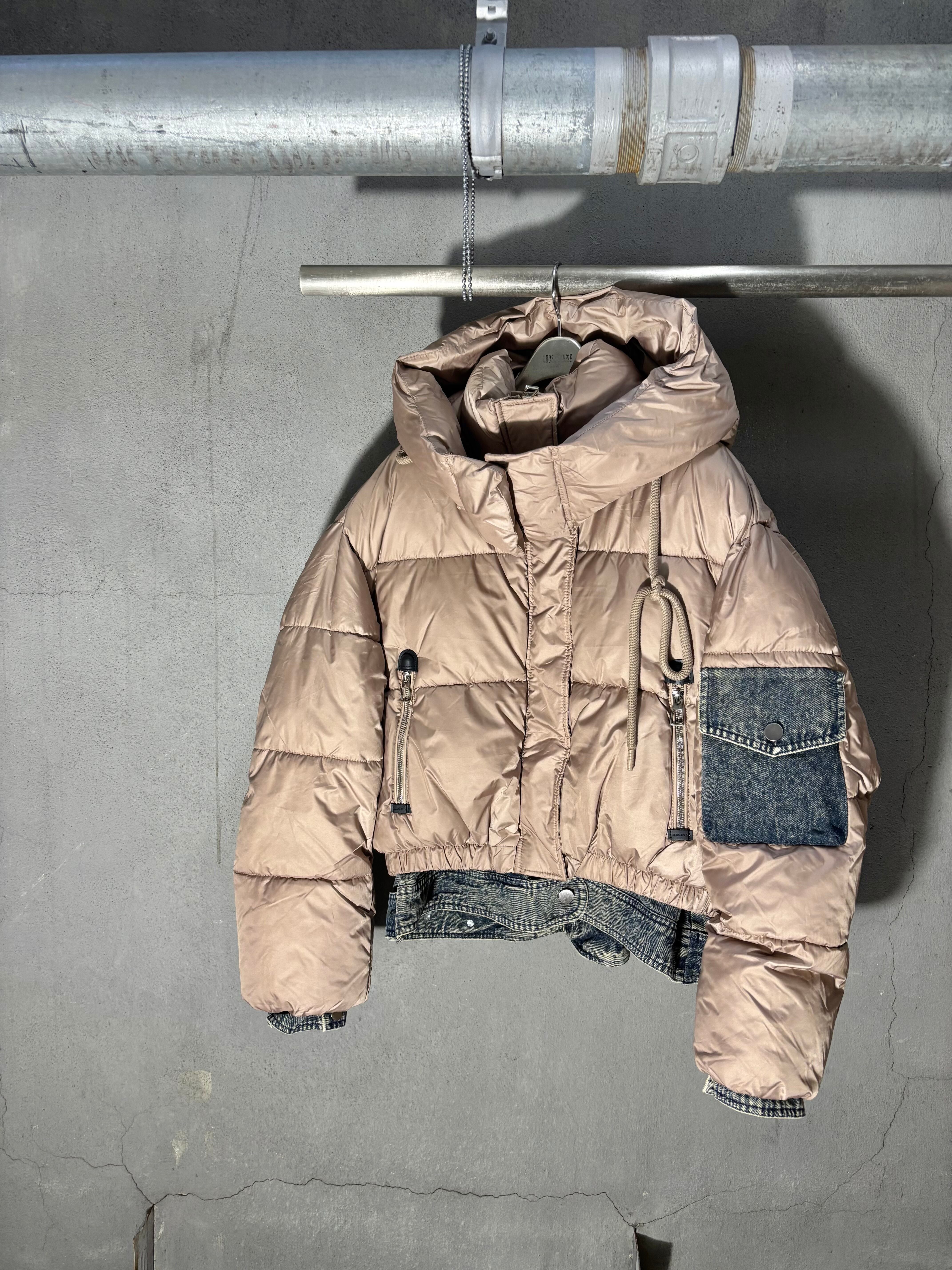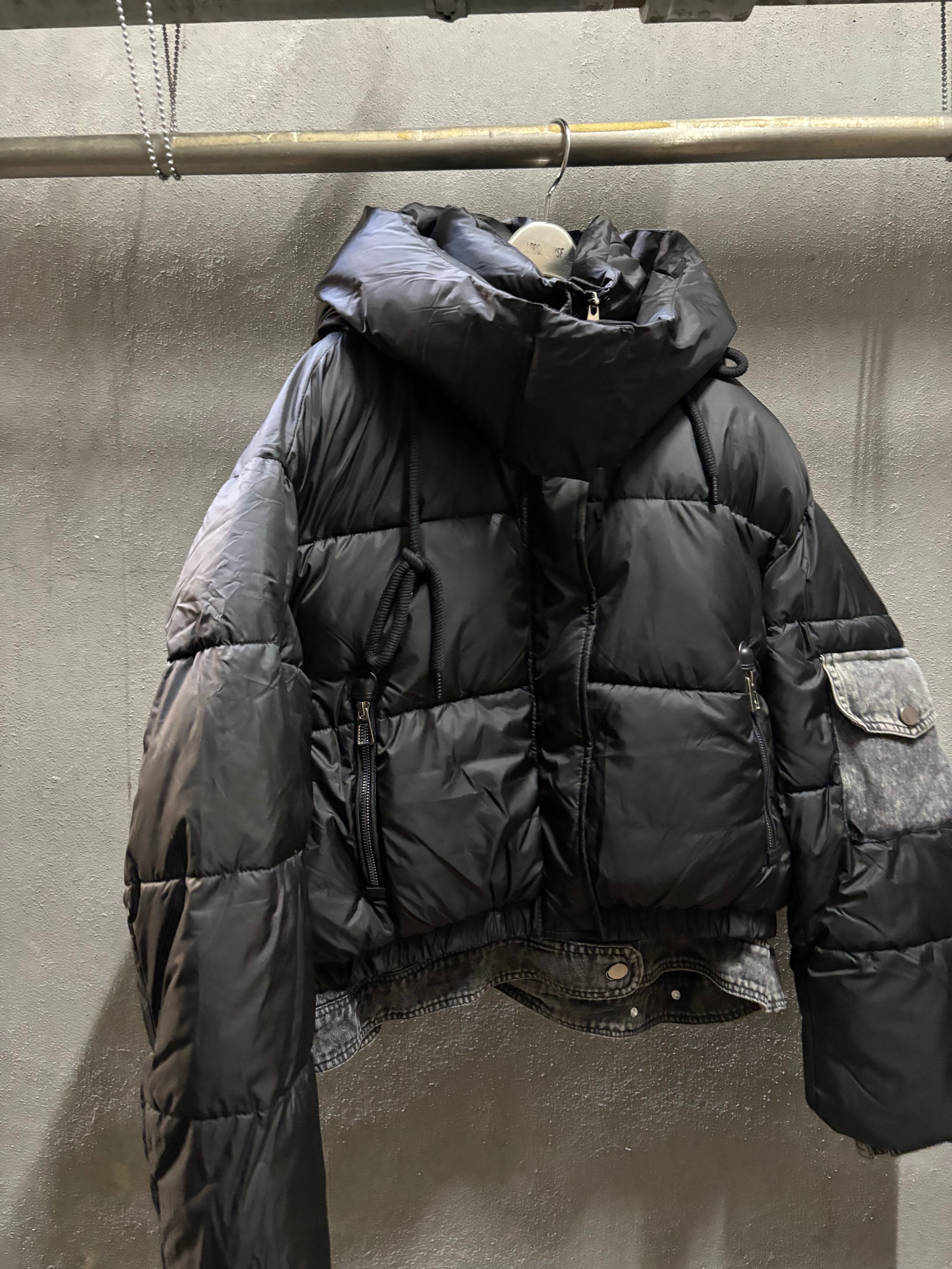 denim mix design padded hoodie jacket ジャケット アウター 中綿 キルティング デニム フード フーディー