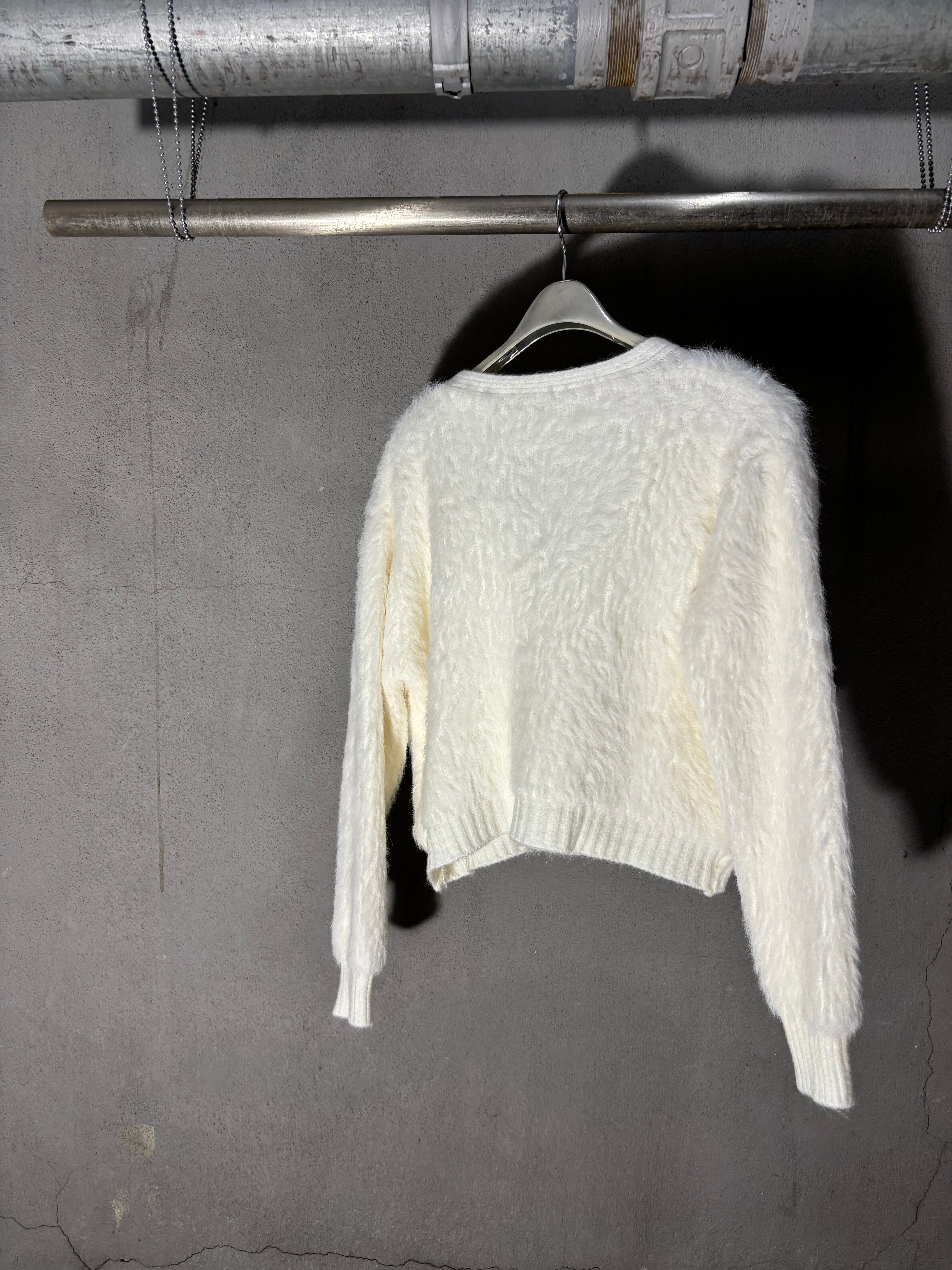 bijou V-neck design shaggy knit cardigan ニット カーディガン Vネック シャギー ビジュー キラキラ