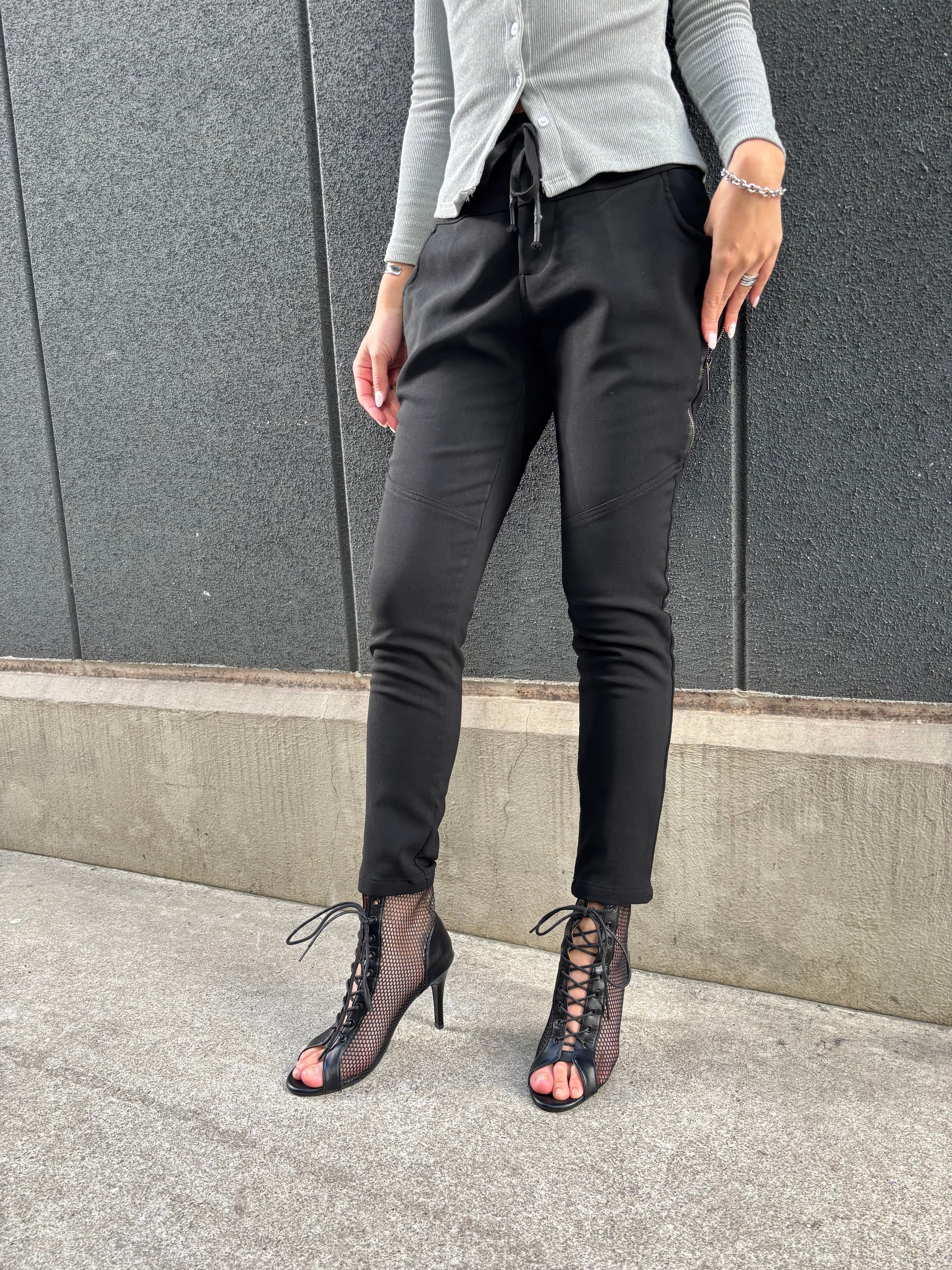 zip pocket design stretch pants パンツ ストレッチ ジップ ポケット ブラック 黒 裏起毛