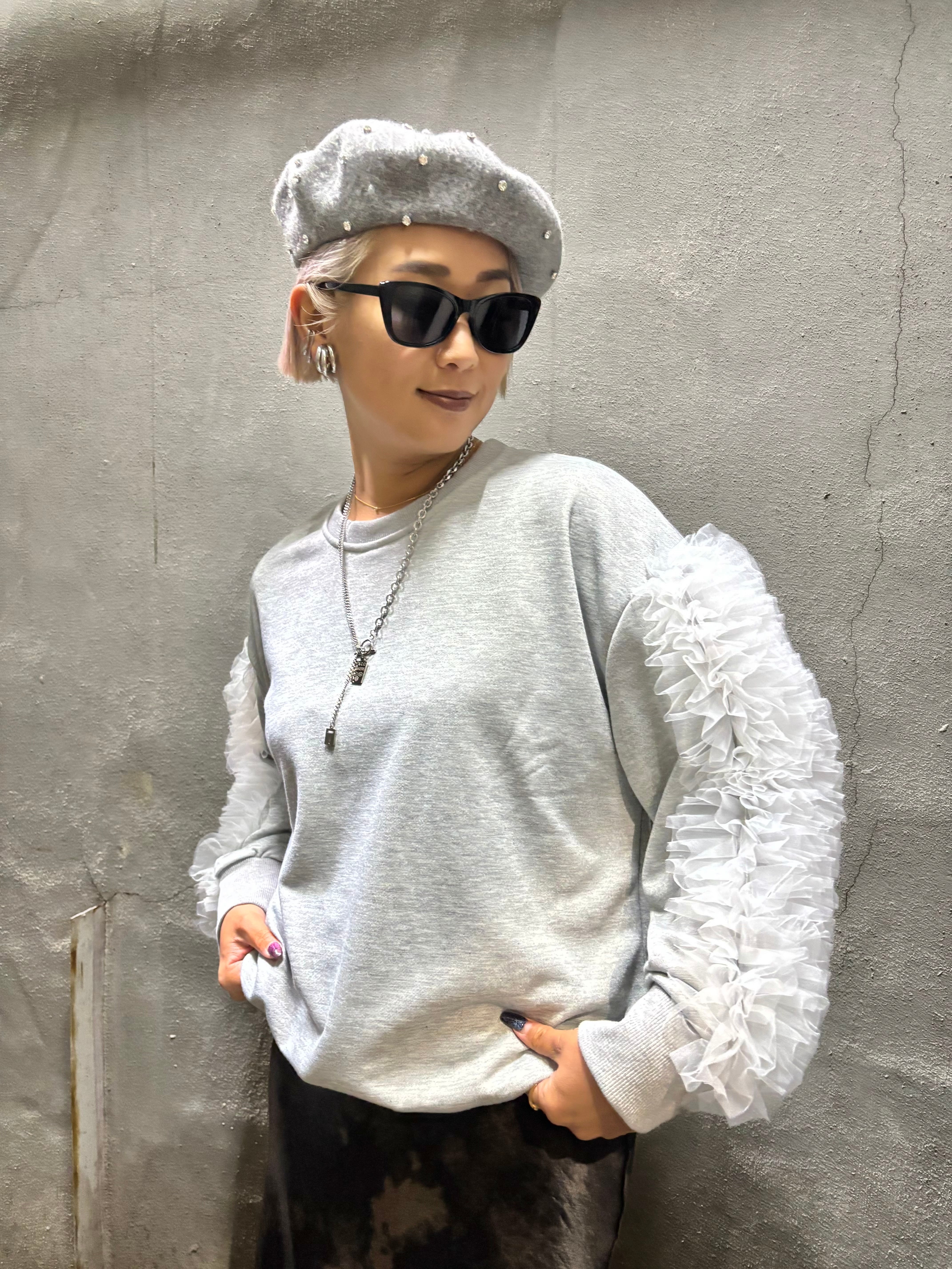 tulle frill sleeve design tops trainer トップス チュール フリル スウェット トレーナー 裏毛