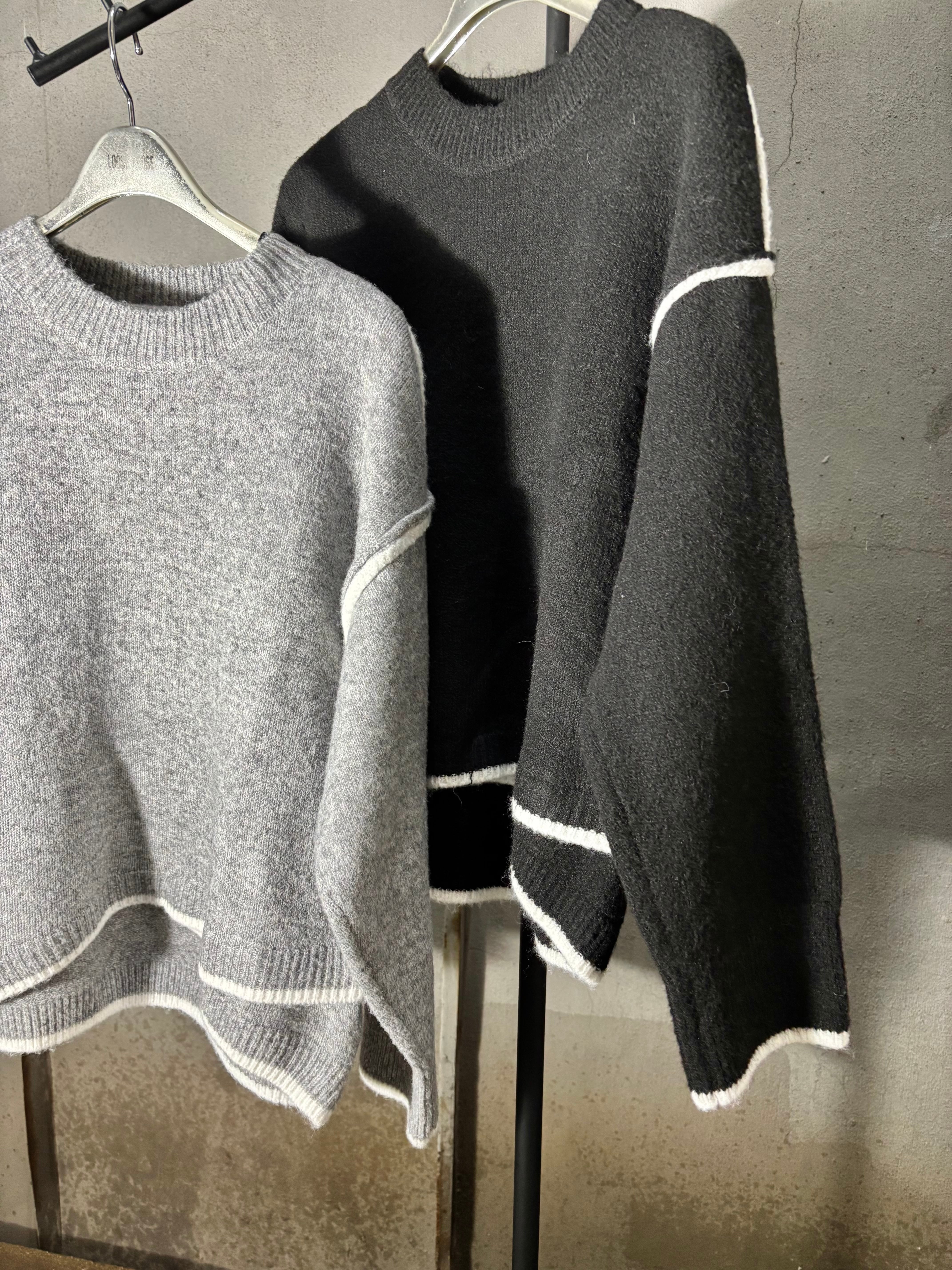 bi-color line knit tops sweater トップス ニット セーター 配色 バイカラー ライン
