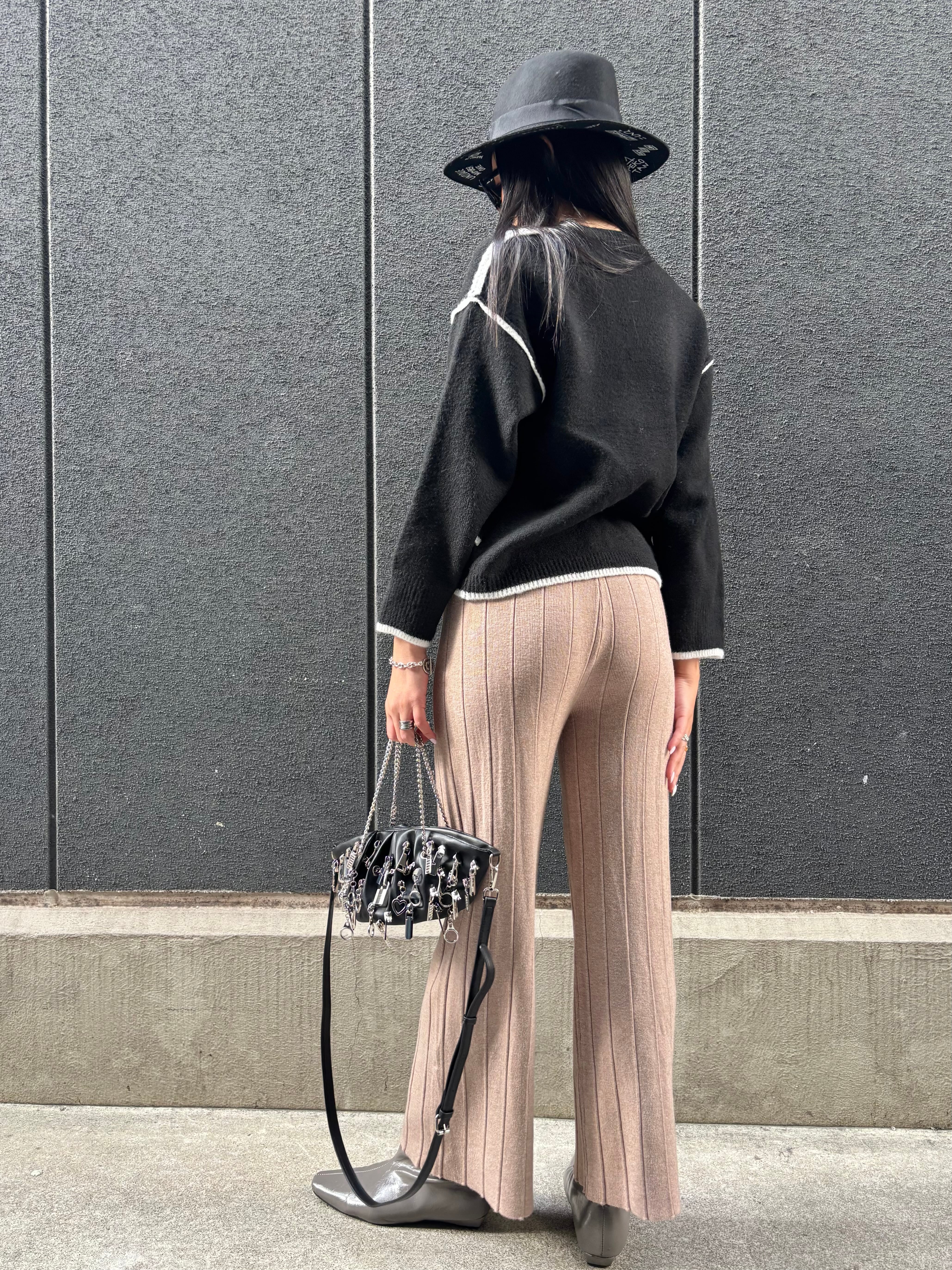pattern rib knit long pants パンツ ニット リブニット リラックス