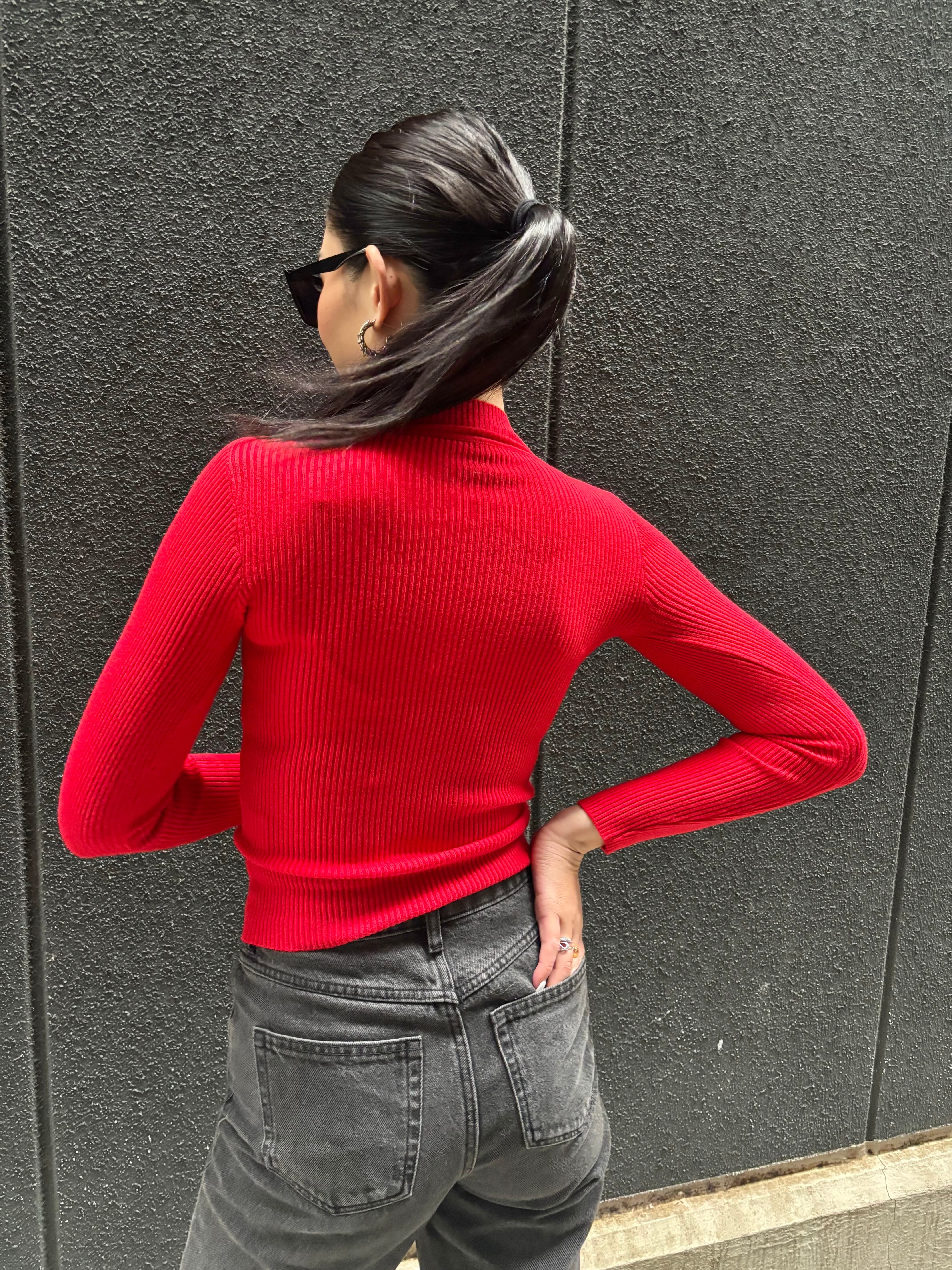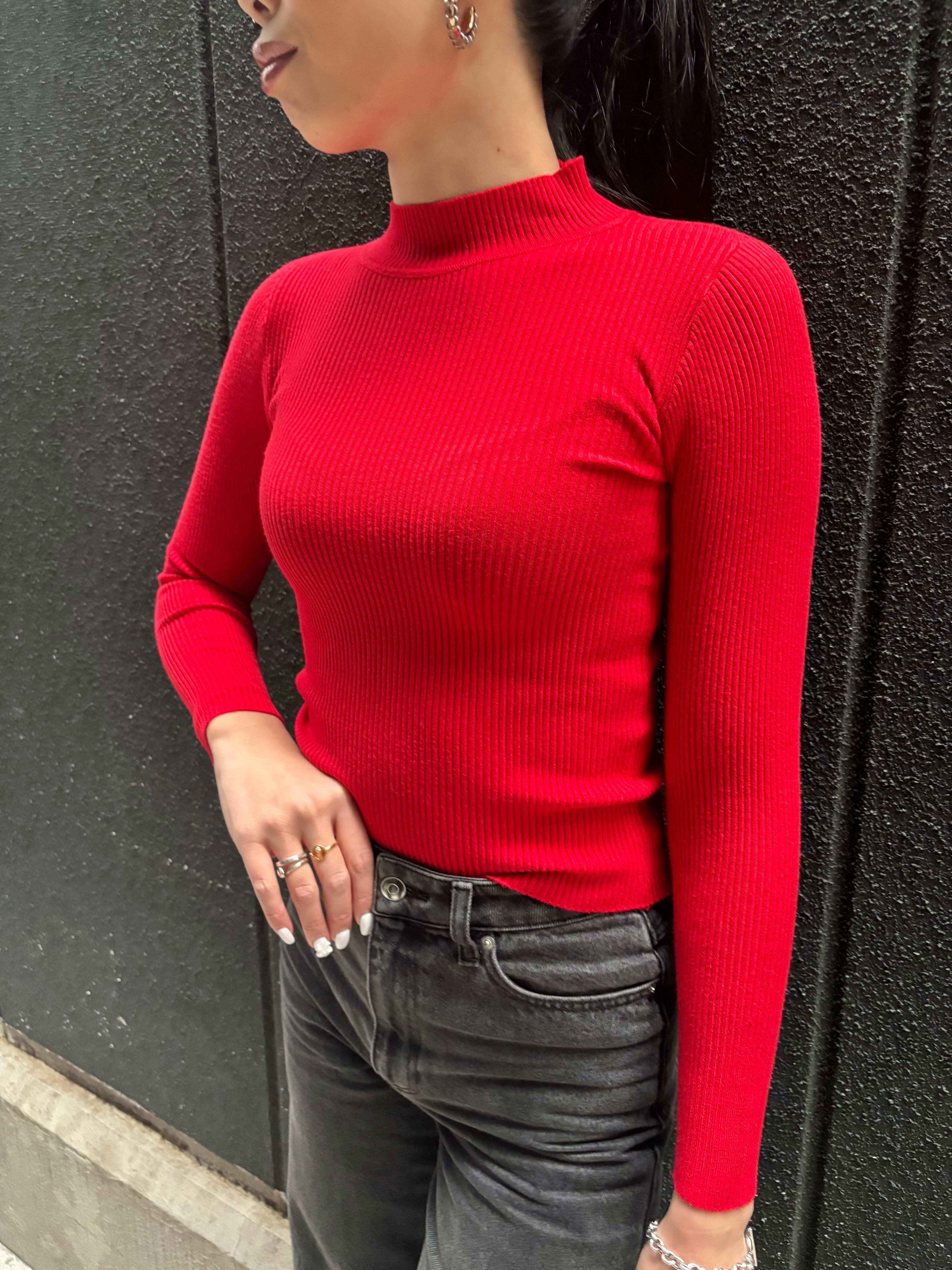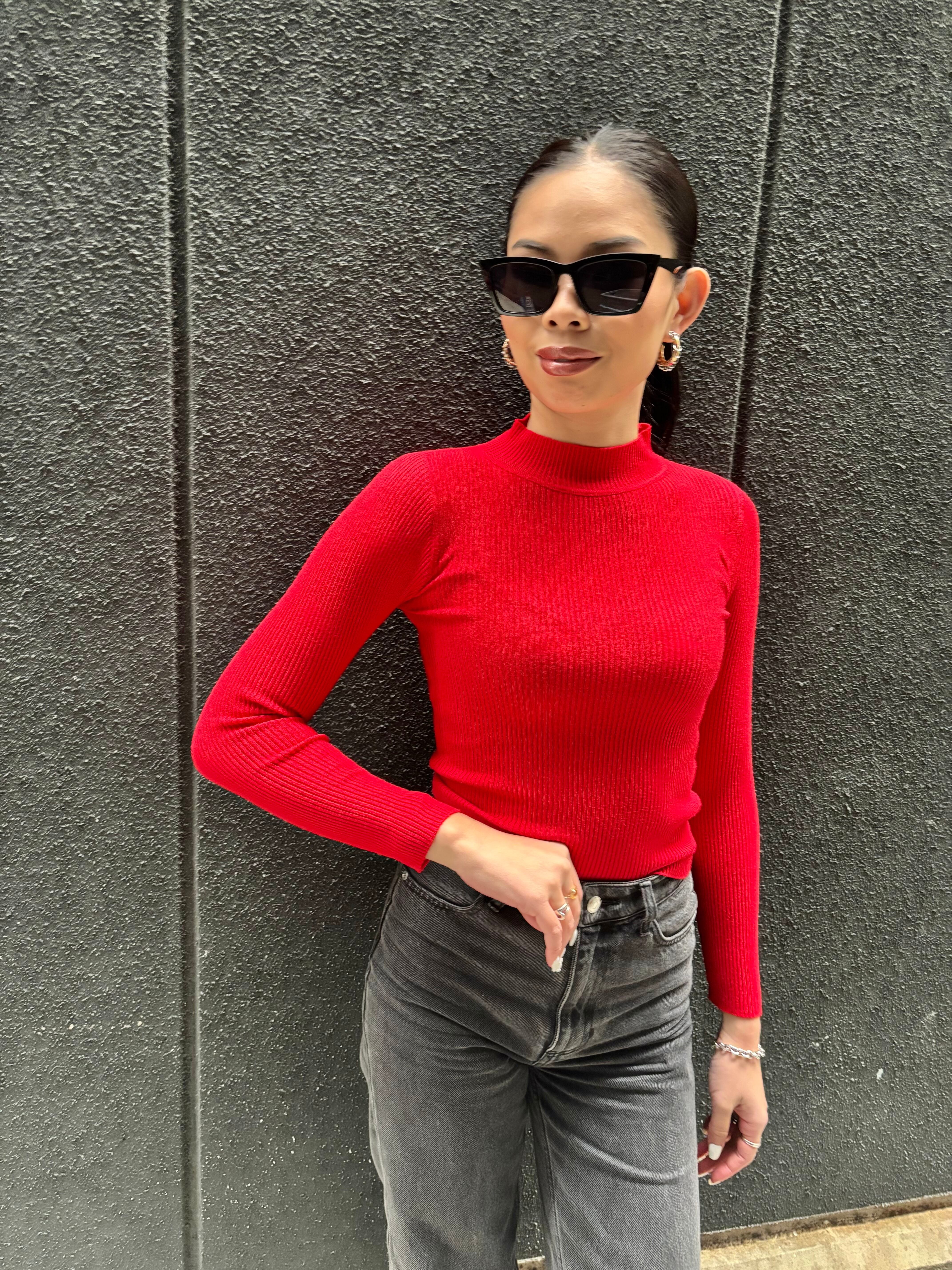 このリブニットのハイネックデザインは、どんなスタイルにも合わせやすく、