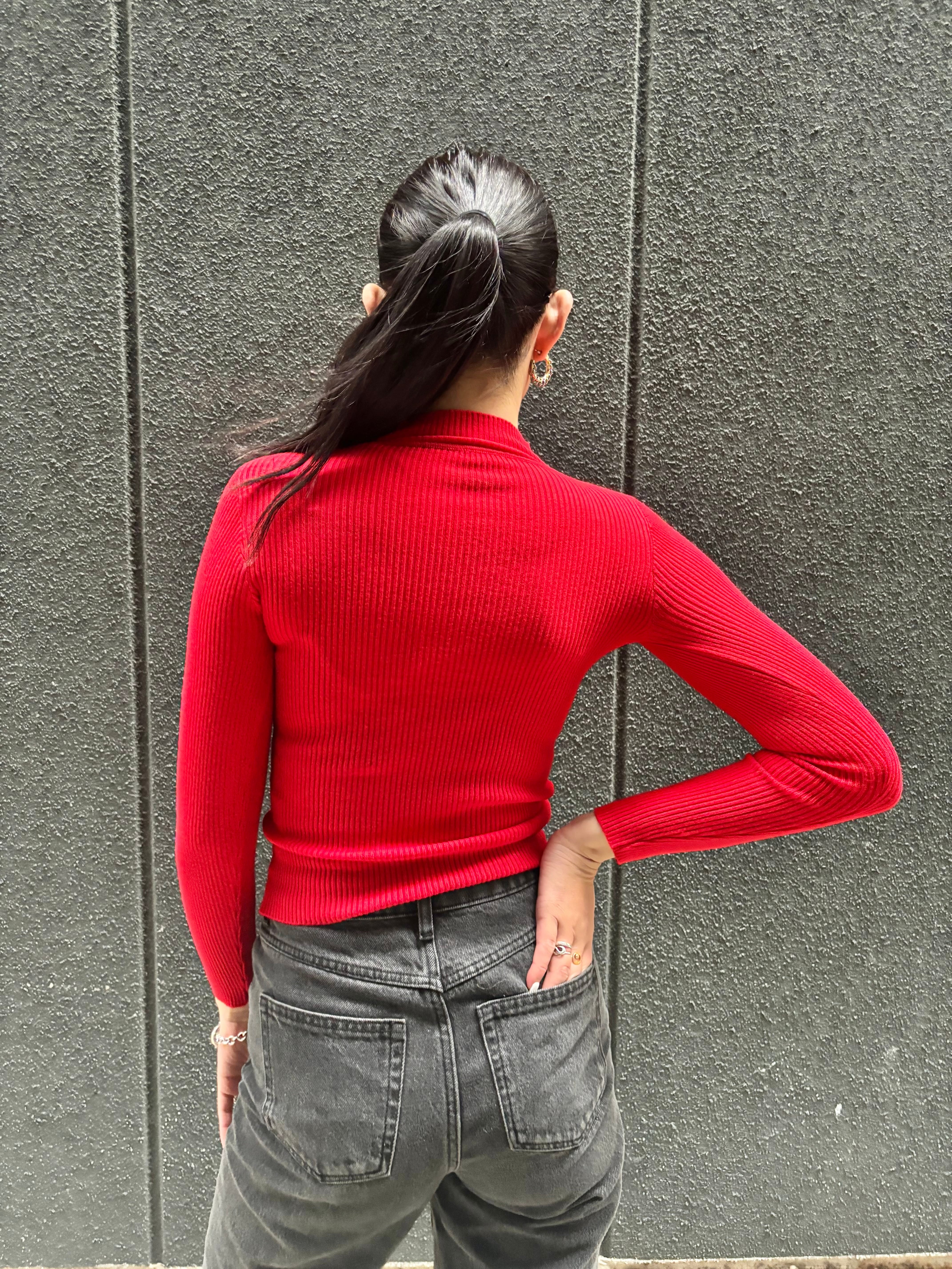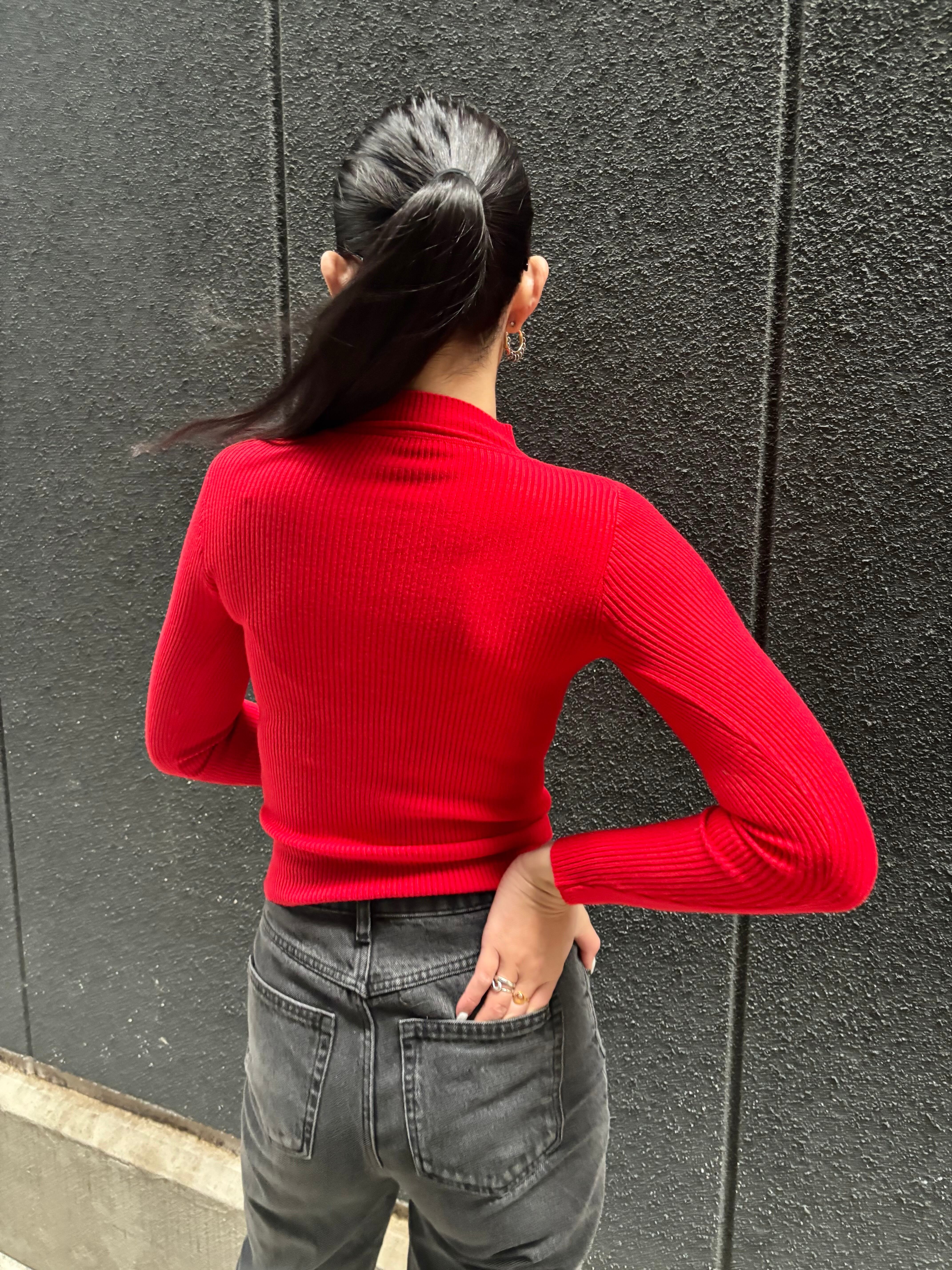 high neck design rib knit tops ニット リブニット ハイネック 着回し