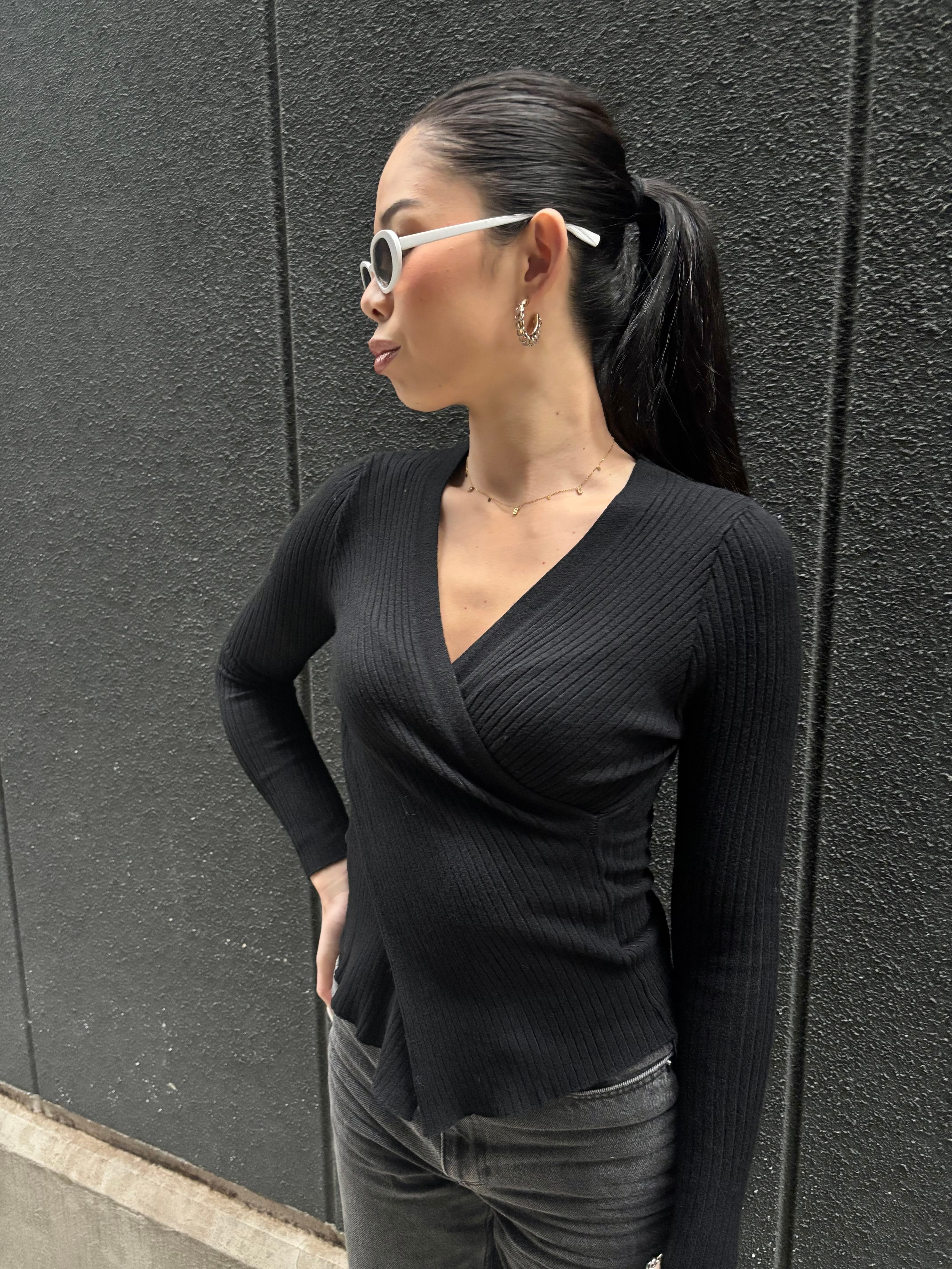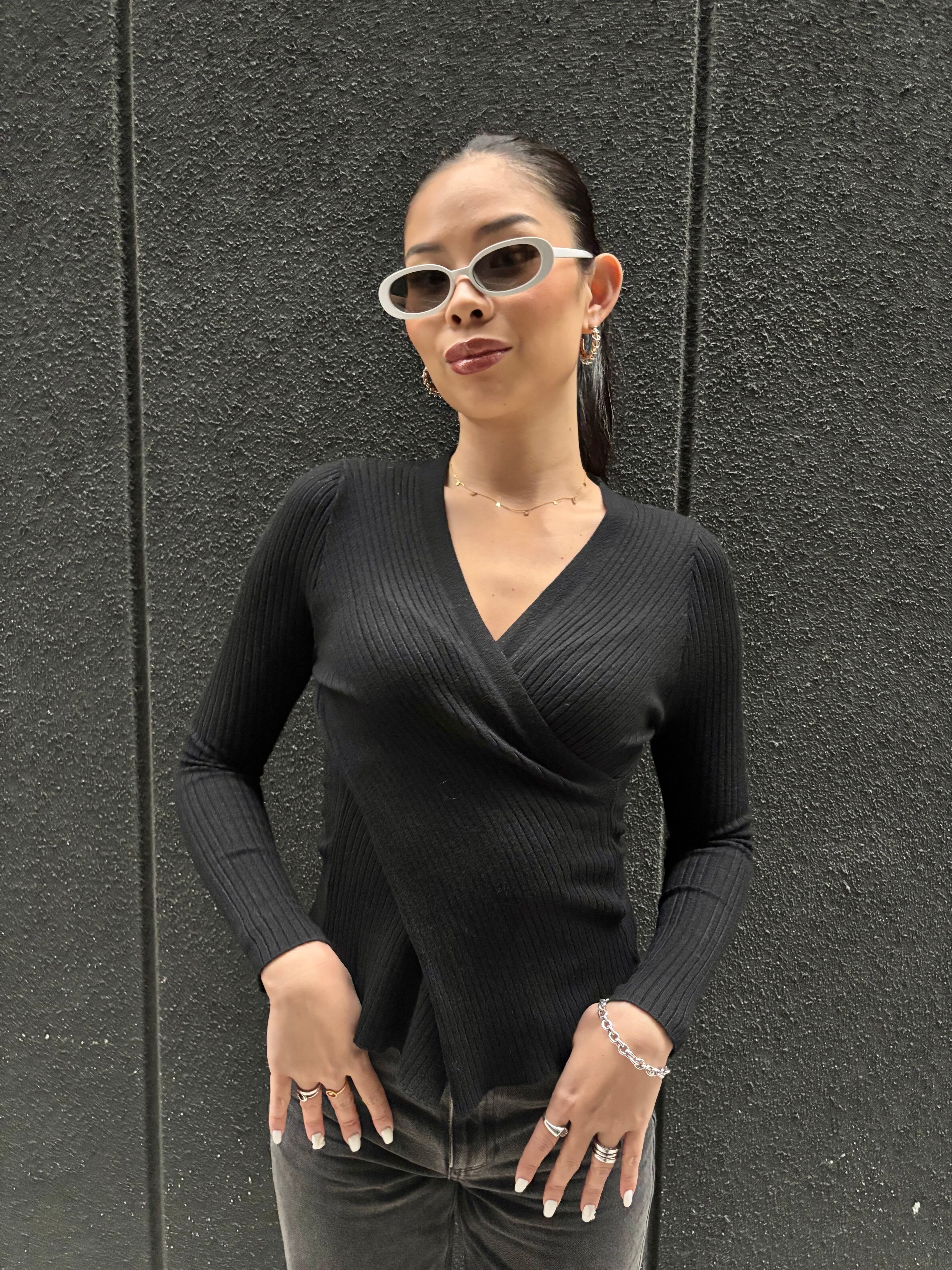 cross body V-neck design rib knit tops トップス ニット リブニット Vネック