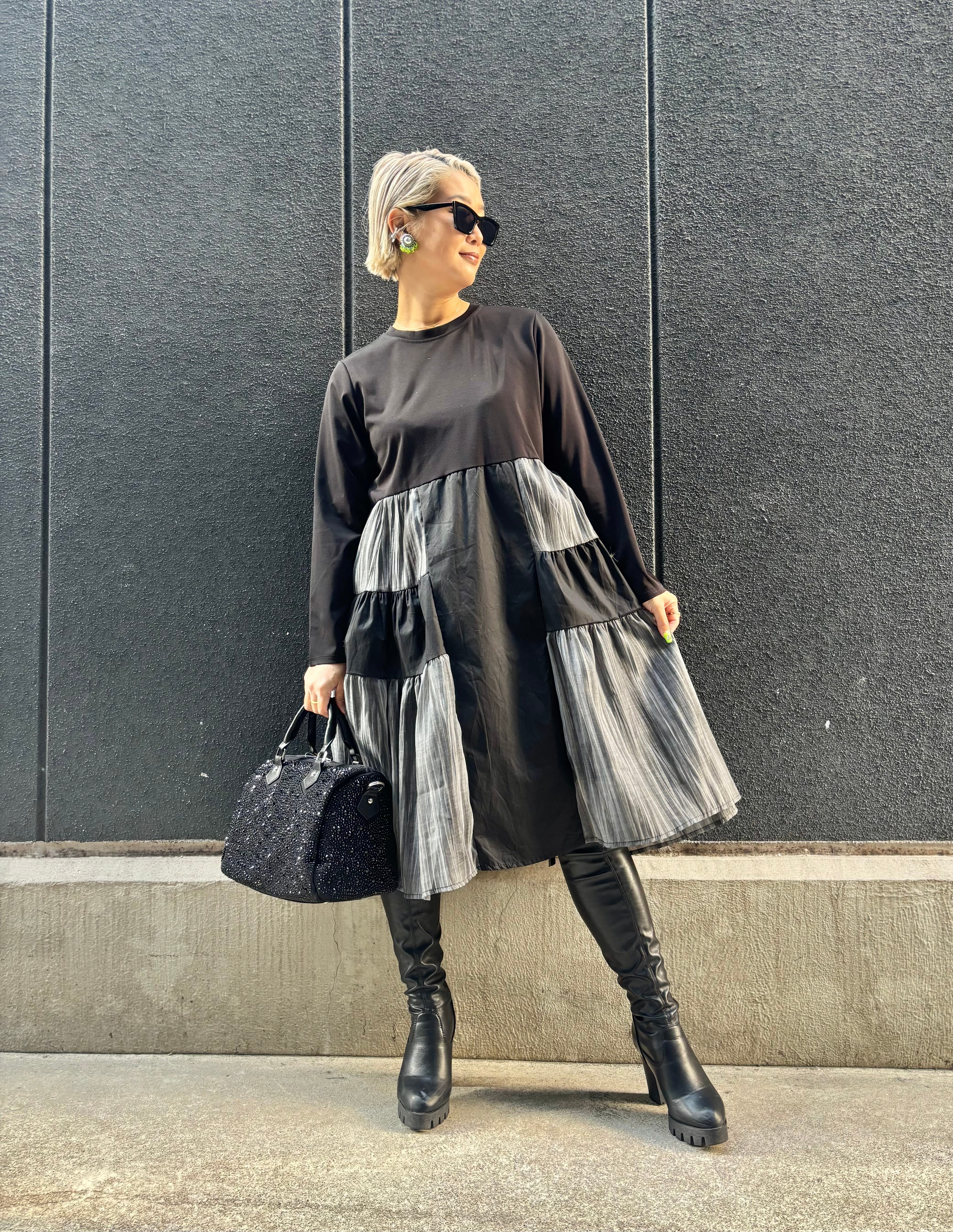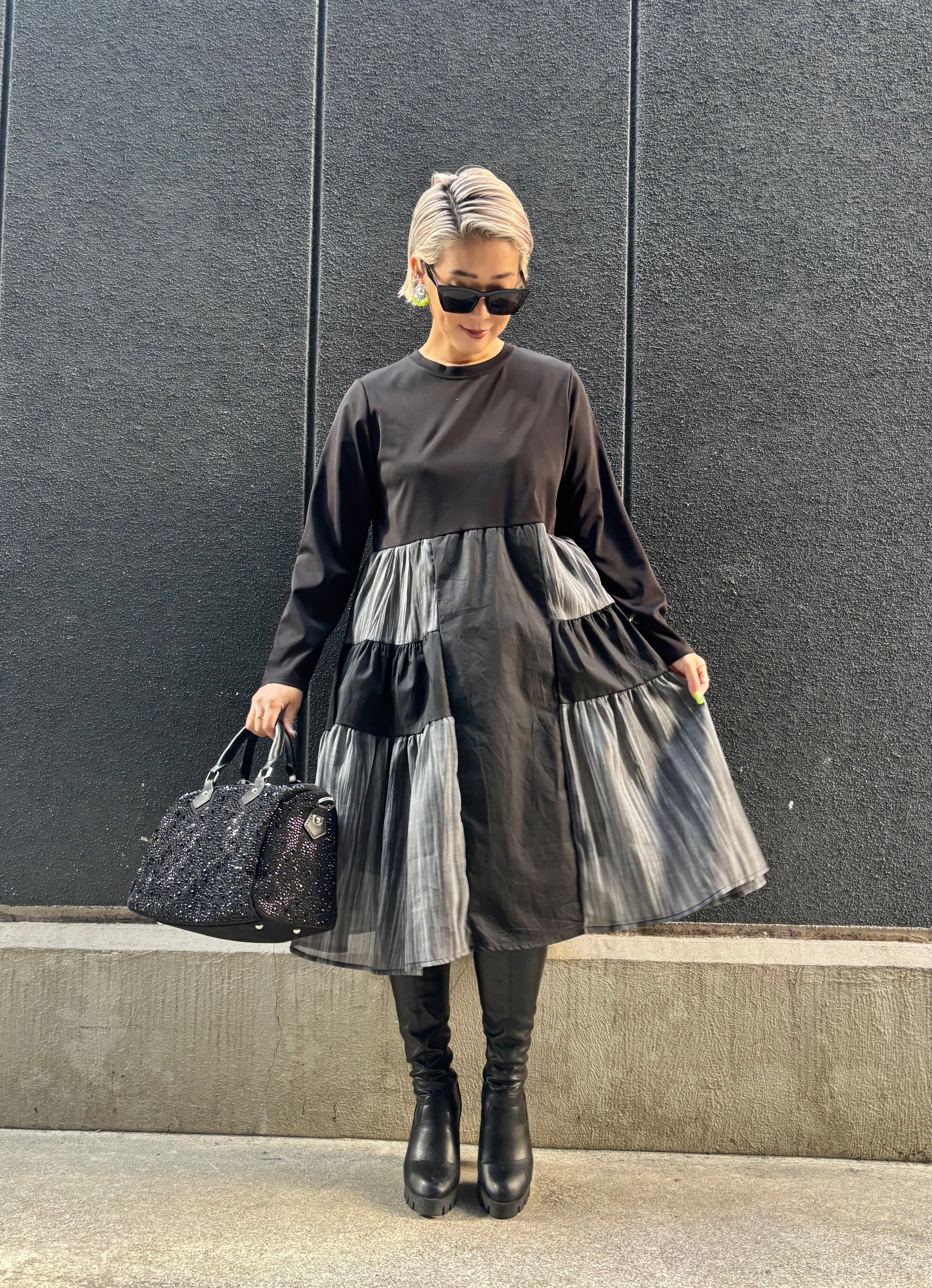 異素材の切替デザインが魅力的な、サラッと1枚でオシャレに決まるワンピースです!