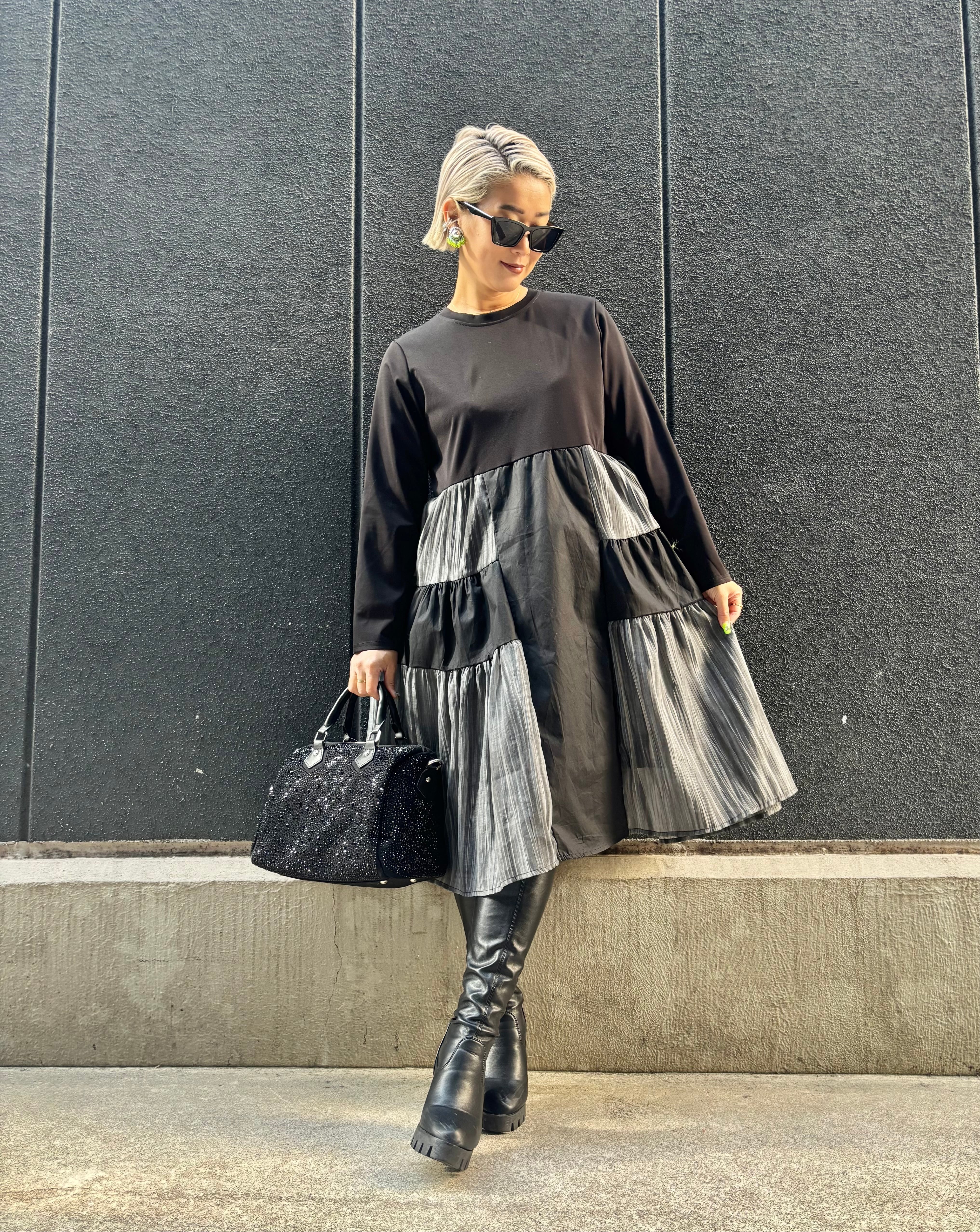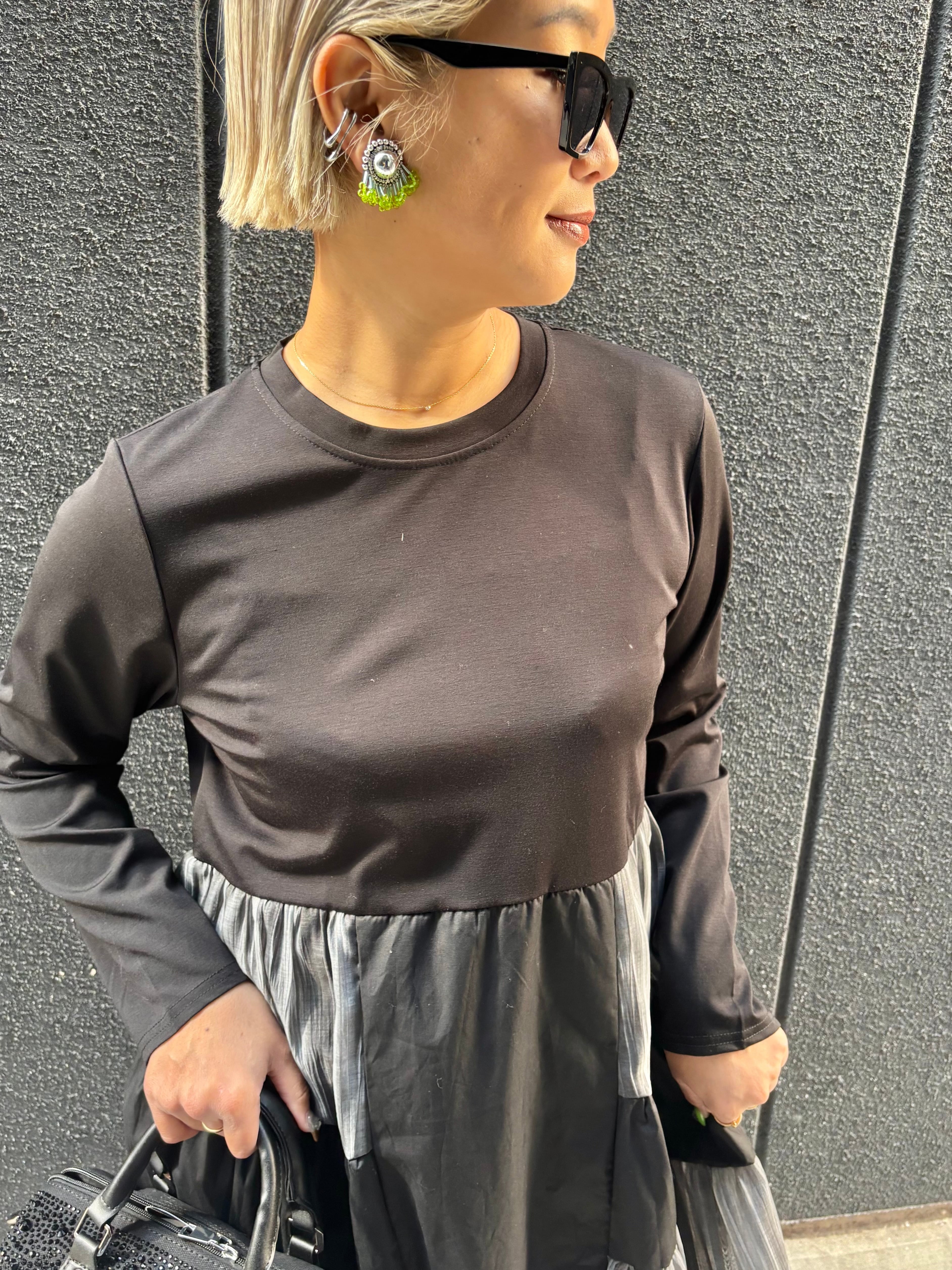 different fabrics change design one-piece ワンピース ワンピ 異素材切替 デザインワンピ