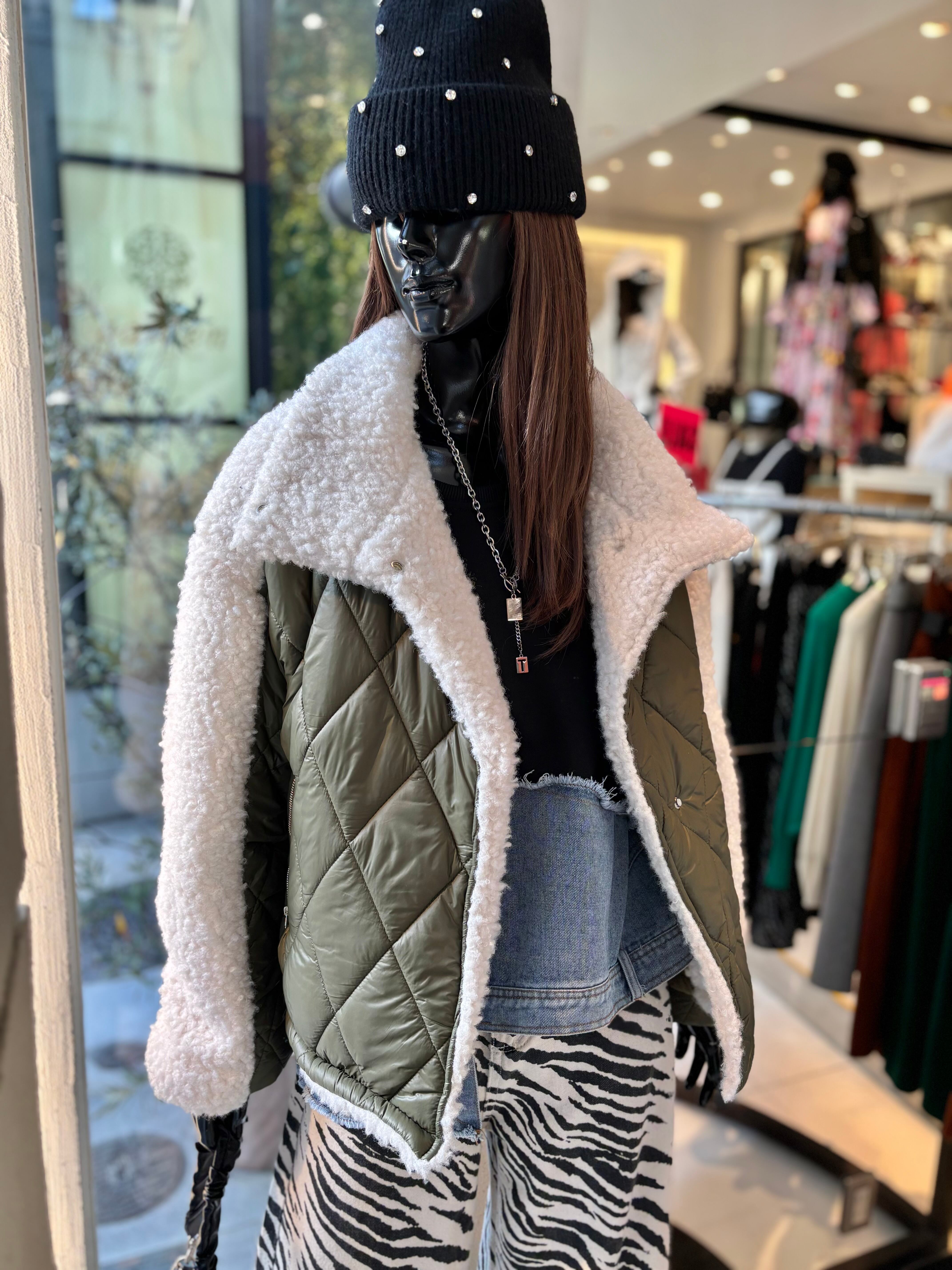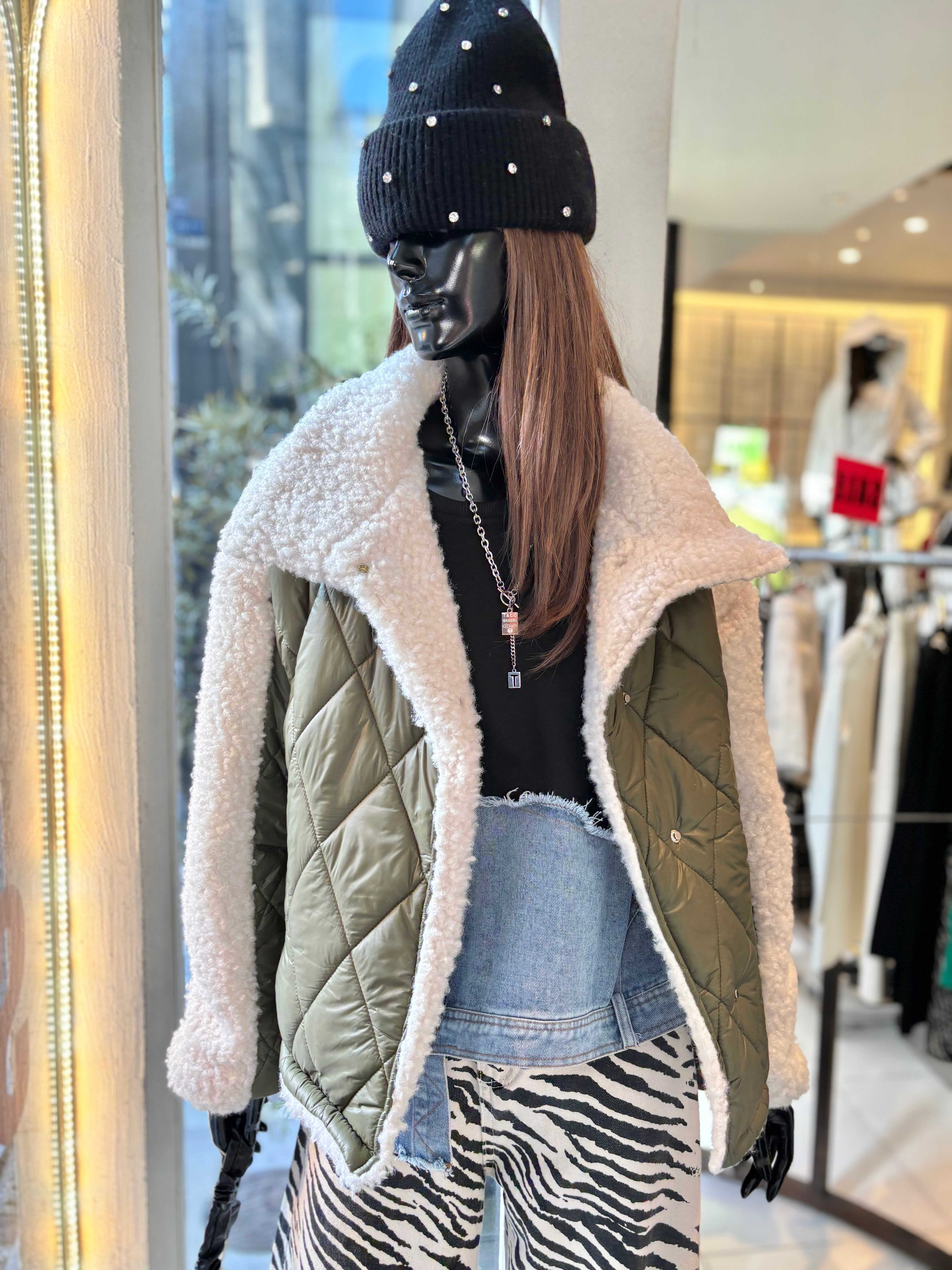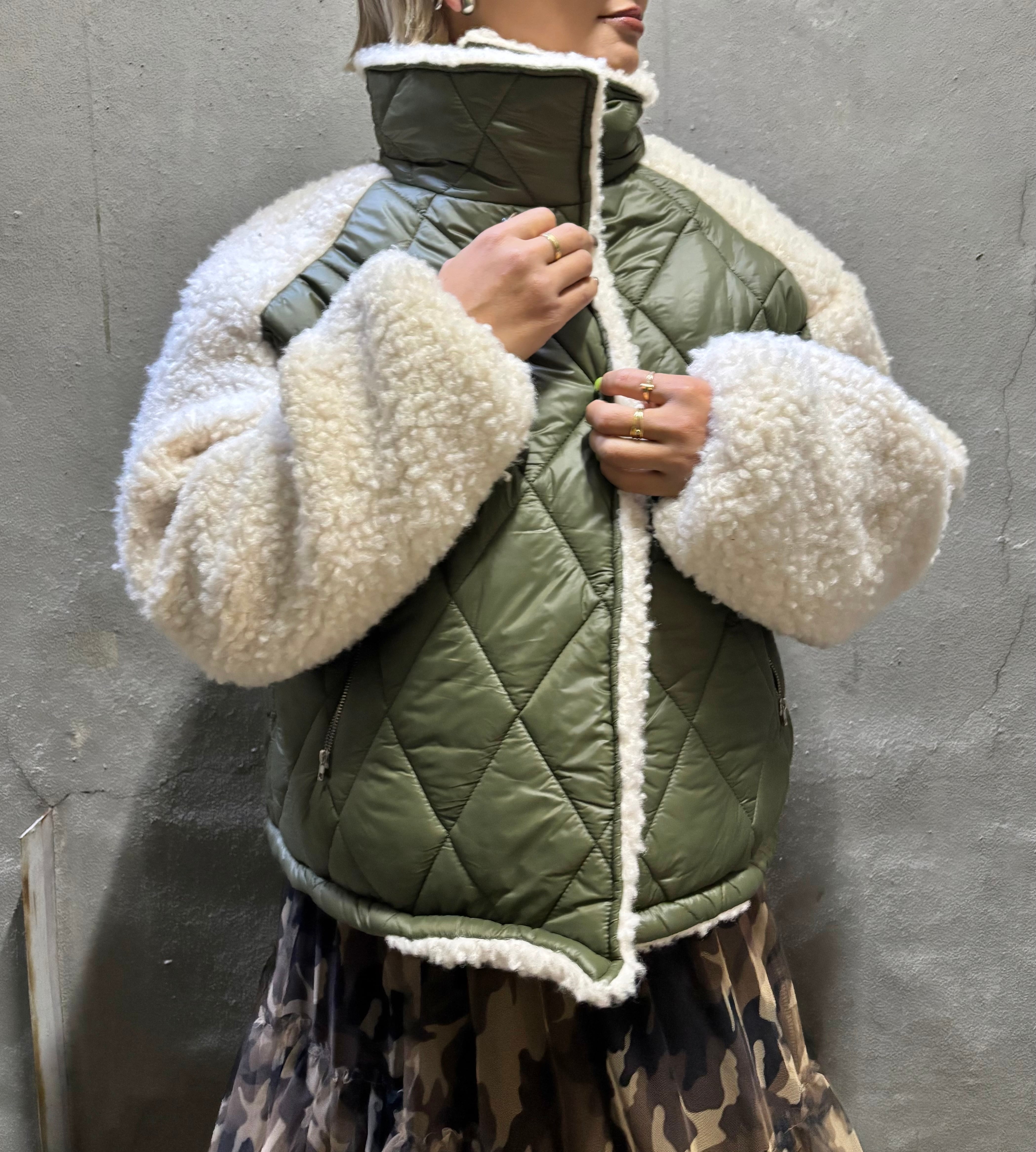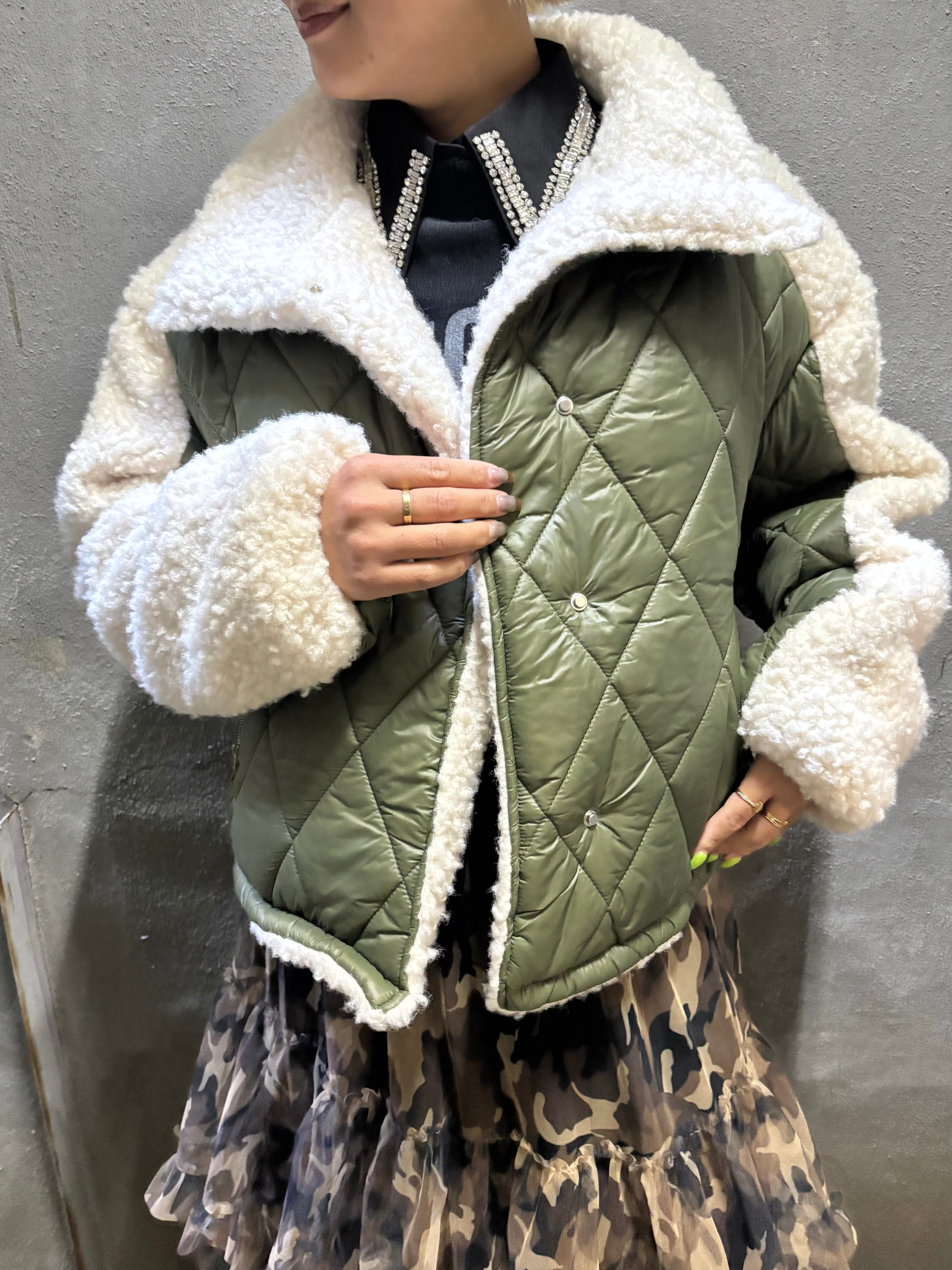 キルティングとボアのドッキングデザインが魅力的なアウターです!