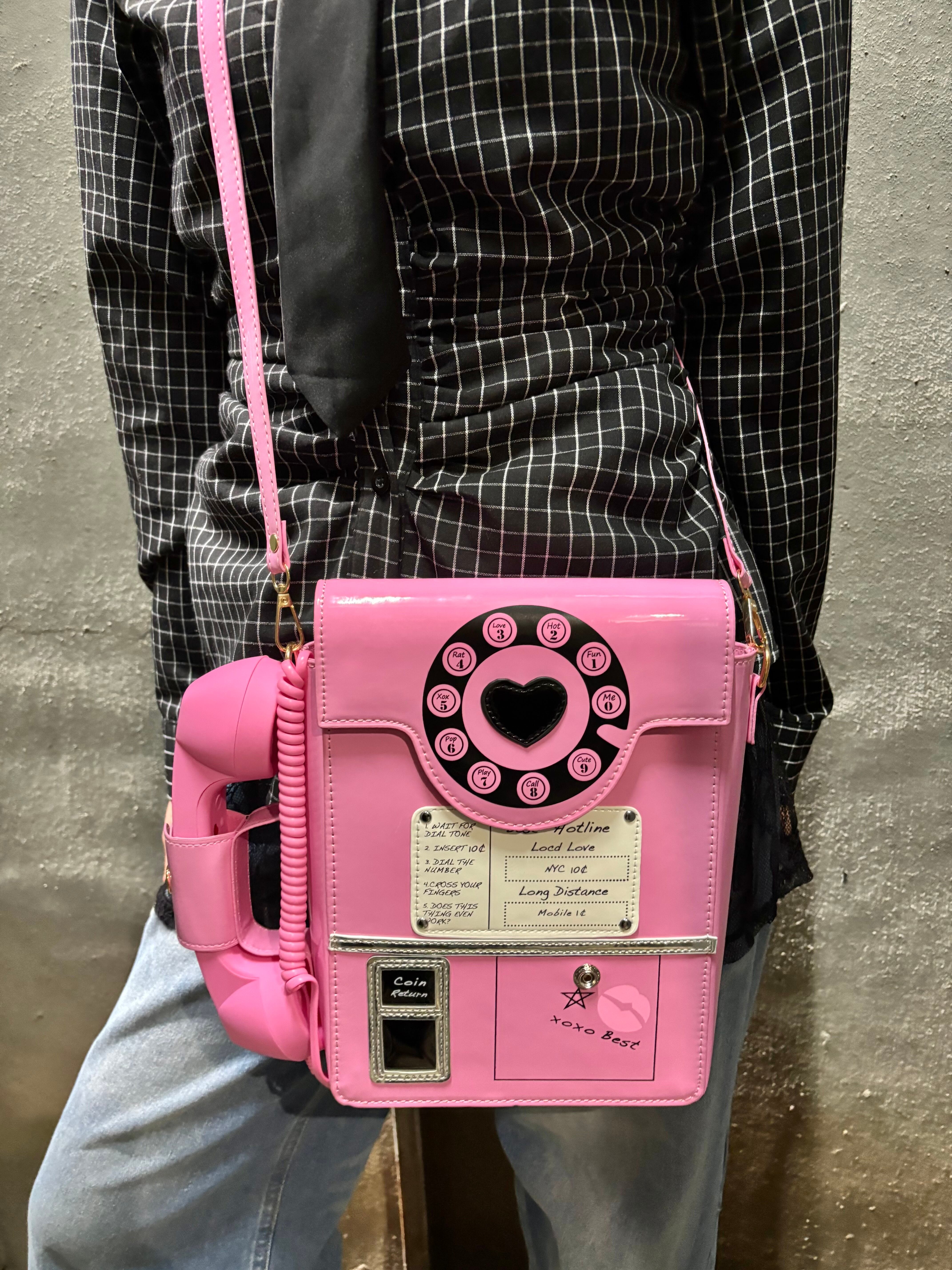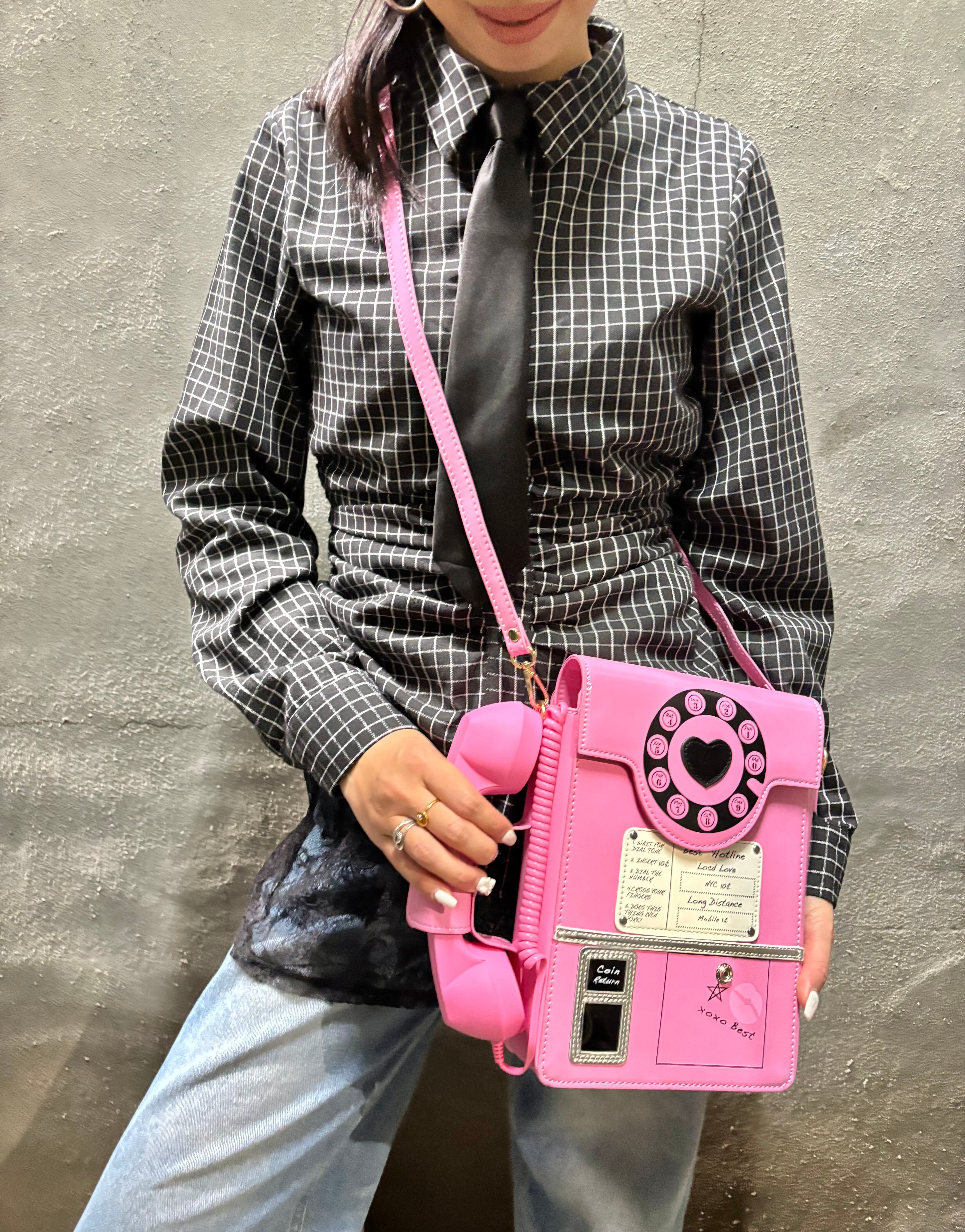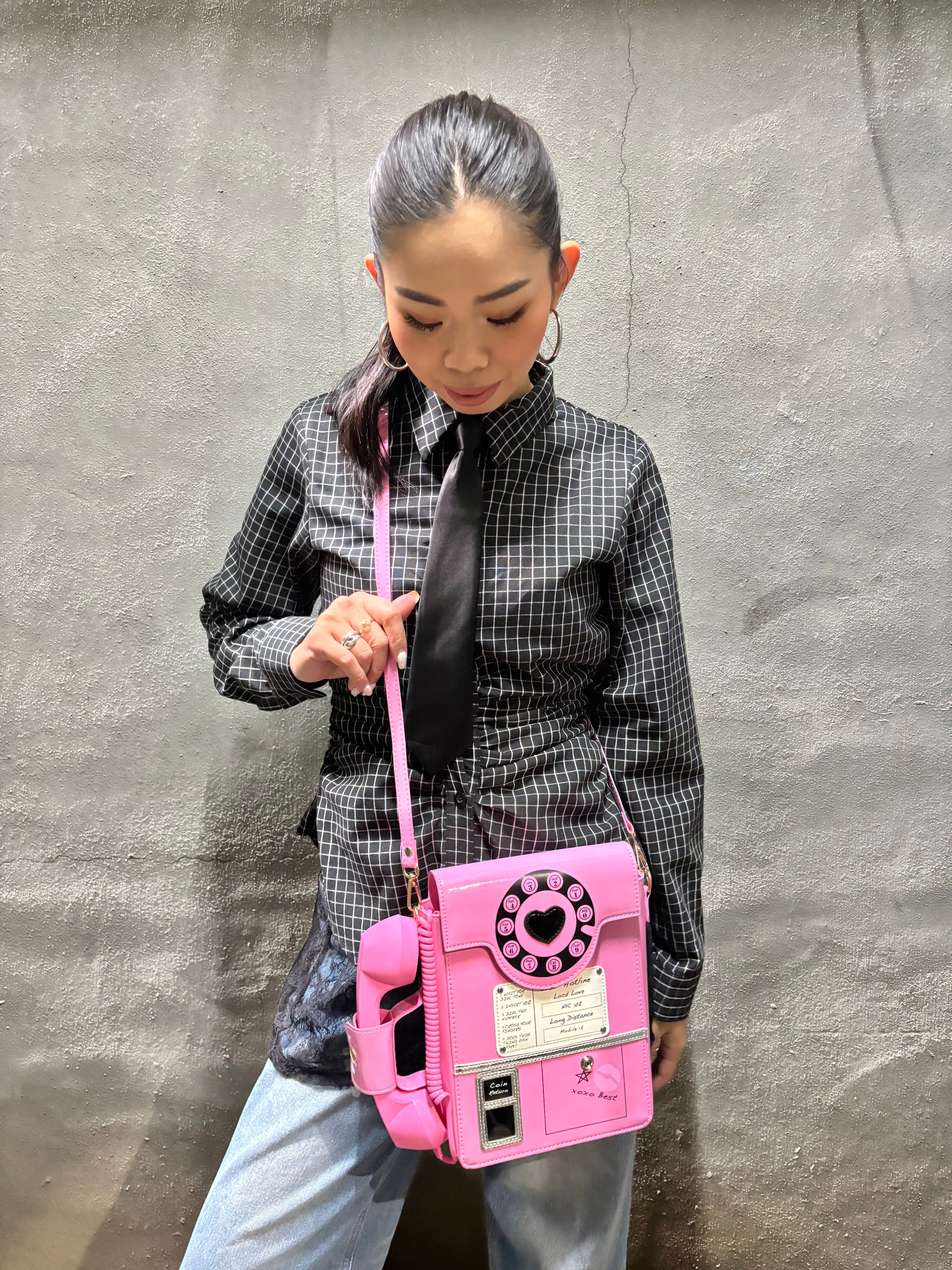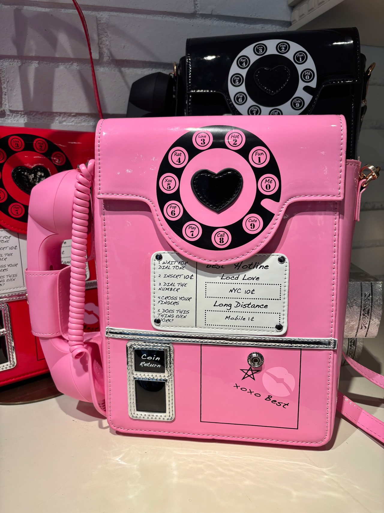 デザインは、楽しいテレフォンモチーフがとってもキュートで、ファッションに遊び心をプラス。