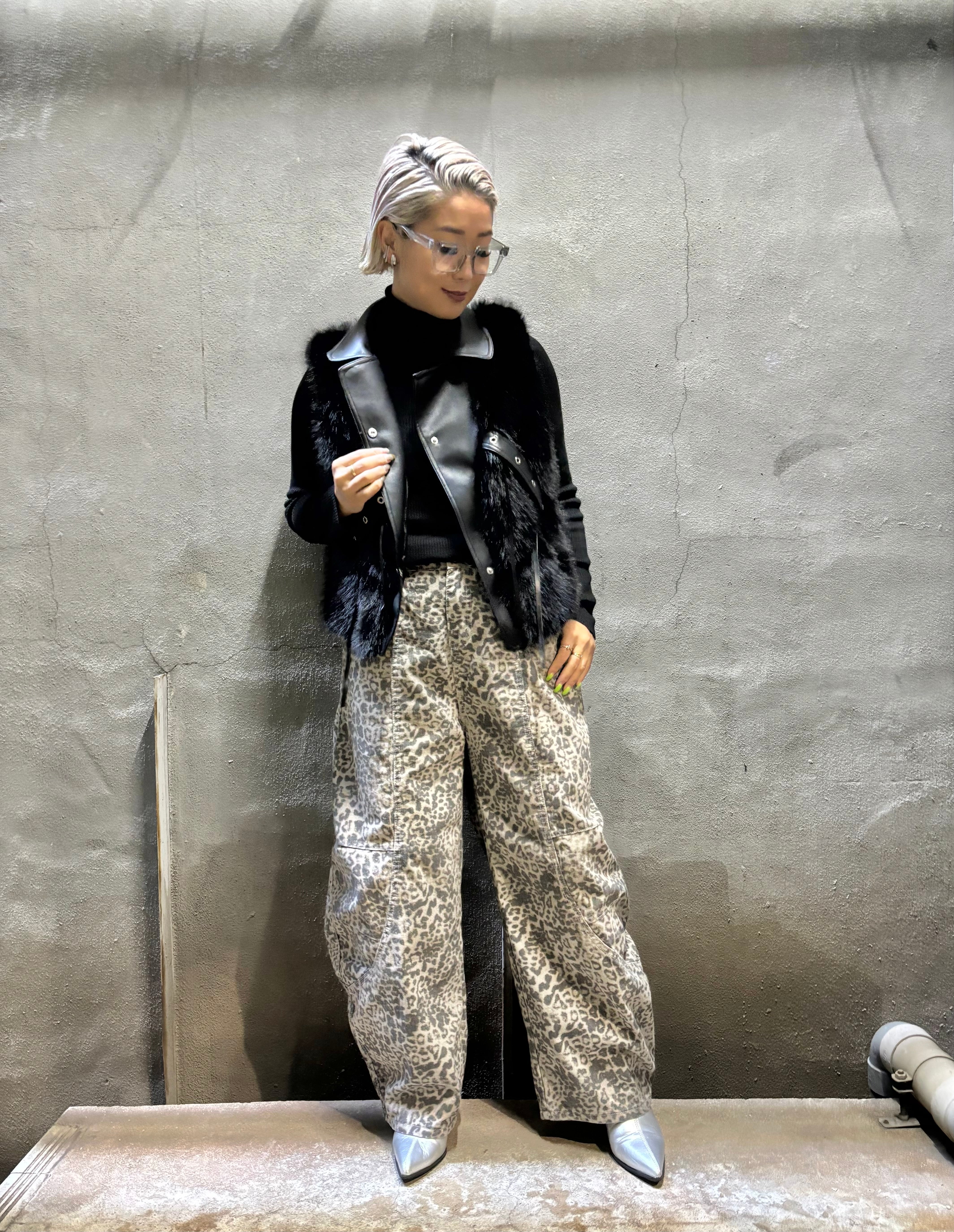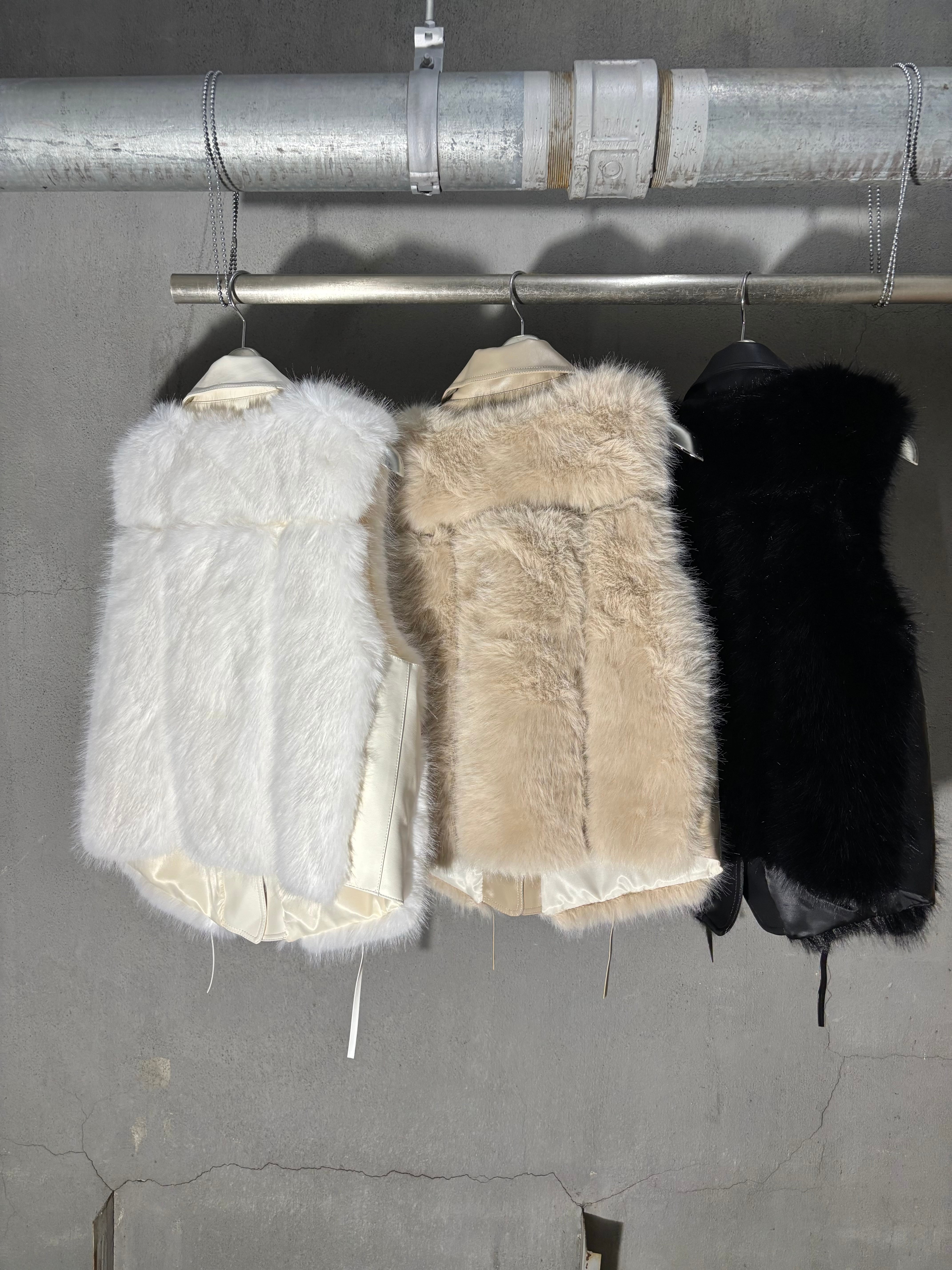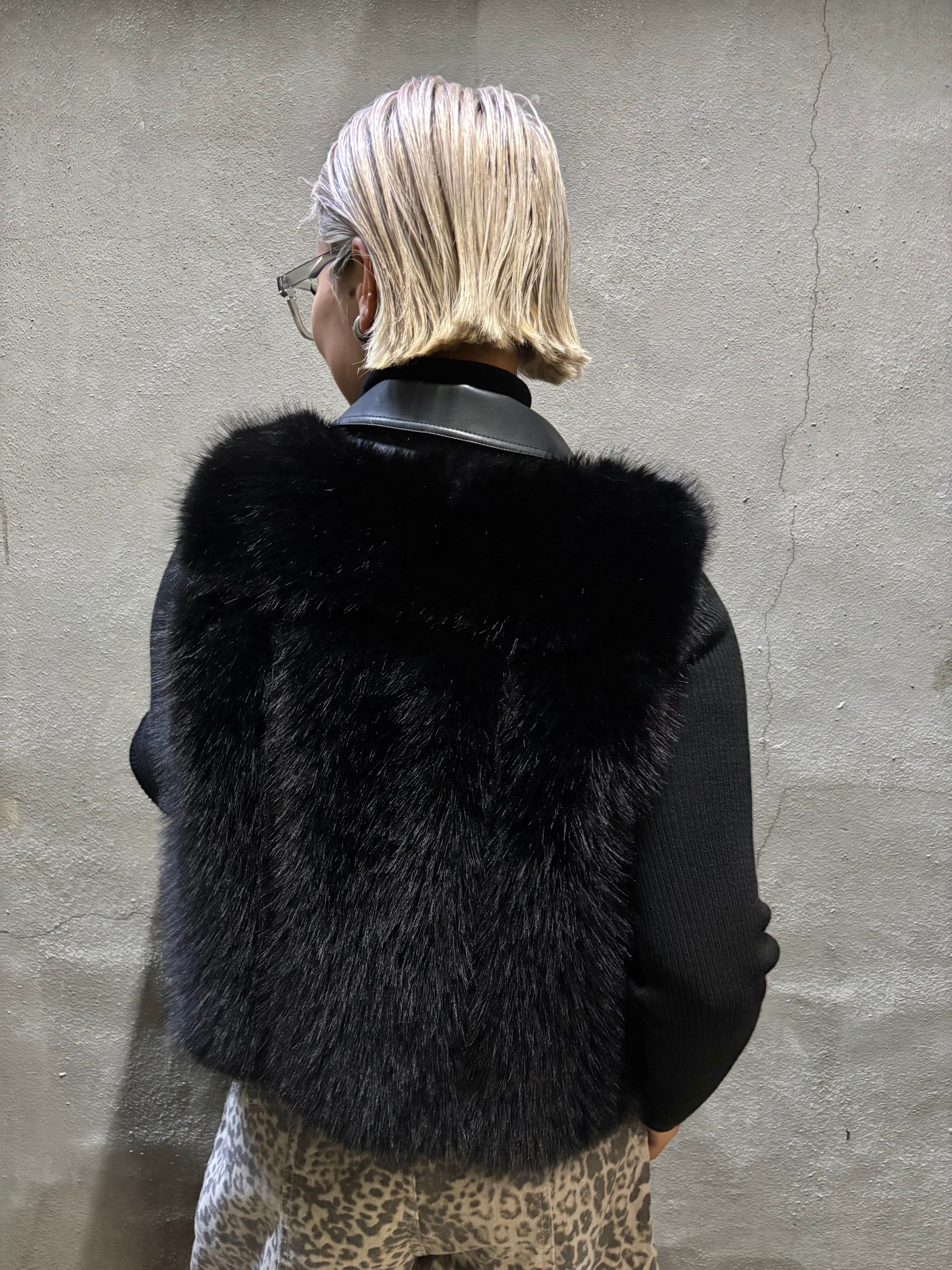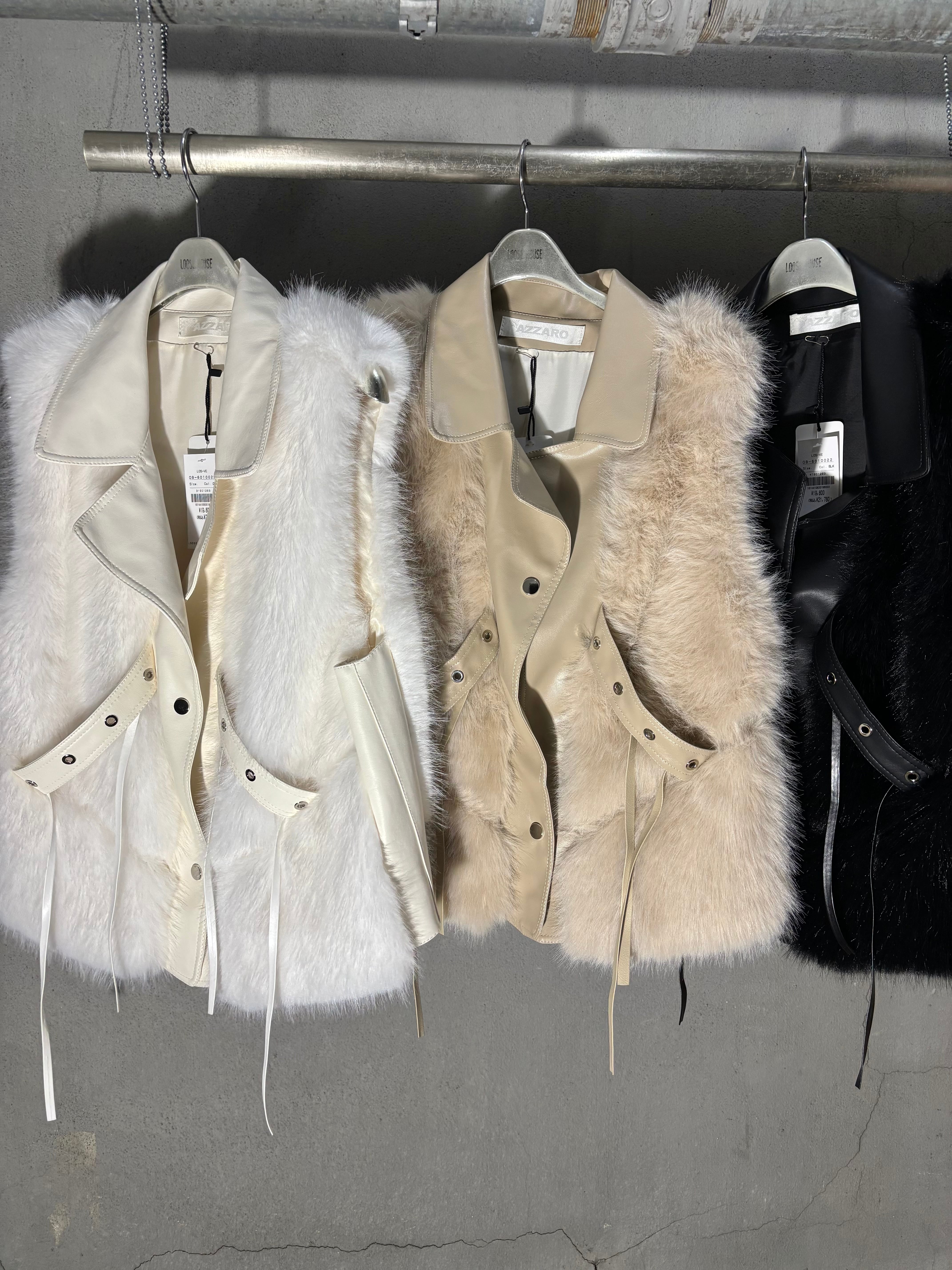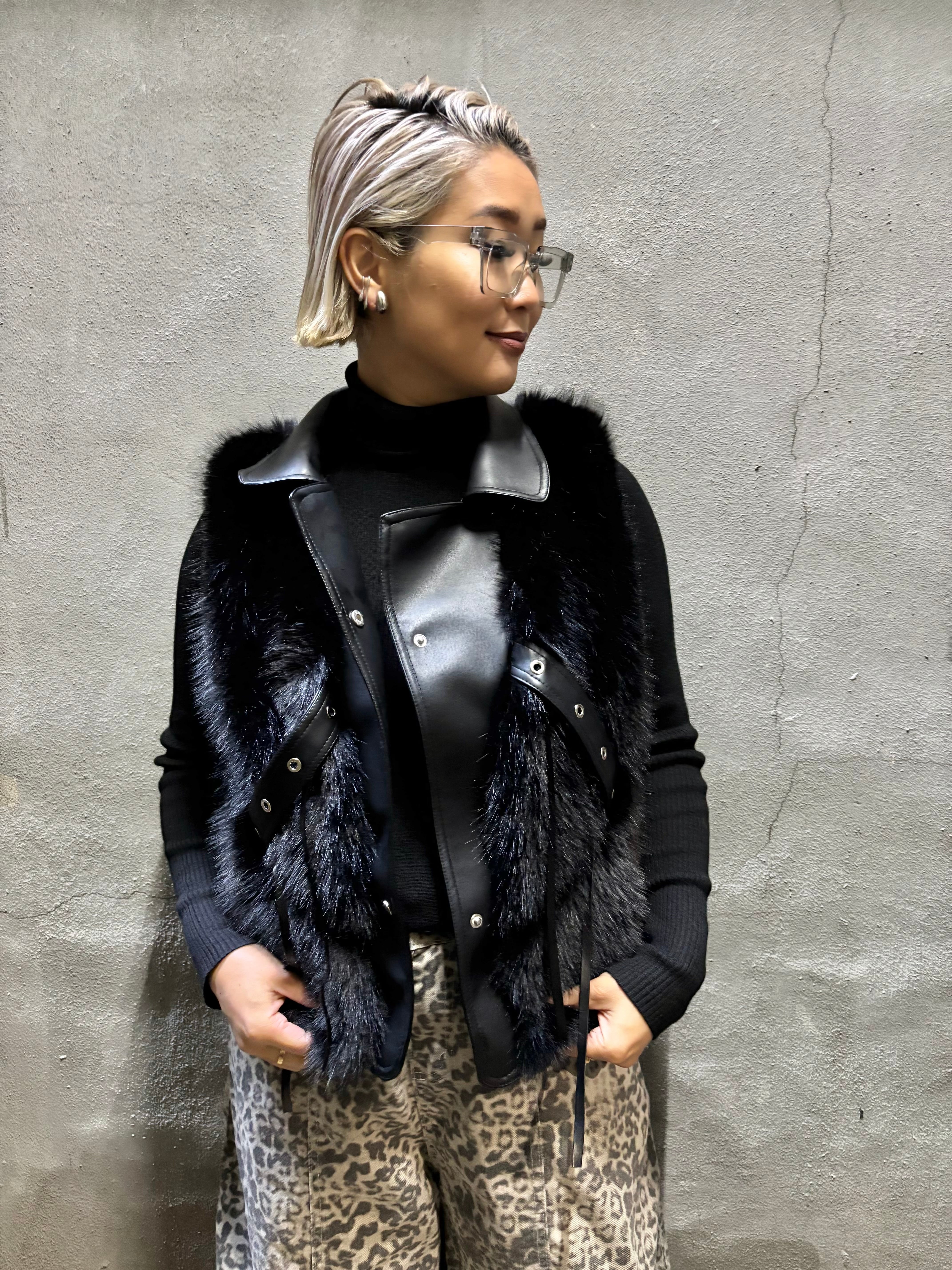 eco fur × eco leather design vest ベスト エコファー エコレザー 切替デザイン 重ね着