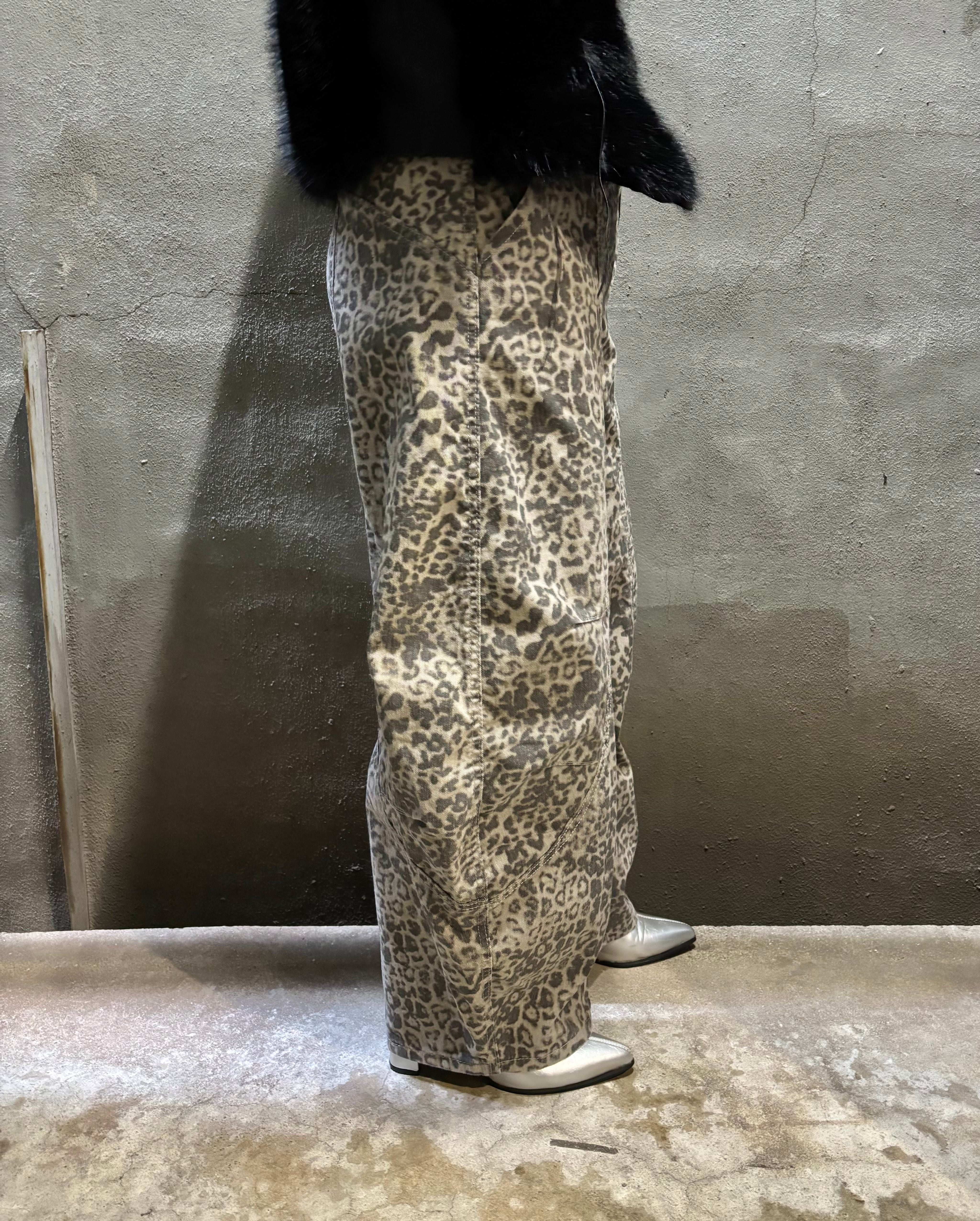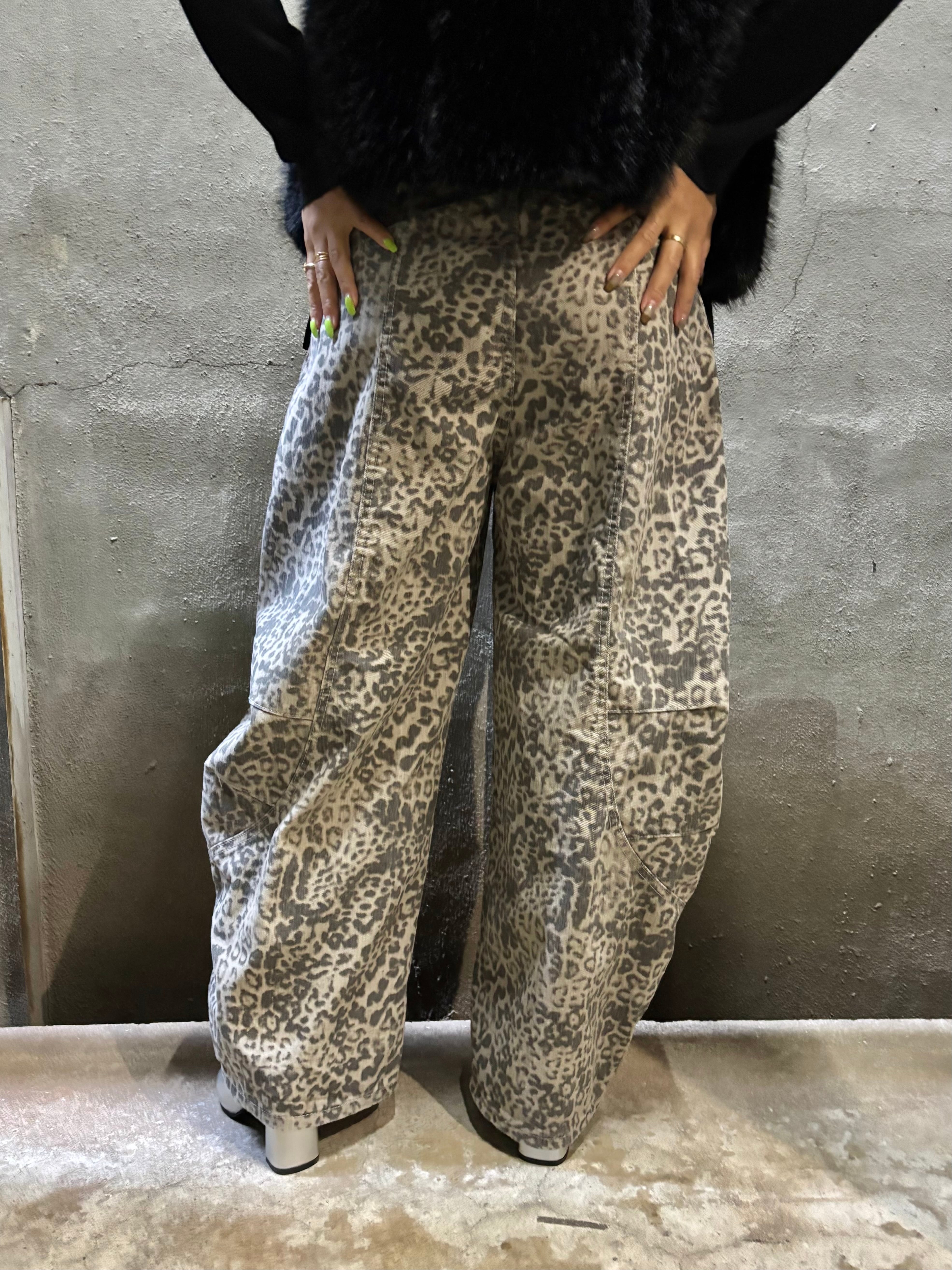leopard print wide leg denim pants パンツ デニム レオパード 豹柄 ヒョウ柄 アニマル ワイドレッグ