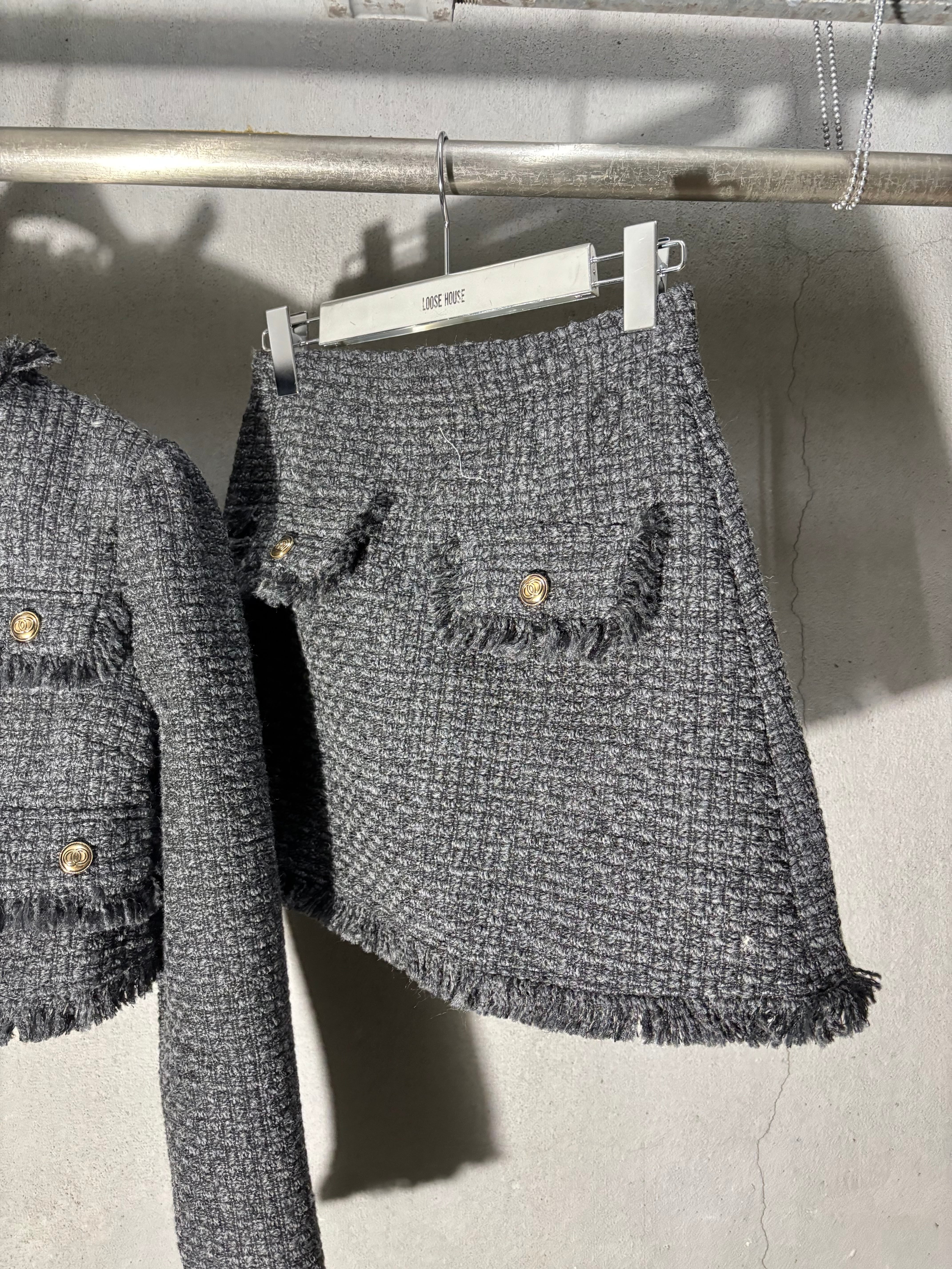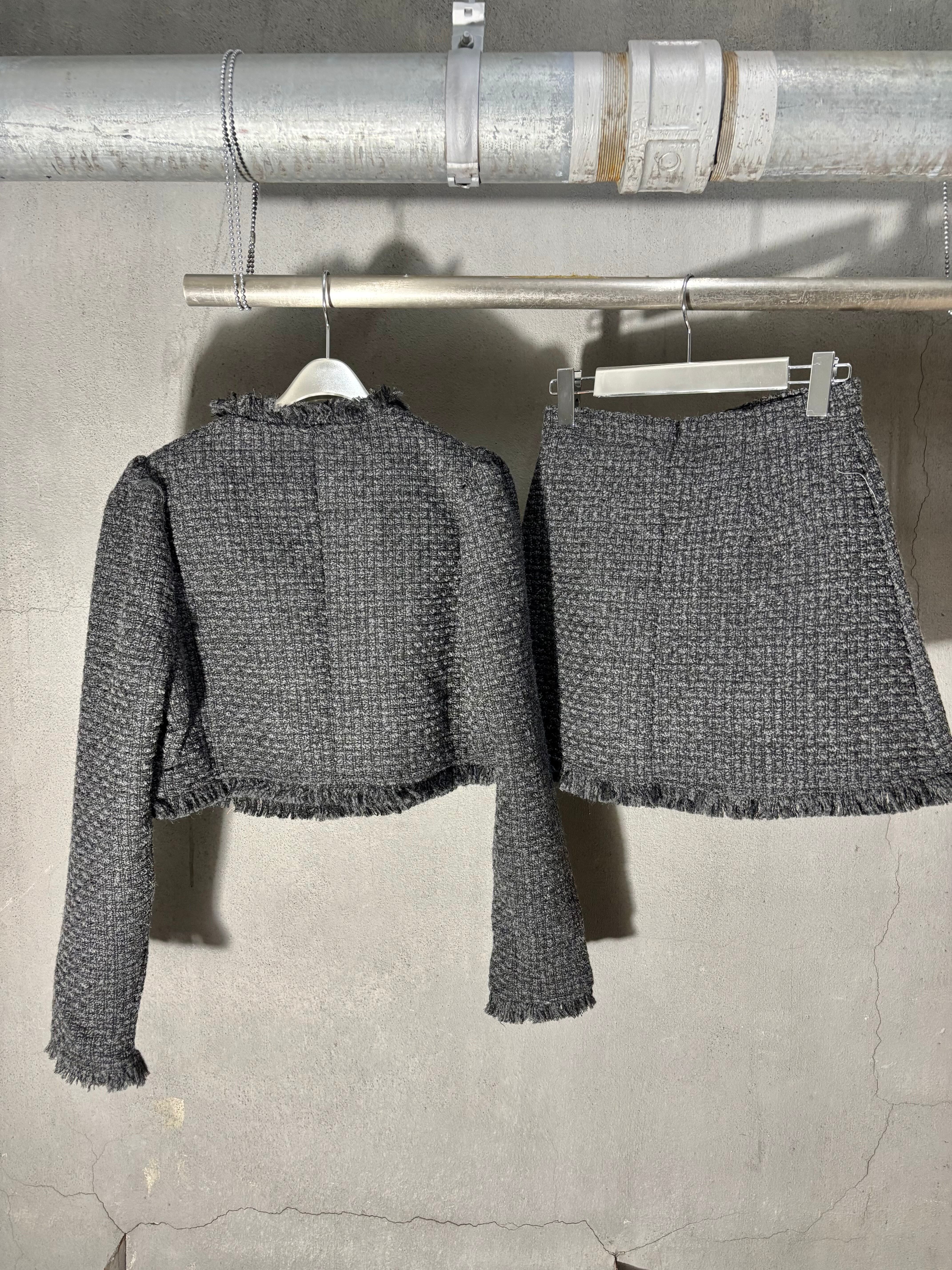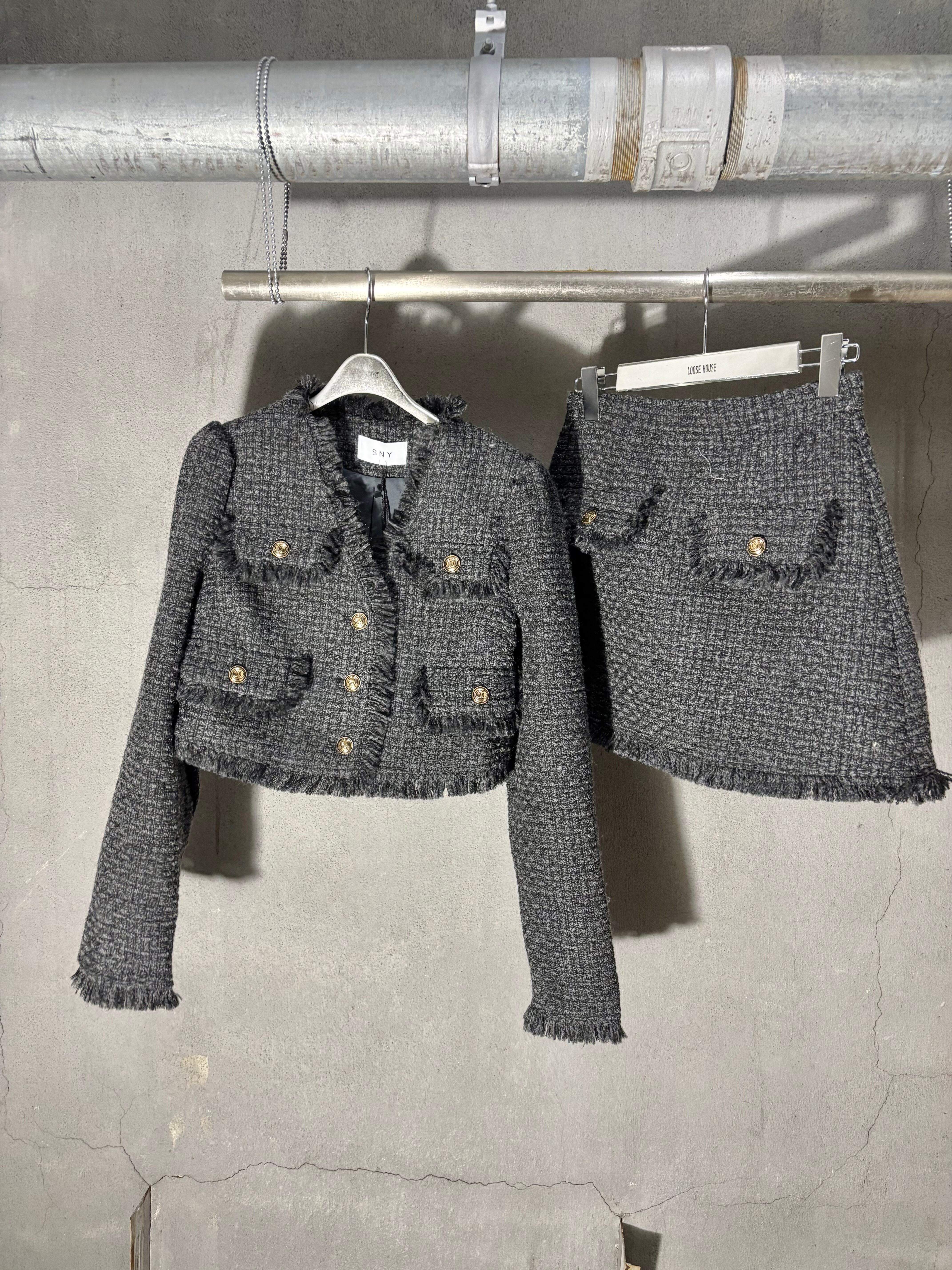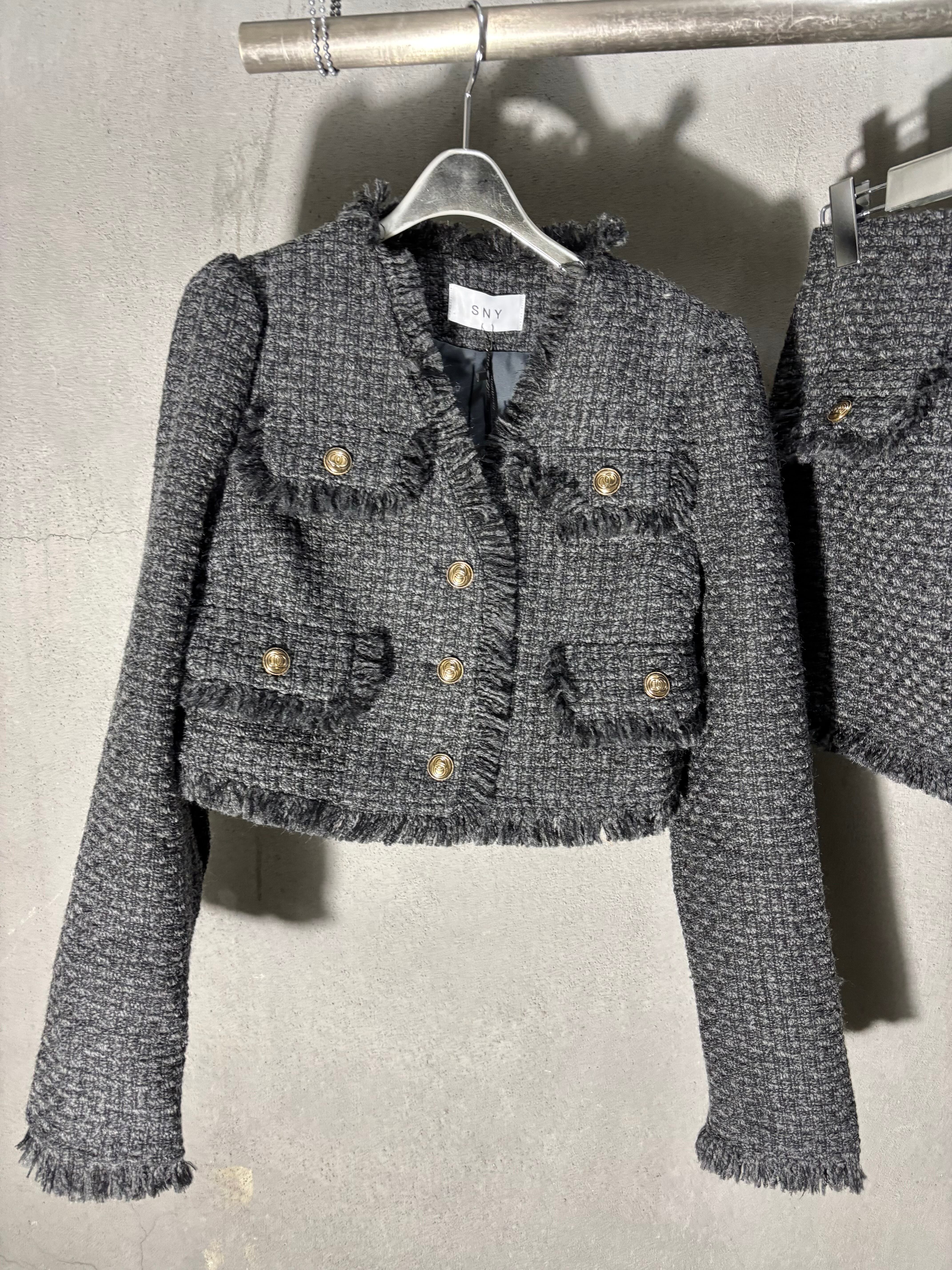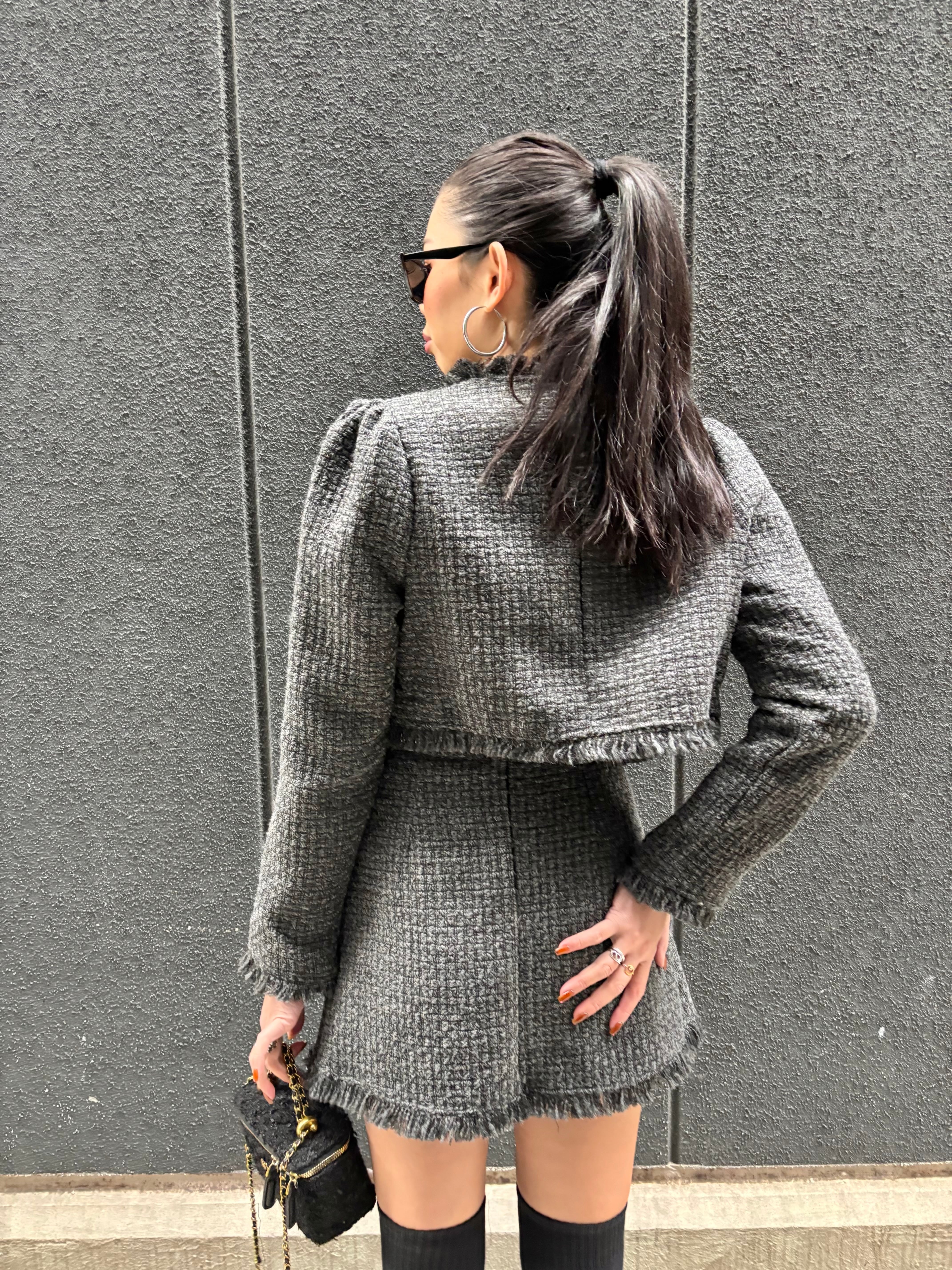 tweed V-neck jacket × mini skirt set up セットアップ 2点セット ツィード ジャケット ミニスカート きれいめ