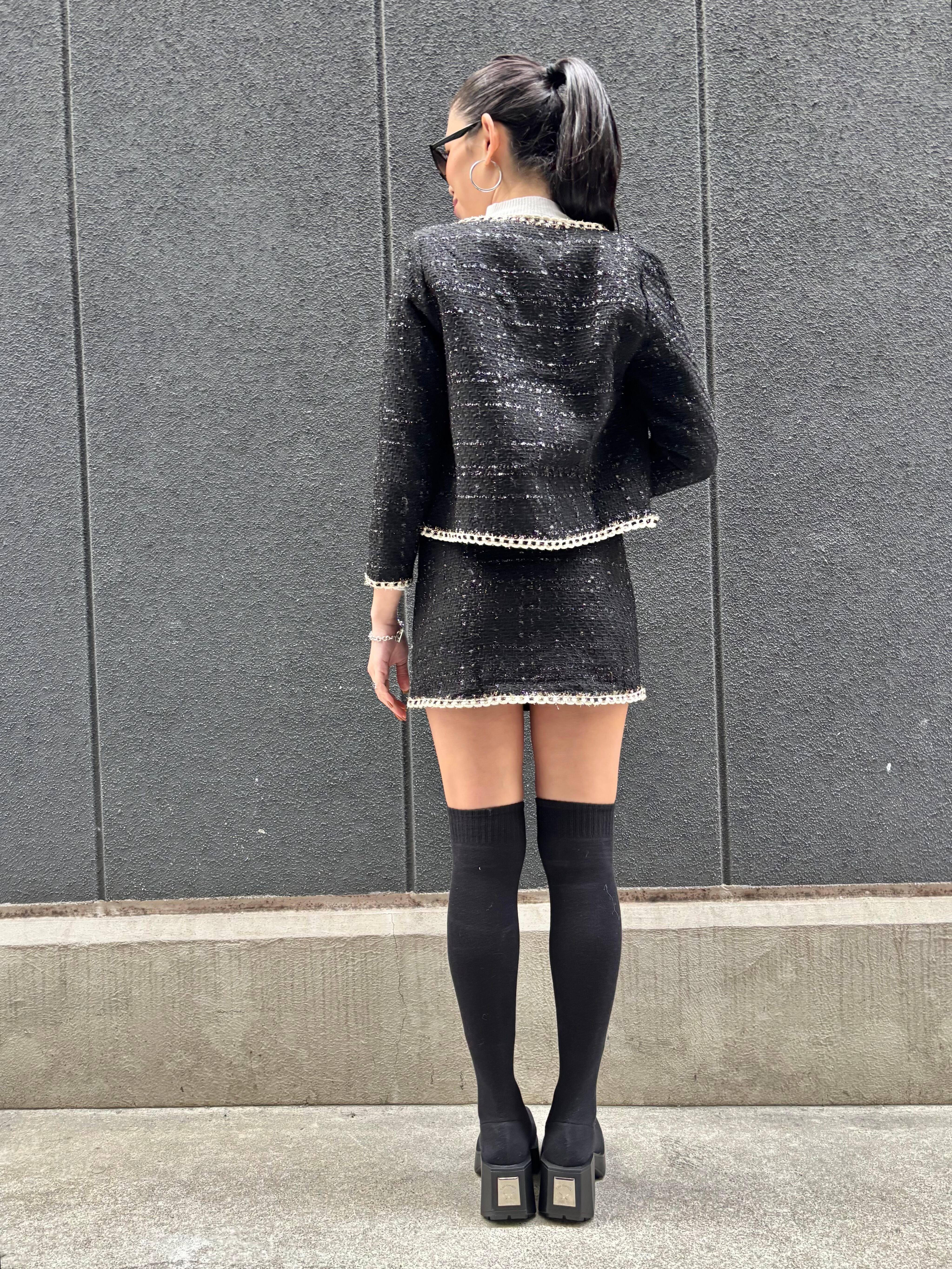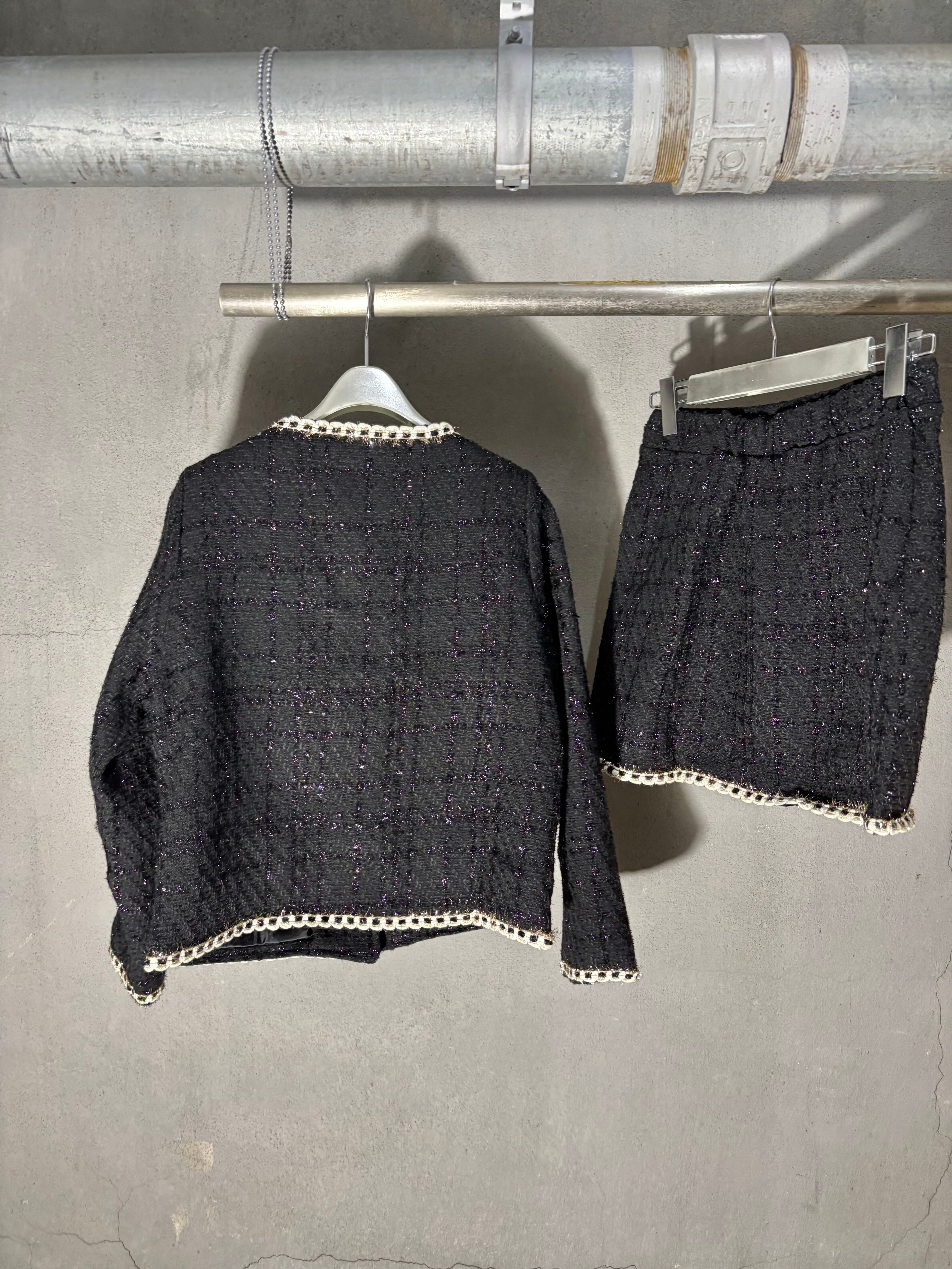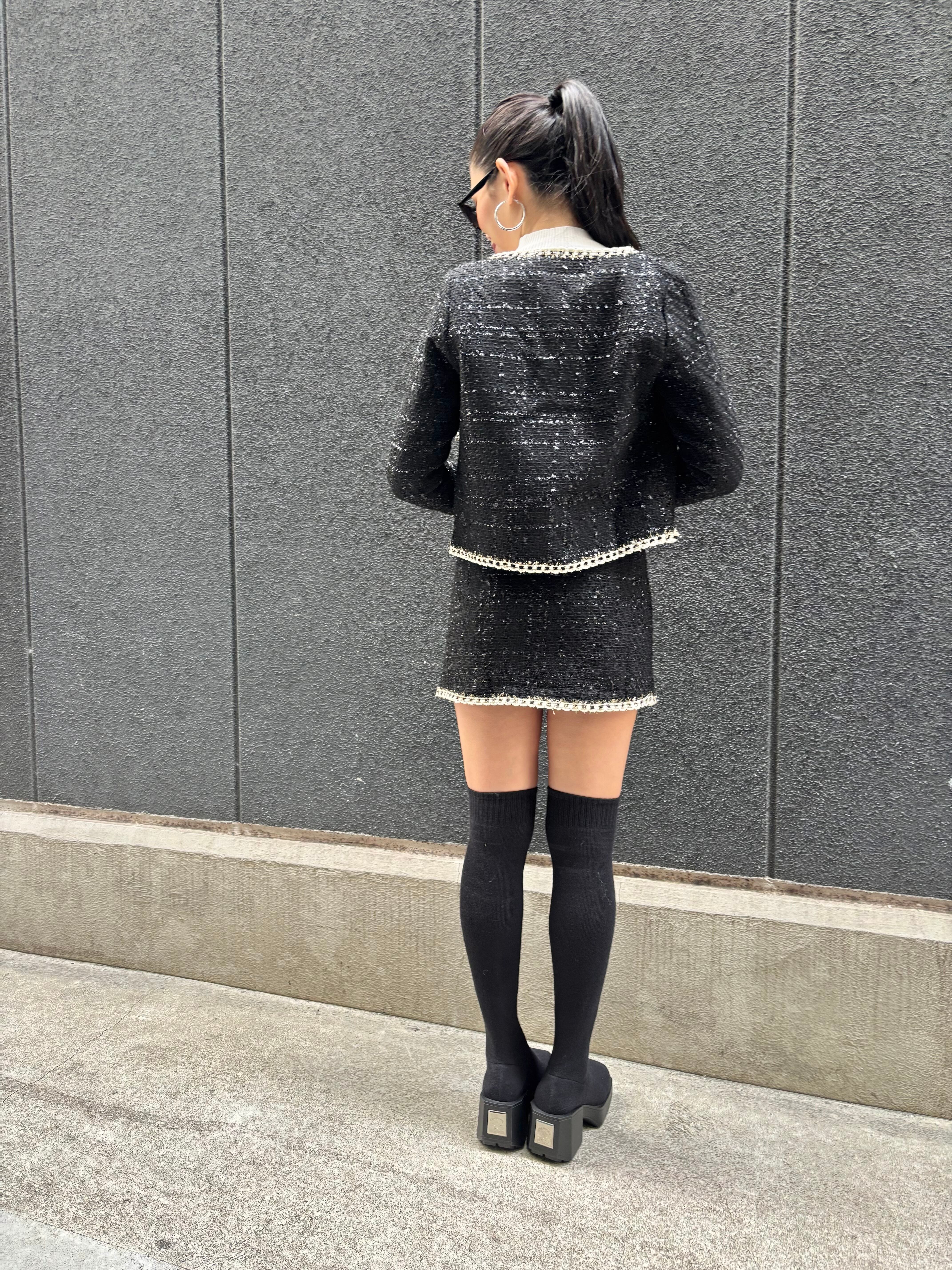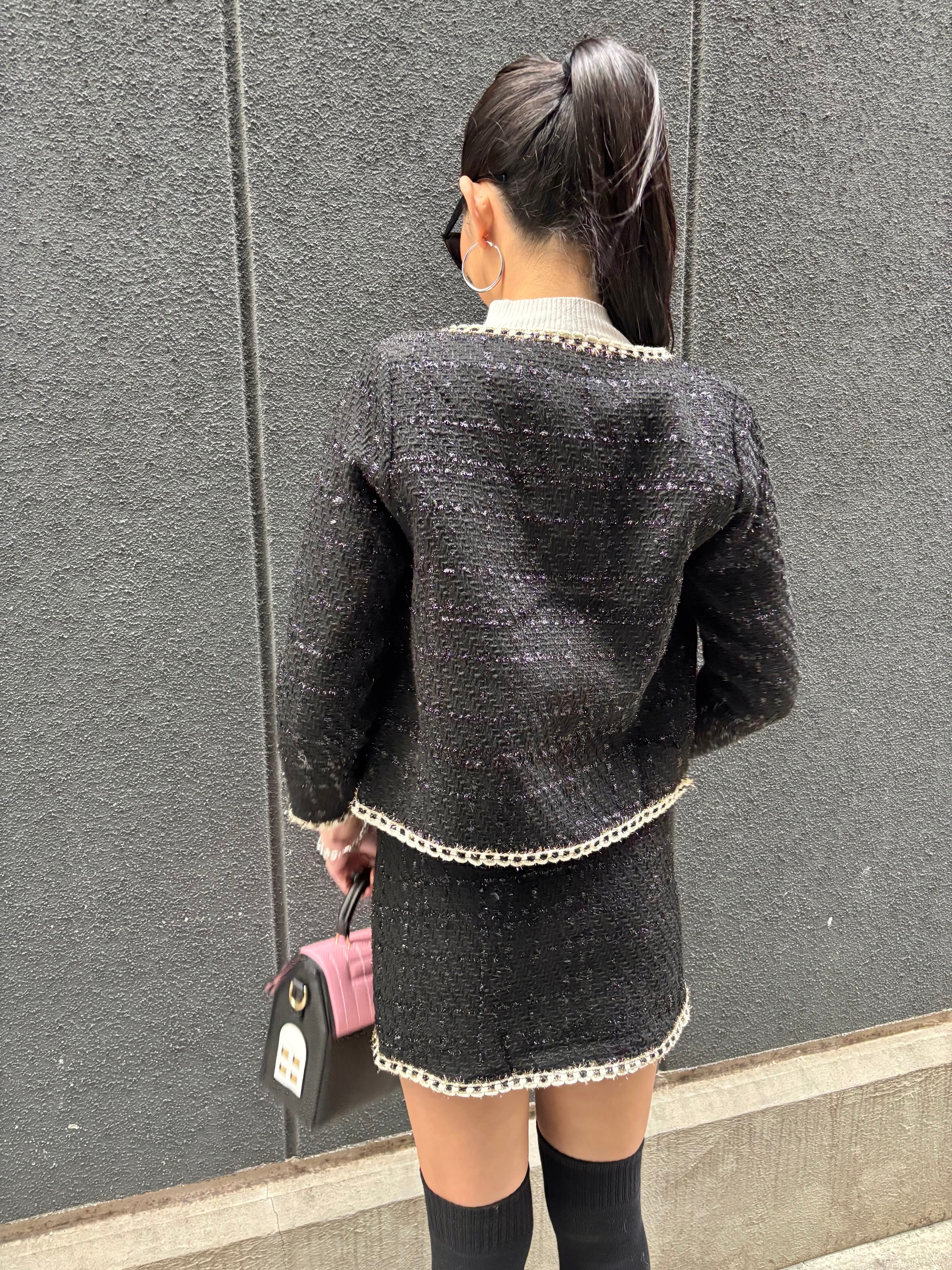 tweed jacket × mini skirt set up セットアップ 2点セット ツィード Cネック ジャケット スカート