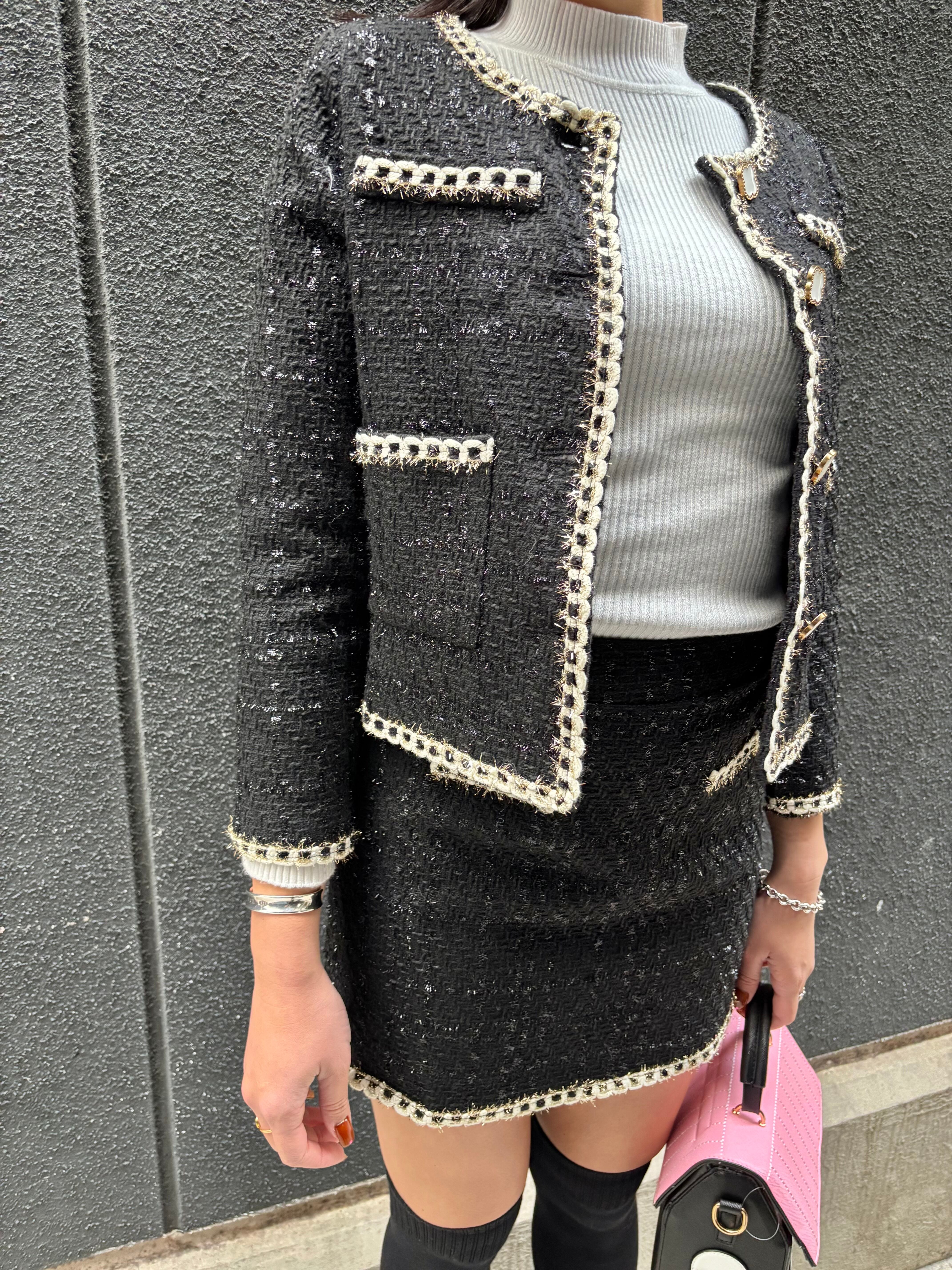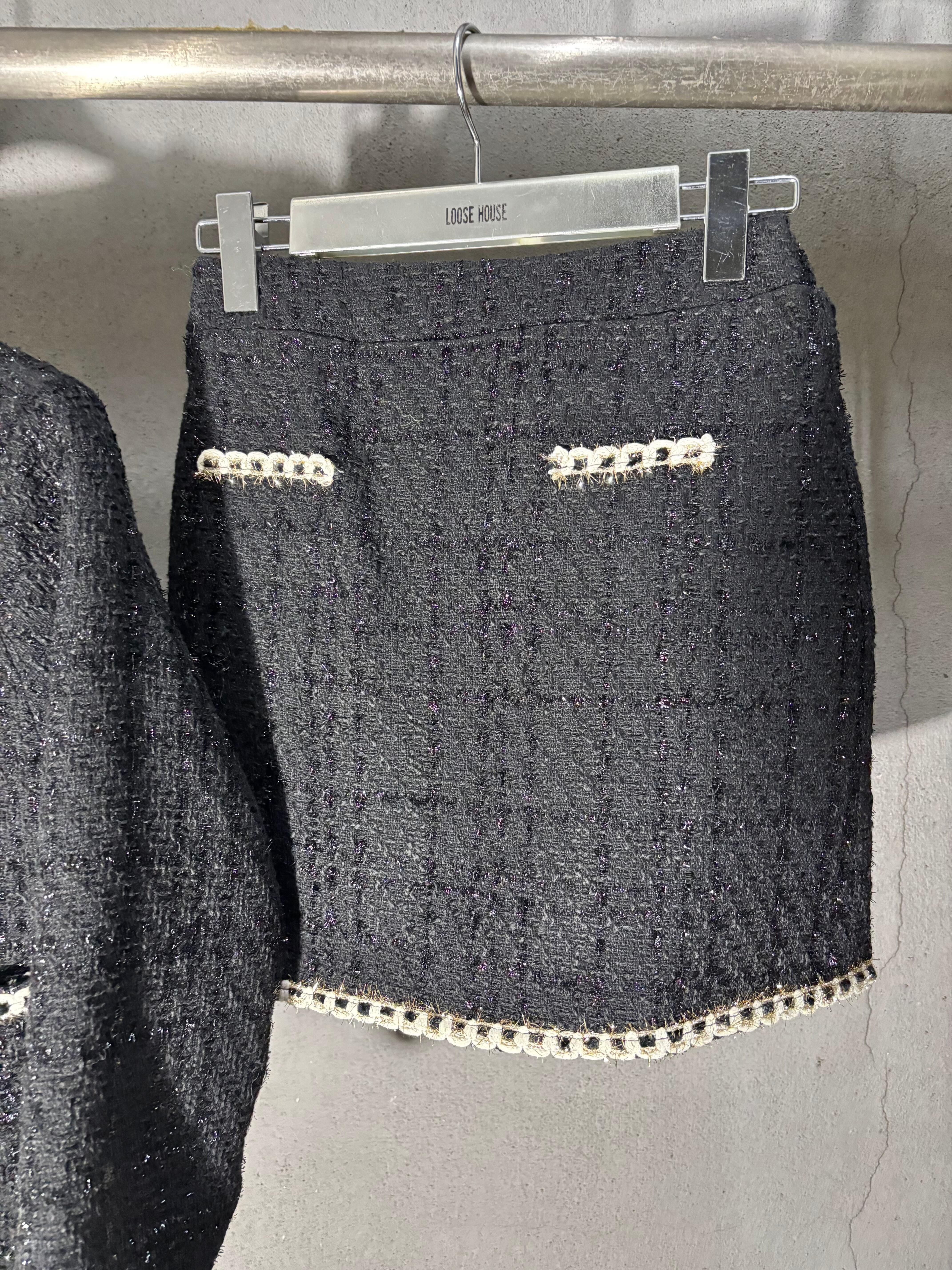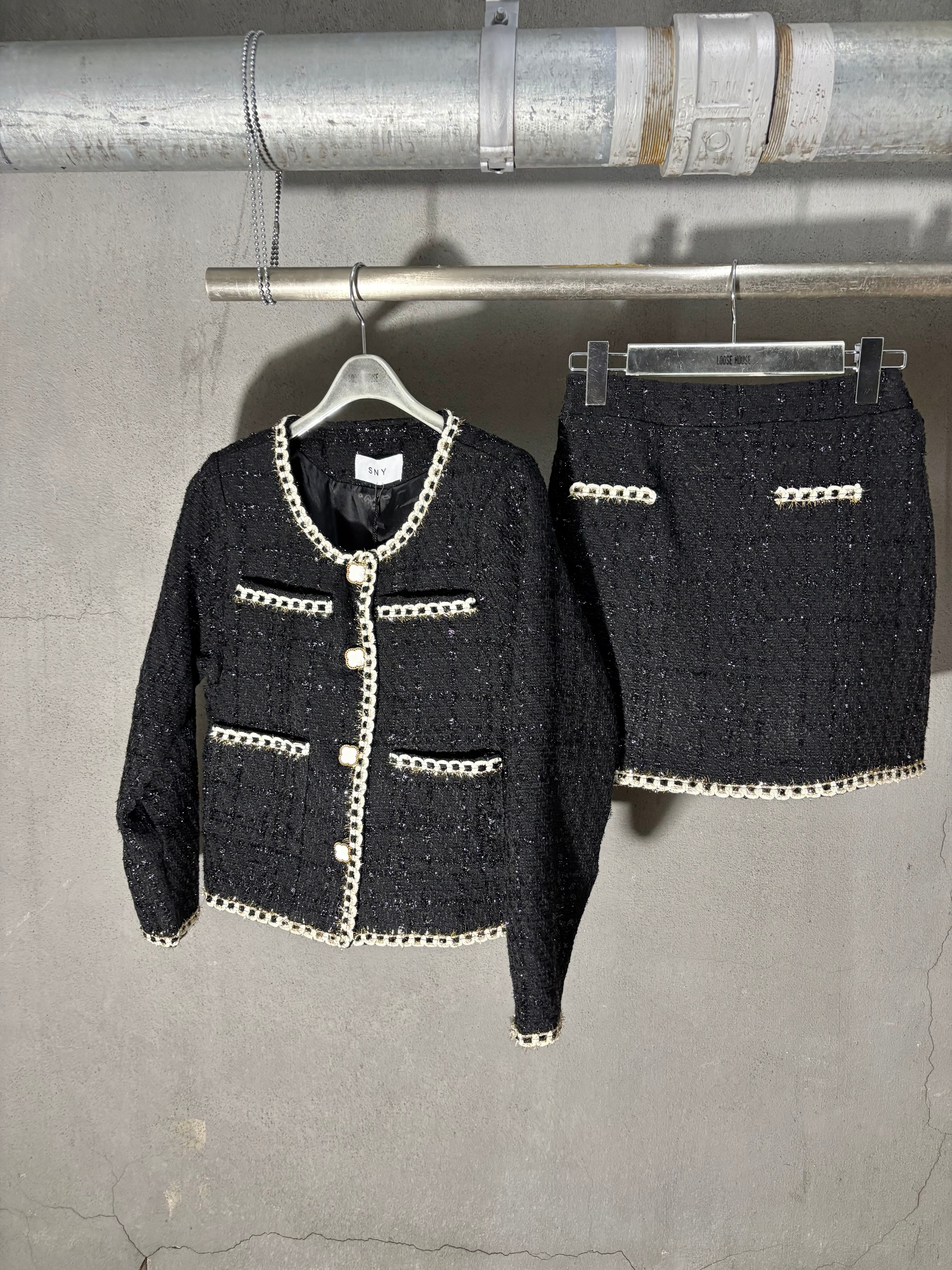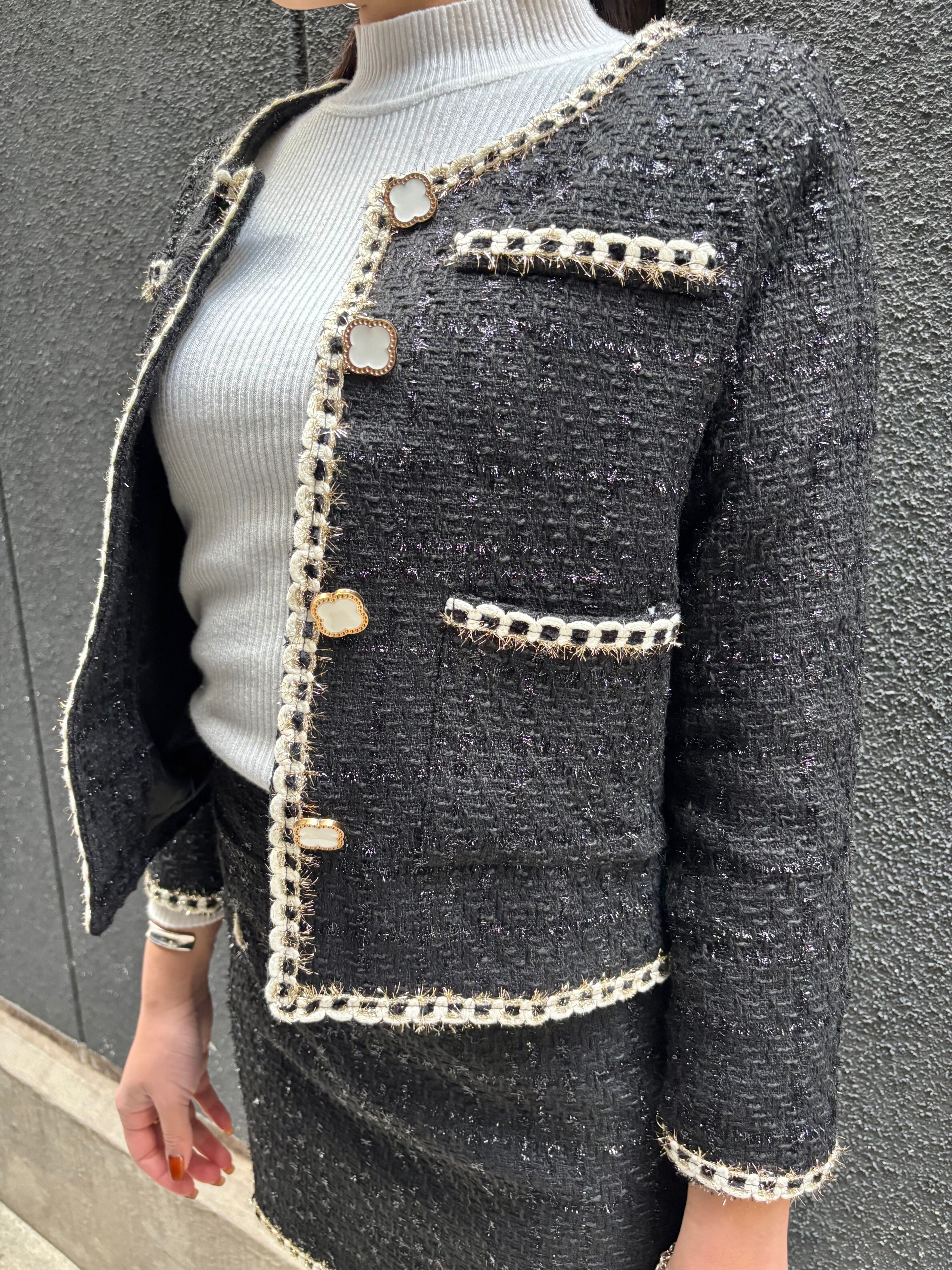 tweed jacket × mini skirt set up セットアップ 2点セット ツィード Cネック ジャケット スカート