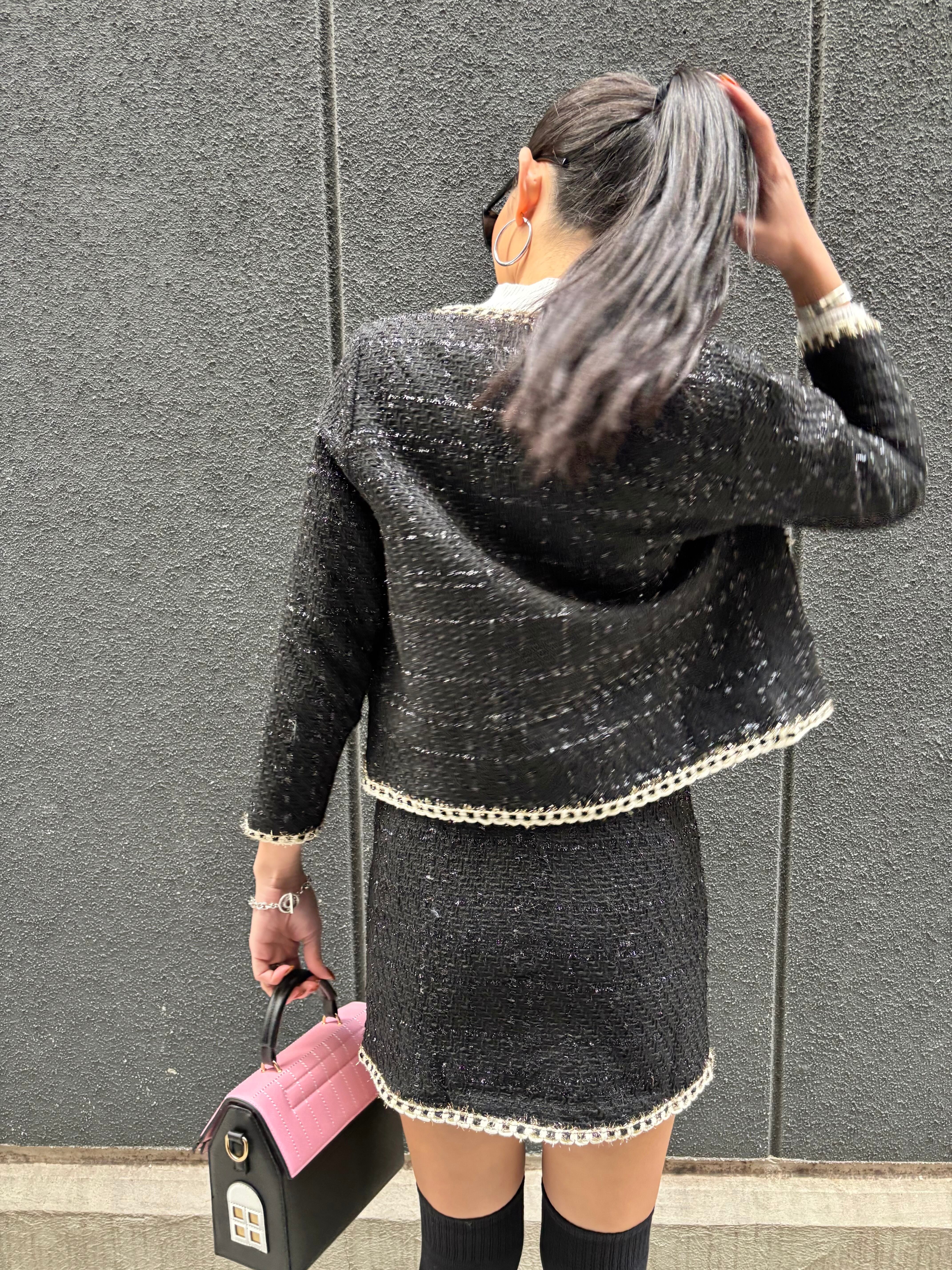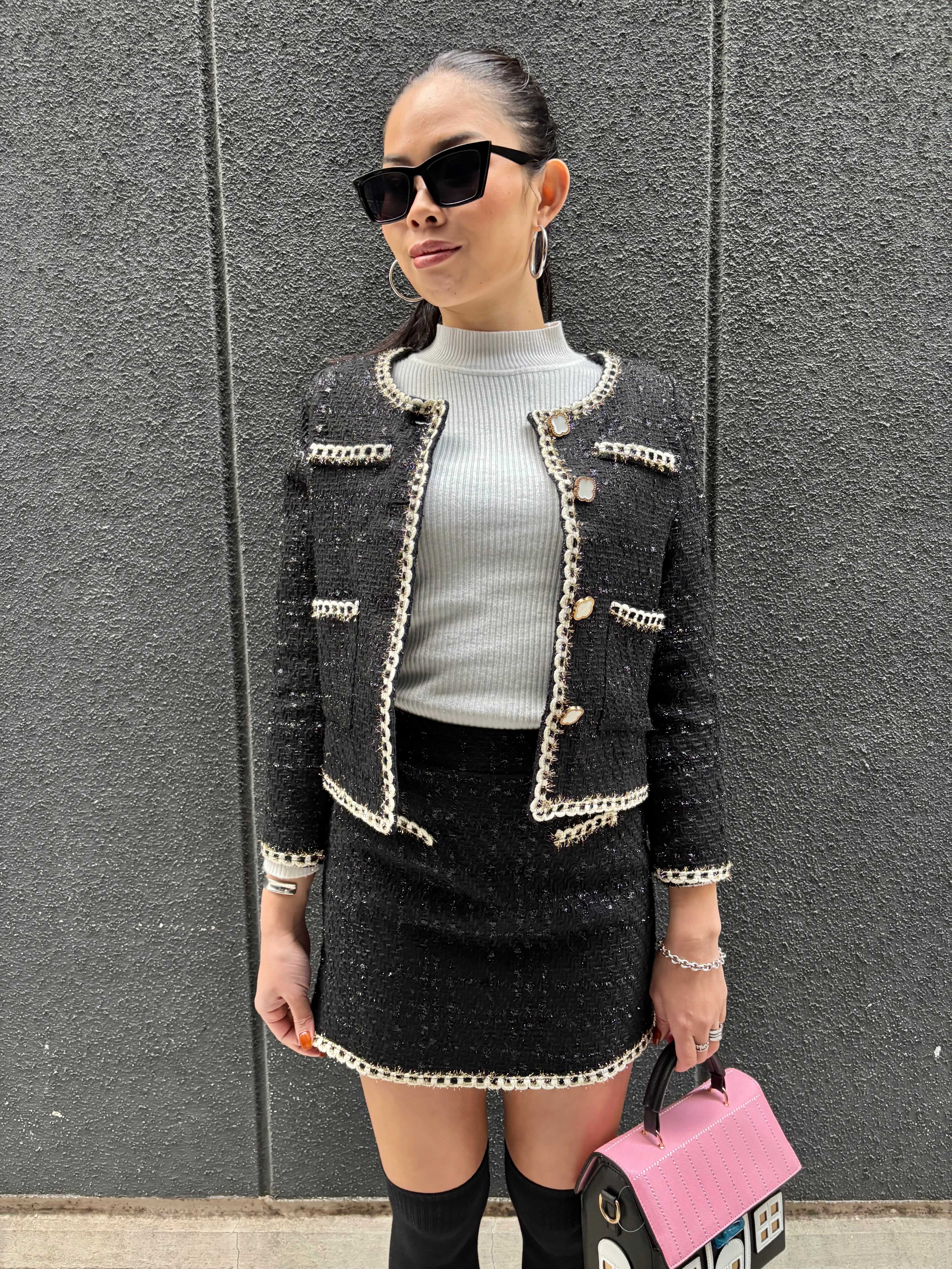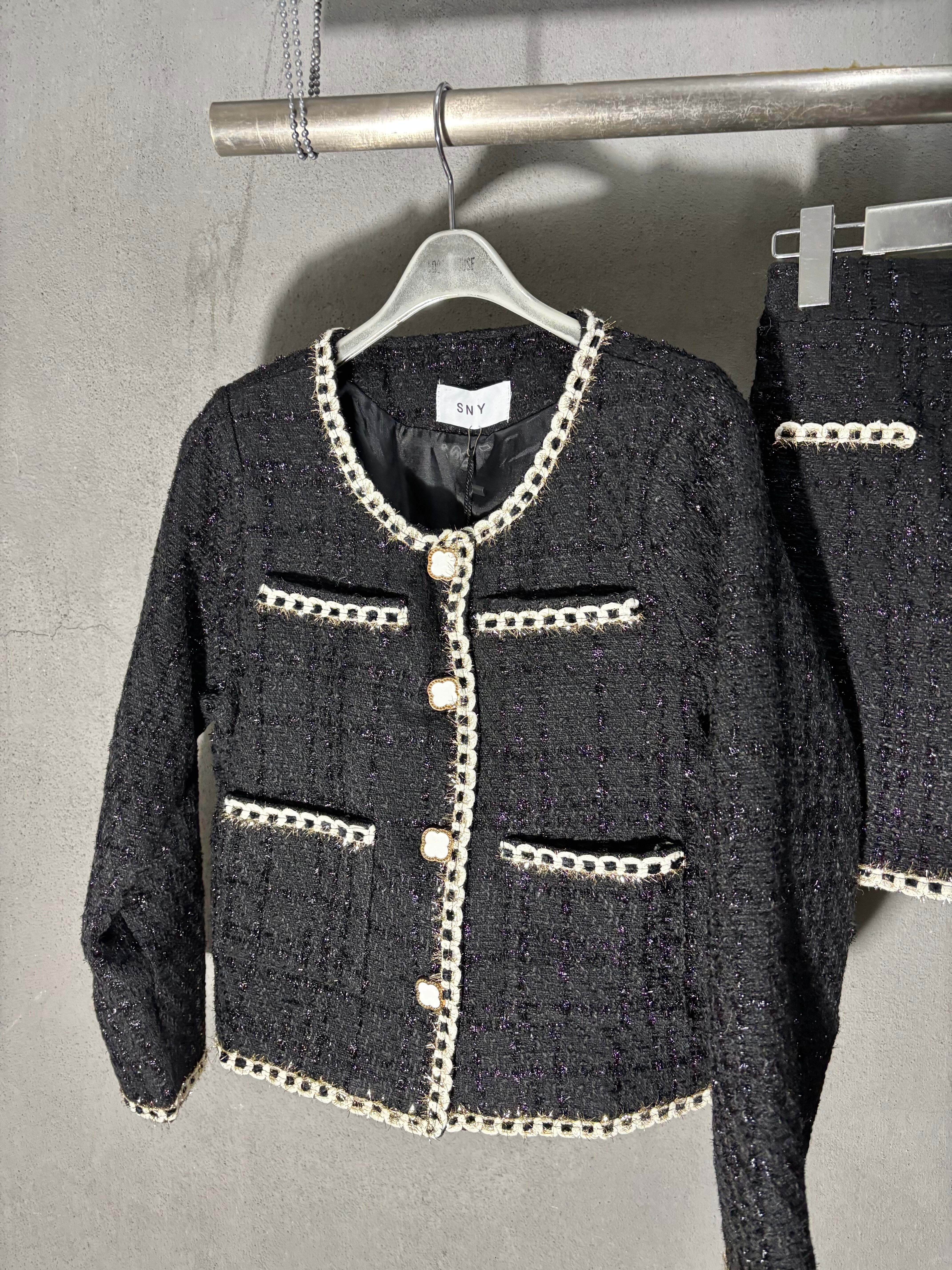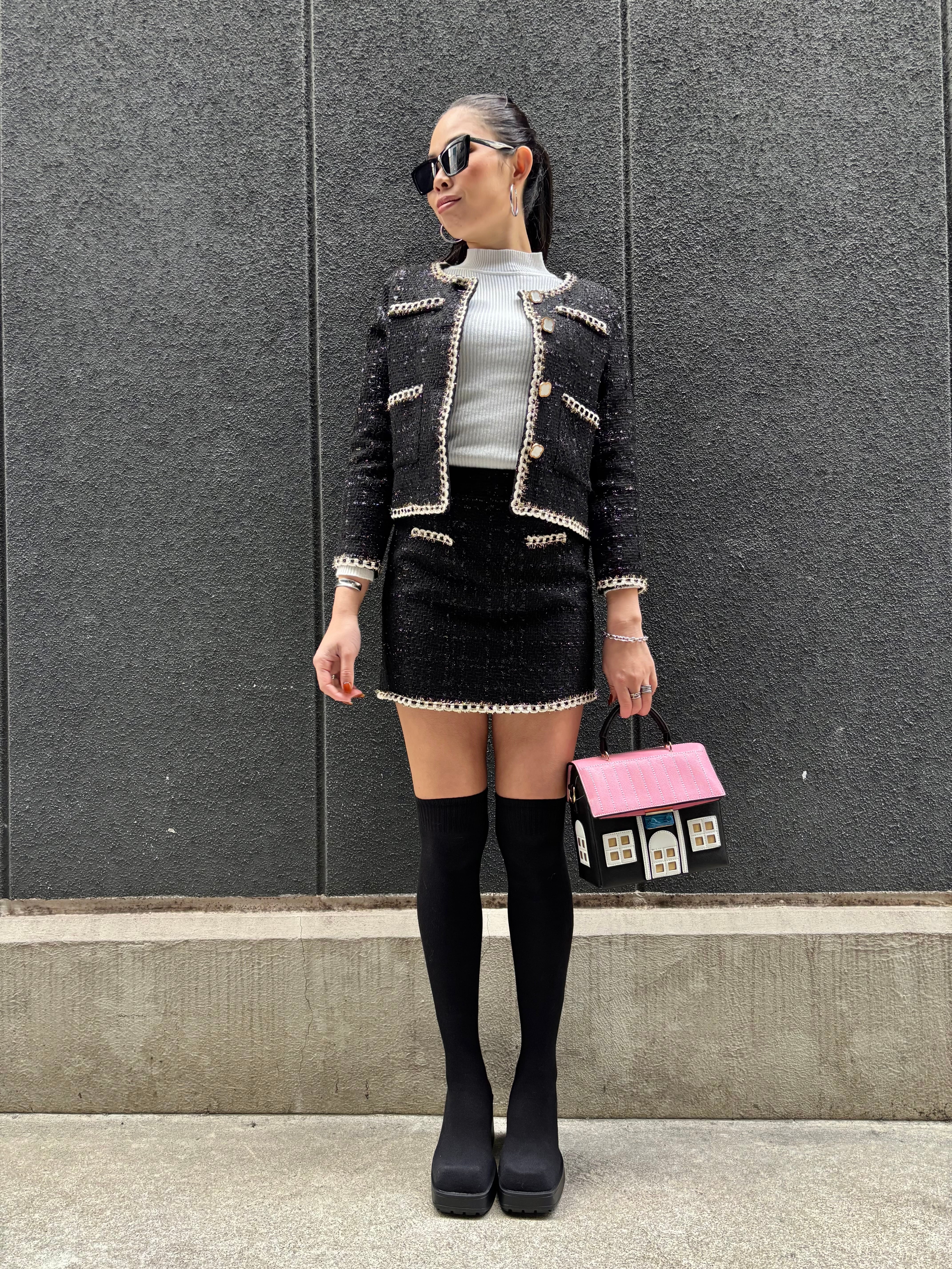tweed jacket × mini skirt set up セットアップ 2点セット ツィード Cネック ジャケット スカート